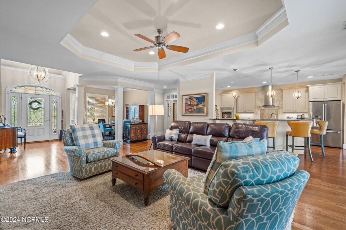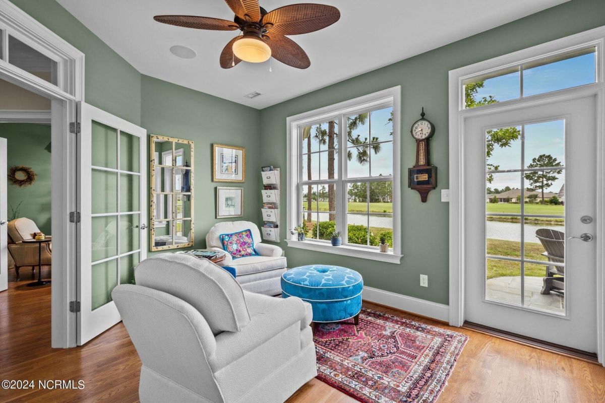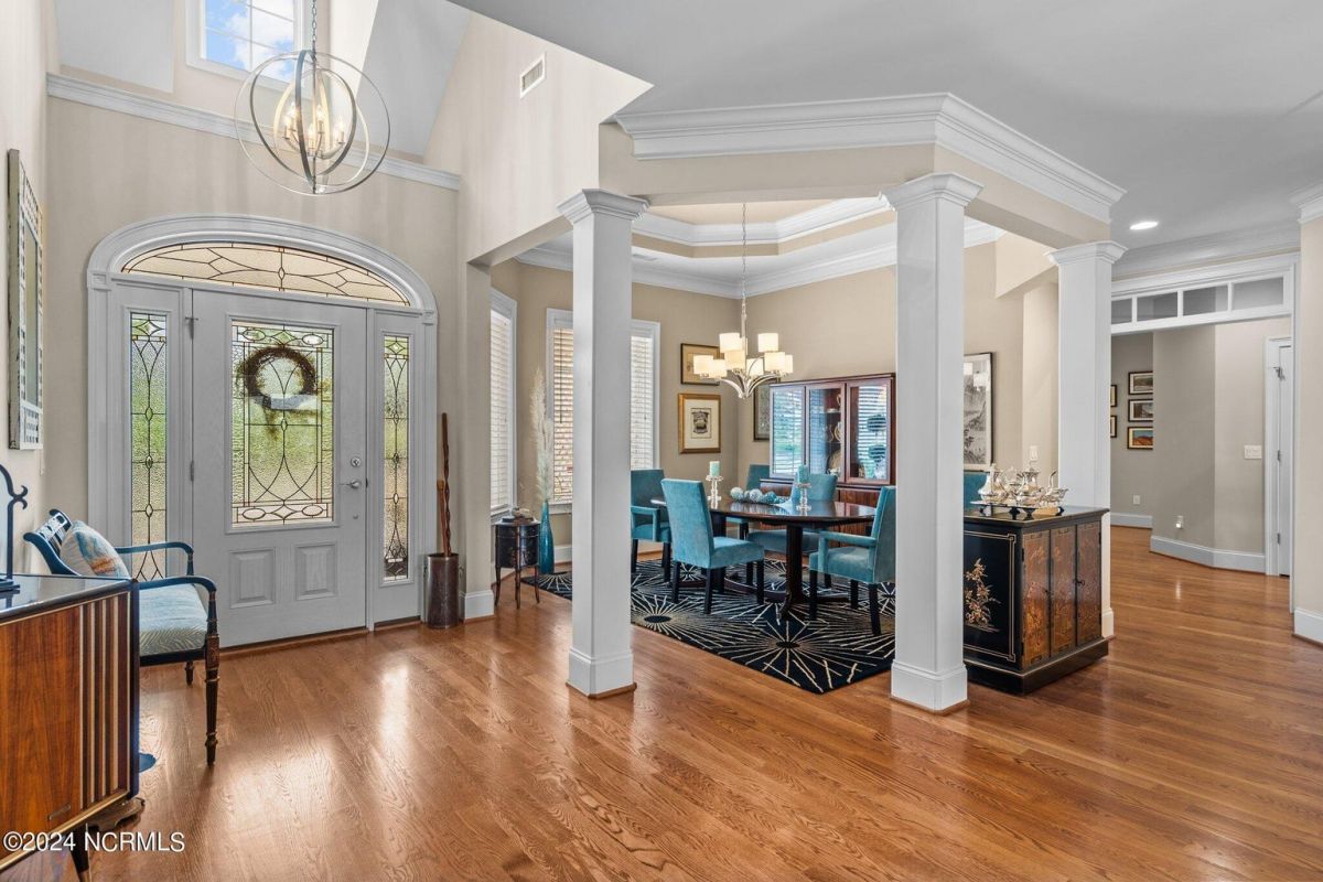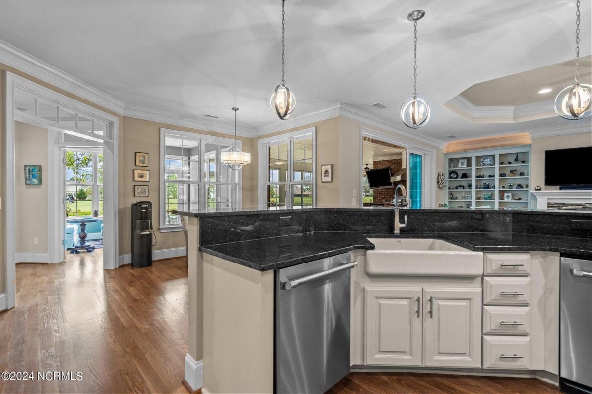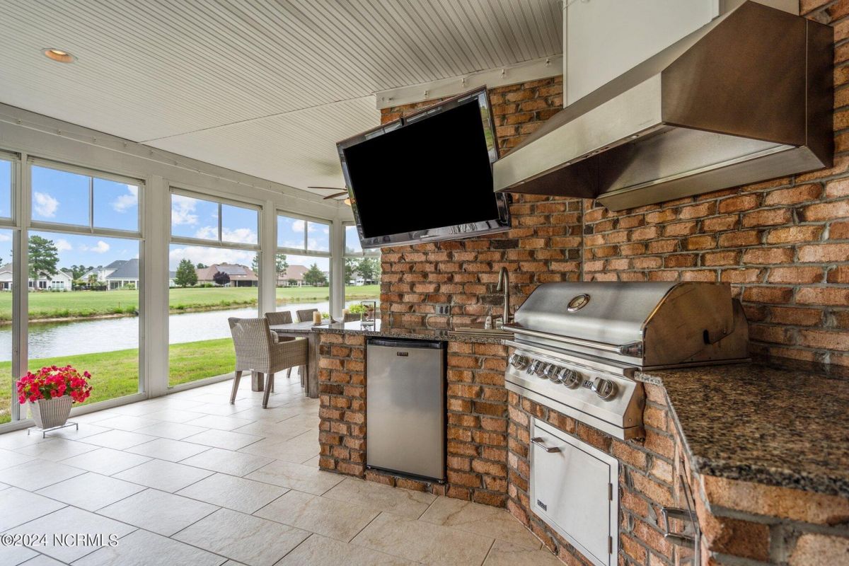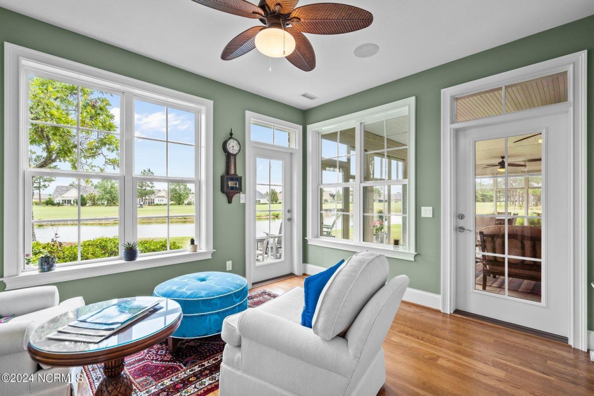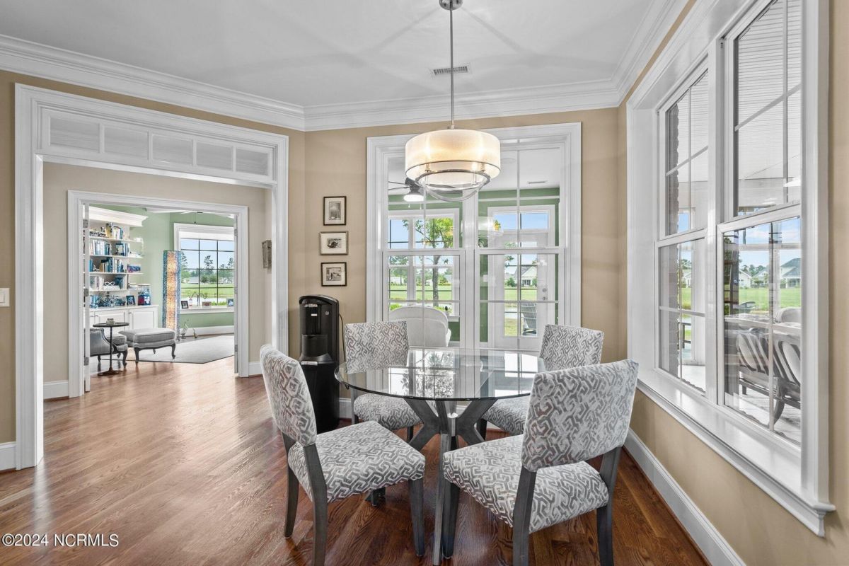 This stunning custom home built by Firetti Builders has the quality and attention to detail that is evident from the minute you drive up. The custom driveway, angled three car garage, five dormers and inviting front porch is just the beginning of AHH-mazing. Once you step inside, you will realize you have just entered one of the most exquisite homes in Compass Pointe, a gated, resort-style amenity rich community. With three guest bedrooms and baths, you have plenty of room and privacy for friends and family. Speaking of guests, entertaining will be a breeze with the gourmet cooks kitchen, formal dining room, breakfast nook, spacious heated and cooled Lanai with second kitchen, third dining area and sitting area with TV. The views from the Lanai of the 9th hole fairway and green of the Compass Pointe golf course, glistening pond and unforgettable sunsets by the firepit will make you never want to leave. This meticulously cared for home has so many incredible features and upgrades such as decorative impervious pavers in the driveway, elegant white columns in the formal dining room, great room with fireplace and built-ins, Carolina room with doors leading to the patio and Lanai, an office with custom built-in wall unit and huge windows, spacious kitchen with gas stove and vent hood, island with plenty of storage and a second prep sink, two en-suite guest bedrooms downstairs, two WIC's in the primary bedroom with custom built shelves and drawers and large en-suite bath with dual vanities, tile shower and whirlpool soaking tub. Upstairs has it's own den/sitting room, 3rd guest bedroom with full bath and over 1,800 SF of walk-in, floored storage space. The laundry room has lots of storage cabinets and it's own large sink and comes with the washer and dryer. There is a drop Zone for items that you wish to be stored out of sight and a counter desk area that's perfect for storing cook books and planning meals. The three car garage has a conditioned storage room, epoxy floor and plenty of windows to let in natural light. This masterpiece has so many more features and upgrades that you must see it in person! You can't build a home of this magnitude today in Compass Pointe at this price.