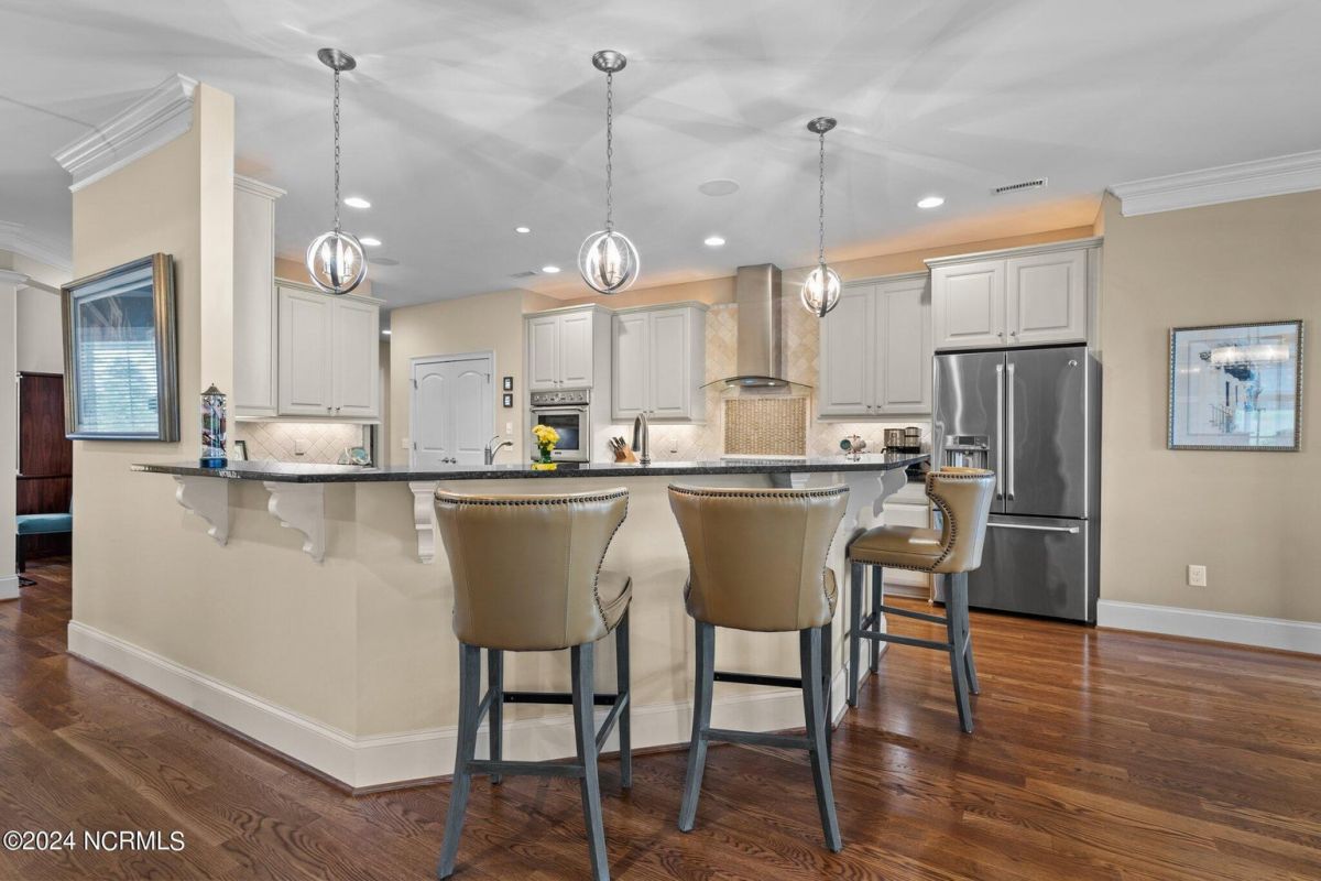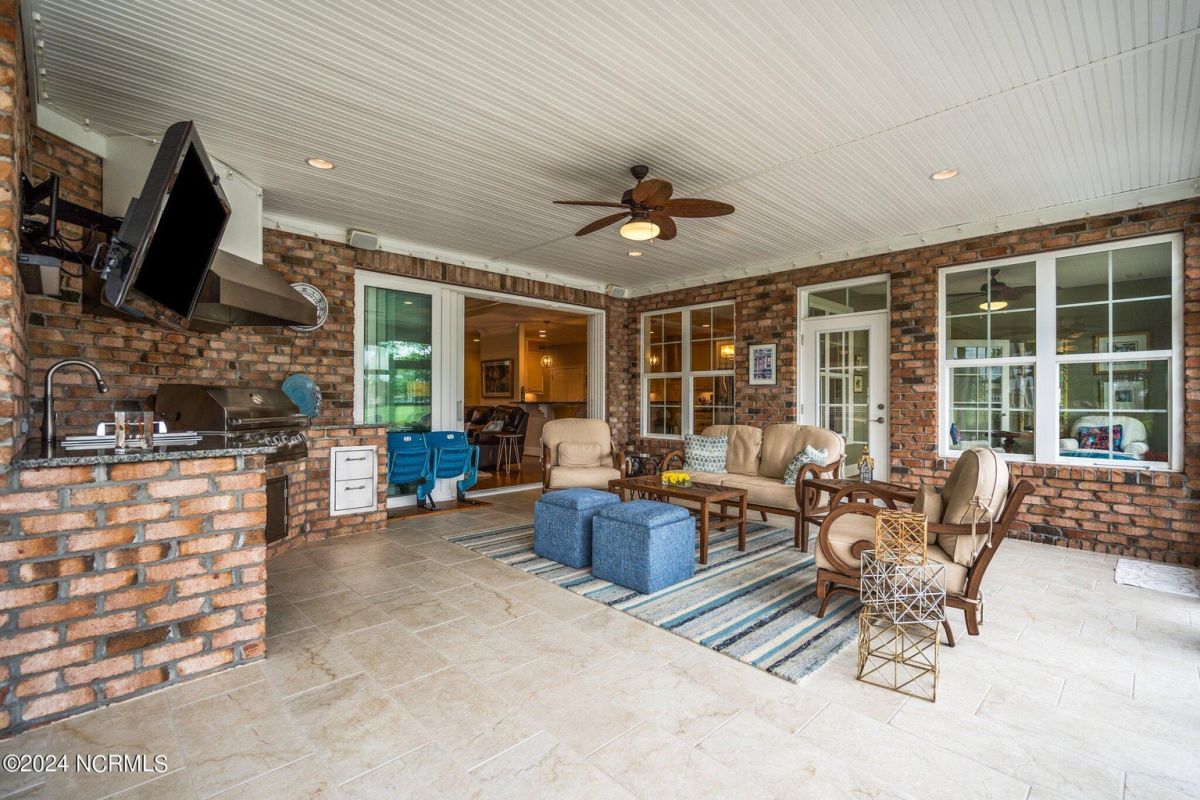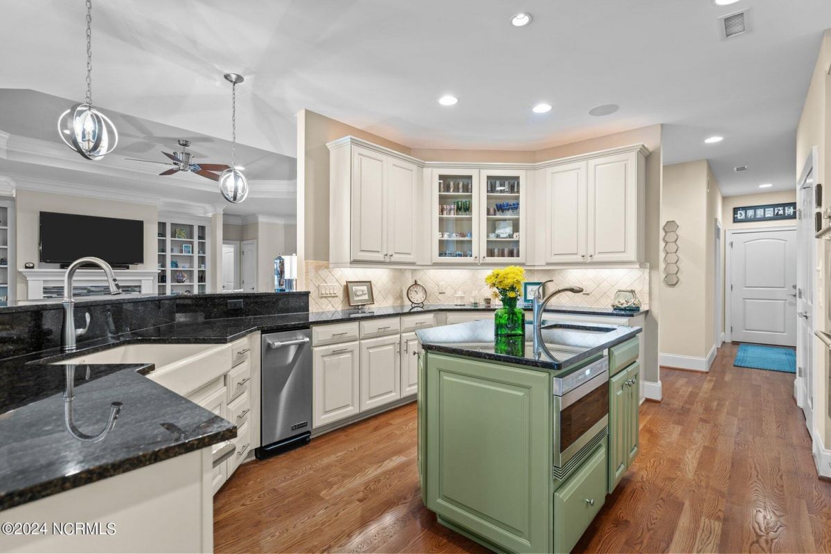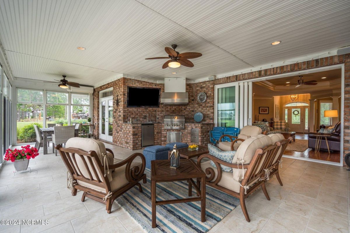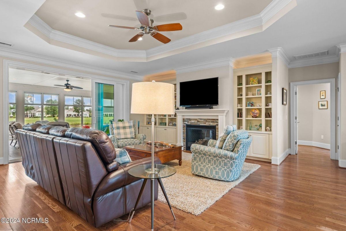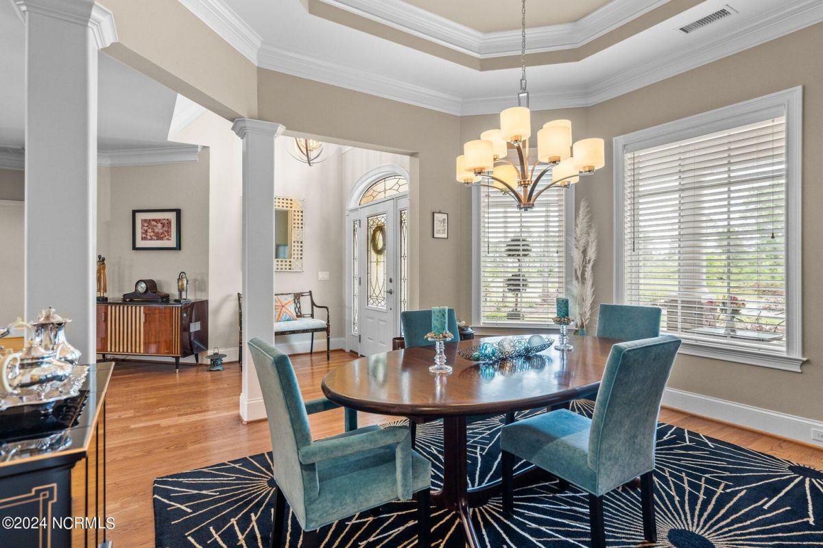 This stunning custom home built by Firetti Builders has the quality and attention to detail that is evident from the minute you drive up. The custom driveway, angled three car garage, five dormers and inviting front porch is just the beginning of AHH-mazing. Once you step inside, you will realize you have just entered one of the most exquisite homes in Compass Pointe, a gated, resort-style amenity rich community. With three guest bedrooms and baths, you have plenty of room and privacy for friends and family. Speaking of guests, entertaining will be a breeze with the gourmet cooks kitchen, formal dining room, breakfast nook, spacious heated and cooled Lanai with second kitchen, third dining area and sitting area with TV. The views from the Lanai of the 9th hole fairway and green of the Compass Pointe golf course, glistening pond and unforgettable sunsets by the firepit will make you never want to leave. This meticulously cared for home has so many incredible features and upgrades such as decorative impervious pavers in the driveway, elegant white columns in the formal dining room, great room with fireplace and built-ins, Carolina room with doors leading to the patio and Lanai, an office with custom built-in wall unit and huge windows, spacious kitchen with gas stove and vent hood, island with plenty of storage and a second prep sink, two en-suite guest bedrooms downstairs, two WIC's in the primary bedroom with custom built shelves and drawers and large en-suite bath with dual vanities, tile shower and whirlpool soaking tub. Upstairs has it's own den/sitting room, 3rd guest bedroom with full bath and over 1,800 SF of walk-in, floored storage space. The laundry room has lots of storage cabinets and it's own large sink and comes with the washer and dryer. There is a drop Zone for items that you wish to be stored out of sight and a counter desk area that's perfect for storing cook books and planning meals. The three car garage has a conditioned storage room, epoxy floor and plenty of windows to let in natural light. This masterpiece has so many more features and upgrades that you must see it in person! You can't build a home of this magnitude today in Compass Pointe at this price.
