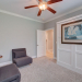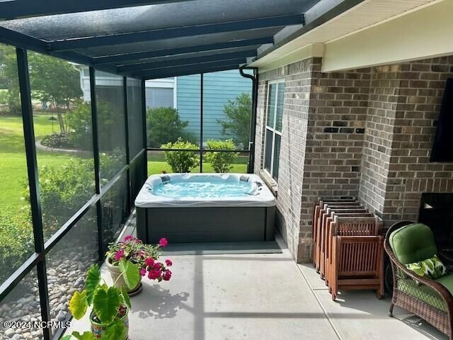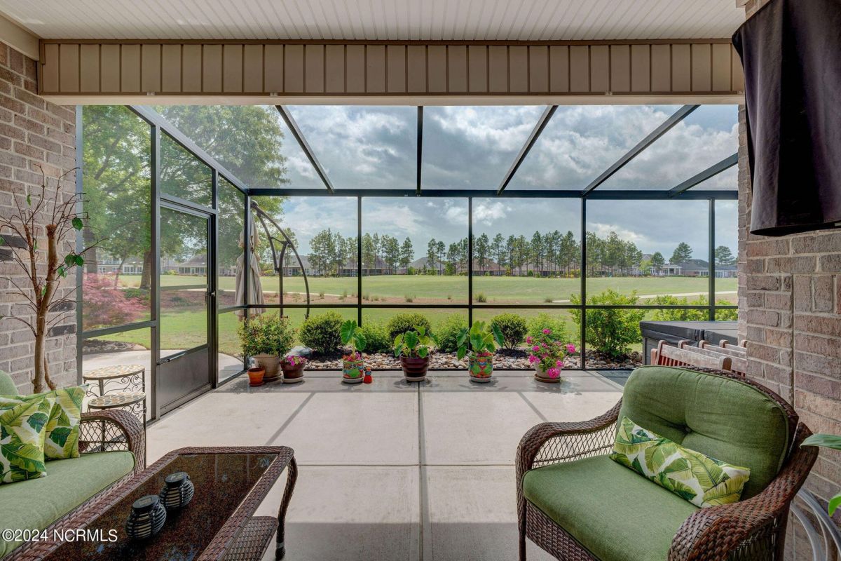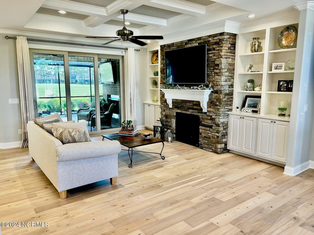 All brick one level light and bright luxury home built by Coastal Luxury Homes located on hole #9 with panoramic golf course view in Compass Pointe! This 3 bedroom/ 3 bath plus bonus room shows like a model. Open concept free flowing floor plan w/ hardwood floors in all the living areas, hallways, primary bedroom and closets. Beautiful quartz countertops and upgraded tile throughout the home. Gas cooktop, Rinnai tank less hot water heater, gas dryer, gas outdoor grill. Dual fuel heating system gas and heat pump! Split bedroom floor plan with private primary bedroom on one side w/ the additional two bedrooms and bonus room on the other side of the home. The home is upgraded throughout with custom lighting, ceiling fans, moldings, trey and coffered ceilings, stone surround fireplace with built-ins and Kitchen Aid appliances. En suite in 2nd bedroom and built in Murphy bed in 3rd bedroom. Screened in Lanai w/ a sunken five person Master Spa hot tub and gas log fireplace. Third car garage is perfect for a small car, golf cart or workshop! Extensive landscaping with concrete border for beds, river rocks and programmable sprinkler system. Built in storage racks in the garage and floored attic for additional storage above. See Special Features sheet for additional upgrades. This home is for the discerning buyer who demands the best quality!