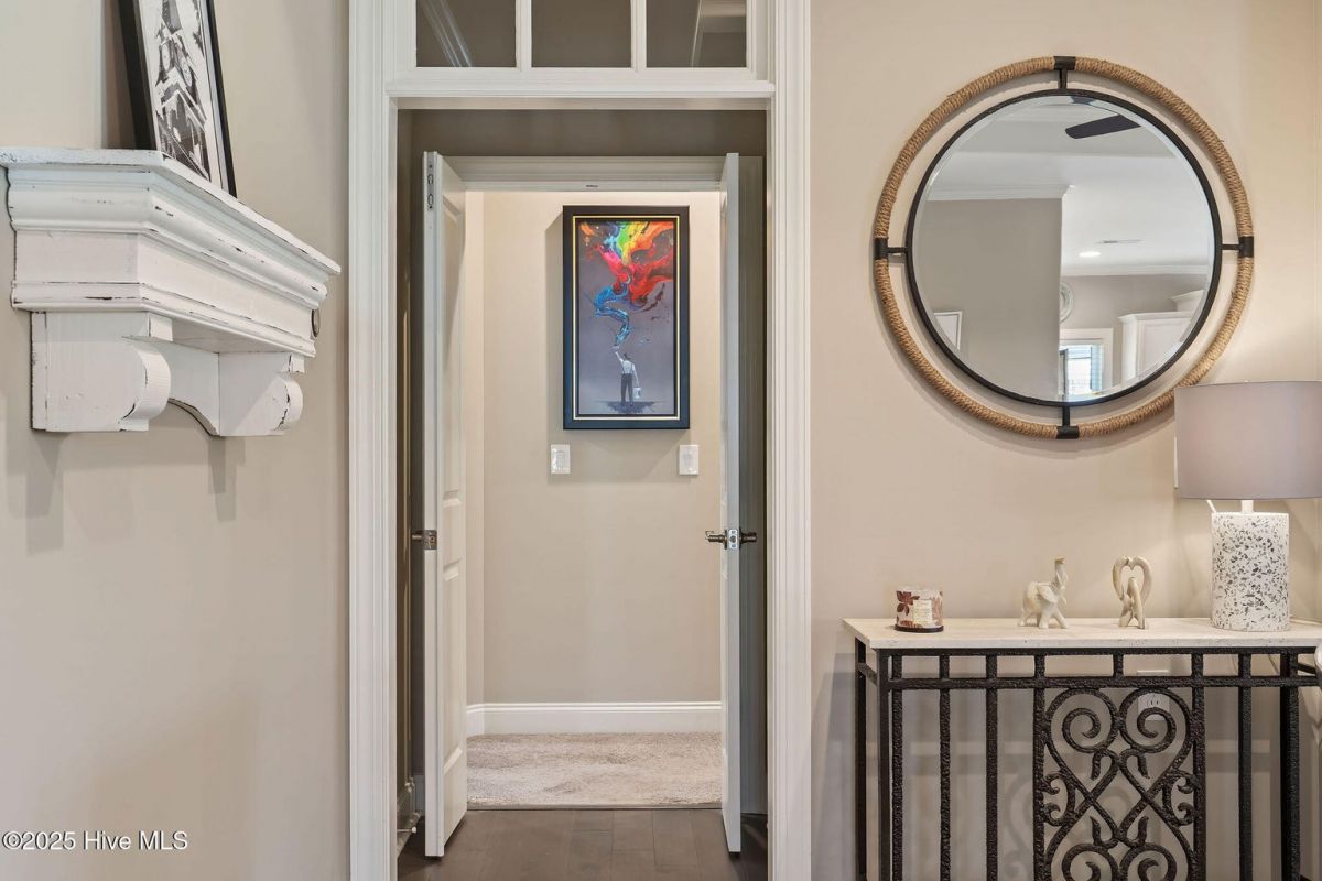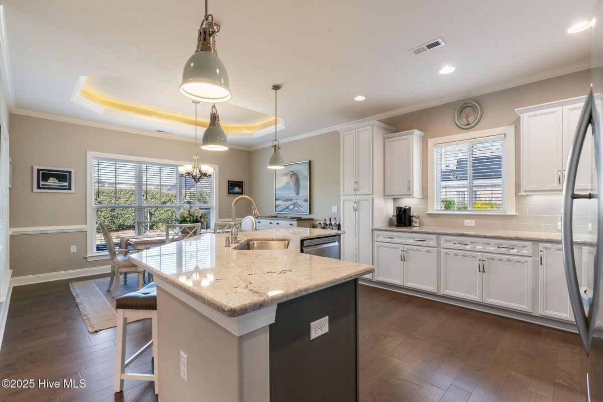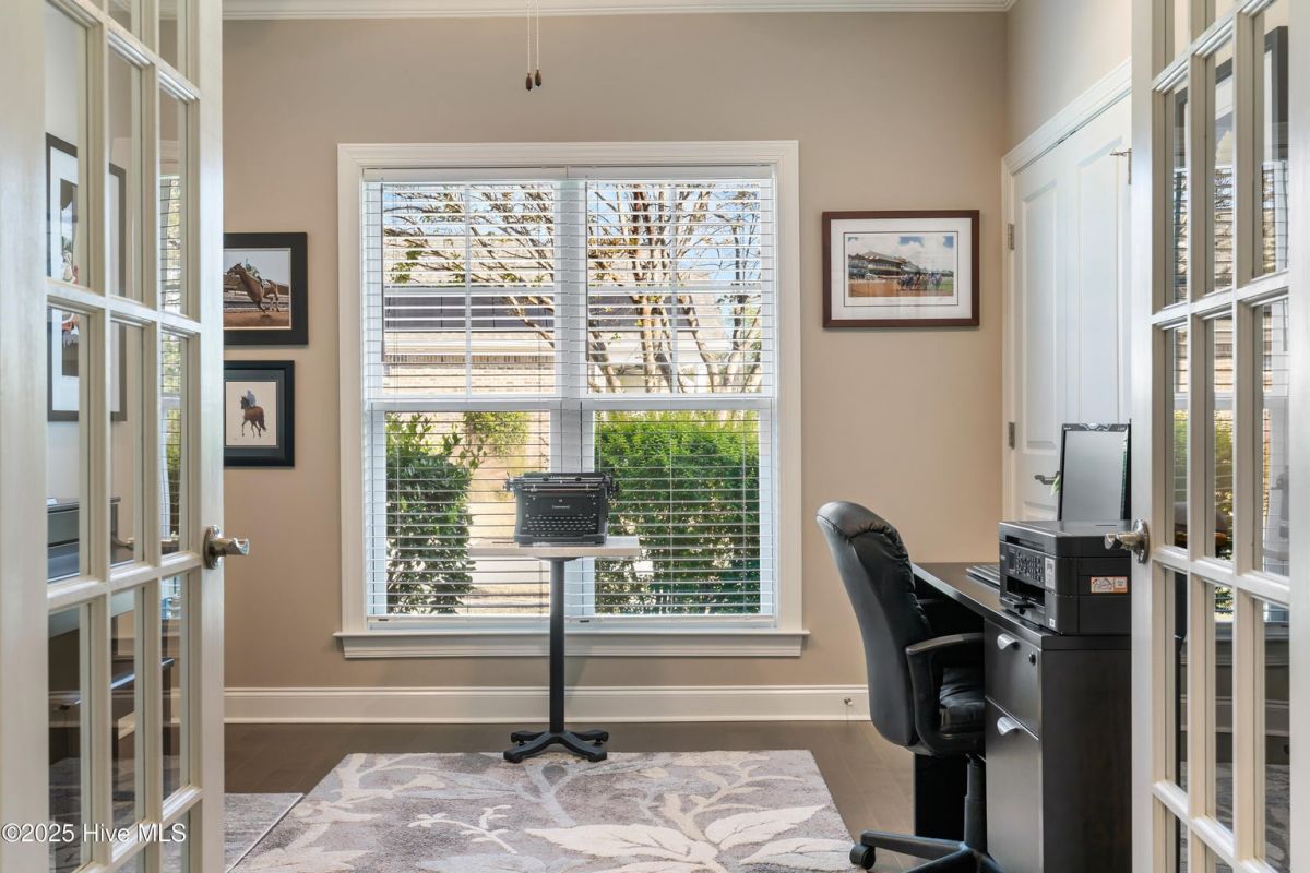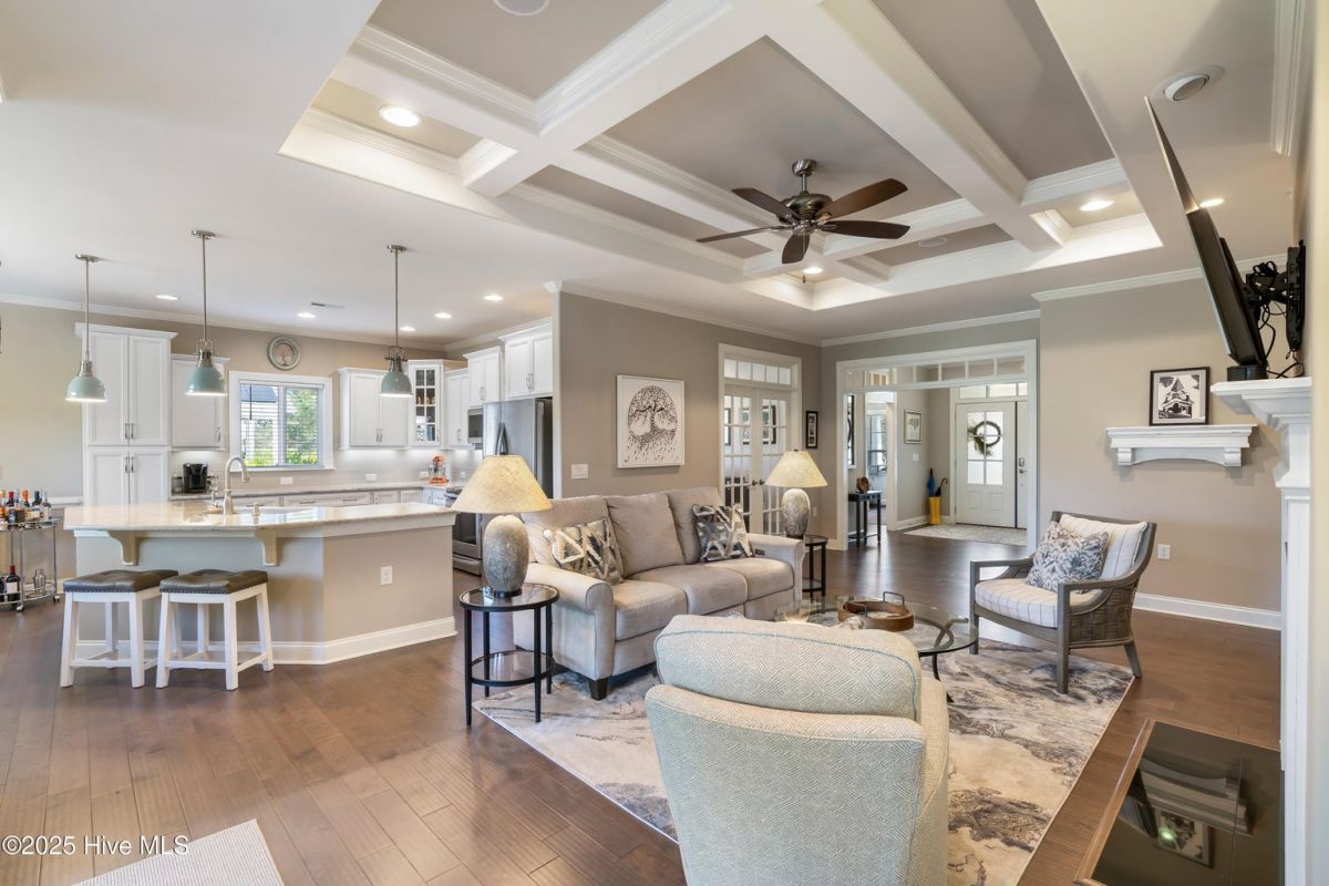 Discover easy, low-maintenance living in this like-new beauty, perfectly situated on a premier corner lot with lush, mature landscaping for privacy and year-round appeal. A timeless red brick front porch creates a warm welcome and a peaceful spot to enjoy nature's views. Step through the double front doors into an inviting open layout featuring lighted tray-ceilings, a coffered living room ceiling, and transom windows that fill the home with natural light. A bright study with French doors offers ideal flexibility for an office, den, or hobby room. The kitchen boasts abundant cabinetry, a large island perfect for gatherings, and a brand new refrigerator. Telescoping sliders off the living room extend your living space into the fully enclosed (heated and cooled!) sunroom with custom shades, overlooking a stamped concrete patio—perfect for grilling and relaxing in the private backyard. The primary suite is a generous retreat with direct sunroom access, a cozy reading nook, and two walk-in closets. Its ensuite bath features a double vanity, linen closet, and a walk-in shower with barn-door sliding glass. Guests enjoy exceptional comfort with a first-floor guest bedroom and bathroom, made even more private by a pocket door that closes off this entire area, or the spacious bonus room with its own full bath. Storage is plentiful with a walk-in attic and an epoxy-floor 2-car garage. Located in the gated, golf-cart-friendly community of Compass Pointe, offering resort-style amenities: the Grand Lanai clubhouse, indoor and outdoor pools, lazy river, fitness center, lighted tennis and pickleball courts, walking/biking trails, kayak launch, endless clubs and activities, and more. Home to the stunning 18-hole private Compass Pointe Golf Club and additional amenities available to members! Don't miss your chance to live in one of the area's most sought-after communities—just 12 minutes from the charm of historic downtown Wilmington. Make this your next address!