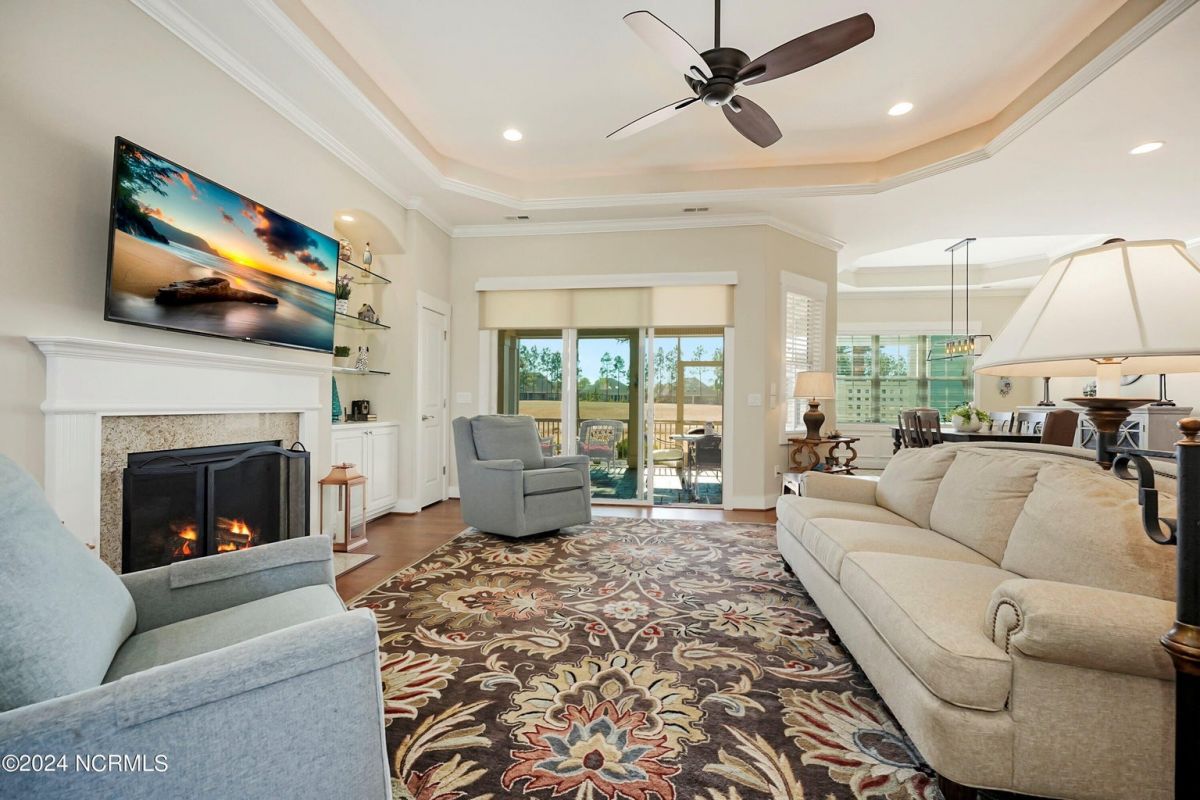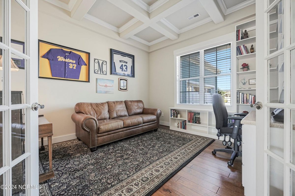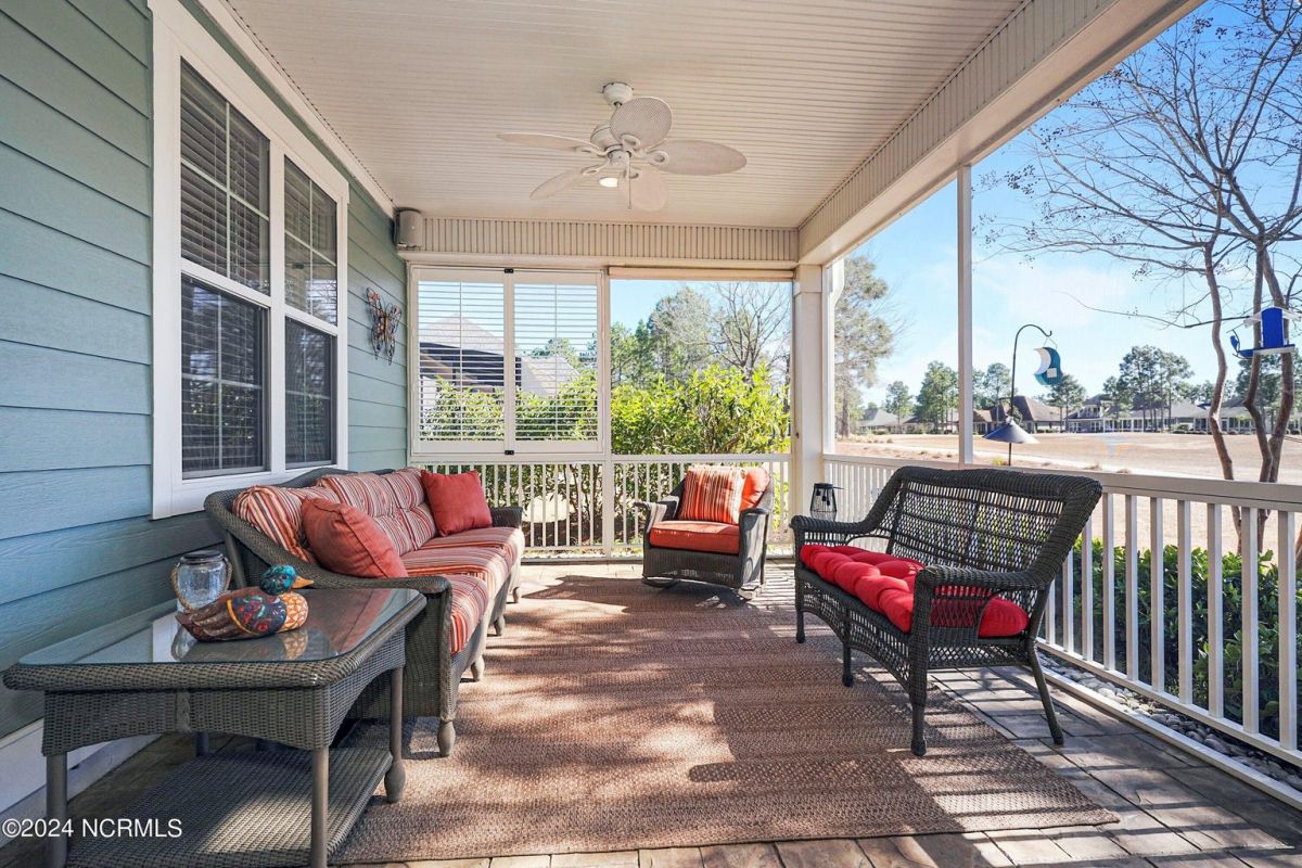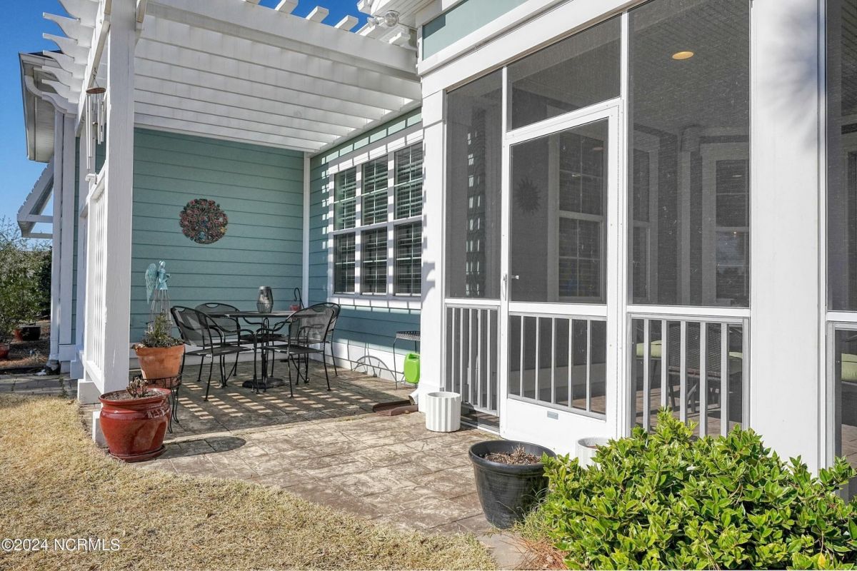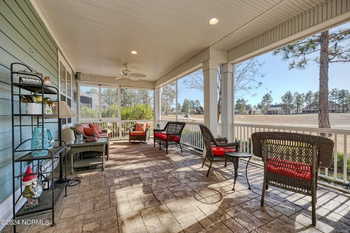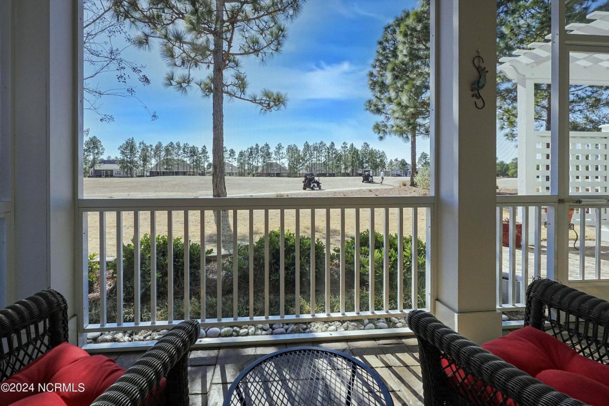 Welcome home! Better than new former Jonesport Model built by Kent Homes. Located on a coveted golf course lot, this home has been immaculately maintained and is move-in ready. Flooded with natural light, the open floorplan features soaring ceilings (trey and coffered), hardwood floors and a coastal vibe. You will enjoy the privacy of the open split floor plan. Upon entering the home, you will see the dedicated office off the foyer complete with built-in cabinets and bookshelves. The great room offers a gas fireplace with built-ins and shelves on either side. Enjoy cooking in your spacious kitchen, complete with an abundance of upper and lower cabinets and a generous sized island. The pantry (with an additional storage area) is not to be missed and will hold not only food staples but also small kitchen appliances. The generously sized light-filled dining room is perfect for entertaining. The Owner's suite has 2 walk-in closets, a large bathroom with split vanity and a spacious walk-in shower. The laundry room conveniently connects to the owner's ensuite. Private FROG with a fully tiled bath and multiple closets can be used as a bedroom or FLEX space. HUGE, floored attic for lots of storage. Restore and relax in your expansive Lanai overlooking the 9th fairway or under your shady Pergula. In addition, there is an oversized courtyard entry garage complete with epoxy floor and built-in storage cabinets. Recent upgrades include new carpet in the owner's suite, new paint, and a new Microwave. Compass Pointe offers a Grand Lanai, indoor pool, outdoor pool and a lazy river, fitness centers, tennis, pickleball, dog park, and trails. In addition to the wonderful amenities that are included in your HOA, you may choose, under separate membership, to join the Compass Pointe Private Golf Club/dining or fitness & social club. Conveniently located to beaches, medical, shopping and downtown Wilmington.