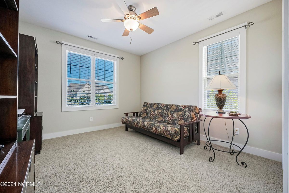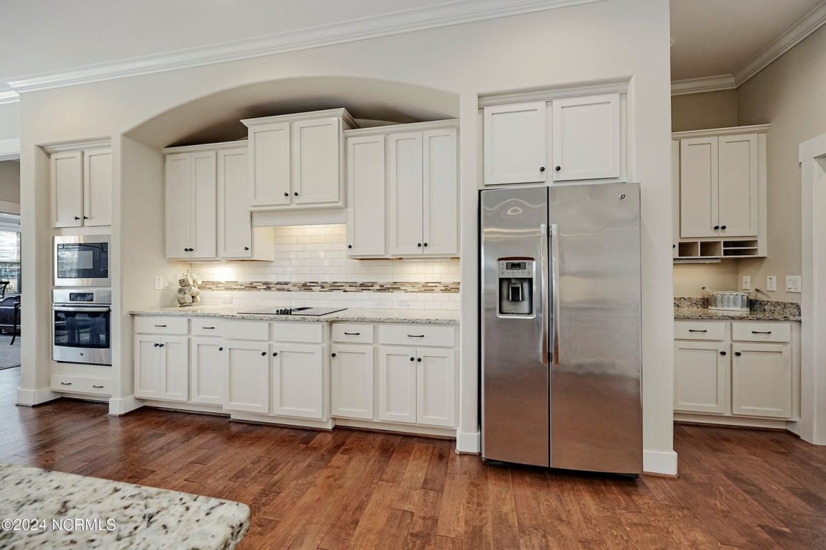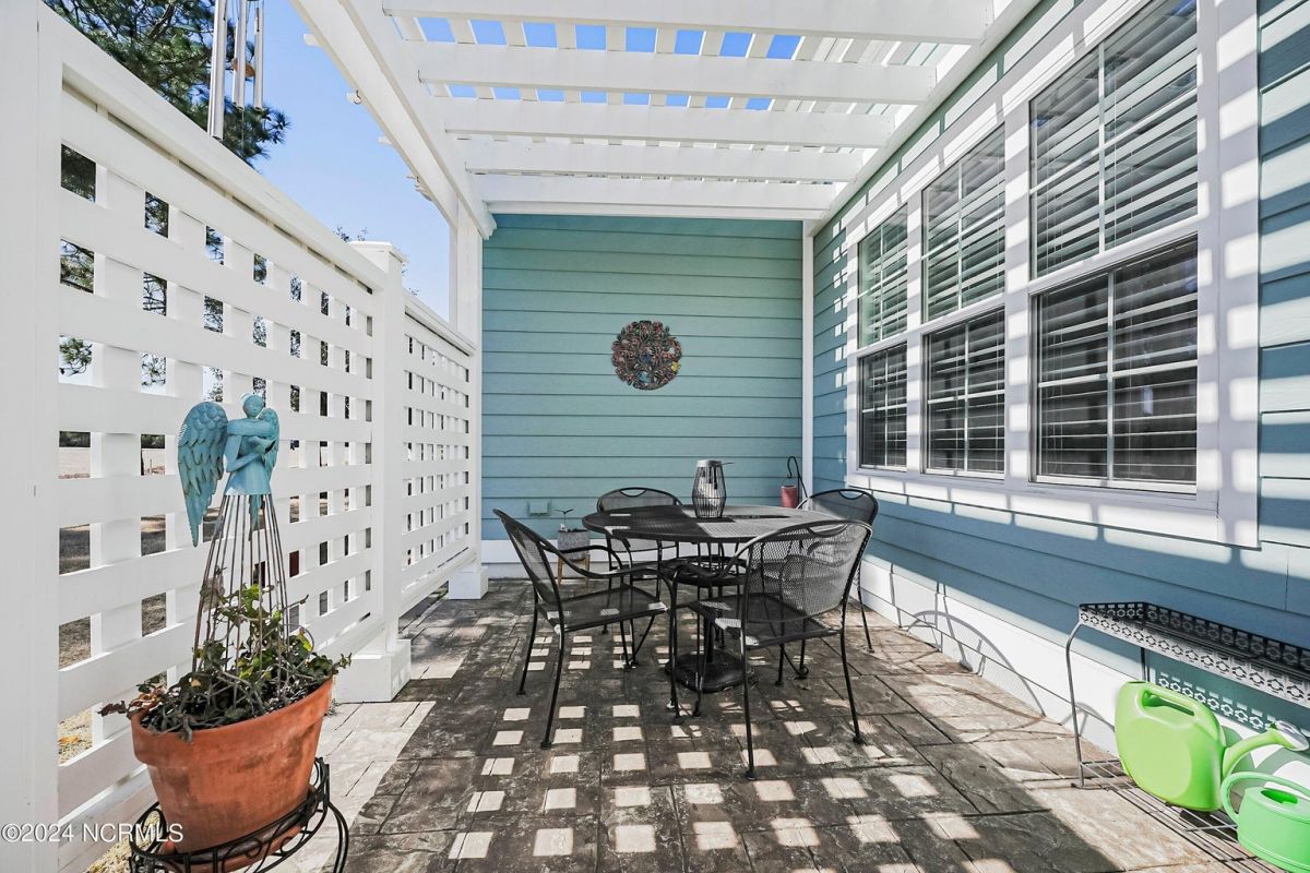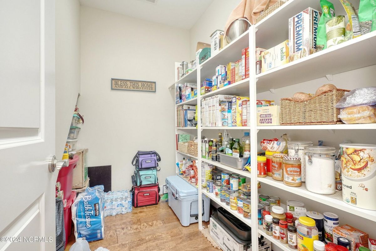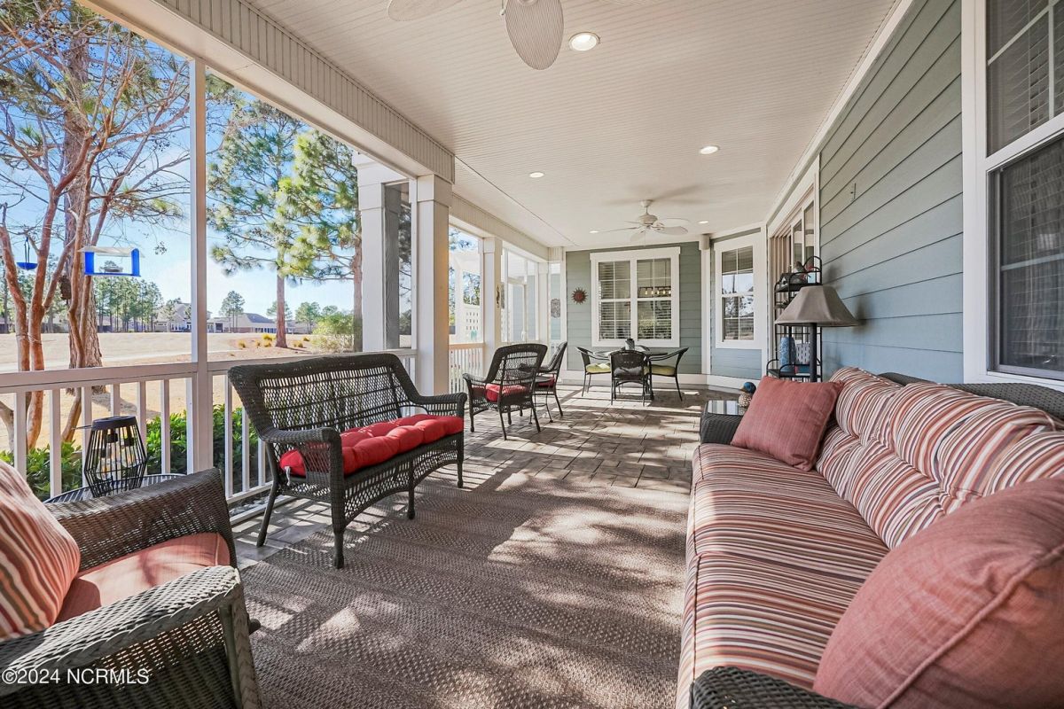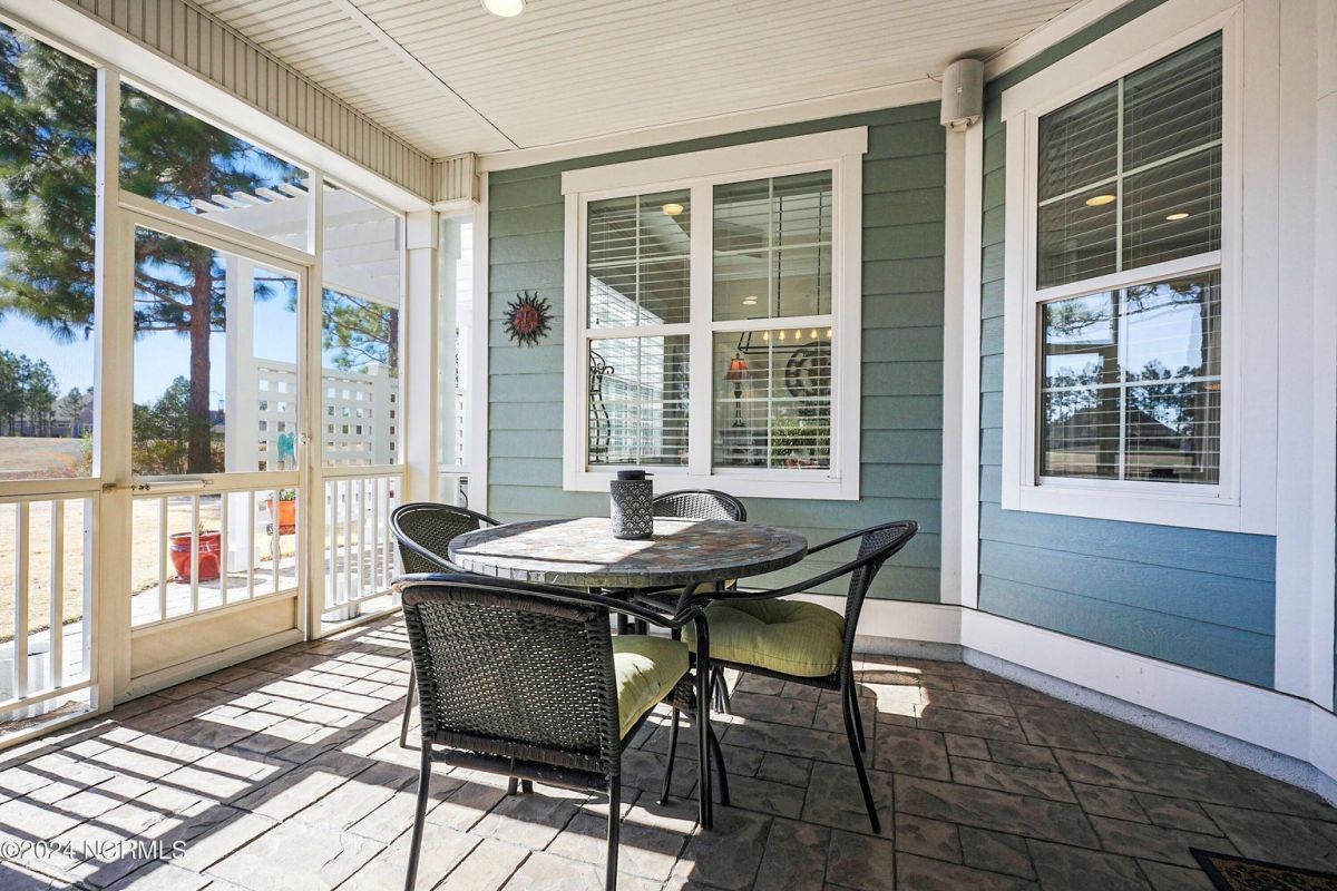 Welcome home! Better than new former Jonesport Model built by Kent Homes. Located on a coveted golf course lot, this home has been immaculately maintained and is move-in ready. Flooded with natural light, the open floorplan features soaring ceilings (trey and coffered), hardwood floors and a coastal vibe. You will enjoy the privacy of the open split floor plan. Upon entering the home, you will see the dedicated office off the foyer complete with built-in cabinets and bookshelves. The great room offers a gas fireplace with built-ins and shelves on either side. Enjoy cooking in your spacious kitchen, complete with an abundance of upper and lower cabinets and a generous sized island. The pantry (with an additional storage area) is not to be missed and will hold not only food staples but also small kitchen appliances. The generously sized light-filled dining room is perfect for entertaining. The Owner's suite has 2 walk-in closets, a large bathroom with split vanity and a spacious walk-in shower. The laundry room conveniently connects to the owner's ensuite. Private FROG with a fully tiled bath and multiple closets can be used as a bedroom or FLEX space. HUGE, floored attic for lots of storage. Restore and relax in your expansive Lanai overlooking the 9th fairway or under your shady Pergula. In addition, there is an oversized courtyard entry garage complete with epoxy floor and built-in storage cabinets. Recent upgrades include new carpet in the owner's suite, new paint, and a new Microwave. Compass Pointe offers a Grand Lanai, indoor pool, outdoor pool and a lazy river, fitness centers, tennis, pickleball, dog park, and trails. In addition to the wonderful amenities that are included in your HOA, you may choose, under separate membership, to join the Compass Pointe Private Golf Club/dining or fitness & social club. Conveniently located to beaches, medical, shopping and downtown Wilmington.