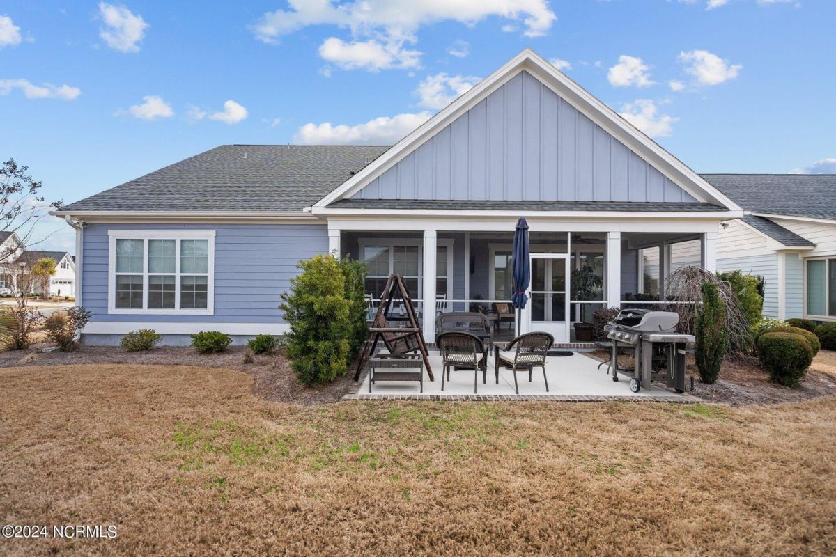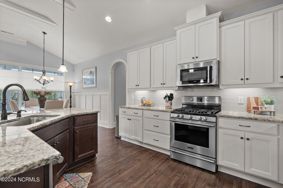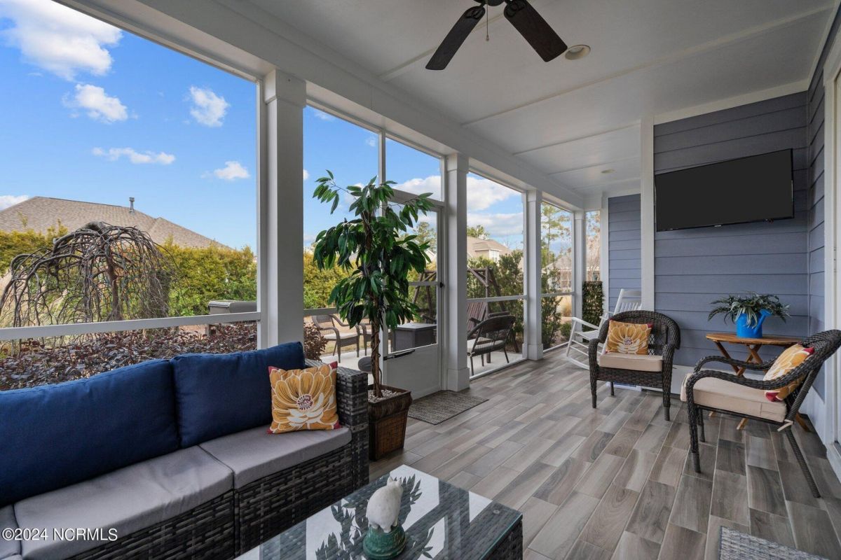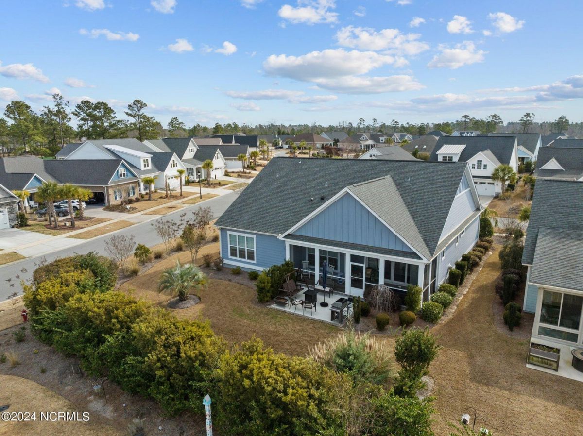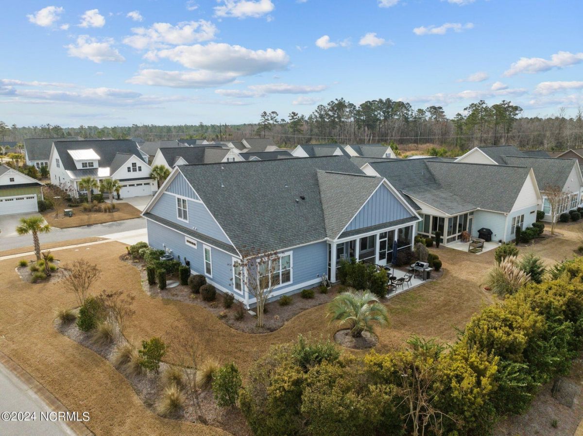 Enjoy life as an endless vacation in this gorgeous nearly new home built by Legacy Homes by Bill Clark nestled on a spacious corner lot in the prestigious community of Compass Pointe. Spanning 2,236 square feet, this home boasts luxury living at its finest with 4 bedrooms, 3 full bathrooms, and gorgeous details at every turn. Step inside to discover exquisite features such as luxury vinyl plank flooring, stunning arched doorways, exposed wooden beams, and double crown molding throughout. The gourmet kitchen highlights soft-close cabinetry with 42'' upper cabinets with crown trim, a gas range, convection microwave, Frigidaire Professional Stainless Steel appliances, beautiful tile backsplash, spacious pantry with wood shelving, granite counters, a large island, and a sunny breakfast nook with gorgeous wainscoting. Enjoy cozy evenings by the gas fireplace flanked by built-ins in the living room. Your impressive first-floor master suite boasts a beautiful tray ceiling with indirect lighting, a large walk-in closet with dual sides, and an en suite bathroom featuring double vanities and an oversized tiled walk-in shower with an ornate pebble floor. Upstairs, you'll find a large bedroom with a full bathroom and plenty of walk-in attic storage. Spend a relaxing evening on your expansive screened porch with beautiful porcelain tile floors. Additional features include an incredible laundry/mud room with a built-in drop zone, a two-car garage, and a 12'x14' concrete patio. The HOA dues include yard maintenance for additional convenience. The amenity-rich, gated community of Compass Pointe in Leland offers life as an endless vacation. A private, 18-hole golf course, a kayak launch on Cardinal Lake, an outdoor resort pool with a lazy river, an indoor pool, tennis and pickleball courts, a wellness center with a full gym and sauna, a dog park for your furry friends, and numerous walking and biking trails along scenic marshes. Call today to make this exquisite home yours!