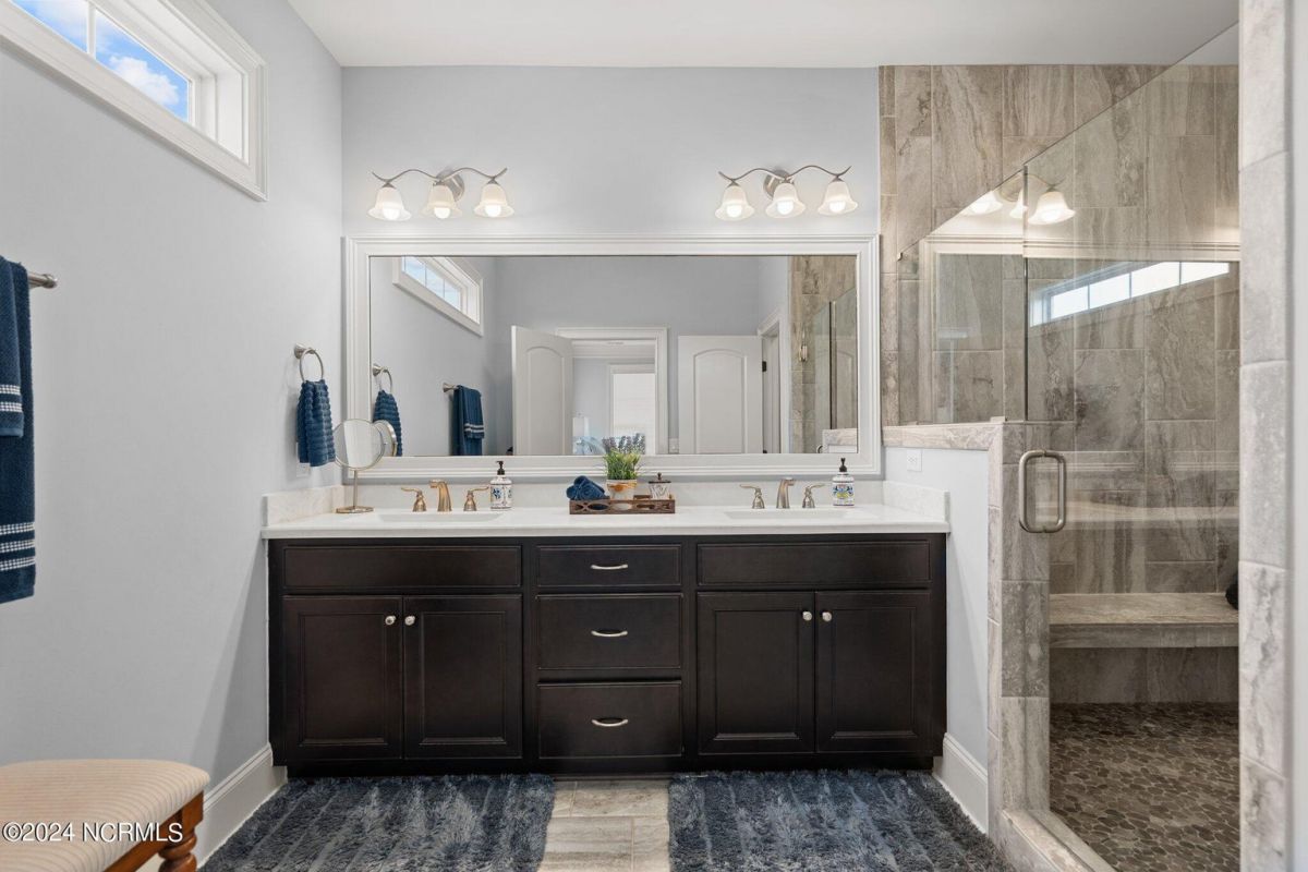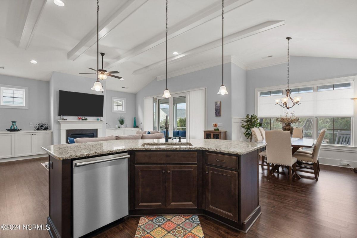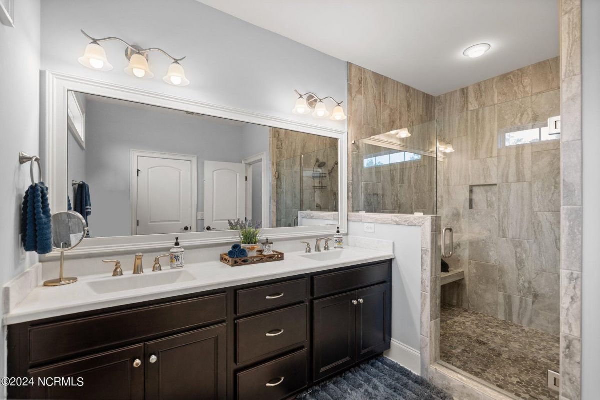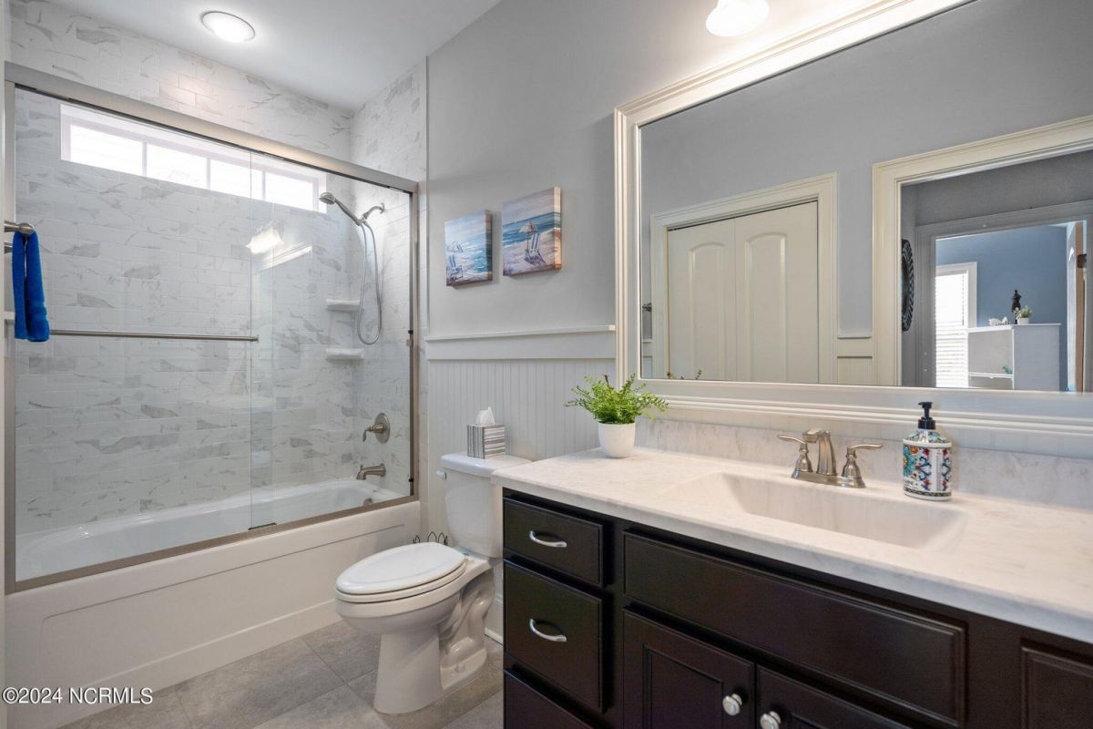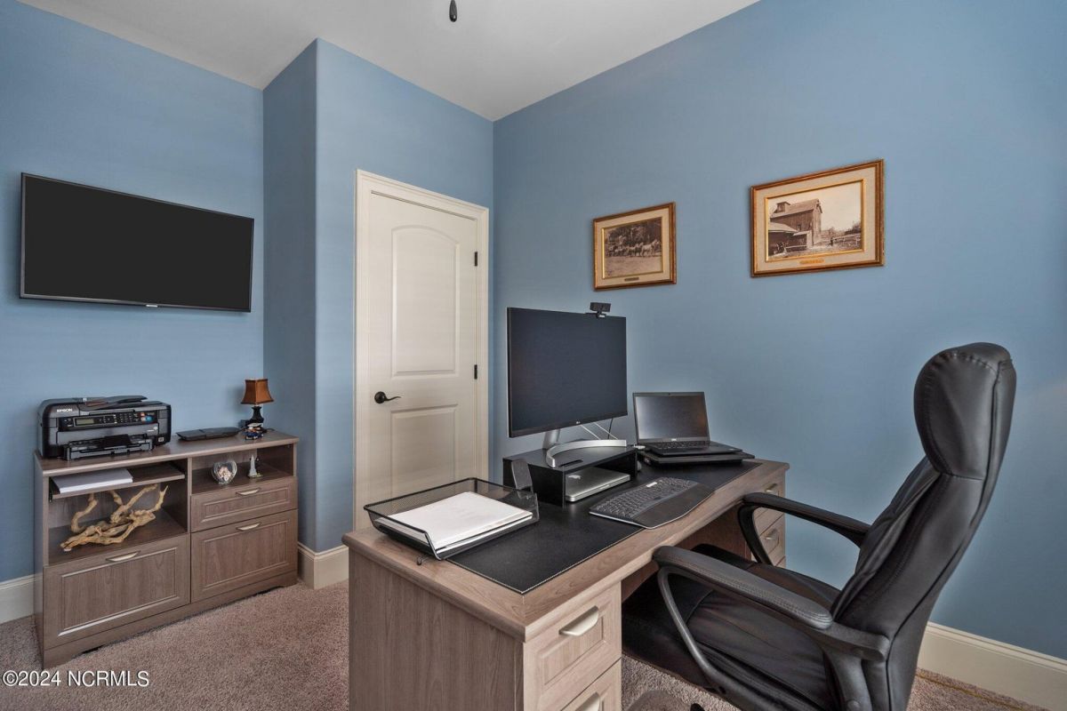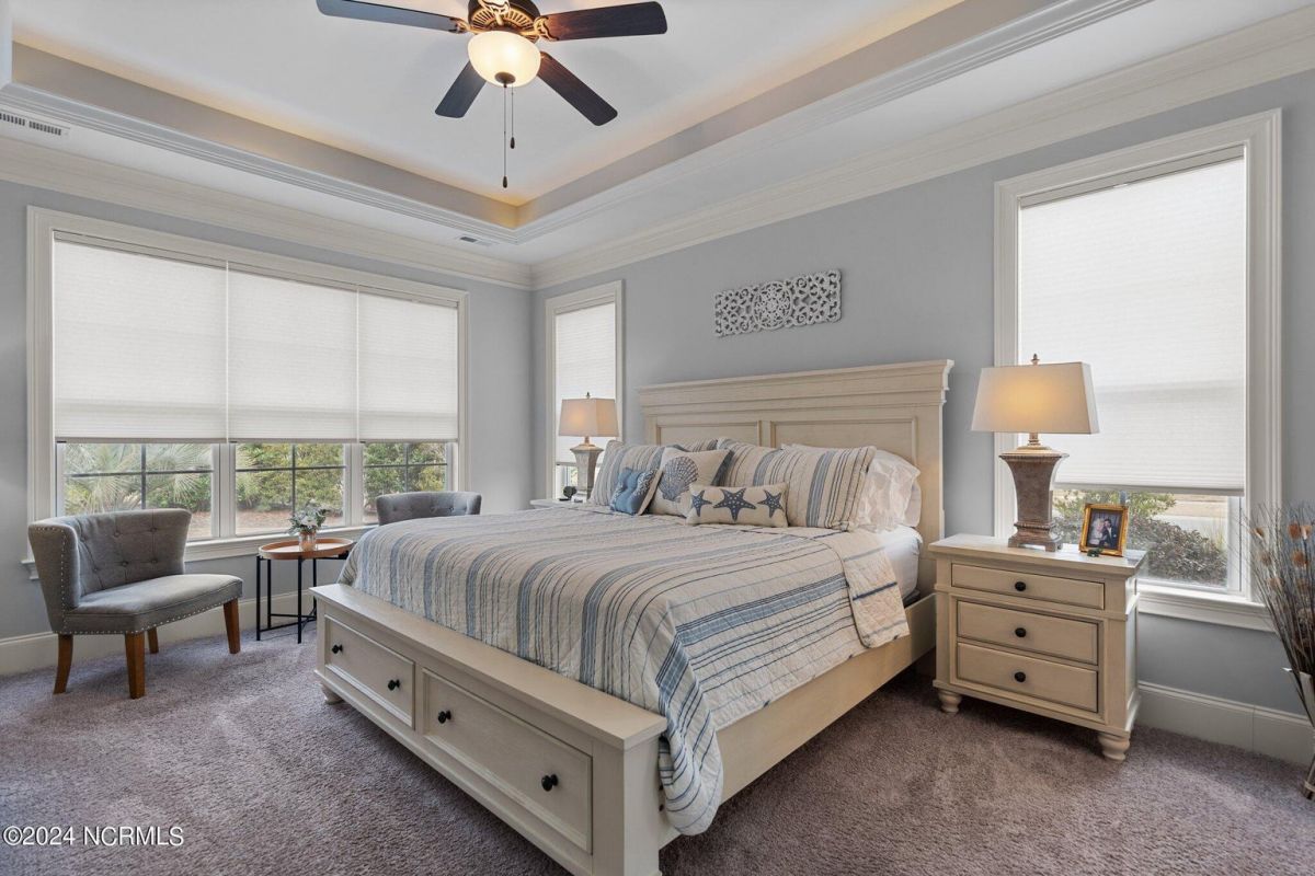Enjoy life as an endless vacation in this gorgeous nearly new home built by Legacy Homes by Bill Clark nestled on a spacious corner lot in the prestigious community of Compass Pointe. Spanning 2,236 square feet, this home boasts luxury living at its finest with 4 bedrooms, 3 full bathrooms, and gorgeous details at every turn. Step inside to discover exquisite features such as luxury vinyl plank flooring, stunning arched doorways, exposed wooden beams, and double crown molding throughout. The gourmet kitchen highlights soft-close cabinetry with 42'' upper cabinets with crown trim, a gas range, convection microwave, Frigidaire Professional Stainless Steel appliances, beautiful tile backsplash, spacious pantry with wood shelving, granite counters, a large island, and a sunny breakfast nook with gorgeous wainscoting. Enjoy cozy evenings by the gas fireplace flanked by built-ins in the living room. Your impressive first-floor master suite boasts a beautiful tray ceiling with indirect lighting, a large walk-in closet with dual sides, and an en suite bathroom featuring double vanities and an oversized tiled walk-in shower with an ornate pebble floor. Upstairs, you'll find a large bedroom with a full bathroom and plenty of walk-in attic storage. Spend a relaxing evening on your expansive screened porch with beautiful porcelain tile floors. Additional features include an incredible laundry/mud room with a built-in drop zone, a two-car garage, and a 12'x14' concrete patio. The HOA dues include yard maintenance for additional convenience. The amenity-rich, gated community of Compass Pointe in Leland offers life as an endless vacation. A private, 18-hole golf course, a kayak launch on Cardinal Lake, an outdoor resort pool with a lazy river, an indoor pool, tennis and pickleball courts, a wellness center with a full gym and sauna, a dog park for your furry friends, and numerous walking and biking trails along scenic marshes. Call today to make this exquisite home yours!