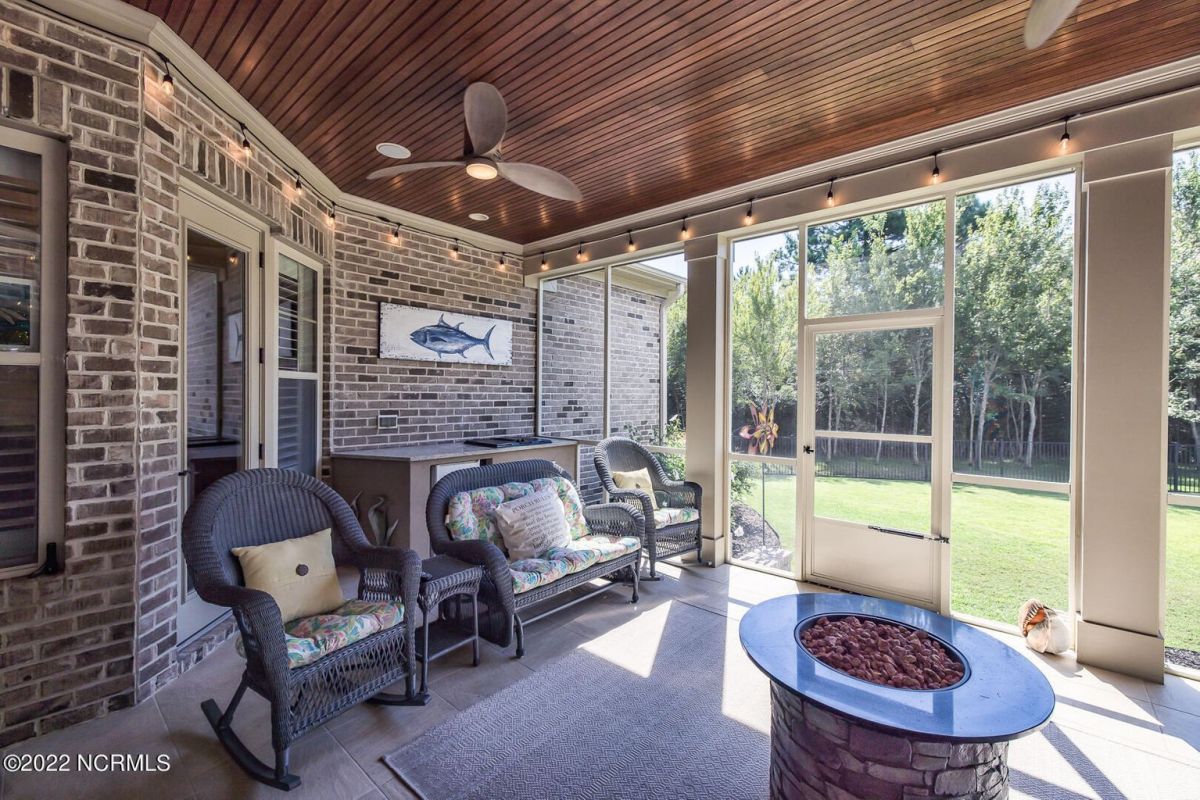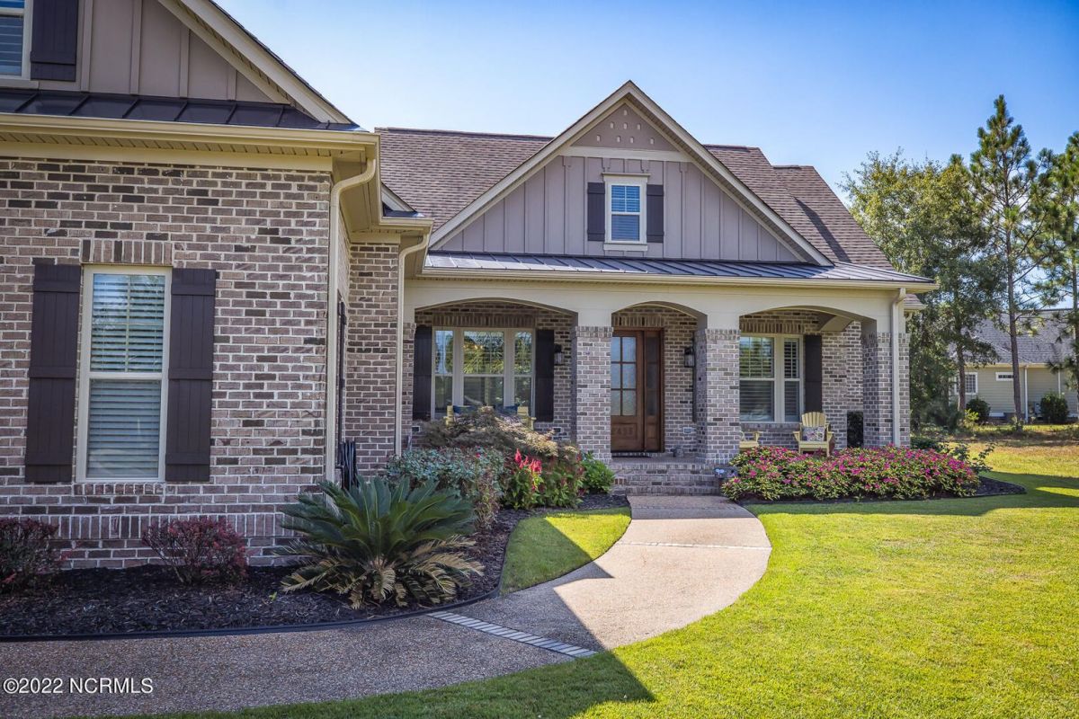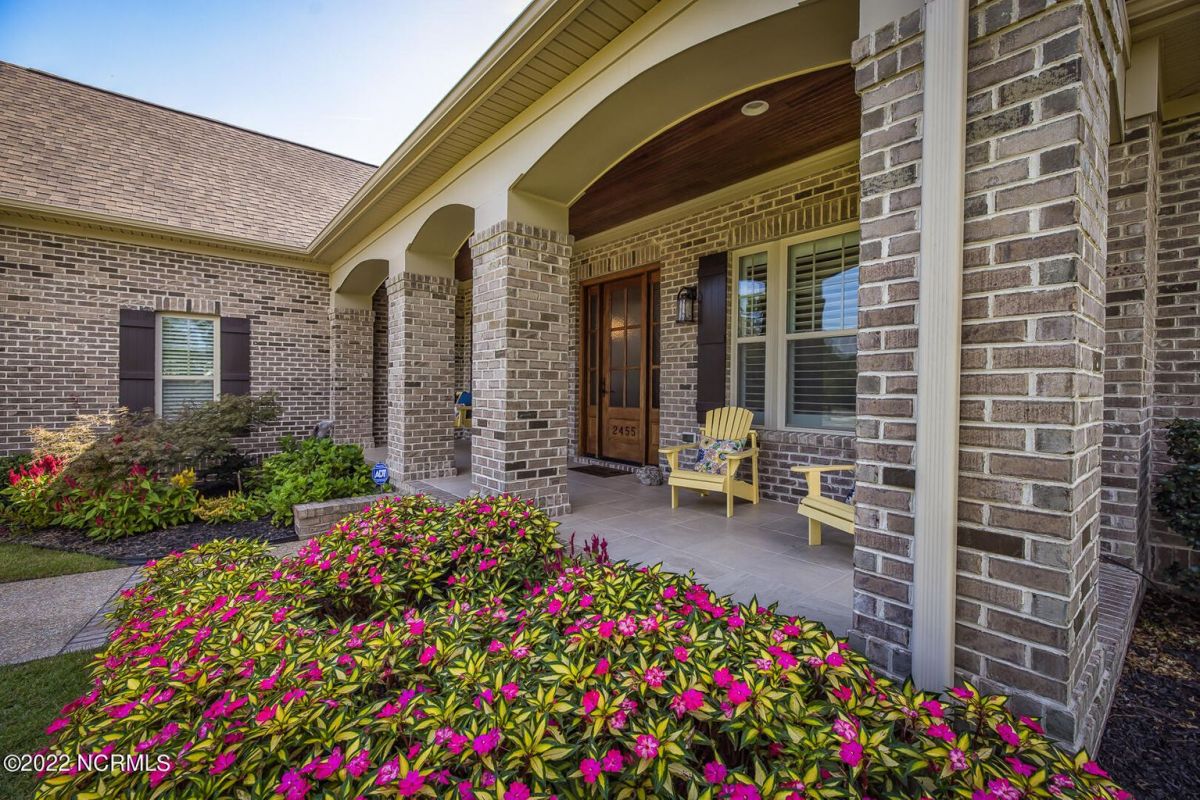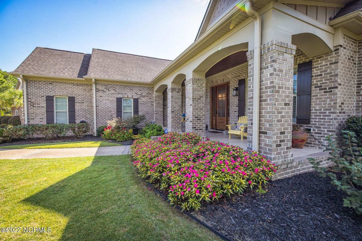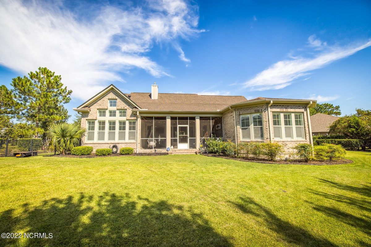 Absolutely Amazing like new, brick home in Compass Pointe! You will be in love with everything about the inside and outside of this home! The inside of the home is breathtaking when you walk in! Large foyer that opens to the living room, formal dining room, kitchen and large breakfast area. You will also see the amazing lanai/screened-in-porch off the living room that is very spacious and comfortable with an outdoor grill and refrigerator. The kitchen has granite countertops, a very large island perfect for entertaining, two convection ovens, gas cooktop, two pantries and stainless-steel appliances. The living room is very open and has a beautiful fireplace with built-in bookshelves. Directly off the living room is an amazing den with another fireplace that overlooks the lush backyard. The master bedroom is downstairs as well as 2 other spacious bedrooms. The master bedroom has plenty of windows, his/her vanities and a closet to die for! Bedroom 2 and Bedroom 3 are also downstairs and have their own private bath. Laundry room downstairs as well. Upstairs offers all kinds of options! Finished room over garage, full bathroom and another flex room to use however you desire. Nice walk-in storage area too! Outside you have a 4 car garage that is immaculate. It is wired for an electric car (240V, 50 amp breaker) and wired for a whole house generator (current generator does not remain). It also has a climate controlled storage room! Two, 14 seer HVAC units. The lot is located on a cul-de-sac and is over ½ acre (.59 acres), fully and maturely landscaped with part of it being fenced in. In the backyard the lot extends past the fence to a pond that is on part of the property. The irrigation for the yard is included with the HOA dues. The location is very close to the golf course clubhouse and not far from the neighborhood pool and clubhouse! As the website for Compass Pointe explains, this neighborhood offers life as an endless vacation. Great weather to enjoy golf on a private, championship course, kayak in scenic marshes, float down a lazy river, enjoy the amazing outdoor pool or indoor pool and clubhouse, take advantage of the miles of walking trails. If you need to rejuvenate you can head to the Fitness/wellness center to exercise or enjoy the sauna or steam room. Several nearby beaches available too! Compass Pointe is a bragworthy and beautiful gated community in idyllic Southeastern North Carolina with every day being a getaway!