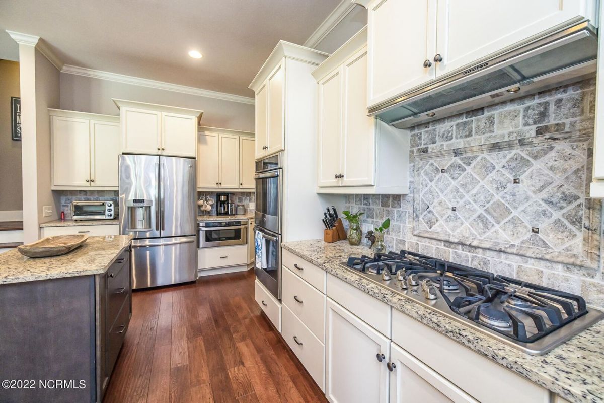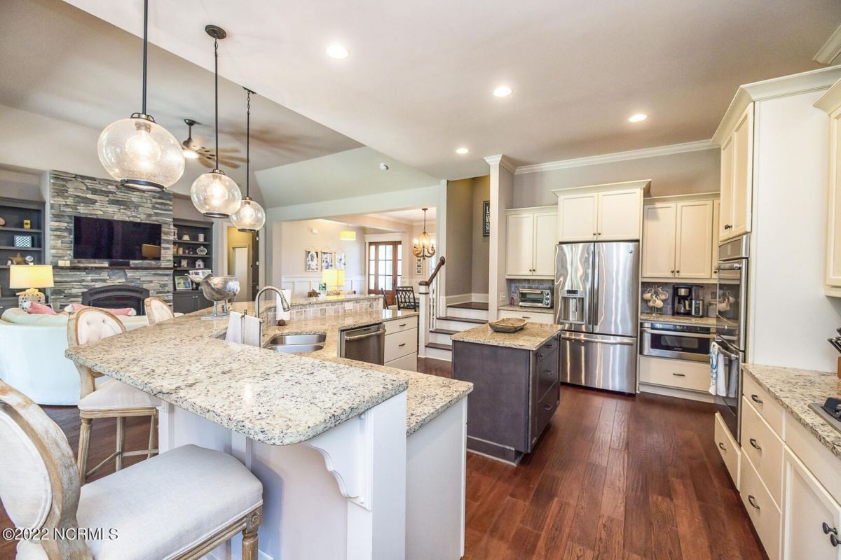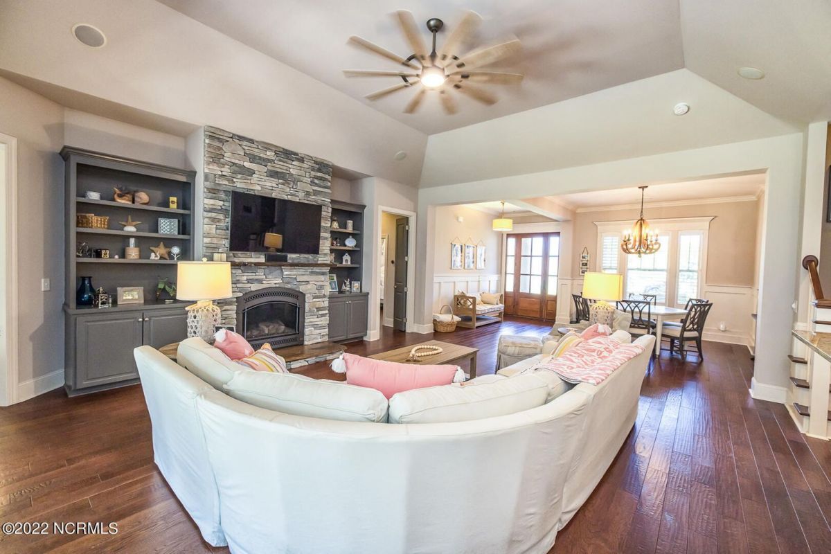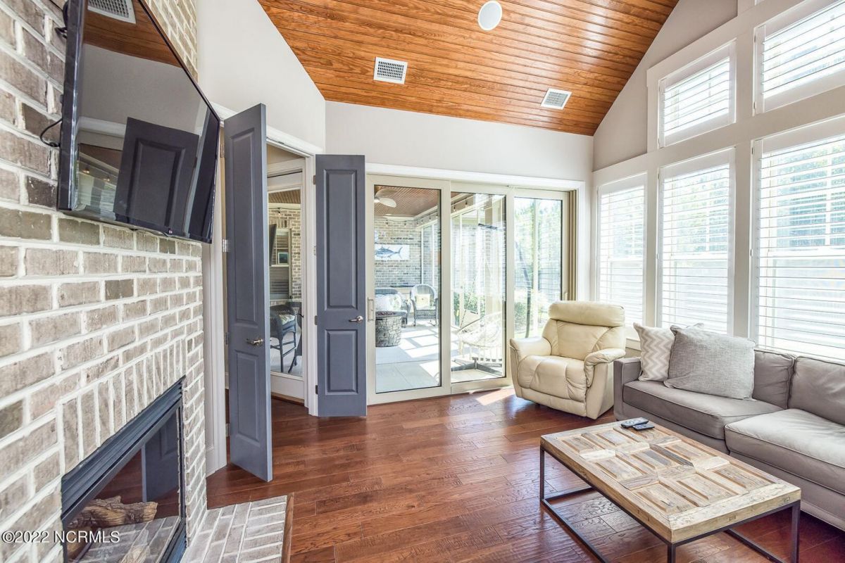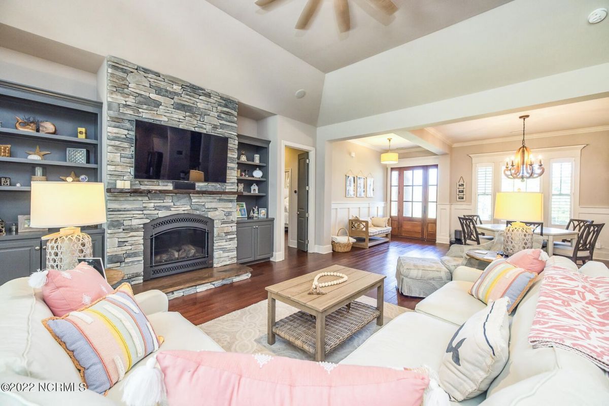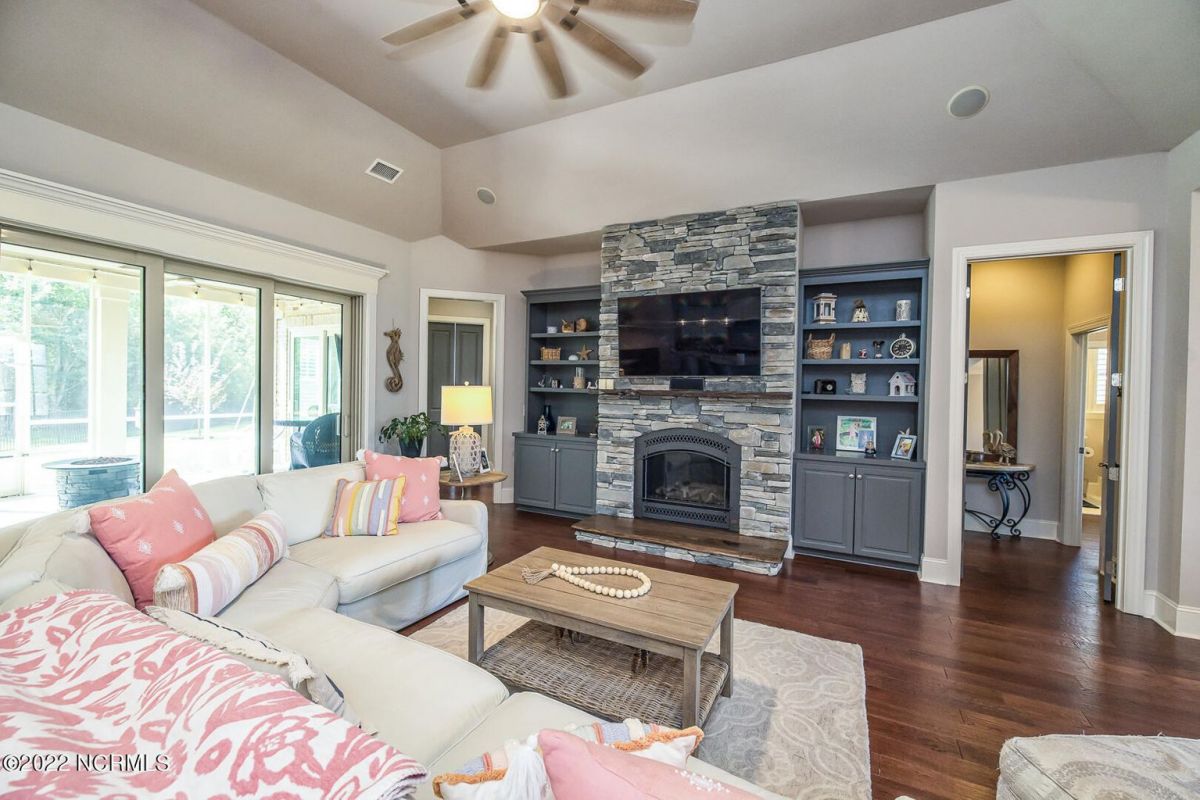 Absolutely Amazing like new, brick home in Compass Pointe! You will be in love with everything about the inside and outside of this home! The inside of the home is breathtaking when you walk in! Large foyer that opens to the living room, formal dining room, kitchen and large breakfast area. You will also see the amazing lanai/screened-in-porch off the living room that is very spacious and comfortable with an outdoor grill and refrigerator. The kitchen has granite countertops, a very large island perfect for entertaining, two convection ovens, gas cooktop, two pantries and stainless-steel appliances. The living room is very open and has a beautiful fireplace with built-in bookshelves. Directly off the living room is an amazing den with another fireplace that overlooks the lush backyard. The master bedroom is downstairs as well as 2 other spacious bedrooms. The master bedroom has plenty of windows, his/her vanities and a closet to die for! Bedroom 2 and Bedroom 3 are also downstairs and have their own private bath. Laundry room downstairs as well. Upstairs offers all kinds of options! Finished room over garage, full bathroom and another flex room to use however you desire. Nice walk-in storage area too! Outside you have a 4 car garage that is immaculate. It is wired for an electric car (240V, 50 amp breaker) and wired for a whole house generator (current generator does not remain). It also has a climate controlled storage room! Two, 14 seer HVAC units. The lot is located on a cul-de-sac and is over ½ acre (.59 acres), fully and maturely landscaped with part of it being fenced in. In the backyard the lot extends past the fence to a pond that is on part of the property. The irrigation for the yard is included with the HOA dues. The location is very close to the golf course clubhouse and not far from the neighborhood pool and clubhouse! As the website for Compass Pointe explains, this neighborhood offers life as an endless vacation. Great weather to enjoy golf on a private, championship course, kayak in scenic marshes, float down a lazy river, enjoy the amazing outdoor pool or indoor pool and clubhouse, take advantage of the miles of walking trails. If you need to rejuvenate you can head to the Fitness/wellness center to exercise or enjoy the sauna or steam room. Several nearby beaches available too! Compass Pointe is a bragworthy and beautiful gated community in idyllic Southeastern North Carolina with every day being a getaway!