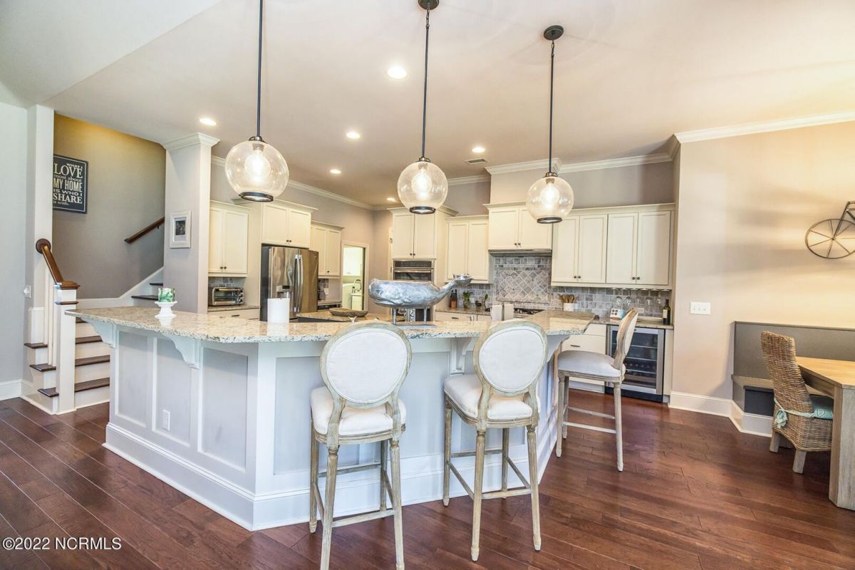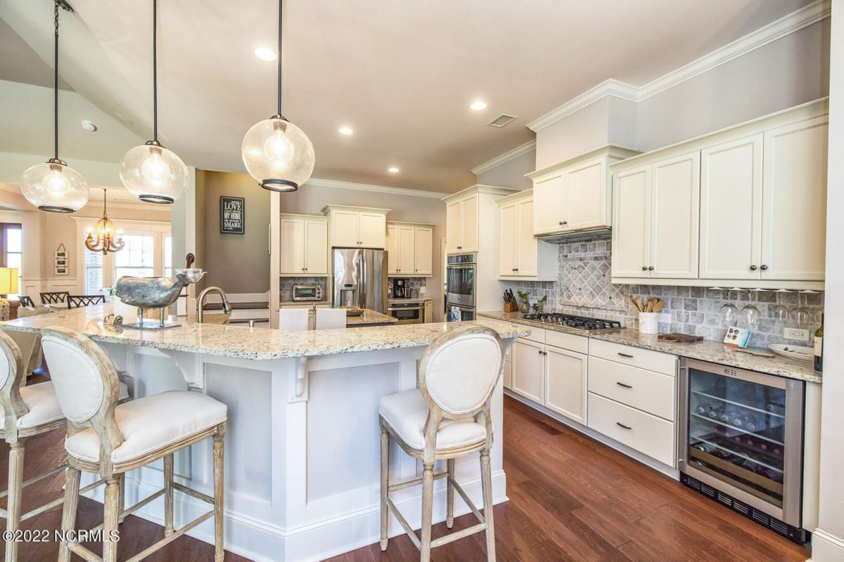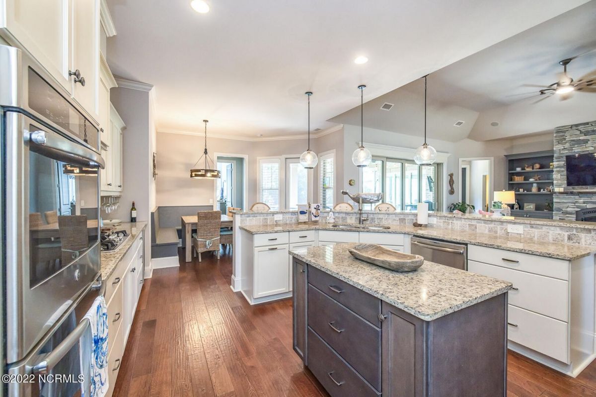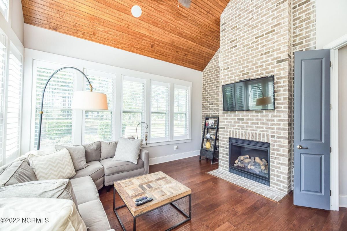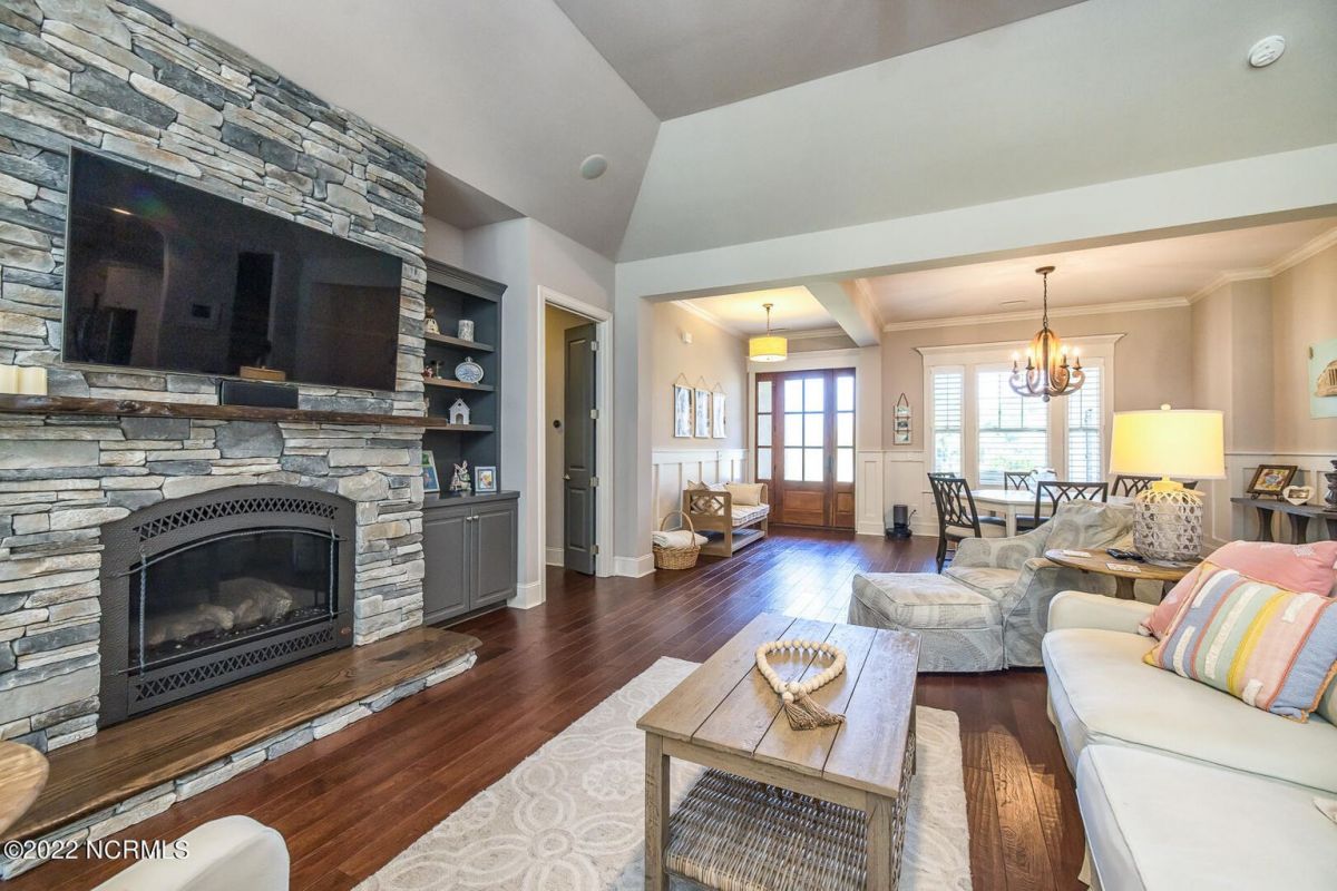 Absolutely Amazing like new, brick home in Compass Pointe! You will be in love with everything about the inside and outside of this home! The inside of the home is breathtaking when you walk in! Large foyer that opens to the living room, formal dining room, kitchen and large breakfast area. You will also see the amazing lanai/screened-in-porch off the living room that is very spacious and comfortable with an outdoor grill and refrigerator. The kitchen has granite countertops, a very large island perfect for entertaining, two convection ovens, gas cooktop, two pantries and stainless-steel appliances. The living room is very open and has a beautiful fireplace with built-in bookshelves. Directly off the living room is an amazing den with another fireplace that overlooks the lush backyard. The master bedroom is downstairs as well as 2 other spacious bedrooms. The master bedroom has plenty of windows, his/her vanities and a closet to die for! Bedroom 2 and Bedroom 3 are also downstairs and have their own private bath. Laundry room downstairs as well. Upstairs offers all kinds of options! Finished room over garage, full bathroom and another flex room to use however you desire. Nice walk-in storage area too! Outside you have a 4 car garage that is immaculate. It is wired for an electric car (240V, 50 amp breaker) and wired for a whole house generator (current generator does not remain). It also has a climate controlled storage room! Two, 14 seer HVAC units. The lot is located on a cul-de-sac and is over ½ acre (.59 acres), fully and maturely landscaped with part of it being fenced in. In the backyard the lot extends past the fence to a pond that is on part of the property. The irrigation for the yard is included with the HOA dues. The location is very close to the golf course clubhouse and not far from the neighborhood pool and clubhouse! As the website for Compass Pointe explains, this neighborhood offers life as an endless vacation. Great weather to enjoy golf on a private, championship course, kayak in scenic marshes, float down a lazy river, enjoy the amazing outdoor pool or indoor pool and clubhouse, take advantage of the miles of walking trails. If you need to rejuvenate you can head to the Fitness/wellness center to exercise or enjoy the sauna or steam room. Several nearby beaches available too! Compass Pointe is a bragworthy and beautiful gated community in idyllic Southeastern North Carolina with every day being a getaway!