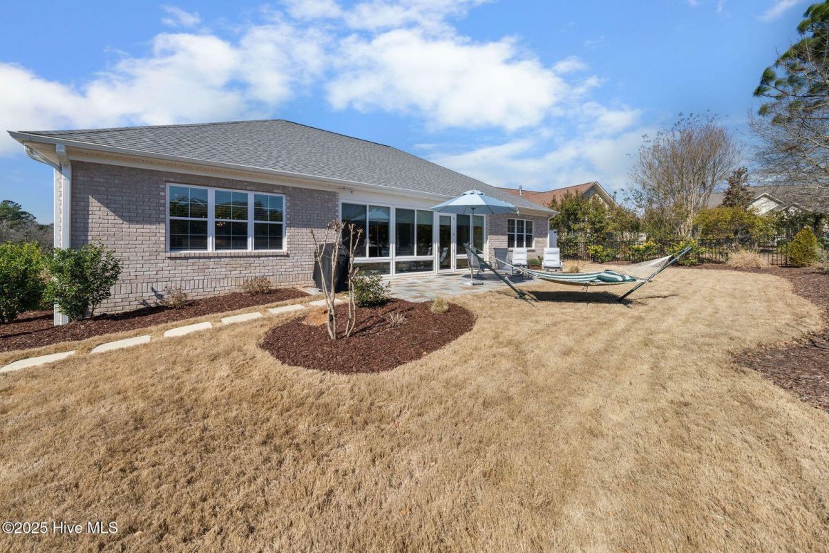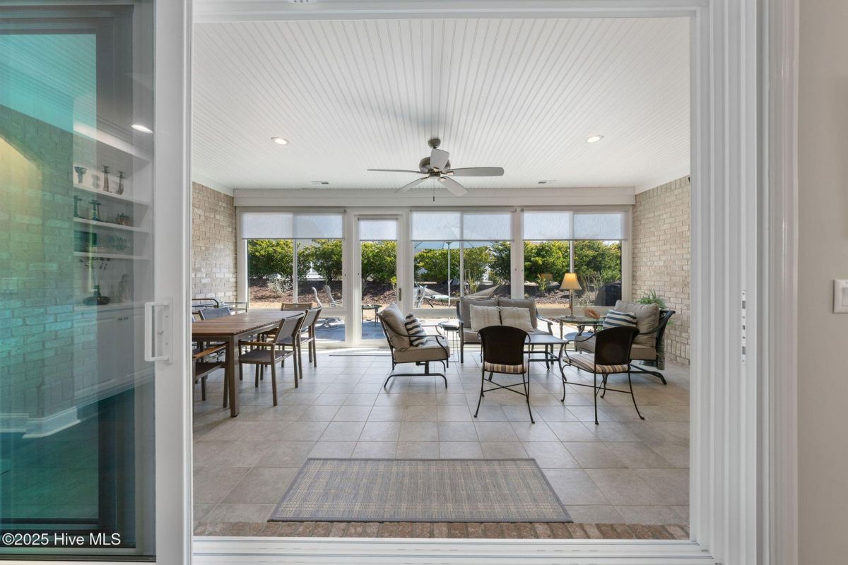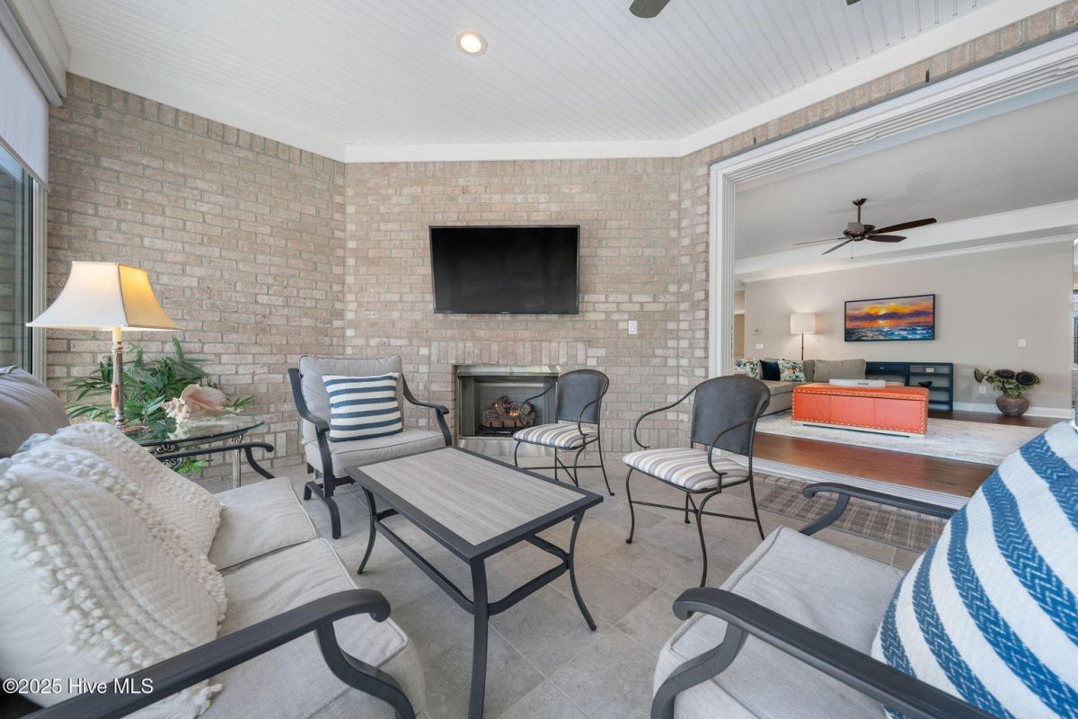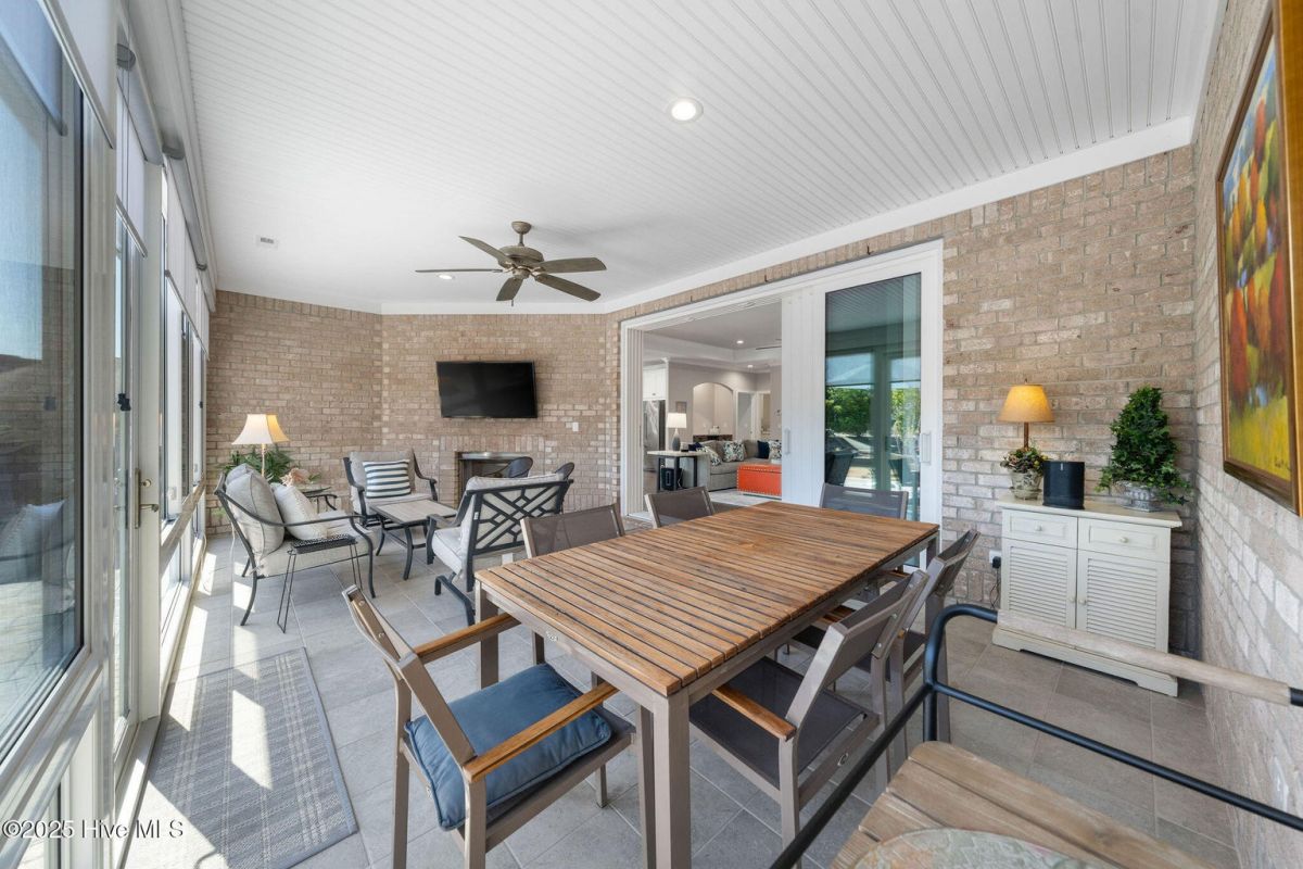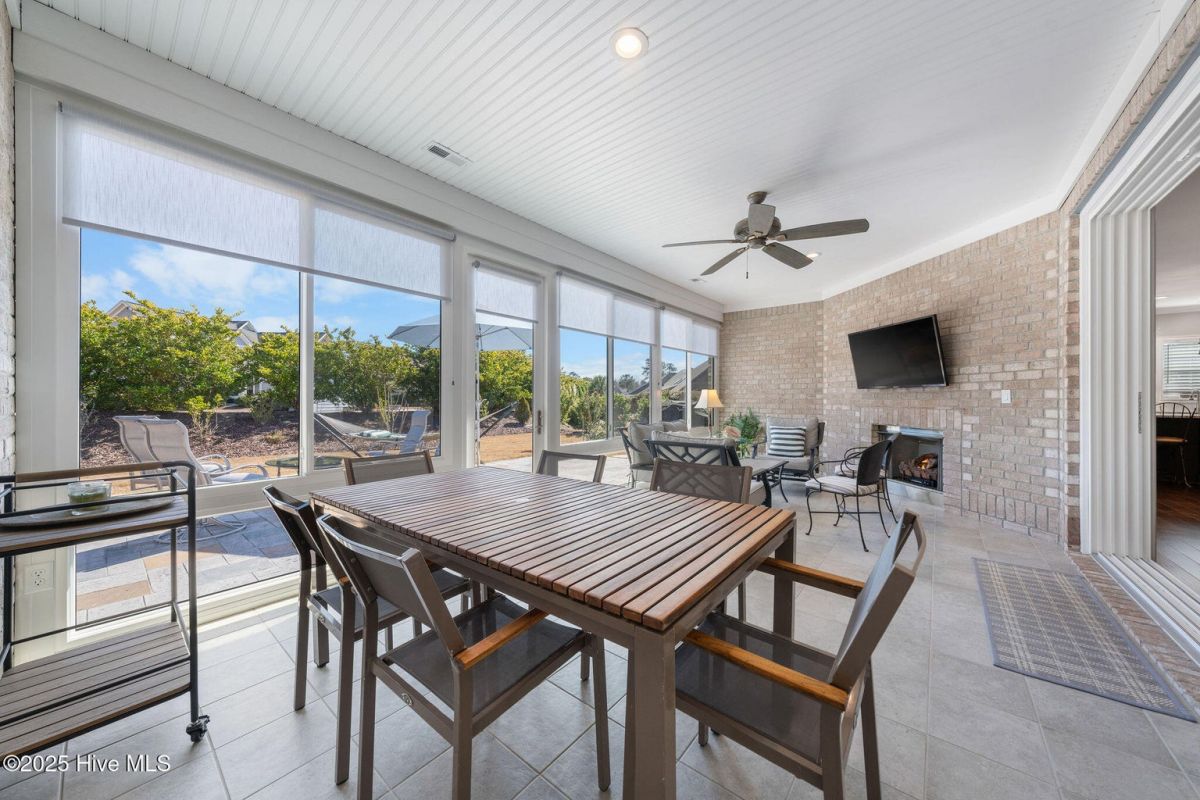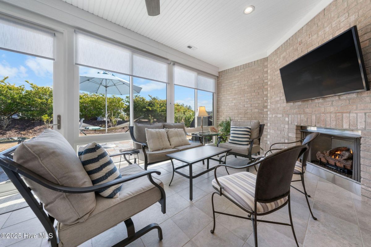 Exquisite Coastal Luxury Home - A Masterpiece of Design & Comfort! Step into luxury with this stunning home built by Coastal Luxury Homes, where elegance meets functionality. As you enter, a spacious study/flex room welcomes you with beautiful double glass doors, filling the space with natural light. The open-concept floor plan boasts tray ceilings, a designated wine bar, built in shelving and cabinets and seamless indoor-outdoor living with large telescoping doors leading to a fully enclosed lanai—complete with a cozy fireplace for relaxing. The chef's kitchen is a dream, featuring a large island with a separate prep sink. A true double oven, a gas stove with a vented hood, and sleek stainless steel appliances are just a few of the luxuries this kitchen has to offer. A spacious dining area offers ample room for entertaining. The primary suite is a serene retreat, highlighted by abundant natural light, dual walk-in closets, and a spa-like bath with an expansive walk-in shower, double vanity, and generous cabinet storage. Two additional guest bedrooms provide comfort and style—one featuring built-in shelving—along with a beautifully tiled guest bath. Step outside to a private oasis, where a beautifully designed patio and an outdoor shower enhance your experience of coastal living. Every detail of this home has been thoughtfully designed for effortless luxury. Don't miss your chance to own this extraordinary property! The long mirror in the bathroom, the Sonos sound bar(and mount), all TV's and the blinds in the primary bedroom DO NOT convey with the home.