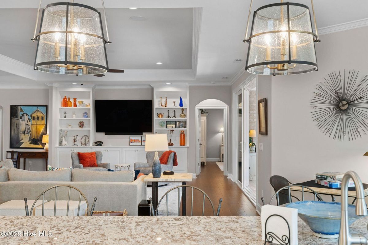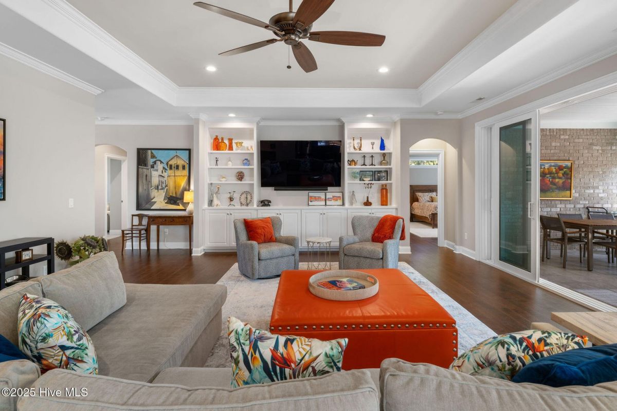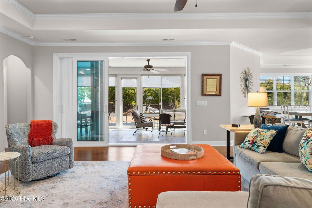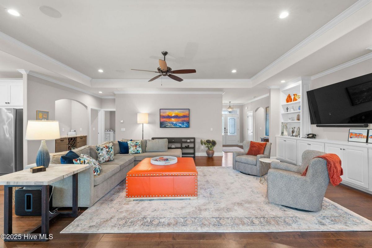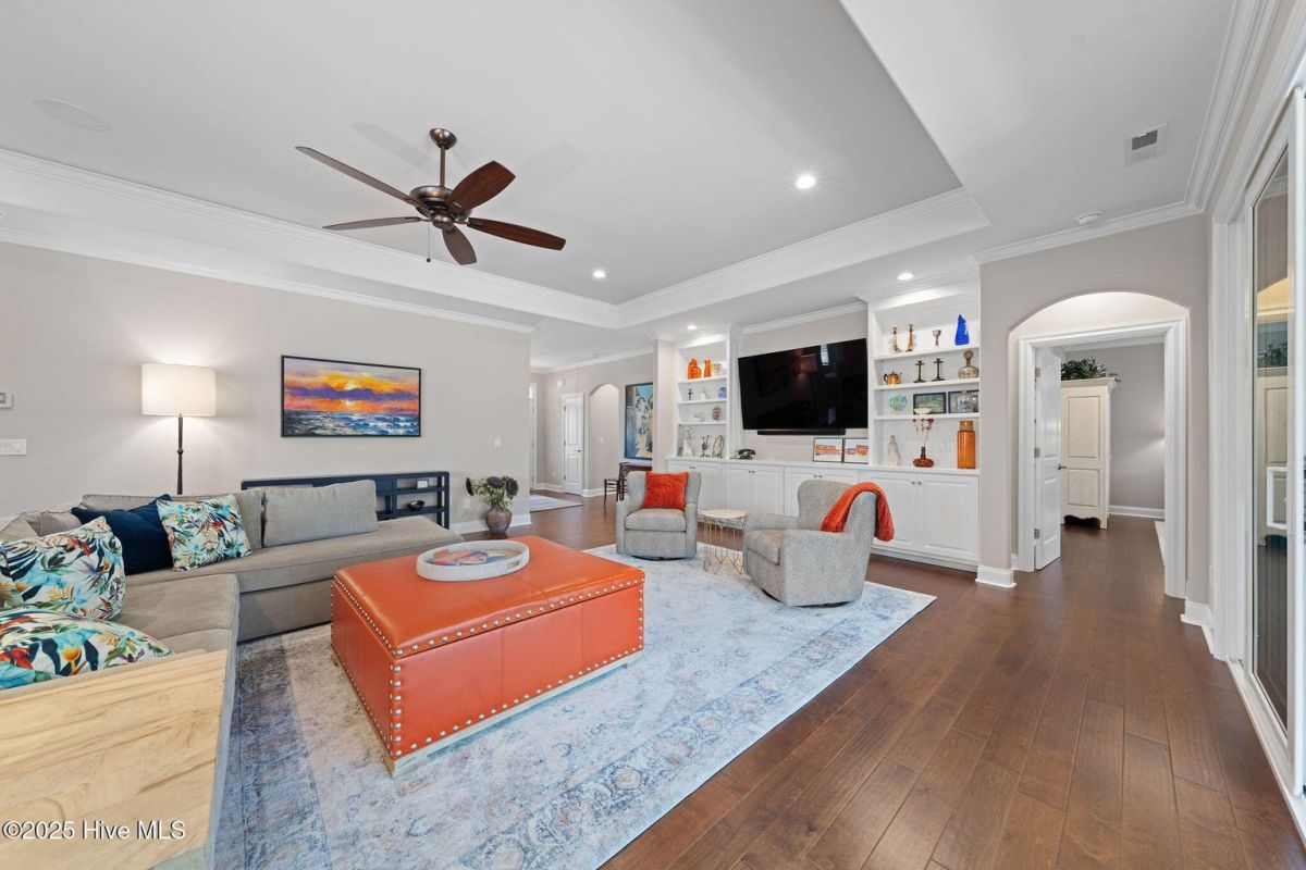 Exquisite Coastal Luxury Home - A Masterpiece of Design & Comfort! Step into luxury with this stunning home built by Coastal Luxury Homes, where elegance meets functionality. As you enter, a spacious study/flex room welcomes you with beautiful double glass doors, filling the space with natural light. The open-concept floor plan boasts tray ceilings, a designated wine bar, built in shelving and cabinets and seamless indoor-outdoor living with large telescoping doors leading to a fully enclosed lanai—complete with a cozy fireplace for relaxing. The chef's kitchen is a dream, featuring a large island with a separate prep sink. A true double oven, a gas stove with a vented hood, and sleek stainless steel appliances are just a few of the luxuries this kitchen has to offer. A spacious dining area offers ample room for entertaining. The primary suite is a serene retreat, highlighted by abundant natural light, dual walk-in closets, and a spa-like bath with an expansive walk-in shower, double vanity, and generous cabinet storage. Two additional guest bedrooms provide comfort and style—one featuring built-in shelving—along with a beautifully tiled guest bath. Step outside to a private oasis, where a beautifully designed patio and an outdoor shower enhance your experience of coastal living. Every detail of this home has been thoughtfully designed for effortless luxury. Don't miss your chance to own this extraordinary property! The long mirror in the bathroom, the Sonos sound bar(and mount), all TV's and the blinds in the primary bedroom DO NOT convey with the home.