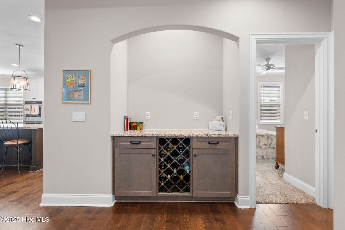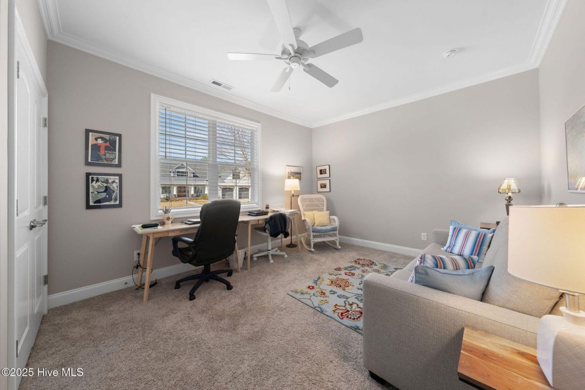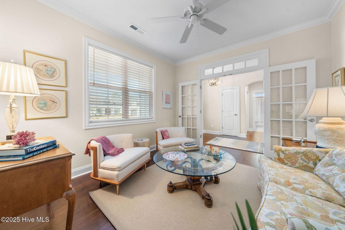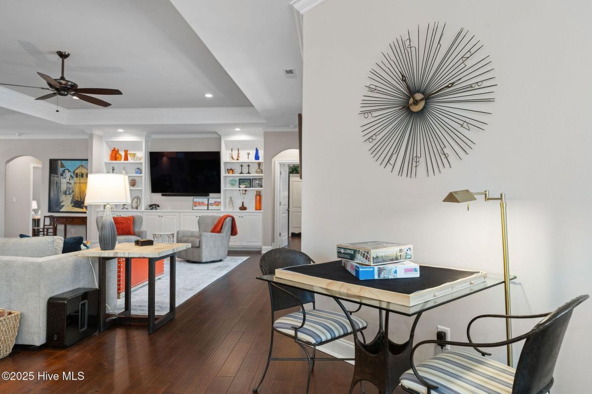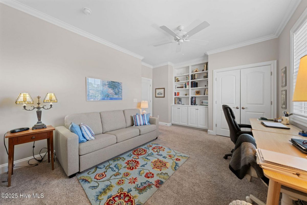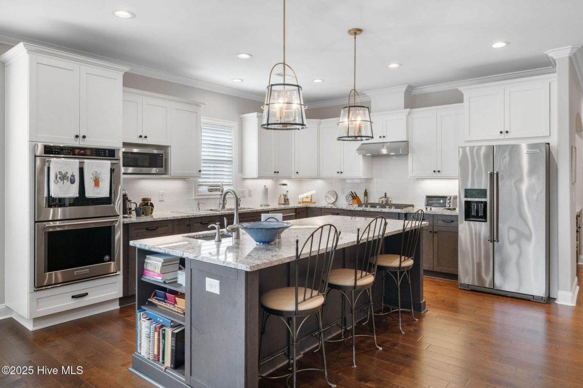 Exquisite Coastal Luxury Home - A Masterpiece of Design & Comfort! Step into luxury with this stunning home built by Coastal Luxury Homes, where elegance meets functionality. As you enter, a spacious study/flex room welcomes you with beautiful double glass doors, filling the space with natural light. The open-concept floor plan boasts tray ceilings, a designated wine bar, built in shelving and cabinets and seamless indoor-outdoor living with large telescoping doors leading to a fully enclosed lanai—complete with a cozy fireplace for relaxing. The chef's kitchen is a dream, featuring a large island with a separate prep sink. A true double oven, a gas stove with a vented hood, and sleek stainless steel appliances are just a few of the luxuries this kitchen has to offer. A spacious dining area offers ample room for entertaining. The primary suite is a serene retreat, highlighted by abundant natural light, dual walk-in closets, and a spa-like bath with an expansive walk-in shower, double vanity, and generous cabinet storage. Two additional guest bedrooms provide comfort and style—one featuring built-in shelving—along with a beautifully tiled guest bath. Step outside to a private oasis, where a beautifully designed patio and an outdoor shower enhance your experience of coastal living. Every detail of this home has been thoughtfully designed for effortless luxury. Don't miss your chance to own this extraordinary property! The long mirror in the bathroom, the Sonos sound bar(and mount), all TV's and the blinds in the primary bedroom DO NOT convey with the home.