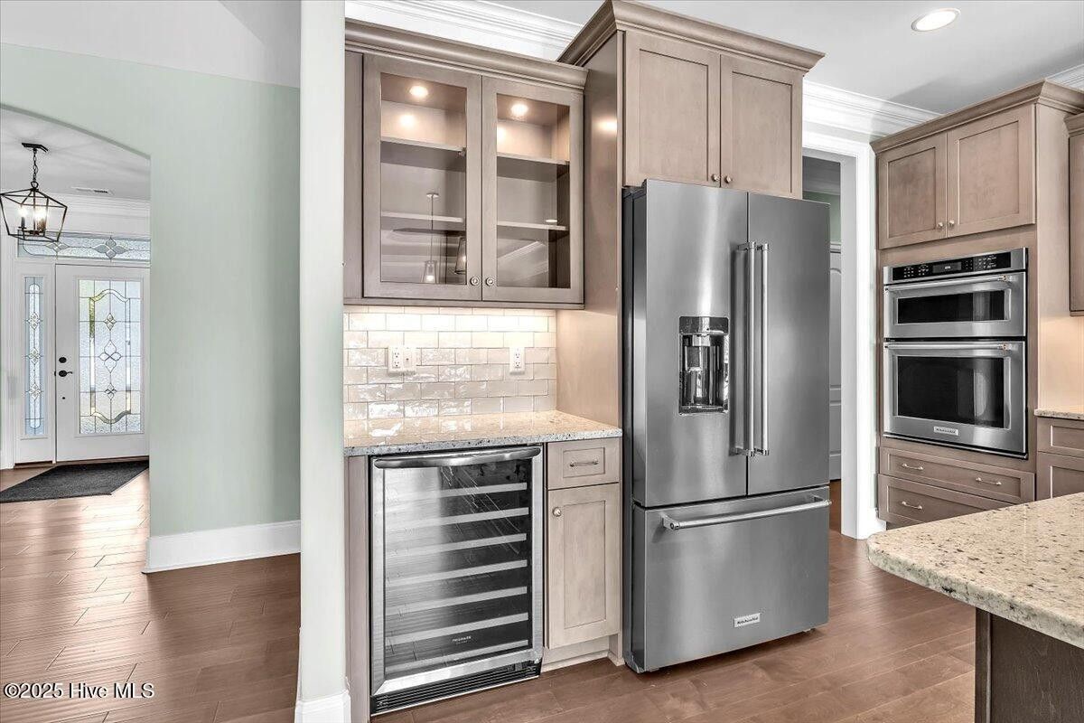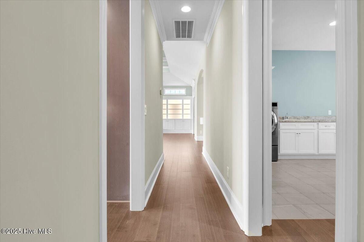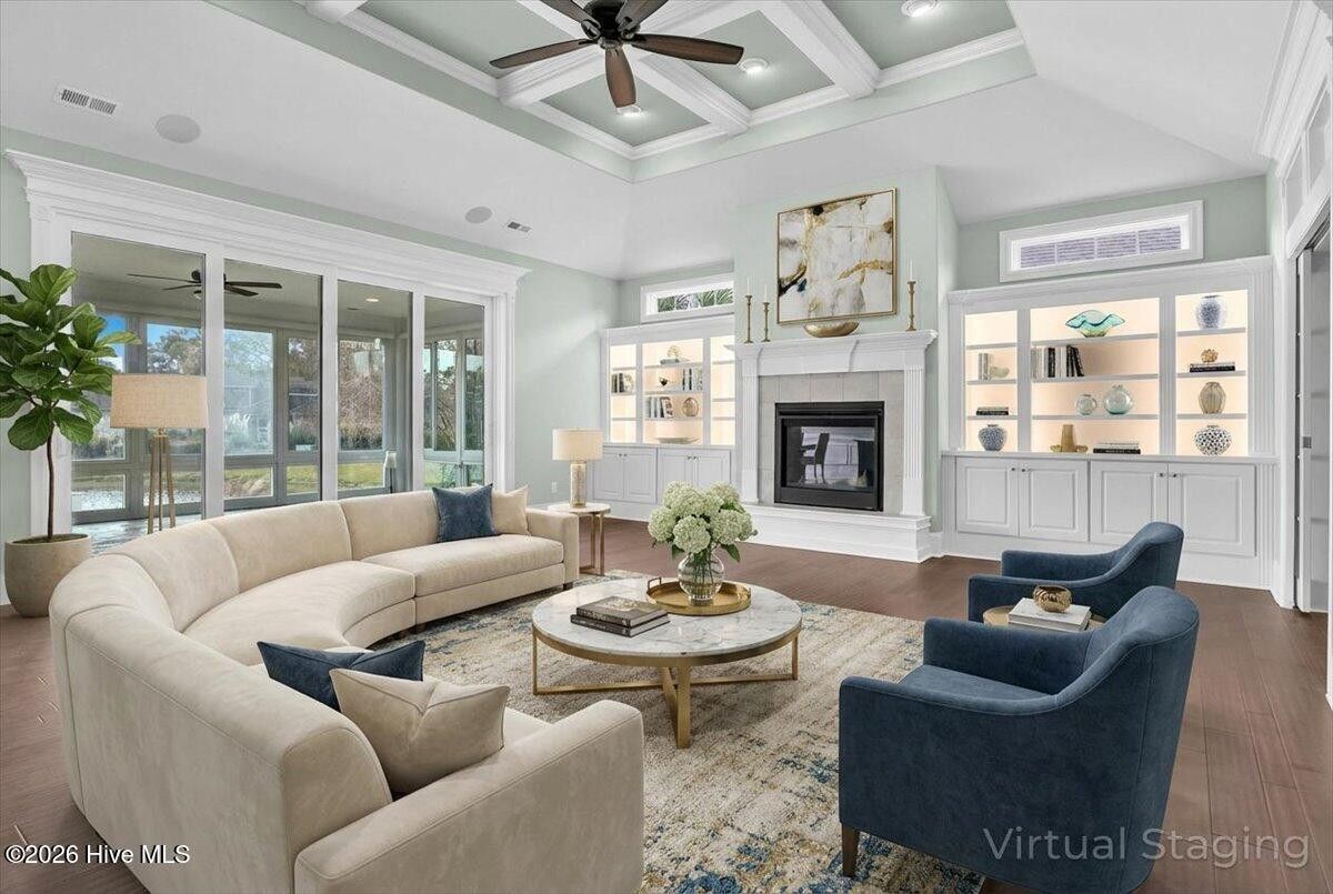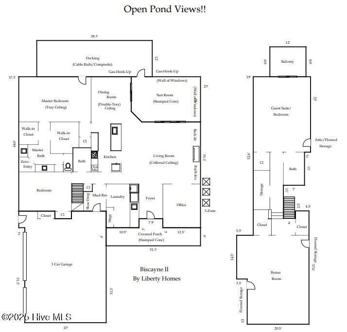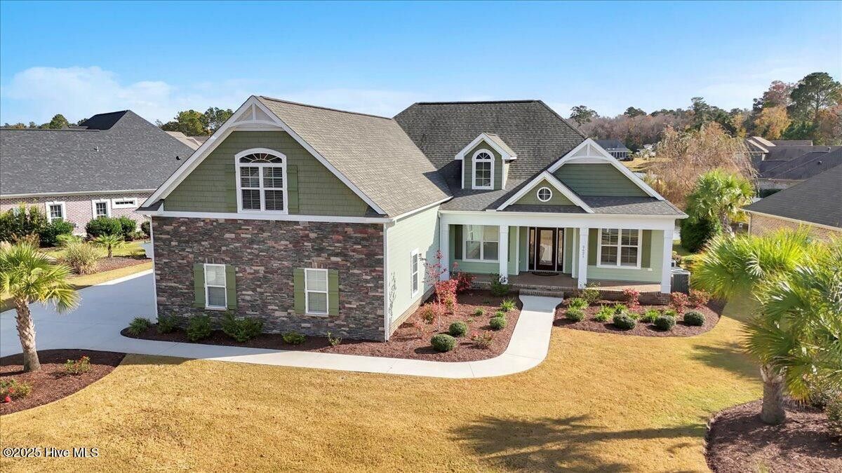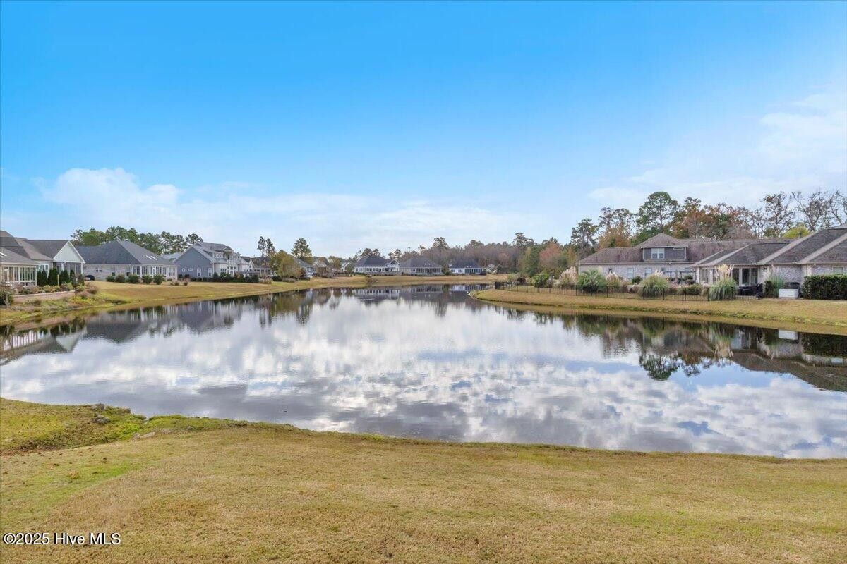 Experience refined coastal living in this luxury Liberty-built home, never before occupied, showcasing tranquil open pond views and set on a peaceful street with no outlet. Completed in 2020, this stunning residence exemplifies elegance and craftsmanship within the sought-after, gated community of Compass Pointe—home to the Rick Robbins Championship Golf Course. The popular Biscayne II floor plan captivates with a striking stacked stone exterior, beautiful elevation, and an inviting three-car garage enhanced by an arbor. Designed for both comfort and style, this home offers the perfect blend of modern sophistication and timeless Low Country charm. Step through the grand foyer into an open-concept living space graced with coffered and tray ceilings, arched door casings, theater-lit built-ins, a fireplace, and expansive telescoping sliding doors that invite natural light and picturesque pond views. The heart of the home is the chef's kitchen featuring granite countertops, a five-burner propane range, stainless steel KitchenAid appliances, and a beverage cooler—all seamlessly connecting to the living and dining areas. The 340 sq/ft temperature controlled lanai with remote shades and the 460 sq/ft deck extend the living space outdoors, ideal for entertaining or quiet evenings by the water. The luxurious 360 sq/ft primary suite overlooks the pond and includes a spa-inspired bath with zero-entry rain shower, split granite vanities, and dual walk-in closets. The first floor also includes a front facing office, tiled guest bath, mudroom/shoe-drop, and expansive laundry area, while upstairs you'll find an additional ensuite bedroom with a private balcony and a large bonus room perfect for gaming or recreation. Every detail of this well-appointed home reflects thoughtful design and superior quality, from hardwood and tile flooring to plantation blinds, built-in speakers, and a 3-zone HVAC system. The exterior offers inviting spaces to relax and enjoy, including a stamped concrete front porch and propane line for outdoor cooking. Residents of Compass Pointe enjoy an unparalleled lifestyle with resort-style amenities - take a stroll across the scenic pedestrian bridge to the Grand Lanai Amenity Center or enjoy the pools, lazy river, tennis and pickleball courts, fitness center, restaurant, vibrant social events, and miles of walking trails. Conveniently located to area shopping, medical, area golf courses and just 30 minutes to Wrightsville Beach and 15 minutes to historic downtown Wilmington, this exceptional home captures the essence of luxury coastal living - where every day feels like a getaway. The sellers have opted to complete their own home inspection for peace of mind. To discover all this remarkable property offers, please request a full list of features from the listing agent.