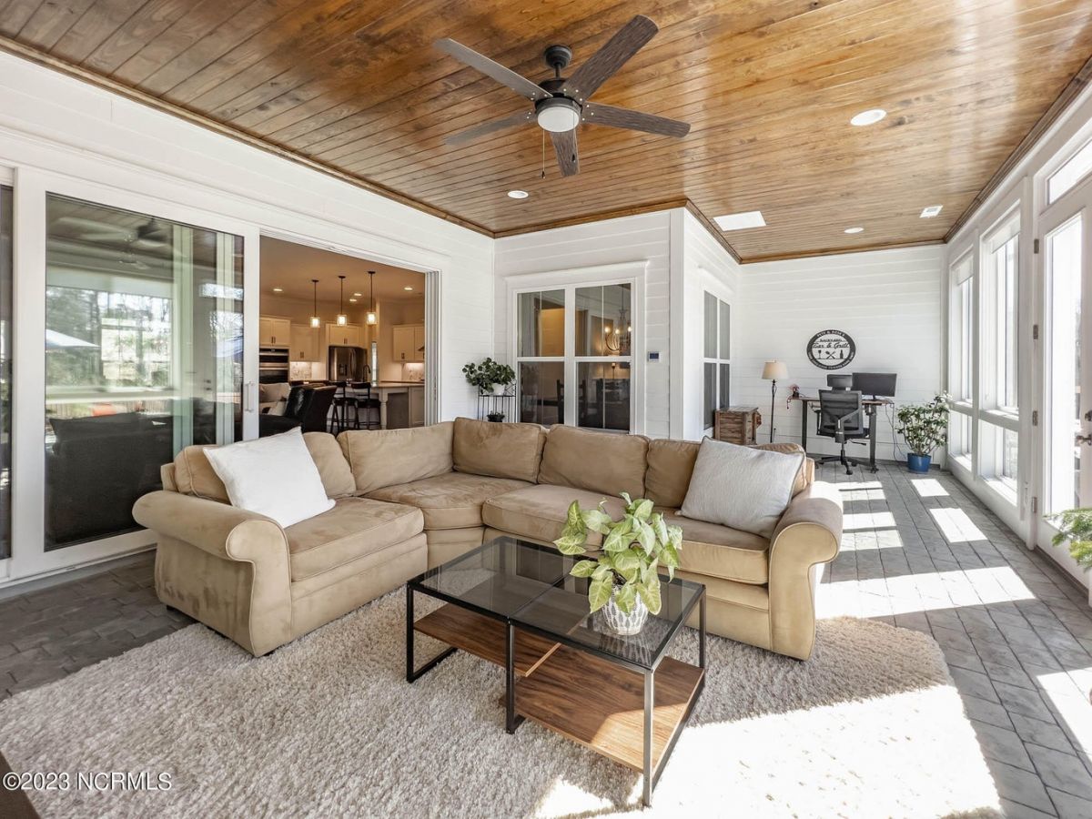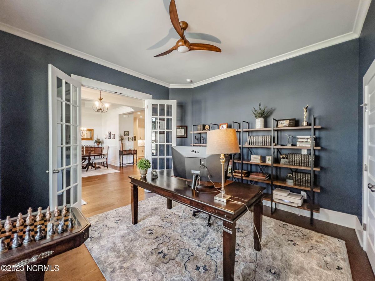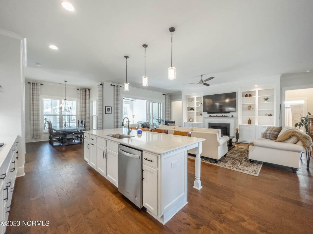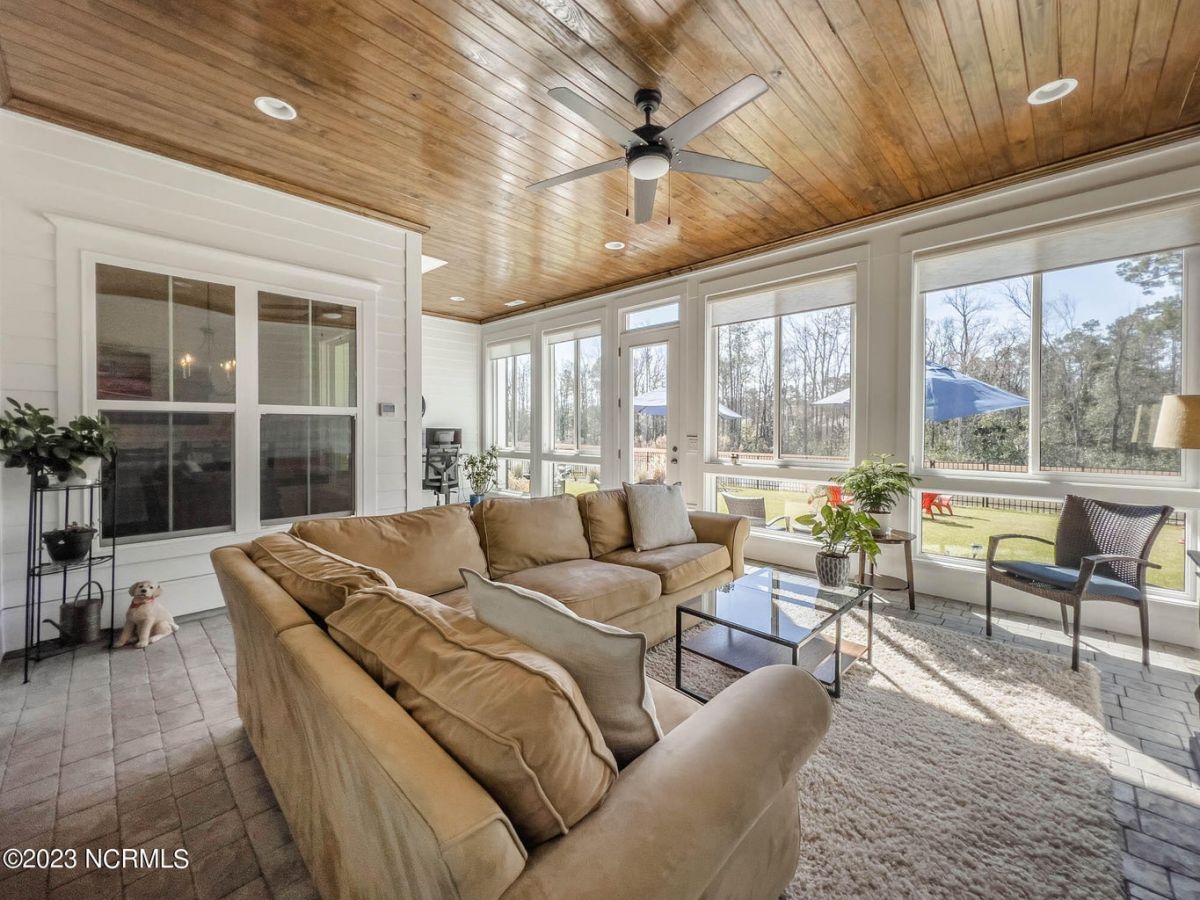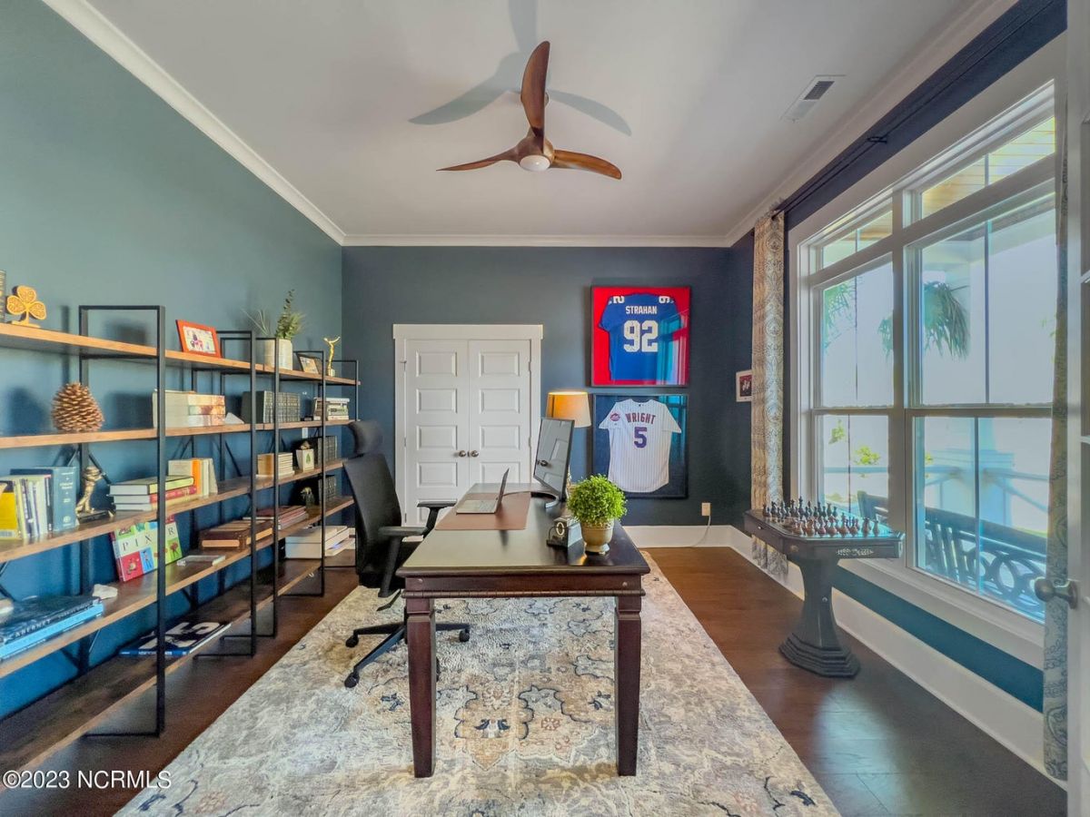 This Logan Homes Sapphire Model with water and nature views is located in the Timber Ridge neighborhood of Compass Pointe. The floor plan is spacious and includes a large sunroom and plenty of storage. Enter the front door from the sitting front porch to the large entryway overlooking formal dining and living areas. Engineered hardwood flooring throughout the first-floor living, kitchen, dining and office areas. Kitchen features Quartz countertops, textured Carrara marble backsplash, large island, gas cook top and a breakfast nook. The living area has built-ins and slider doors out to the sunroom. Master bedroom features three walk-in closets and an additional closet. Two additional bedrooms, and an office downstairs. The 2nd floor has a bonus room, guest bedroom with walk-in closet, full bath, covered outdoor porch with wood ceiling, and expansive amount of storage space. Additional features include shades in the downstairs bedrooms and across the entire sunroom, Culligan Aqua Clear filtration installed on kitchen sink and refrigerator water/ice dispenser, wash tub sink and additional cabinets in the laundry room. The back yard overlooks a pond and includes a patio and an aluminum fence with gates. Amenities included in the association dues are grand lanai clubhouse, fitness center, lazy river, outdoor and indoor pools, and tennis and pickleball courts. Make an appointment to show your clients today!
