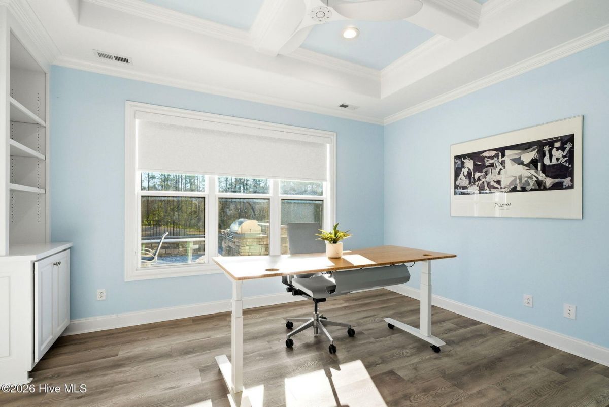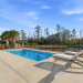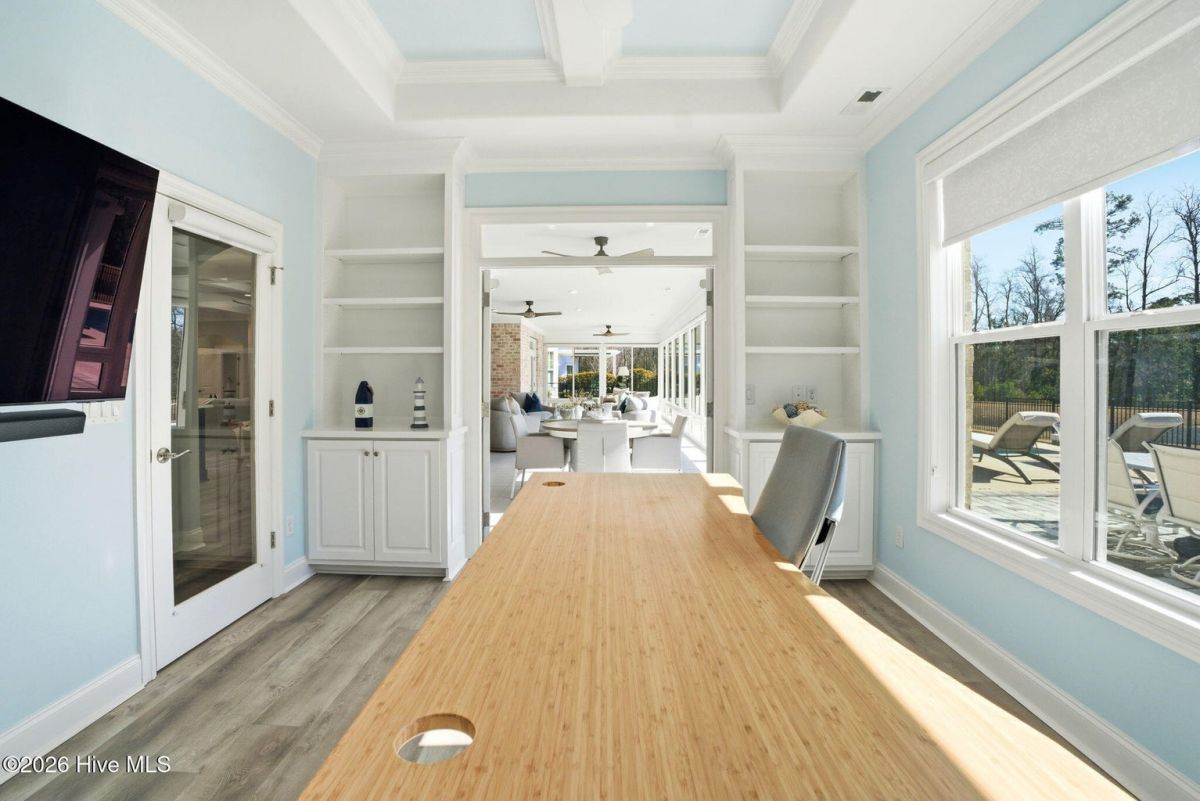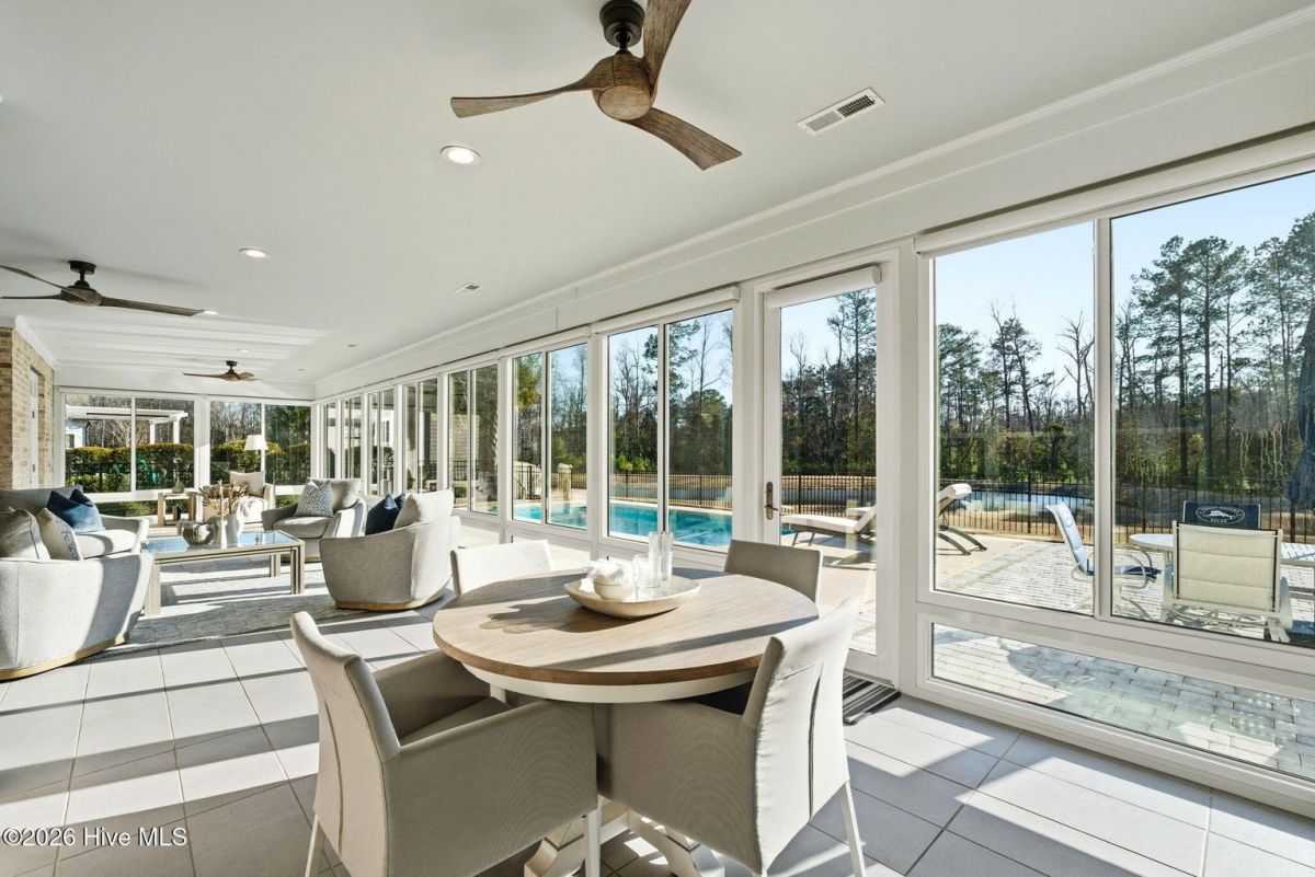 One of the most distinctive pond and conservation homesites in Compass Pointe's Timber Ridge enclave, this exceptional custom home by Coastal Luxury Homes showcases rare natural views, refined craftsmanship, and a seamless connection to outdoor living. From the moment you enter, open living spaces draw your eye toward the lanai and peaceful natural backdrop, creating an immediate sense of comfort and connection to nature. A signature highlight is the over 700 sq ft glass-enclosed, climate-controlled lanai, designed for year-round indoor-outdoor living.Beyond, the private outdoor retreat unfolds with a saltwater pool, fire pit, grill island, and fenced yard overlooking protected natural views. Spanning 4,180 sq ft, the split layout places the primary suite in its own private wing. Wake to serene views and step directly onto the lanai through French doors. A tray ceiling, custom walk-in closets, and spa-inspired bath with soaking tub, frameless shower, and dual quartz vanities complete the suite.Two guest bedrooms on the opposite side offer privacy, while a study and bonus suite provide flexible space. At the heart of the home, the gourmet kitchen features a Wolf rangetop, Zephyr hood, Bosch refrigerator, wine cooler, quartz surfaces and upgraded cabinetry, ideal for everyday living and entertaining. Architectural ceilings, custom built-ins, upgraded flooring, Hubbardton Forge lighting fixtures, and a fireplace with floor-to-ceiling Realstone surround add warmth and character. Premium enhancements include a whole-house generator, tankless water heater, Nest thermostats, EV charger, structured wiring, epoxy garage flooring, and golf cart garage. A 2023 Club Car Onward lithium-ion golf cart is negotiable. A rare opportunity to own a fully realized custom home in Compass Pointe, where resort amenities, thoughtful design, premium finishes, and an extraordinary homesite create an elevated living experience.