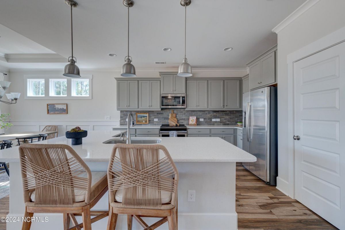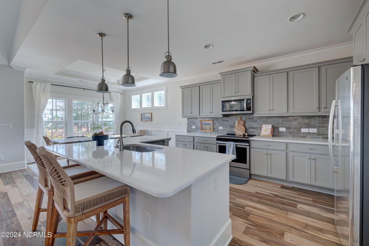 This Logan Homes built Shoal Model is located in the Timber Ridge Section of Compass Pointe. It has over 2,800 SF of living space as well as floored attic space for storage. There are three bedrooms and three full baths, office and large flex room that can be used as an additional bedroom or den. The spacious, open floor plan is perfect for entertaining family and friends. There is an inviting front porch with a courtyard entrance and two car garage. The screen porch overlooks a fenced in back yard perfect for your pup. Come see this gem before it is sold!