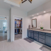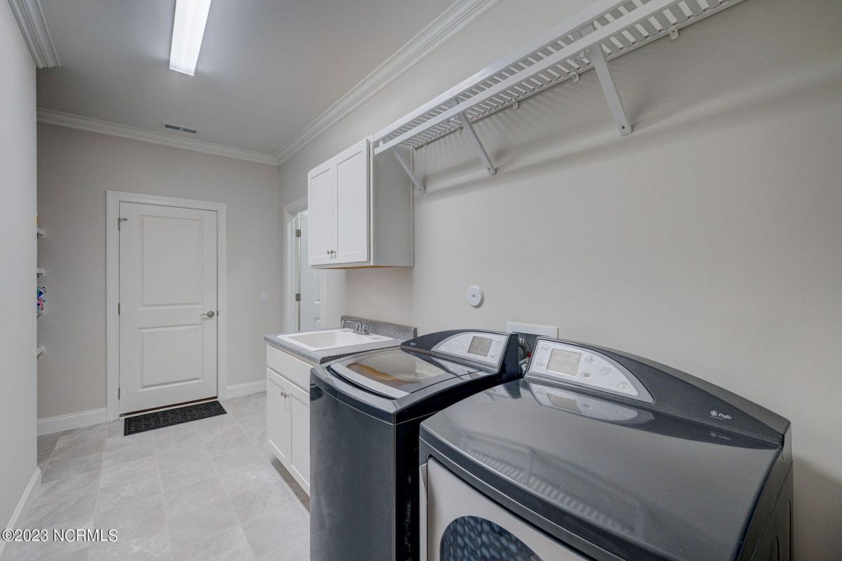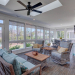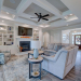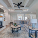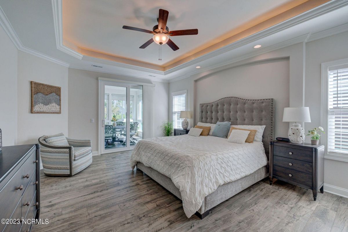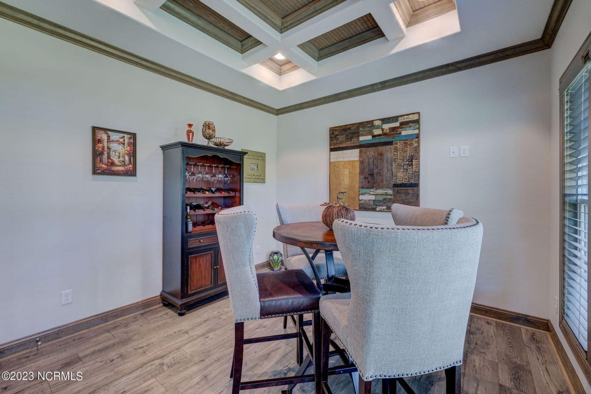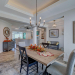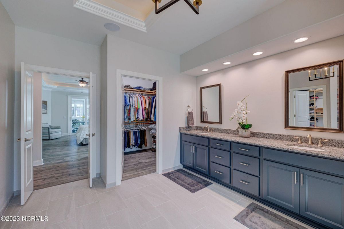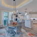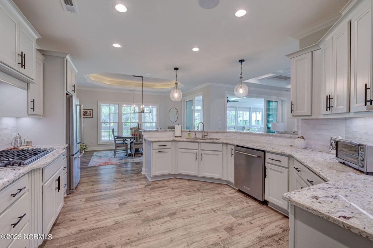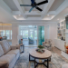 This like new move-in read Trusst built Trinity I home located in the new Timber Ridge section of Compass Pointe is a single level plan featuring three bedrooms, two and half baths, living room, formal dining room plus kitchen eating area, a beautiful den, large laundry room and a fabulous sunroom across most of the back of the home. It boasts quality construction with all (white) brick (quoined corners and other detail) with composite hardy board material accents in a coastal blue hue with large paver front porch lets you enjoy evening sunsets or a morning coffee. The front yard has extensive upgraded landscaping (note size of palms and other plants) with professional up lighting on palms and Japanese maple in front of home and zoned irrigation system. Exterior recessed ''down lighting'' in soffit across front and rear of home, above garage doors and on front porch make for a beautiful nighttime appearance. Fenced in back yard has been ''floated'' in which creates a grass ''perimeter of sorts''. Neighboring fences are both on property line and surveyor indicates this yard can accommodate a pool (subject to MOA approval). Huge side entry oversized three car garage. Features include three individual 9' wide doors (builder standard garage is a single 16' wide door) lots of room even with three cars inside. Fully painted and finished with epoxy floor, five windows and Minka ceiling fans for a cool breeze. Extra outlets added throughout including proper dedicated outlet for a refrigerator and one for a high wall mounted TV (also a cable jack), and an extra garden hose spigot. The heavy duty pull stairs in the garage provides convenient access to very large lighted attic storage area with flooring added above much of home. Beautiful accent ceilings throughout - including coffered ceilings in living room and den; dining room, eating area, primary bedroom and primary bath all feature lighted tray ceilings, entry way includes a tongue and groove accent ceiling. Custom built-in cabinets flank the beautiful, raised fireplace and extensive wood trim, crown molding throughout including all bedrooms and laundry room. See Features in the document section to see more details about this fabulous home!