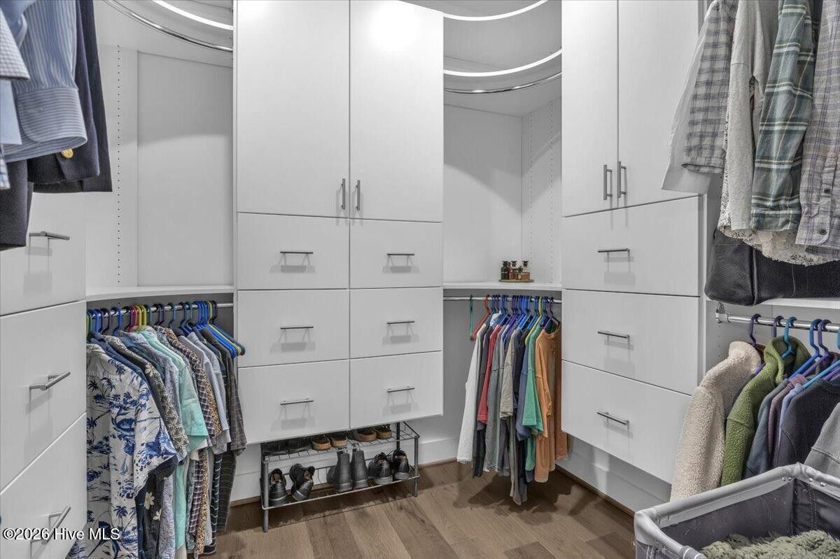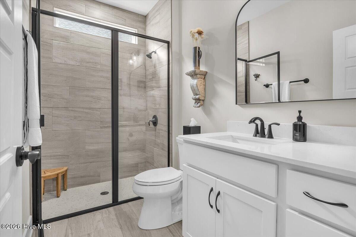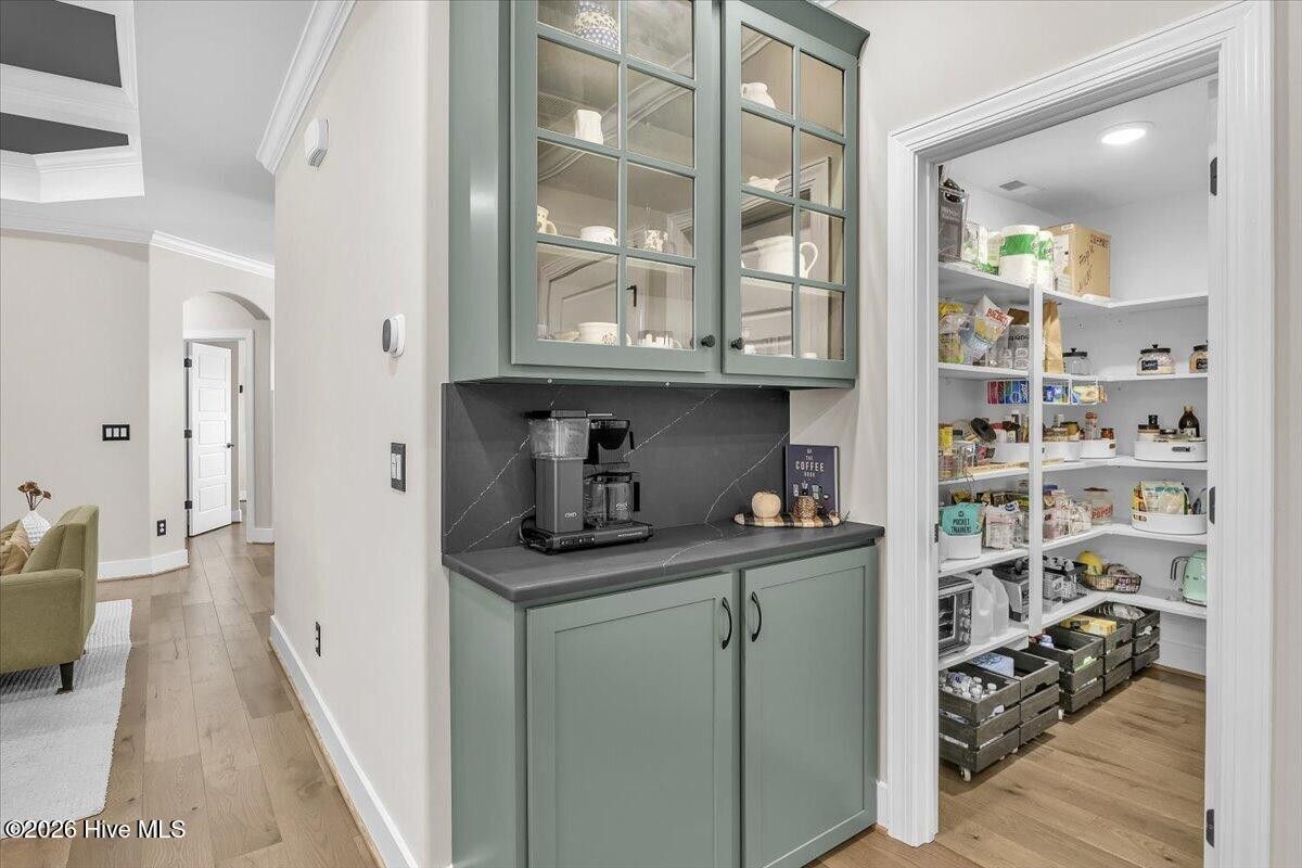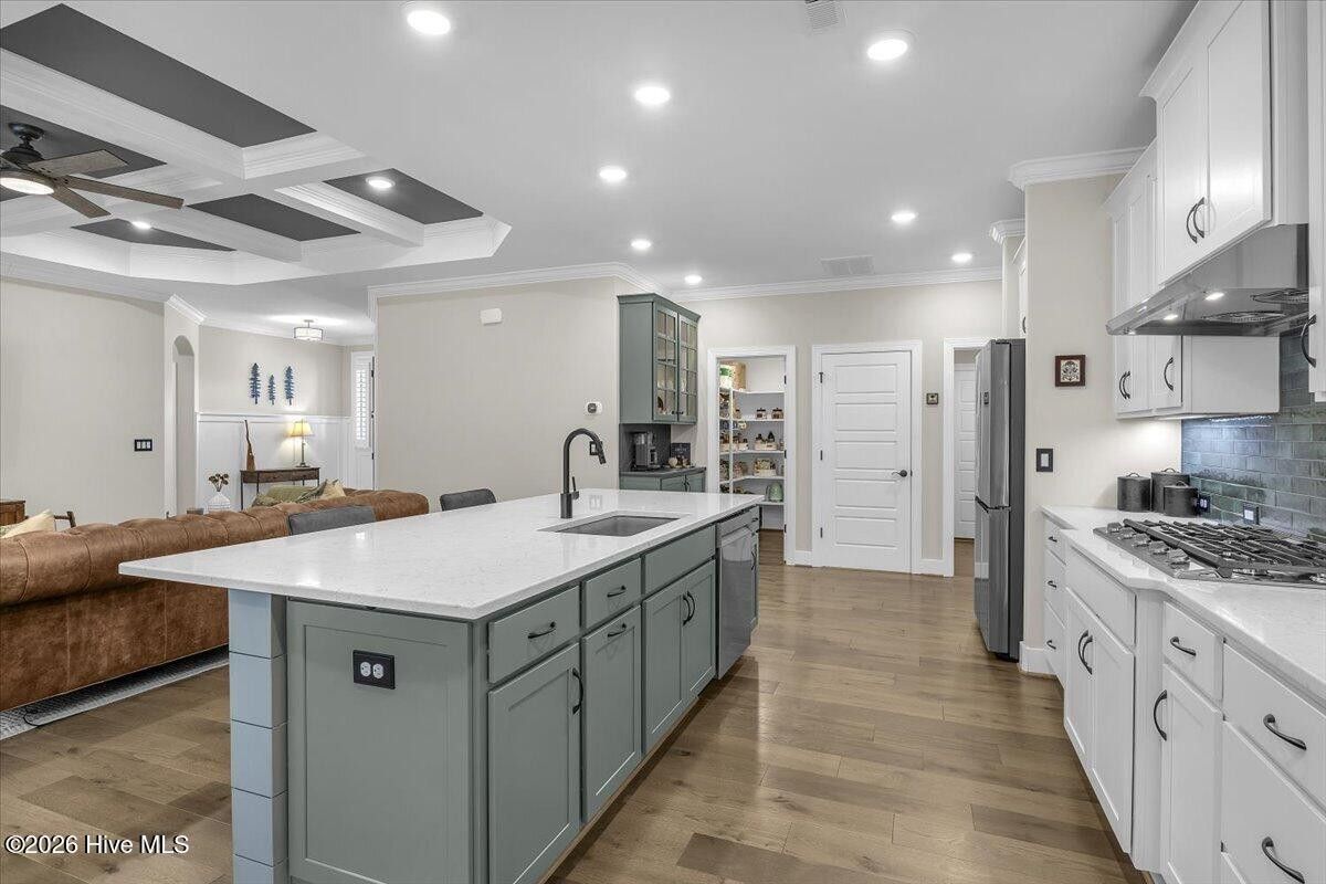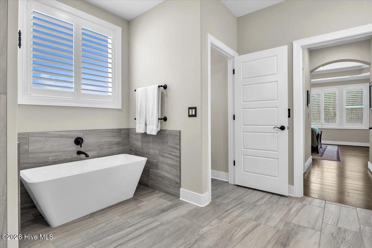 Located on a quiet nature preserve homesite in Compass Pointe, this beautifully crafted 2025 Kent Homes residence offers exceptional privacy, thoughtful design, and effortless one-level living. The appealing elevation features a covered front porch and a highly desirable 2.5-car front-inside entry garage, blending curb appeal with everyday functionality. Inside, the open-concept layout spans 2,266 square feet and is designed for comfort and flow. The welcoming foyer opens to a forward-facing private office with French doors, leading into the living room, expansive kitchen, and dining area—ideal for both entertaining and daily living. A split floor plan provides privacy for guests and owners alike. The spacious primary suite features a walk-in closet with custom built-ins and a spa-inspired bath with dual vanities, freestanding soaking tub, tiled walk-in shower, water closet, and custom slide-out storage. The laundry room is conveniently located just off the primary suite. Two additional bedrooms, a tiled walk-in guest shower, powder room, and abundant floored storage—including an unfinished bonus room—add to the home's exceptional livability. Interior highlights include LVP flooring throughout (no carpet), quartz countertops, an oversized island, custom soft-close cabinetry, stainless steel appliances, Zephyr hood, 5-burner range, coffered ceilings, crown molding, pocket doors, and plantation blinds. Outdoor living shines with an oversized screened porch and stamped concrete patio overlooking the preserve, offering a peaceful backdrop for entertaining or quiet evenings. A black aluminum fenced yard with dog-friendly screening and a paver walkway leading to a private firepit patio complete the setting. Compass Pointe residents enjoy resort-style amenities including the Grand Lanai Amenity Center, pools, lazy river, fitness center, tennis and pickleball courts, on-site dining, scenic trails, and access to the Rick Robbins Championship 18-hole golf course (memberships available). Gated and conveniently located near shopping, medical facilities, golf, historic downtown Wilmington (15 minutes), and Wrightsville Beach (30 minutes), this home captures the essence of luxury coastal livingwhere every day feels like a getaway.