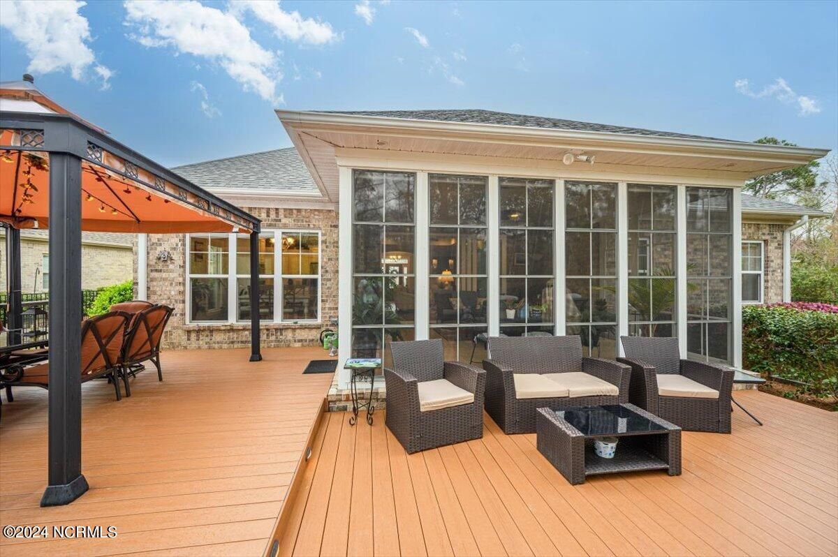 Welcome to your dream home! This stunning 4-bedroom, 3-bathroom residence offers the perfect blend of luxury, comfort, and natural beauty.Located in the sought after Compass Pointe neighborhood, this open-plan home boasts breathtaking views of a nature preserve and tranquil pond from its expansive 4-season lanai. As you step inside, you'll be greeted by the spacious living area featuring built-in bookcases, perfect for showcasing your literary collection or cherished mementos. The kitchen is a chef's delight, equipped with modern appliances, ample granite counter space, and a convenient breakfast bar for casual dining. The highlights of this home is undoubtedly its 4 season lanai & the 630-square-foot, 2-level deck, ideal for entertaining guests or simply unwinding while enjoying the picturesque surroundings. Whether you're hosting a barbecue or sipping your morning coffee, this outdoor oasis is sure to impress. Forget about yard work and irrigation hassles, as both are conveniently included in the HOA fees, allowing you to spend more time enjoying the things you love. Additional features of this home include: Four spacious bedrooms, including a luxurious master suite Three full bathrooms, elegantly appointed with modern fixtures and finishes. A separate laundry room for added convenience. A two-car garage provides ample storage space for your vehicles and outdoor gear. Fenced in backyard Outdoor fire pit This home offers the perfect combination of privacy and convenience. Don't miss your chance to make this exquisite property your own—schedule a showing today and prepare to fall in love!