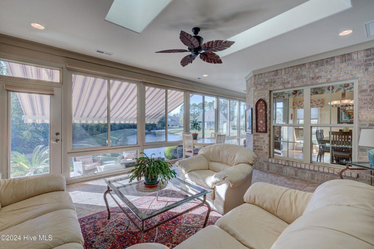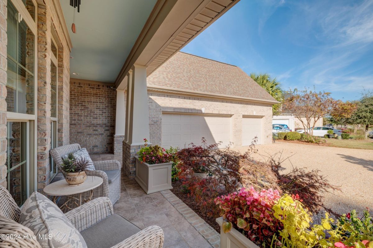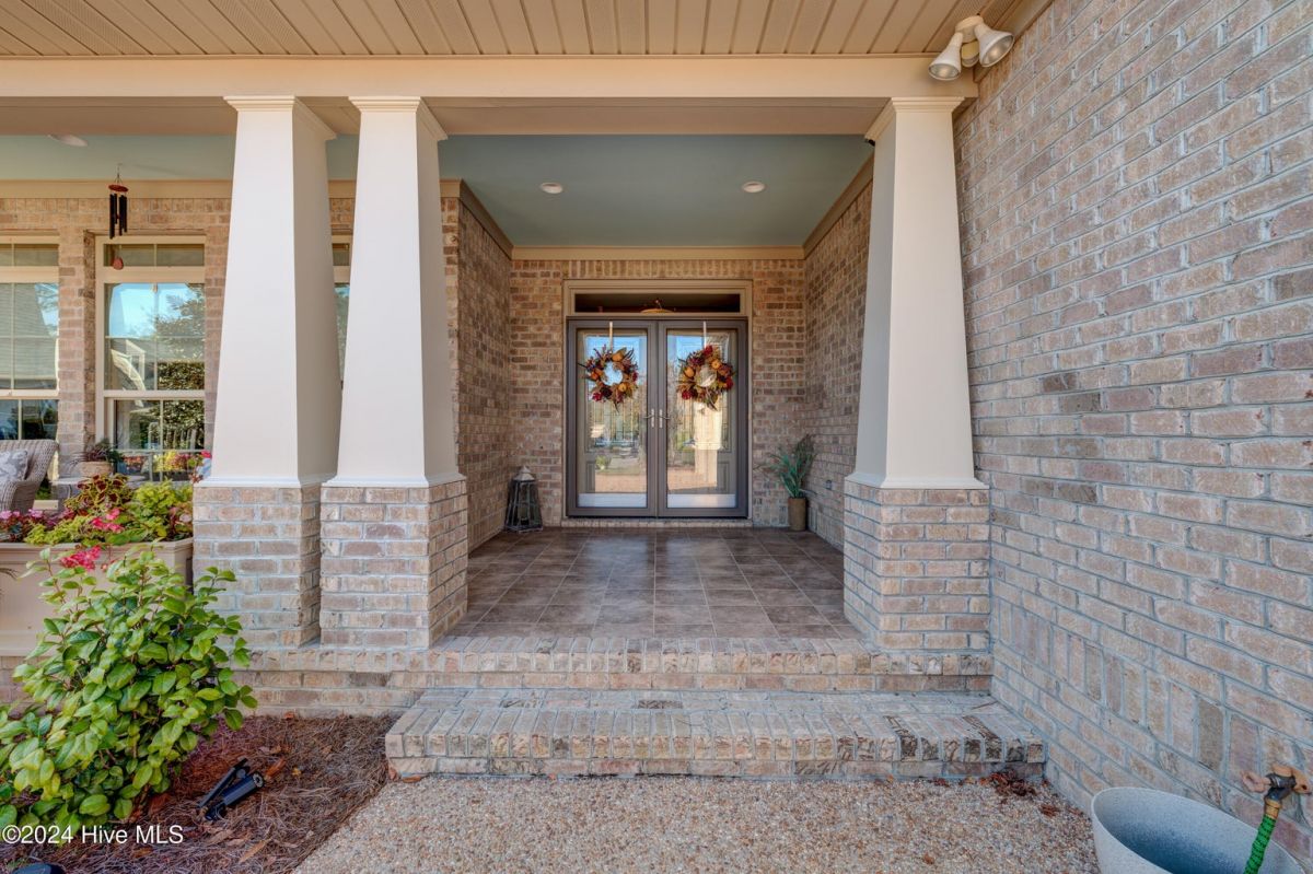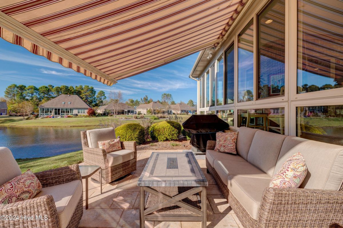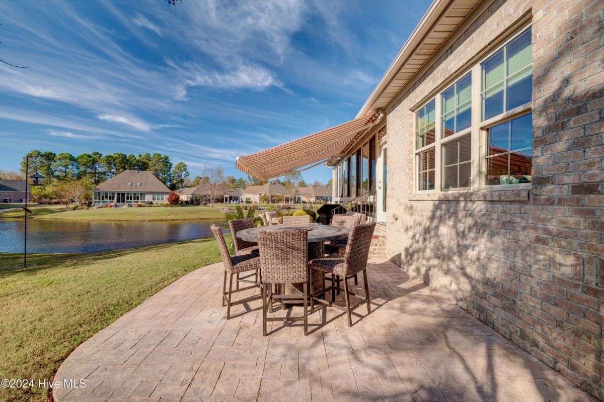 ENJOY RARE POND AND NATURE VIEWS BEHIND YOUR HOME, within walking distance of the main amenities in Compass Pointe. This beautiful low-maintenance brick home situated at the end of a cul du sac features a beautiful open floor plan with mainly one-level living. The decorative glass double doors welcome you in and your eyes are immediately drawn to the water out back. This home features coffered and tray ceilings and a warm kitchen and dining space overlooking the water. Continue out to the spacious 4-season lanai with your morning coffee to enjoy all of nature's beauty. Hardwood and tile flooring are throughout the main living area and bonus room. The Owners Suite features a beautiful tile shower, large walk-in closet, and separate vanities. The 3-car garage creates an oversized bonus room and offers guests their own full bath for a convenient en suite. The first floor is wired with surround sound, and a Whole House Generator will give you added peace of mind all year long. Compass Pointe's amenities feature the Grand Lanai Clubhouse, Health and Wellness Center, outdoor lazy river, a Jr. Olympic lap pool, Heated indoor pool, tennis and pickleball and a dog park. This golf-cart friendly lifestyle is very limited in Southeast North Carolina, but it can be yours. Save yourself the hassle of building and come explore this fantastic home today!