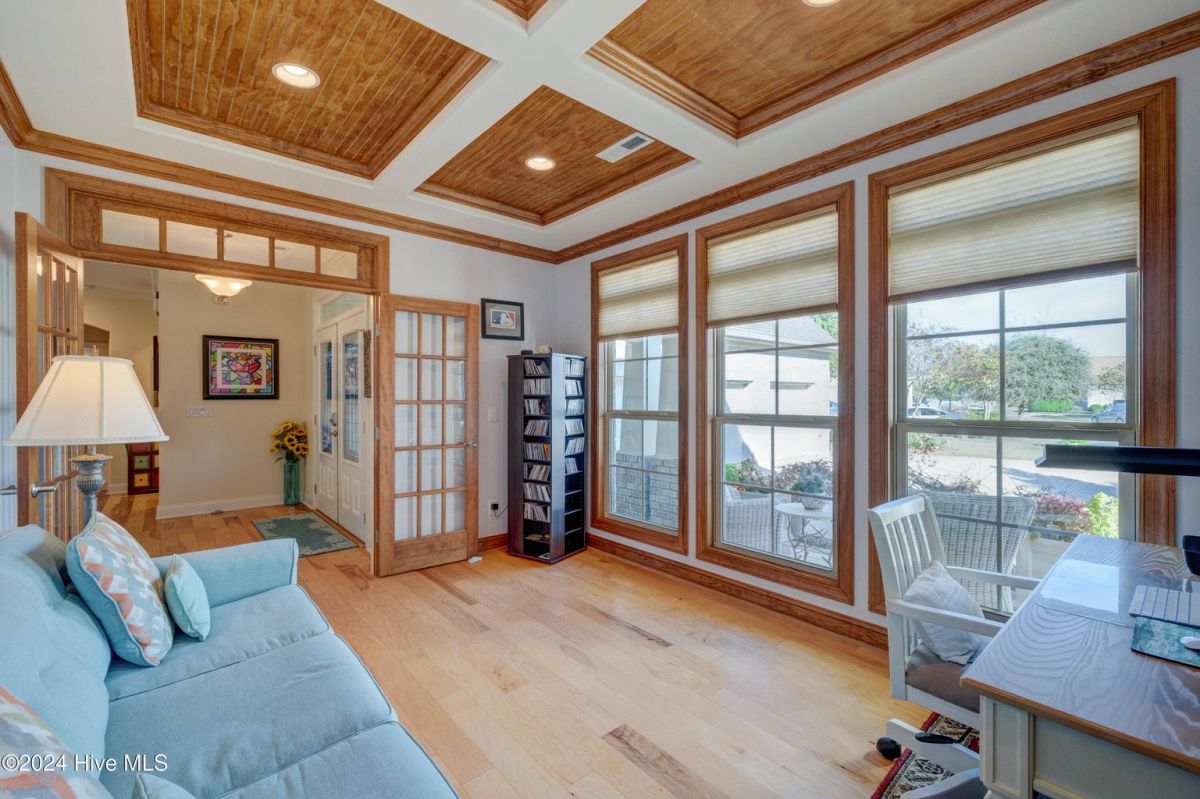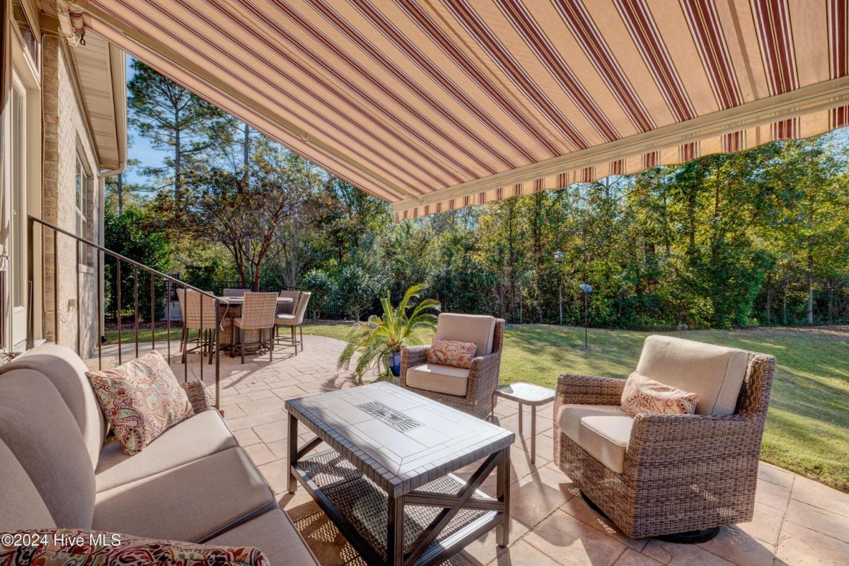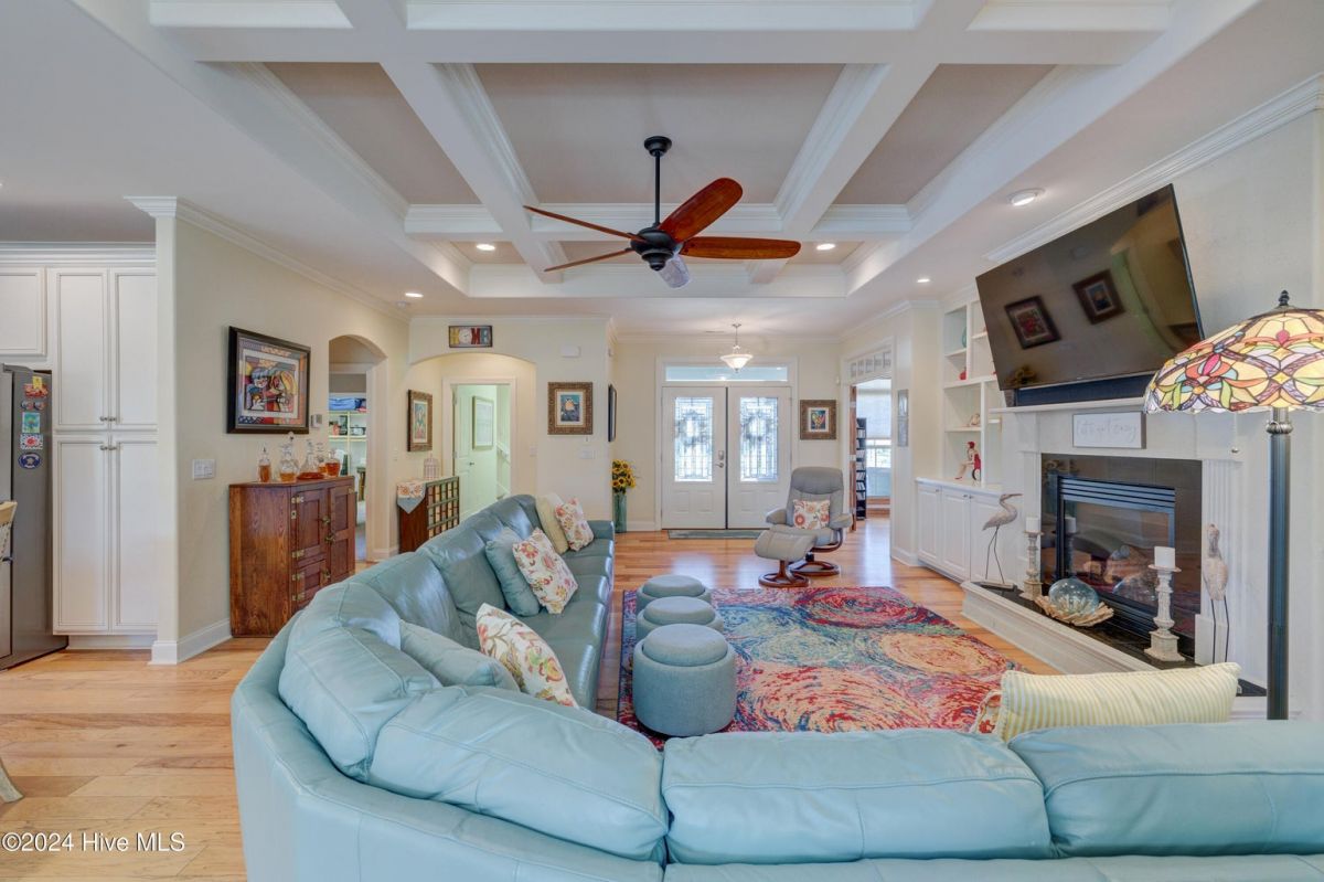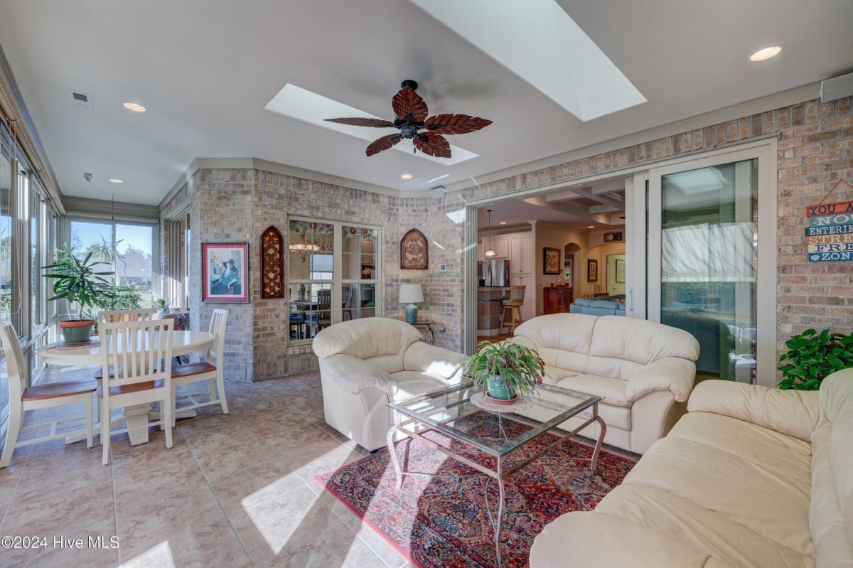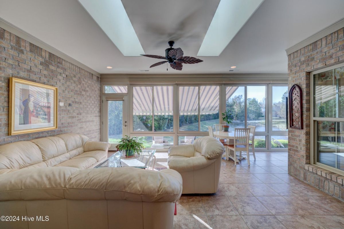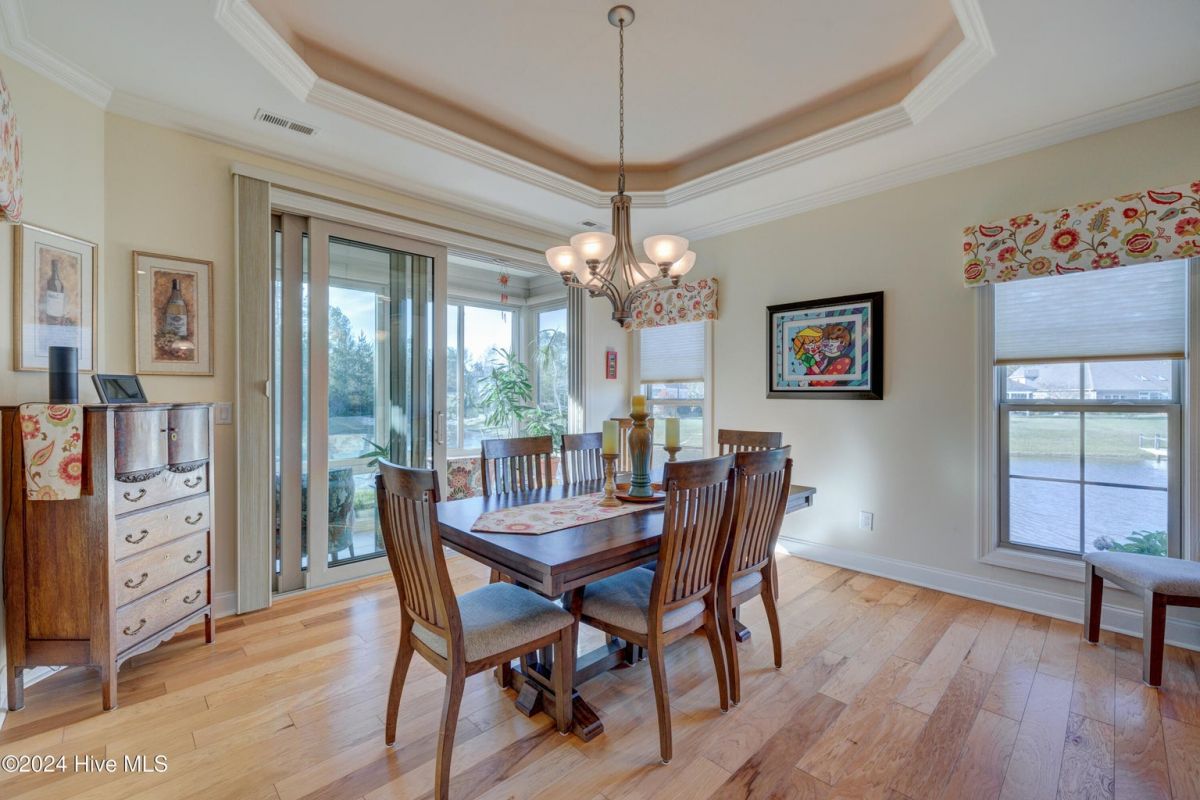 ENJOY RARE POND AND NATURE VIEWS BEHIND YOUR HOME, within walking distance of the main amenities in Compass Pointe. This beautiful low-maintenance brick home situated at the end of a cul du sac features a beautiful open floor plan with mainly one-level living. The decorative glass double doors welcome you in and your eyes are immediately drawn to the water out back. This home features coffered and tray ceilings and a warm kitchen and dining space overlooking the water. Continue out to the spacious 4-season lanai with your morning coffee to enjoy all of nature's beauty. Hardwood and tile flooring are throughout the main living area and bonus room. The Owners Suite features a beautiful tile shower, large walk-in closet, and separate vanities. The 3-car garage creates an oversized bonus room and offers guests their own full bath for a convenient en suite. The first floor is wired with surround sound, and a Whole House Generator will give you added peace of mind all year long. Compass Pointe's amenities feature the Grand Lanai Clubhouse, Health and Wellness Center, outdoor lazy river, a Jr. Olympic lap pool, Heated indoor pool, tennis and pickleball and a dog park. This golf-cart friendly lifestyle is very limited in Southeast North Carolina, but it can be yours. Save yourself the hassle of building and come explore this fantastic home today!
