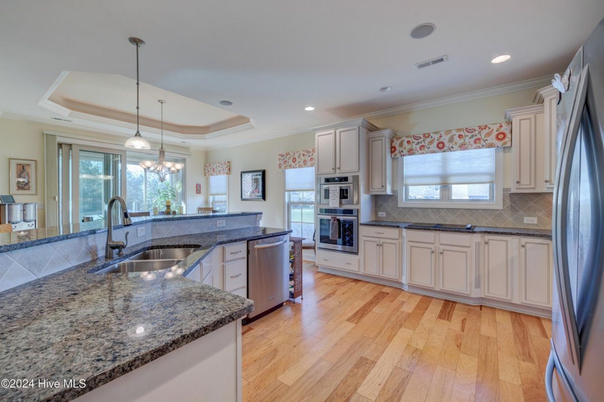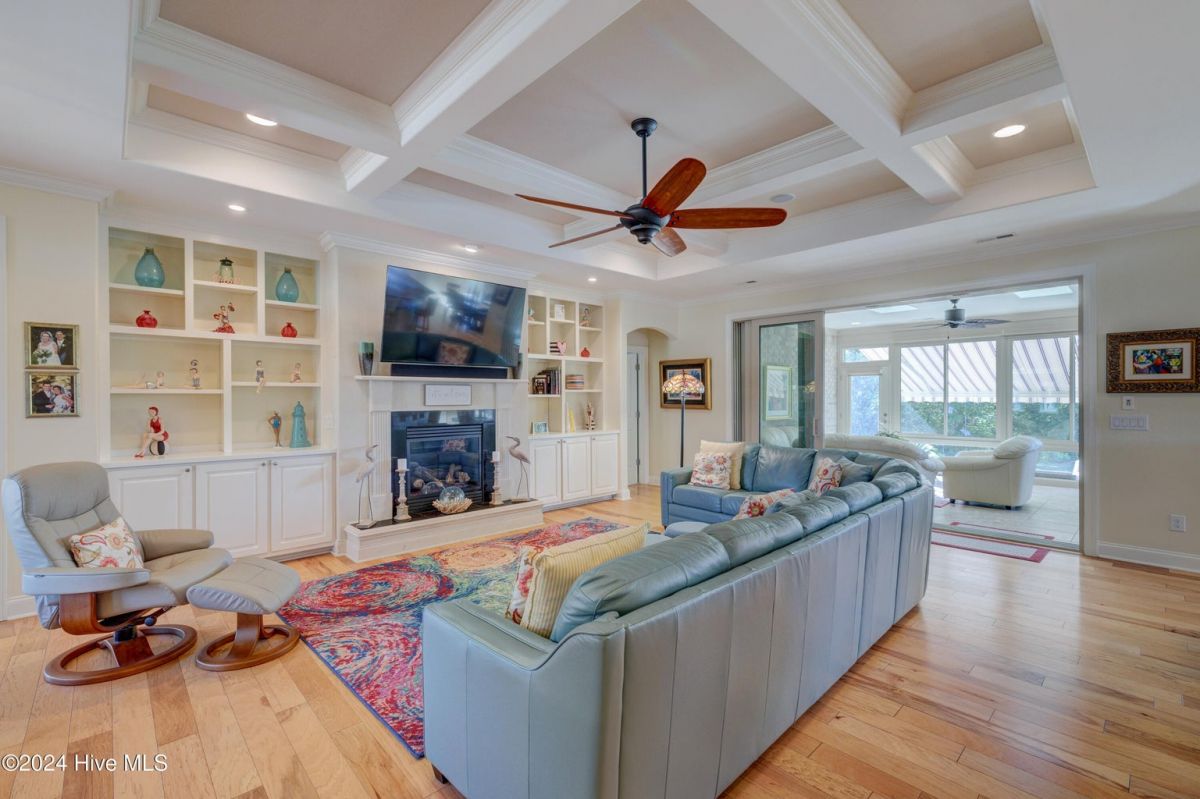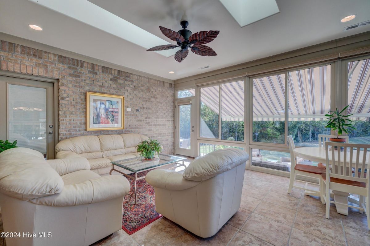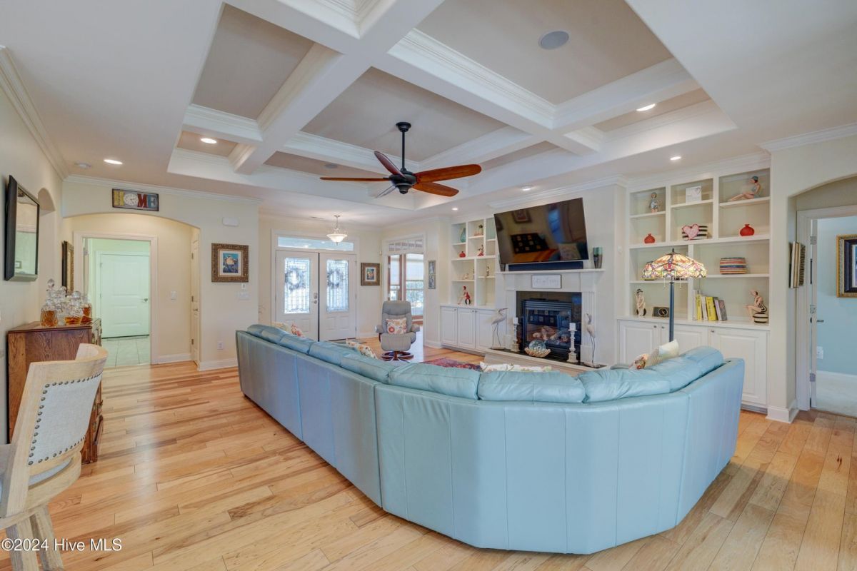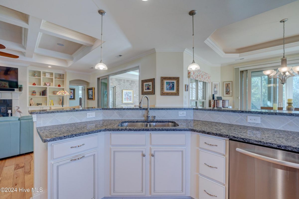 ENJOY RARE POND AND NATURE VIEWS BEHIND YOUR HOME, within walking distance of the main amenities in Compass Pointe. This beautiful low-maintenance brick home situated at the end of a cul du sac features a beautiful open floor plan with mainly one-level living. The decorative glass double doors welcome you in and your eyes are immediately drawn to the water out back. This home features coffered and tray ceilings and a warm kitchen and dining space overlooking the water. Continue out to the spacious 4-season lanai with your morning coffee to enjoy all of nature's beauty. Hardwood and tile flooring are throughout the main living area and bonus room. The Owners Suite features a beautiful tile shower, large walk-in closet, and separate vanities. The 3-car garage creates an oversized bonus room and offers guests their own full bath for a convenient en suite. The first floor is wired with surround sound, and a Whole House Generator will give you added peace of mind all year long. Compass Pointe's amenities feature the Grand Lanai Clubhouse, Health and Wellness Center, outdoor lazy river, a Jr. Olympic lap pool, Heated indoor pool, tennis and pickleball and a dog park. This golf-cart friendly lifestyle is very limited in Southeast North Carolina, but it can be yours. Save yourself the hassle of building and come explore this fantastic home today!