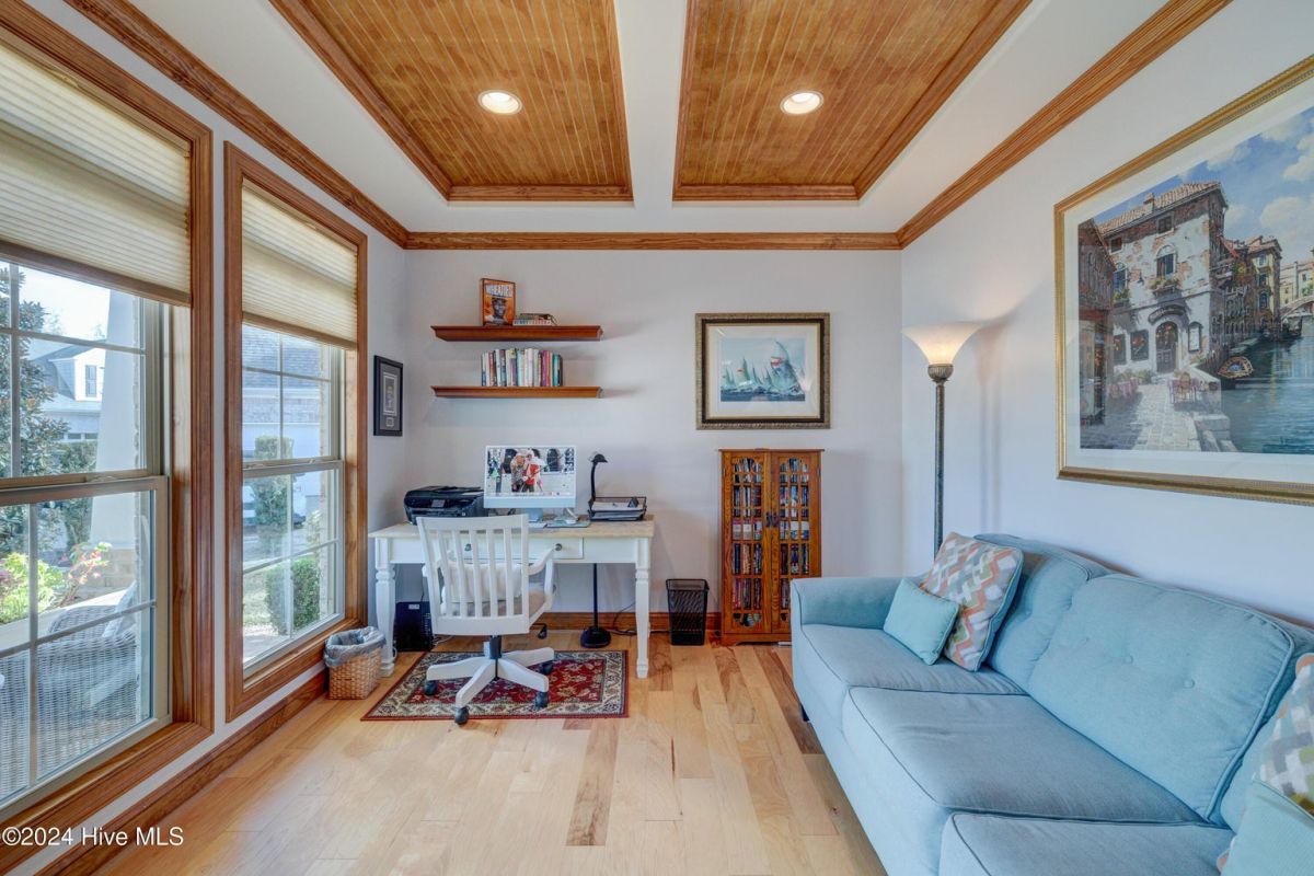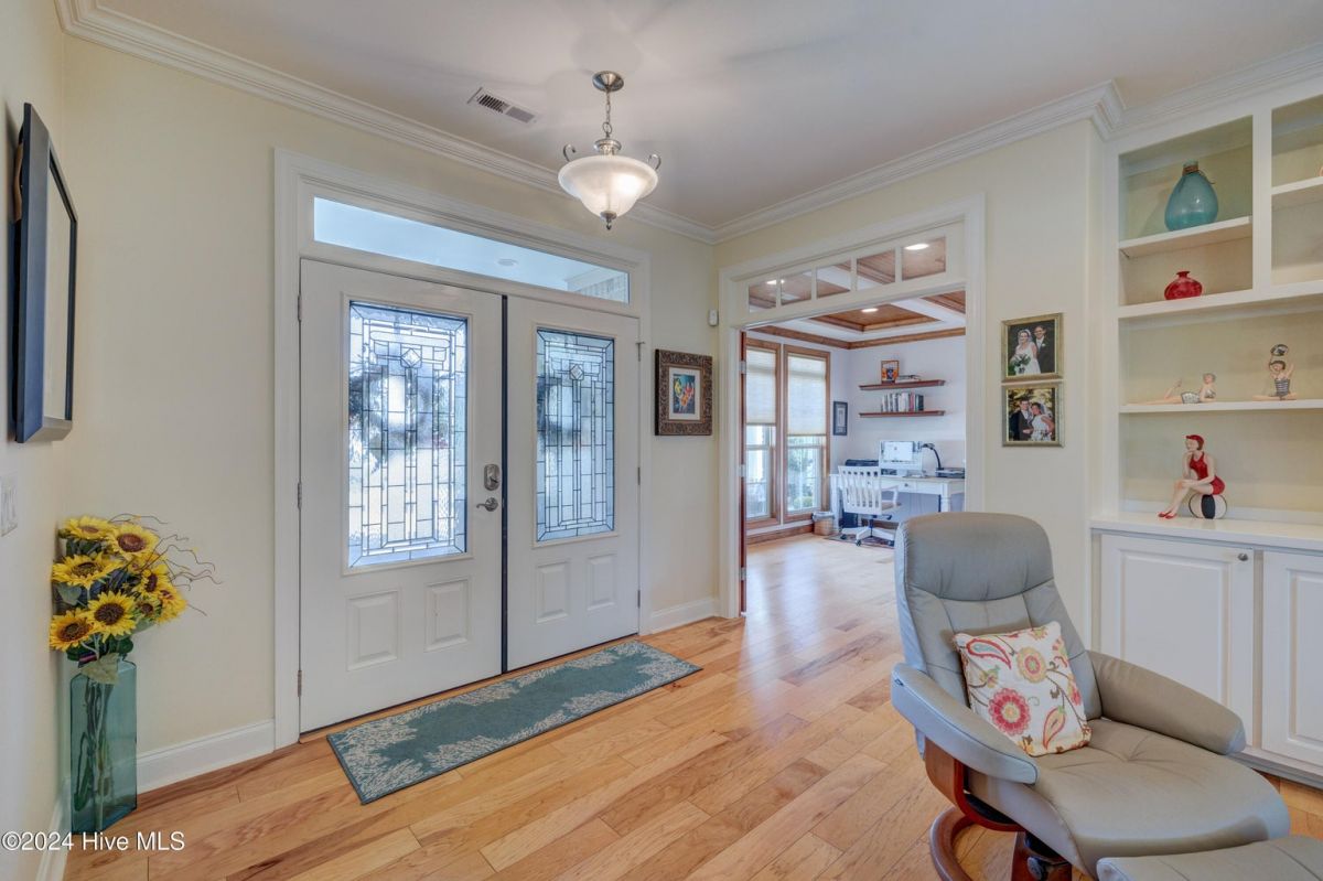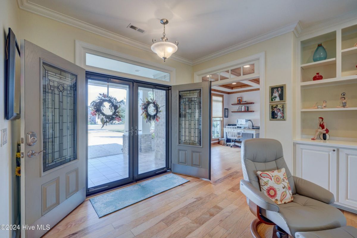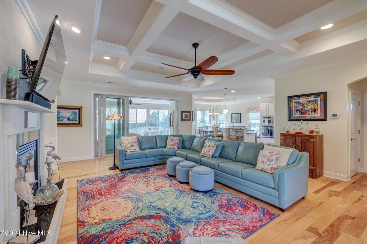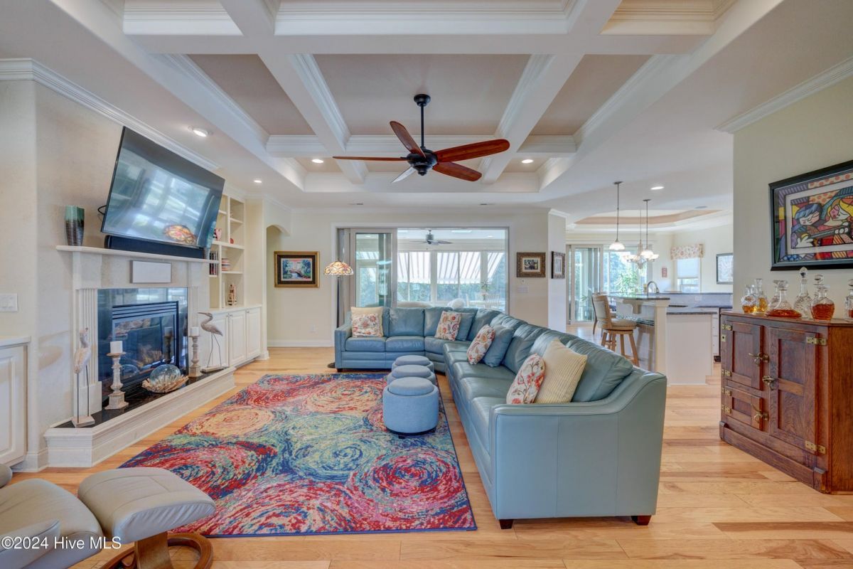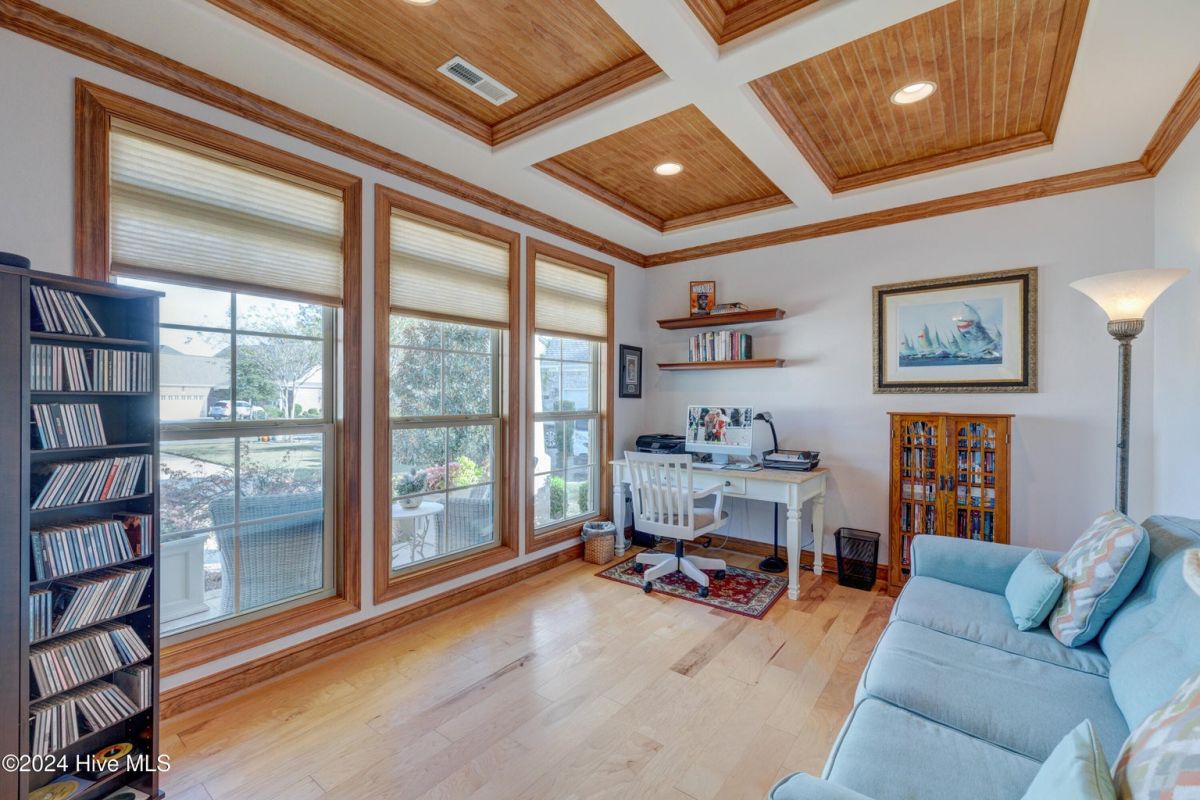 ENJOY RARE POND AND NATURE VIEWS BEHIND YOUR HOME, within walking distance of the main amenities in Compass Pointe. This beautiful low-maintenance brick home situated at the end of a cul du sac features a beautiful open floor plan with mainly one-level living. The decorative glass double doors welcome you in and your eyes are immediately drawn to the water out back. This home features coffered and tray ceilings and a warm kitchen and dining space overlooking the water. Continue out to the spacious 4-season lanai with your morning coffee to enjoy all of nature's beauty. Hardwood and tile flooring are throughout the main living area and bonus room. The Owners Suite features a beautiful tile shower, large walk-in closet, and separate vanities. The 3-car garage creates an oversized bonus room and offers guests their own full bath for a convenient en suite. The first floor is wired with surround sound, and a Whole House Generator will give you added peace of mind all year long. Compass Pointe's amenities feature the Grand Lanai Clubhouse, Health and Wellness Center, outdoor lazy river, a Jr. Olympic lap pool, Heated indoor pool, tennis and pickleball and a dog park. This golf-cart friendly lifestyle is very limited in Southeast North Carolina, but it can be yours. Save yourself the hassle of building and come explore this fantastic home today!