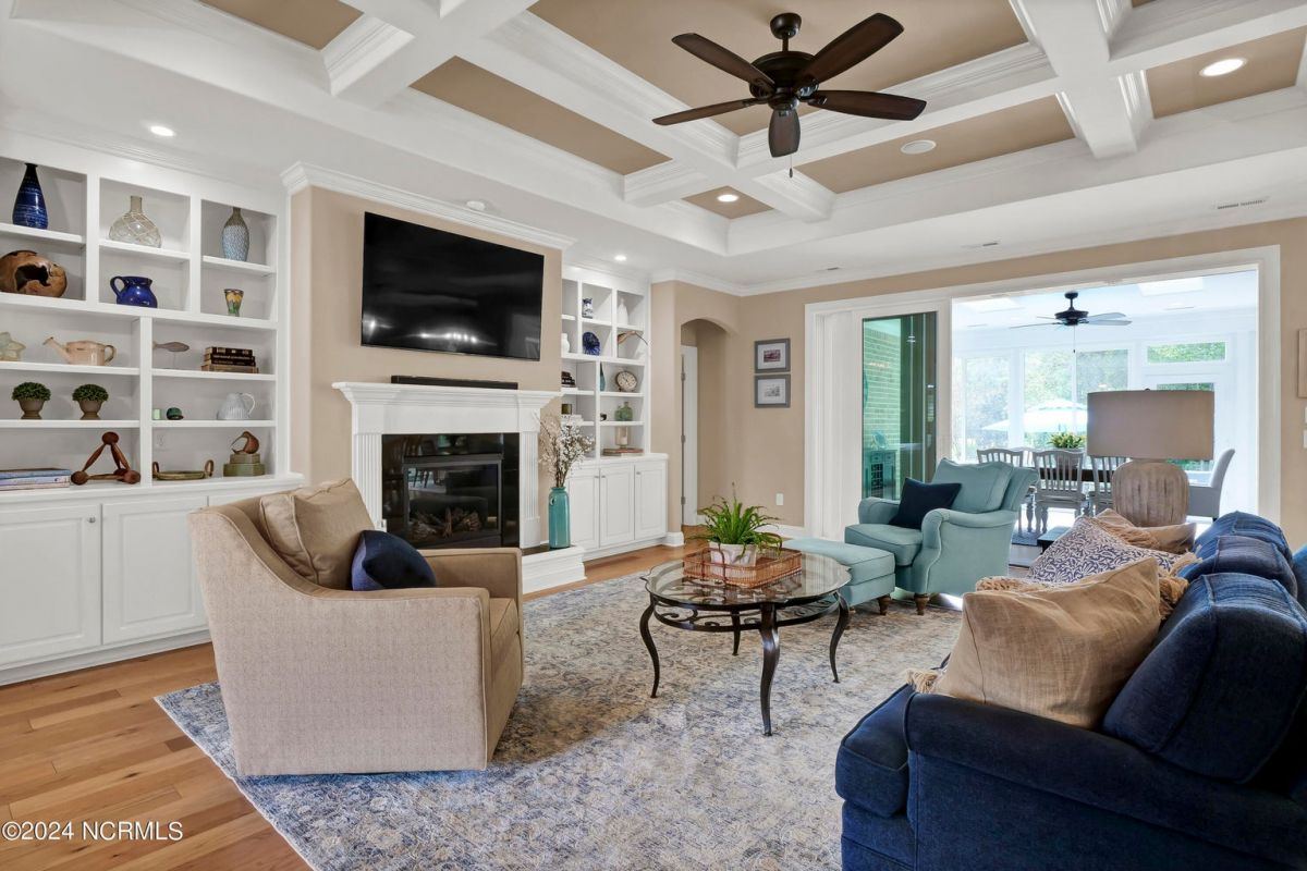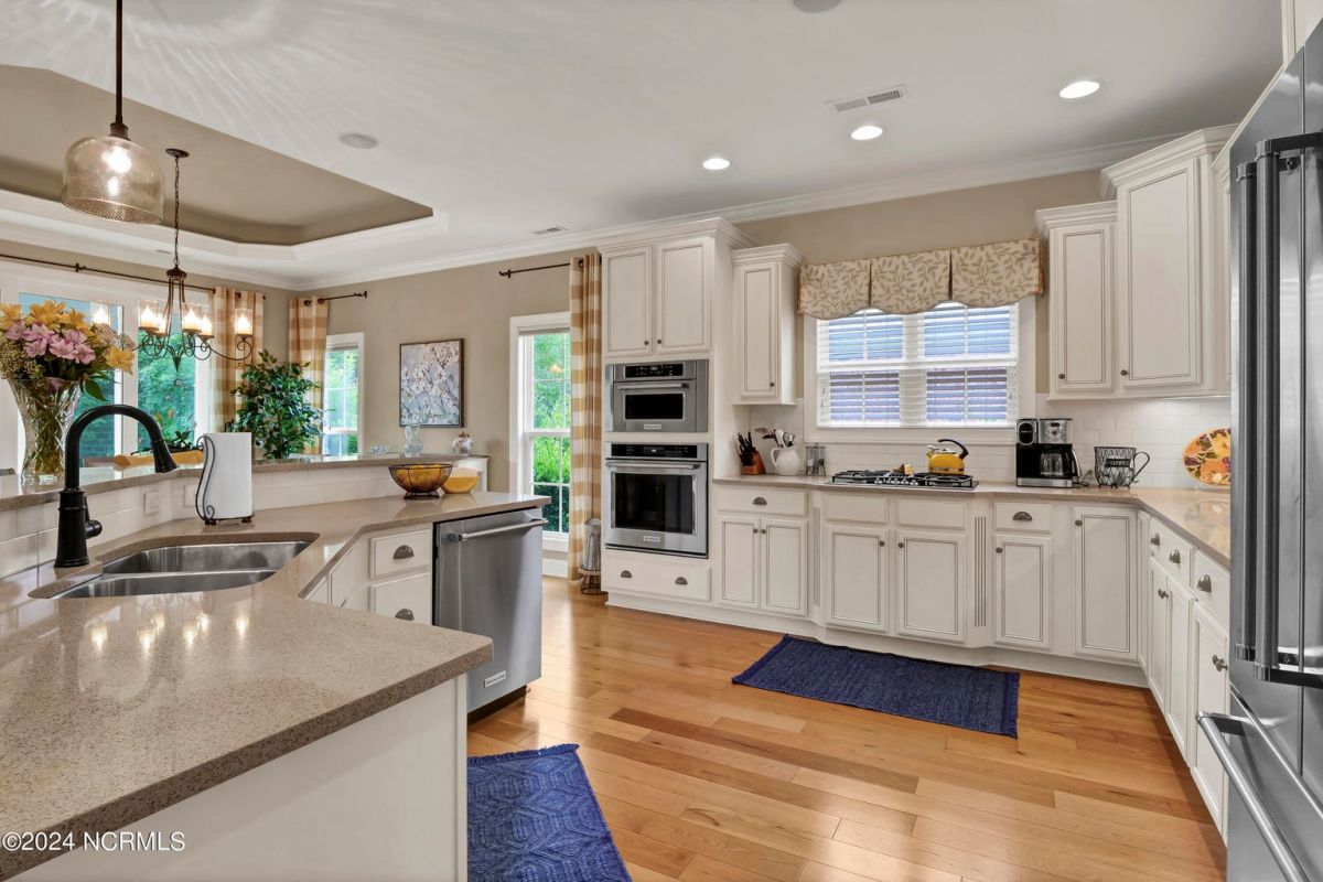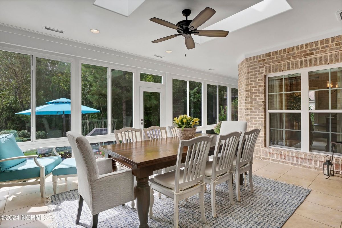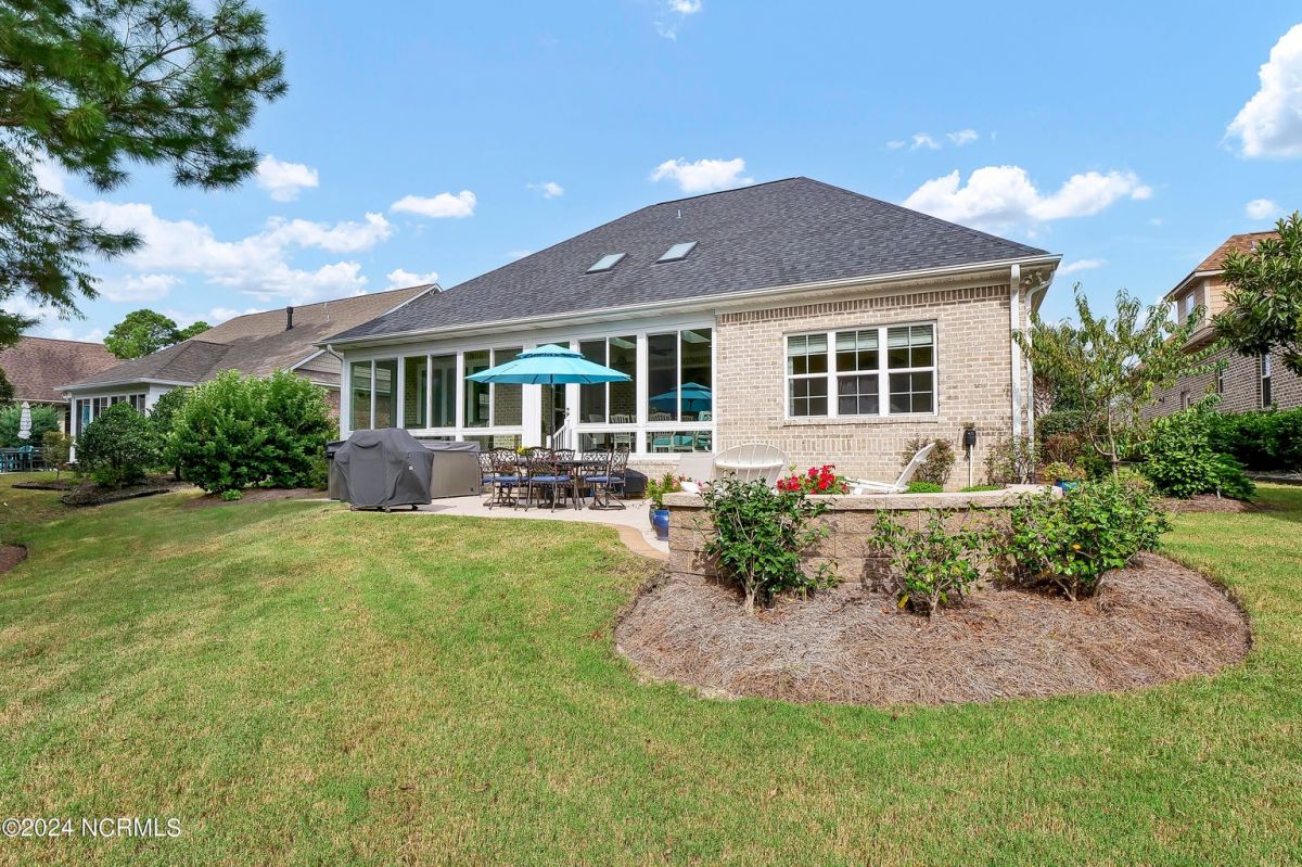 Welcome to this exquisite 3BR, 3BA home, ideally situated on a cul-de-sac street in The Reserve at Compass Pointe. Within walking distance to The Grand Lanai amenities center, this beautiful, brick Grayson I model by Trusst Builders, harmoniously blends modern luxury with timeless charm. Step inside to be greeted by elegant hardwood flooring and high ceilings featuring both trey and coffered designs that create an open and airy ambiance. The spacious kitchen and dining space offer all the modern conveniences, including stainless steel appliances and quartz countertops. The spacious master suite is your personal retreat, featuring a walk-in closet and thoughtfully designed en-suite bathroom. Stay cozy by the fireplace in the living room, or enjoy a movie night with the built-in sound system. The home includes LED lighting and a central vacuum system for added convenience. The 2-car garage, with epoxy flooring, includes a workbench any hobbyist would envy. The heated and cooled, fully glassed-in sunroom provides an ideal space for all-season enjoyment. Continue outdoors to the expansive landscaped backyard and lighted patio that offers a perfect setting for relaxation or entertaining, while looking out onto serene, non-buildable woodlands. The home is already wired for an outdoor hot tub as well. Compass Pointe's extensive amenities feature the Grand Lanai Clubhouse, Health and Wellness Center, outdoor lazy river, a Jr. Olympic lap pool, heated indoor pool, tennis and pickleball courts and dog park. Not to mention, the Compass Pointe Golf Club offers multiple membership opportunities, another outdoor pool, tiki bar, full-service restaurant, gym, and pro shop. Don't miss your opportunity to own this gem, offering an unparalleled, 'golf-cart friendly' living experience in an enviable community. Schedule your tour today!