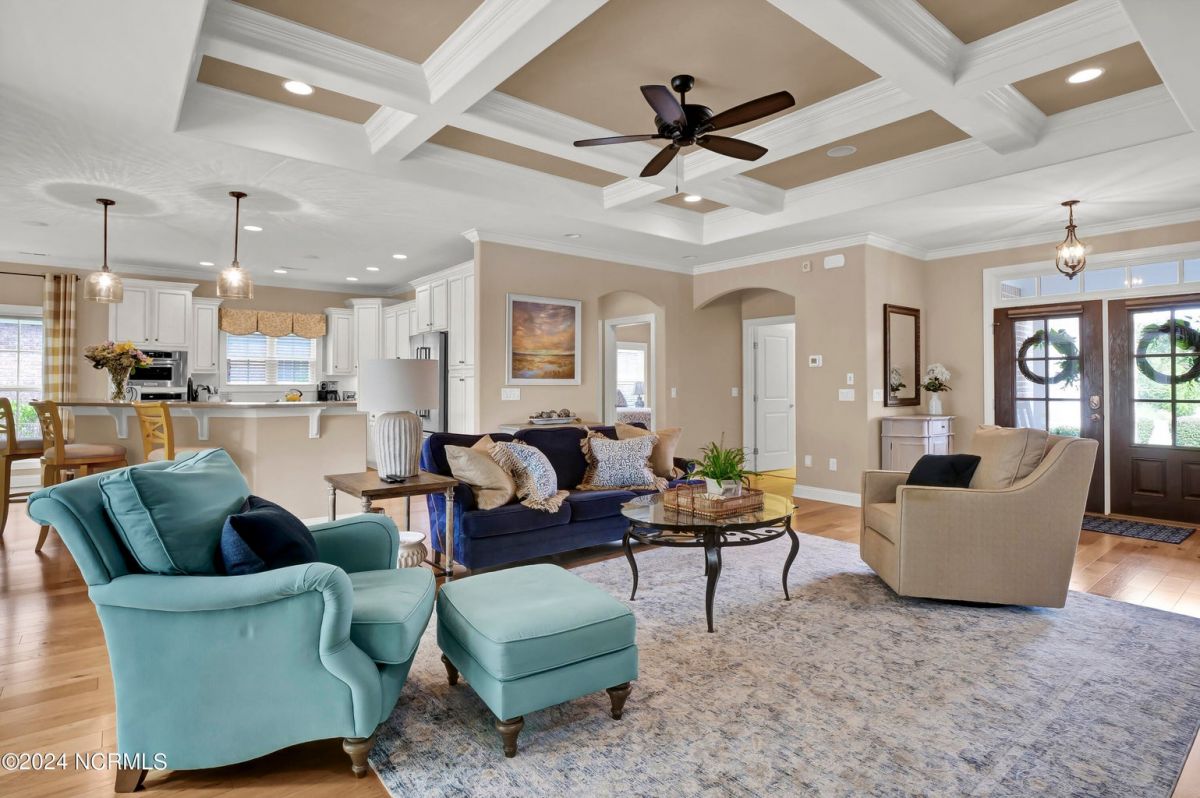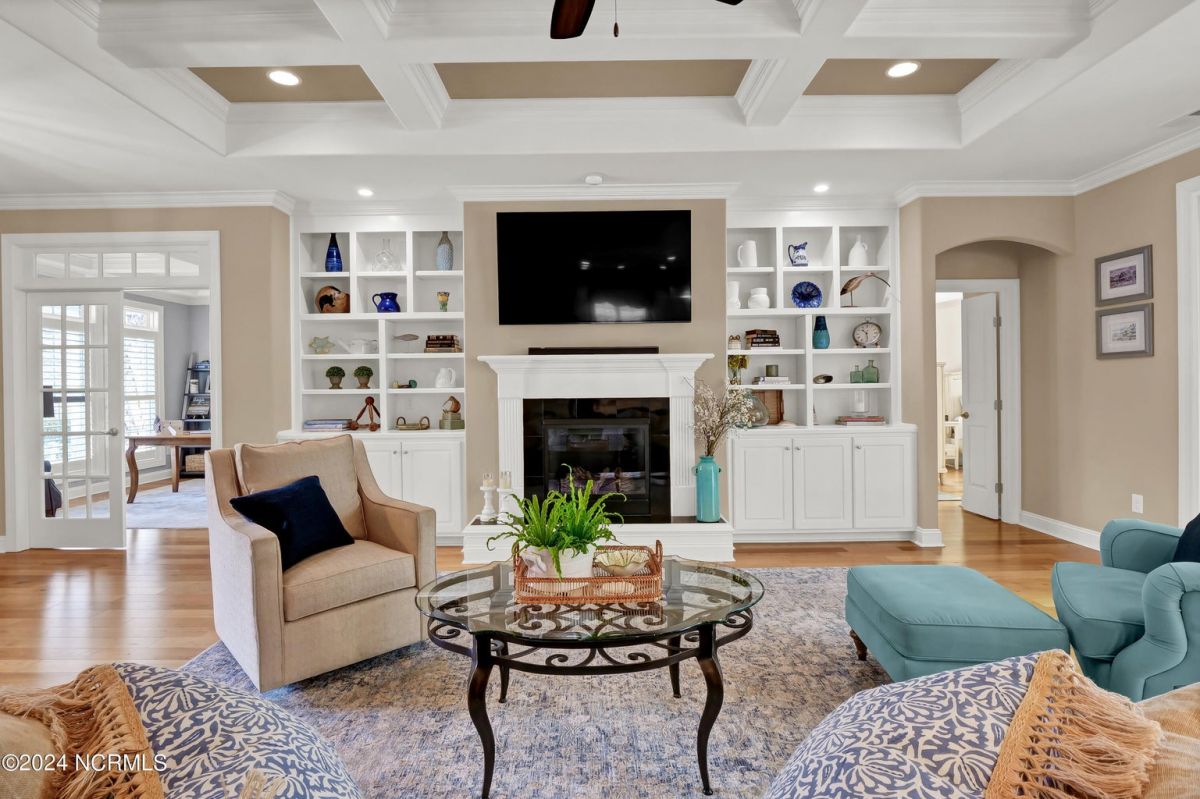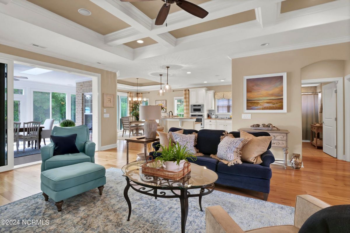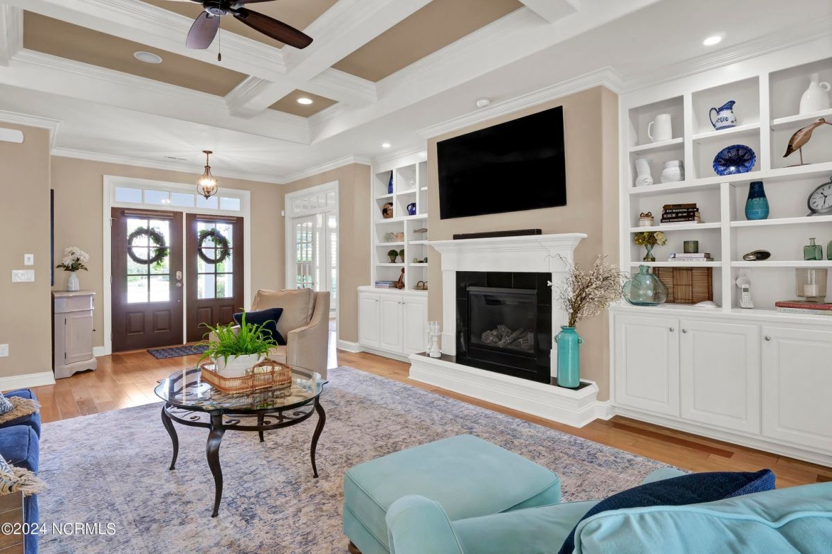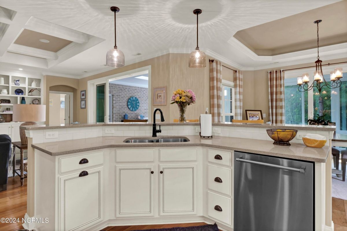 Welcome to this exquisite 3BR, 3BA home, ideally situated on a cul-de-sac street in The Reserve at Compass Pointe. Within walking distance to The Grand Lanai amenities center, this beautiful, brick Grayson I model by Trusst Builders, harmoniously blends modern luxury with timeless charm. Step inside to be greeted by elegant hardwood flooring and high ceilings featuring both trey and coffered designs that create an open and airy ambiance. The spacious kitchen and dining space offer all the modern conveniences, including stainless steel appliances and quartz countertops. The spacious master suite is your personal retreat, featuring a walk-in closet and thoughtfully designed en-suite bathroom. Stay cozy by the fireplace in the living room, or enjoy a movie night with the built-in sound system. The home includes LED lighting and a central vacuum system for added convenience. The 2-car garage, with epoxy flooring, includes a workbench any hobbyist would envy. The heated and cooled, fully glassed-in sunroom provides an ideal space for all-season enjoyment. Continue outdoors to the expansive landscaped backyard and lighted patio that offers a perfect setting for relaxation or entertaining, while looking out onto serene, non-buildable woodlands. The home is already wired for an outdoor hot tub as well. Compass Pointe's extensive amenities feature the Grand Lanai Clubhouse, Health and Wellness Center, outdoor lazy river, a Jr. Olympic lap pool, heated indoor pool, tennis and pickleball courts and dog park. Not to mention, the Compass Pointe Golf Club offers multiple membership opportunities, another outdoor pool, tiki bar, full-service restaurant, gym, and pro shop. Don't miss your opportunity to own this gem, offering an unparalleled, 'golf-cart friendly' living experience in an enviable community. Schedule your tour today!