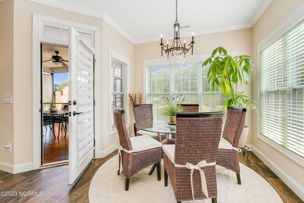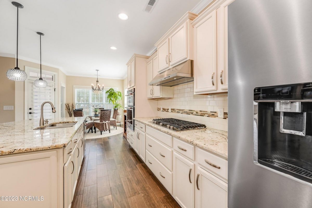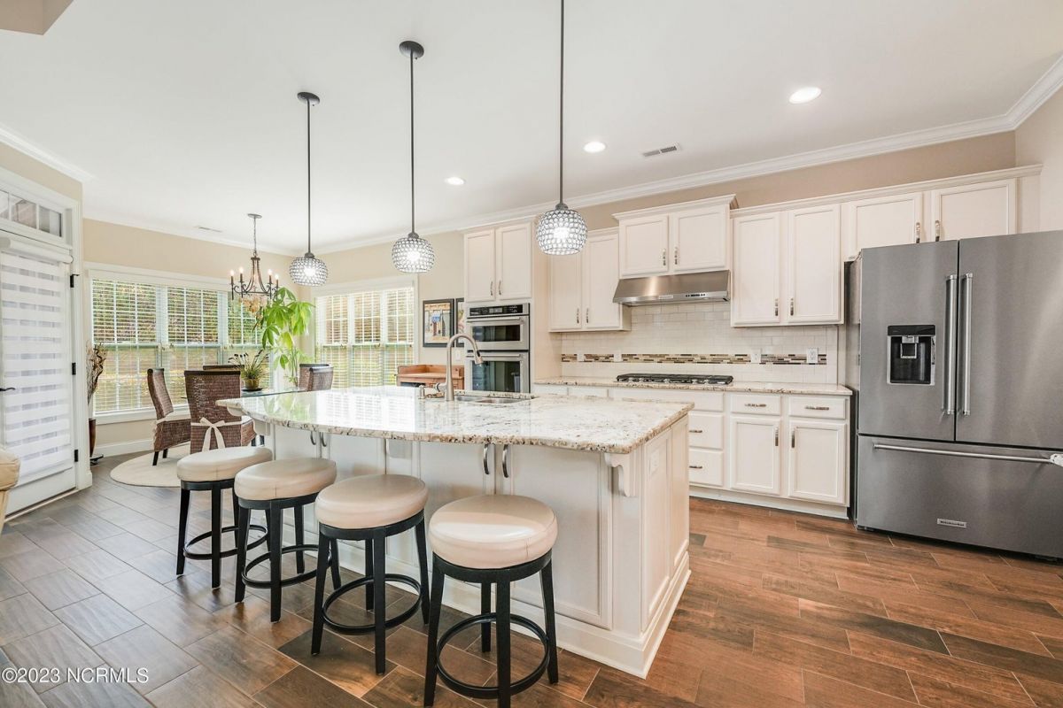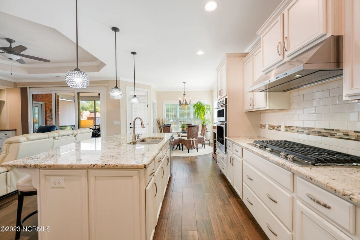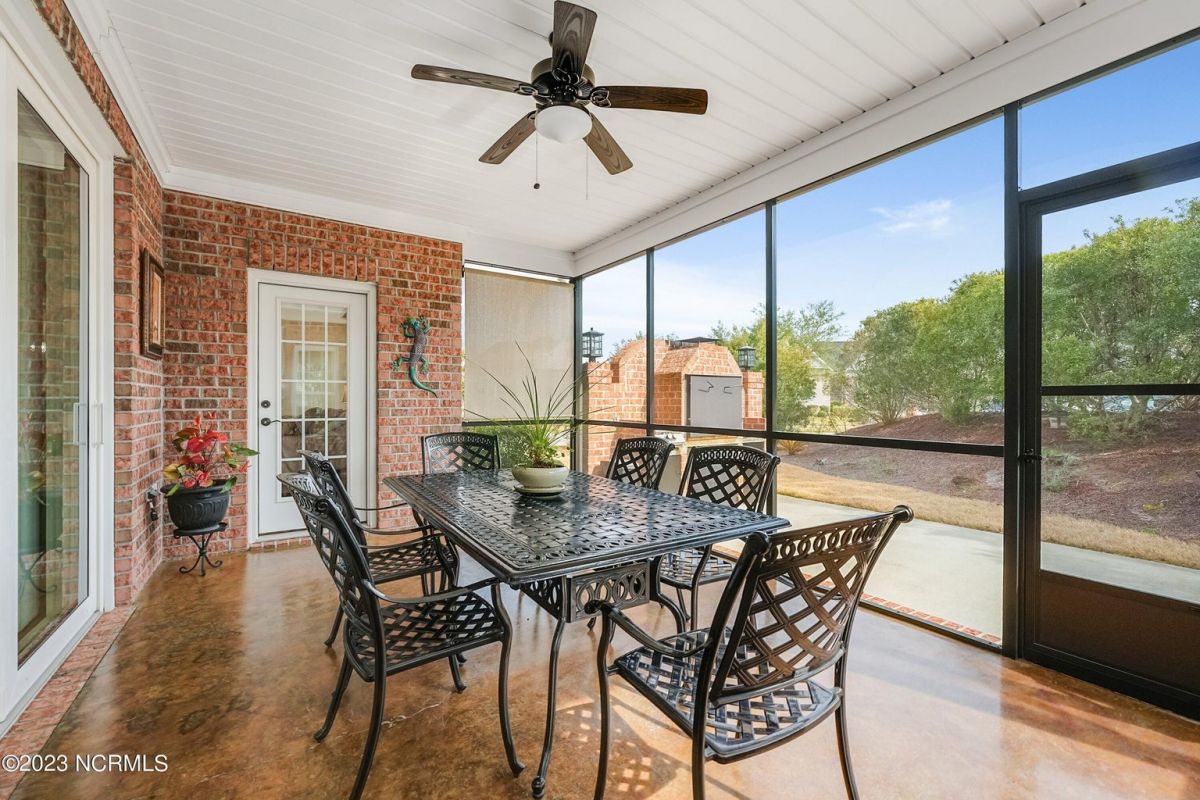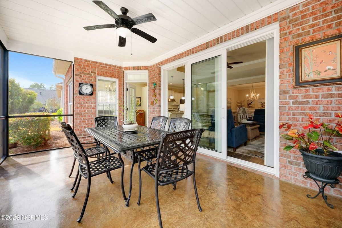 A truly immaculate home located in the resort style living gated golf community of Compass Pointe. Custom built by Logan Homes ...it is a Herron II model all on one level with 3 bedrooms and 2 baths sitting on a corner lot with loads of curb appeal. Built with an open concept. The living room is spacious and features a Trey ceiling, crown molding, custom cabinetry, fireplace and offers an abundance of natural light. Telescopic sliding glass doors leads to a sun filled porch. The living room is spacious and bright and also just the right size to feel cozy while curled up by the fire. You will enjoy the upgraded tile flooring(wood grain) throughout the main living areas, especially for your beloved pet(s). It is truly beautiful, scratch resistant and easy to maintain. The stunning gourmet kitchen is light and airy with neutral colored cabinets. The kitchen is complete with granite countertops, tile back splash, upgraded appliances, oversized center island with abundant cabinets, double oven, chef gas cooktop, 2 large pantries and dining nook is an entertainer's dream. The formal dining room is well appointed with crown molding, wainscoting and will be a favorite holiday gathering place for years to come. A spacious screened in porch overlooks a private backyard featuring a custom designed brick Argentine Barbecue. Porch and backyard provides a fabulous space for entertaining or relaxing with a cup of coffee. The primary bedroom includes a tray ceiling with direct access to the screened in porch. Primary bathroom has a large, tiled walk-in shower with handheld shower head and double vanity. The laundry room/mudroom is right off the oversized garage and will be an organizer's dream with many built-ins and a computer/office nook. Landscaping is included in the HOA dues.