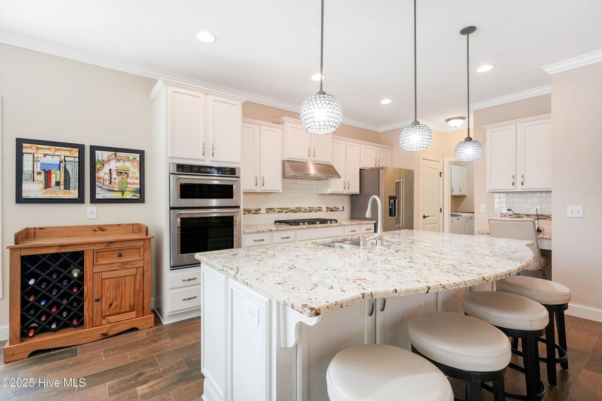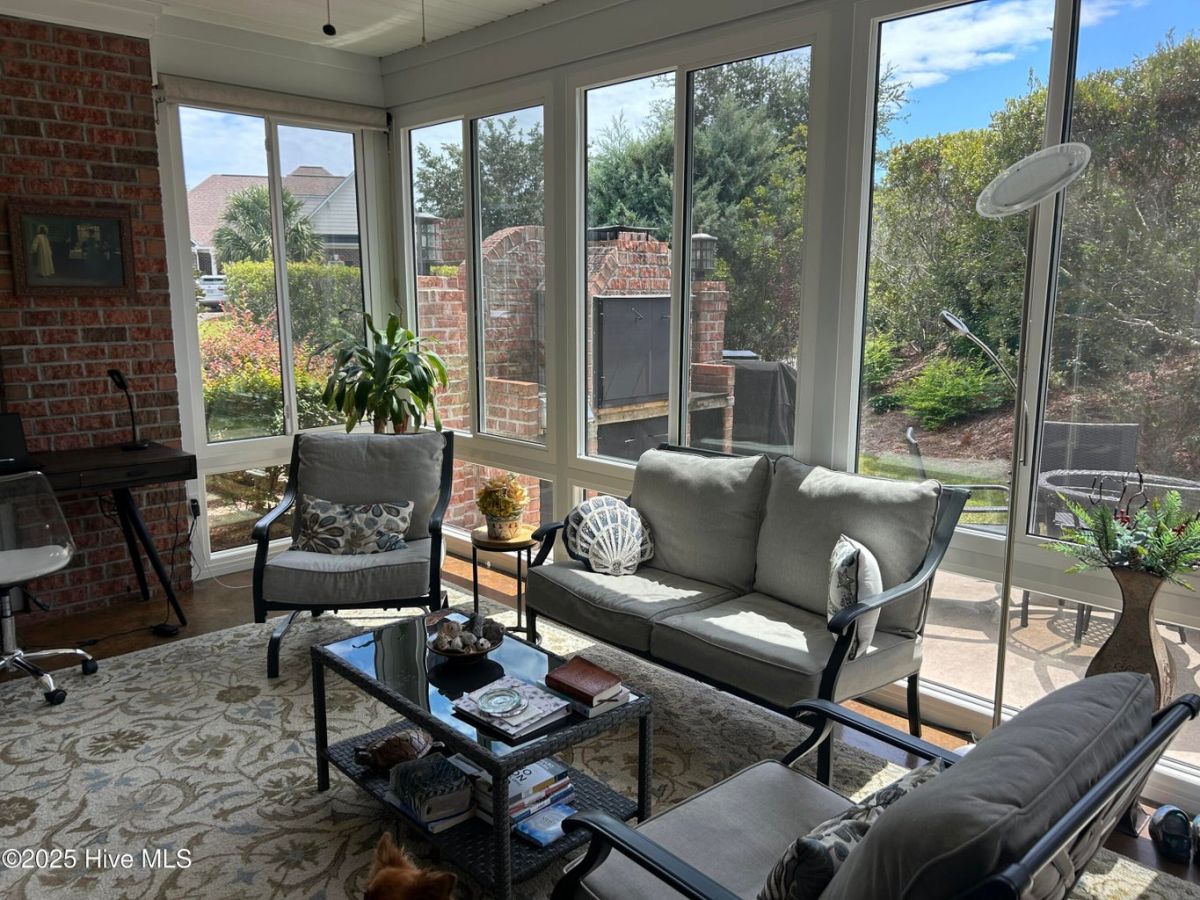 Welcome to this stunning home in the resort-style, gated golf community of Compass Pointe. This 3BR/2BA single-level residence is ideally positioned on a landscaped corner lot just steps from the clubhouse, pools, fitness center, and pickleball/tennis courts. Designed for open-concept living, the spacious great room showcases a tray ceiling, crown molding, custom built-ins, fireplace, and telescopic sliders leading to a bright enclosed porch. Durable wood-look tile floors flow throughout the main areas—beautiful, low-maintenance, and pet-friendly. The gourmet kitchen impresses with granite countertops, tile backsplash, oversized island, chef's gas cooktop, double ovens, upgraded appliances, and two walk-in pantries. A formal dining room with crown molding and wainscoting offers the perfect space for entertaining. A glass-enclosed four-season sunroom (completed 2024) overlooks the private backyard with custom brick Argentine barbecue—ideal for friends gatherings or enjoy a cup coffee in the morning. The primary suite features a tray ceiling, screened porch access, and spa-style bath with dual vanities and a tiled walk-in shower. Additional highlights include a laundry/mudroom with built-ins and office nook, plus an oversized garage for extra storage. Landscaping is included in HOA dues for easy living. Enjoy Compass Pointe's unmatched lifestyle—all within walking distance of your front door. Schedule your private showing today!