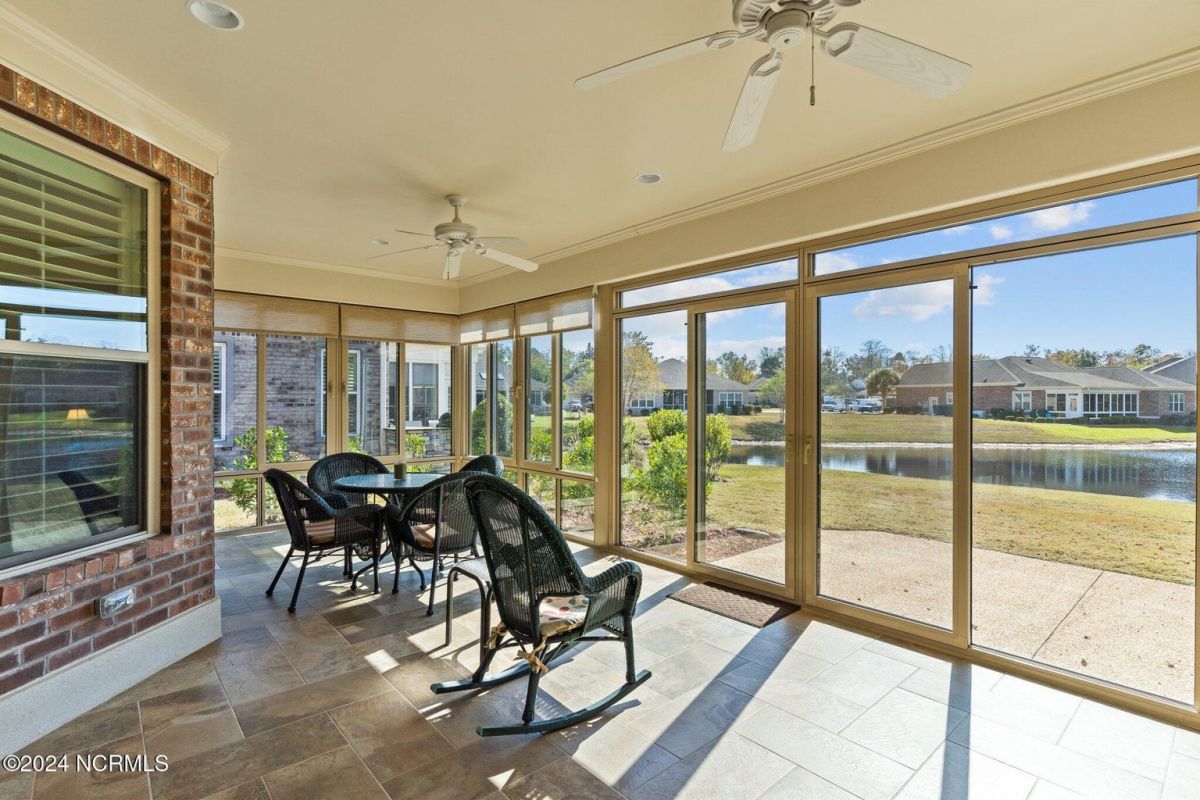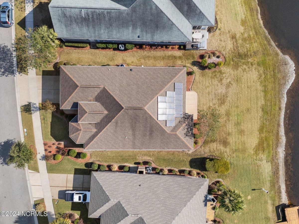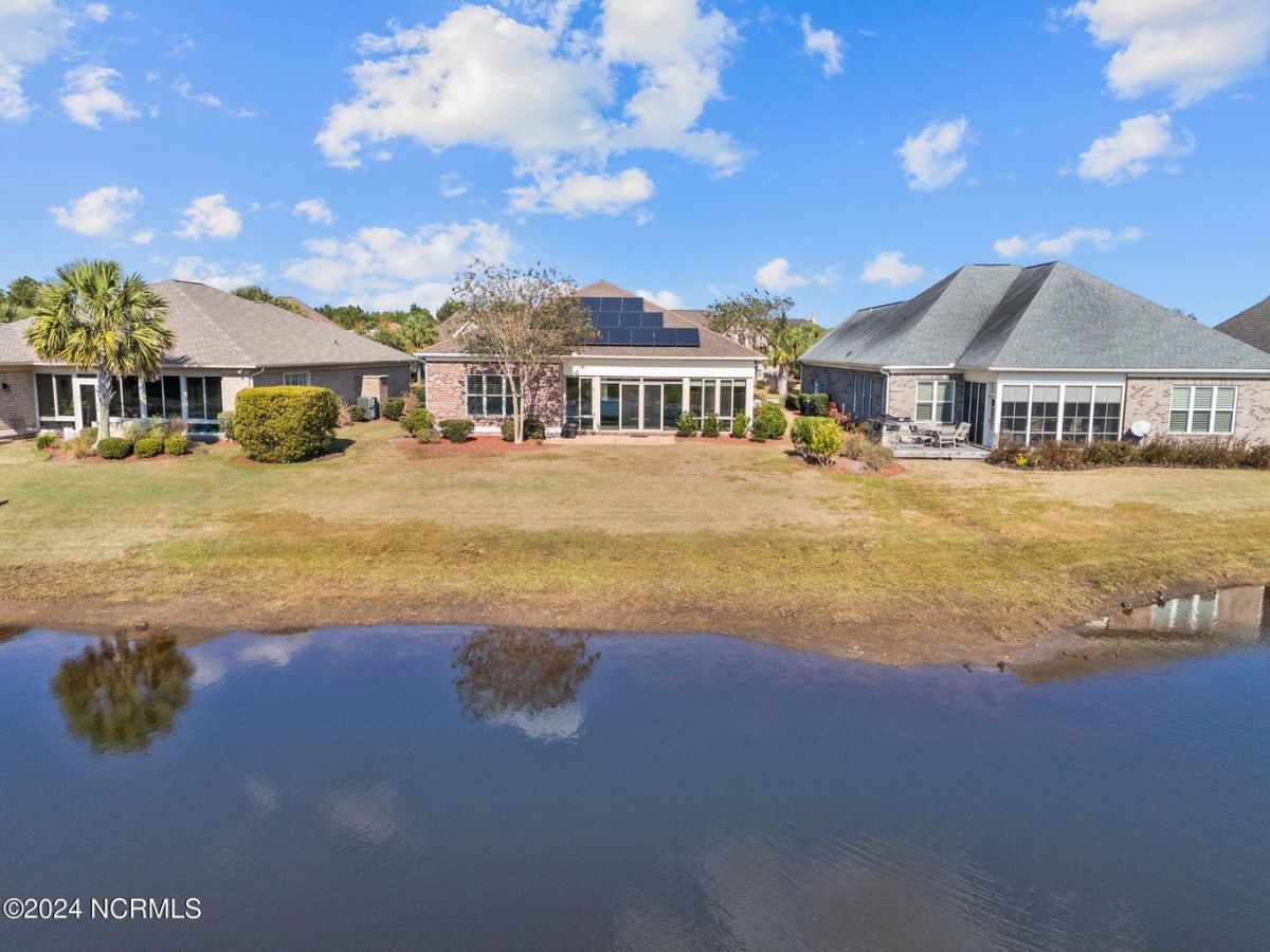 This inviting 3 bed, 2 bath home in the sought-after Compass Pointe community offers a bright, open floor plan that features beautiful bay windows and elegant tray ceilings. This home features a cozy propane fireplace that adds warmth to the living area, as well as a gas stovetop in the kitchen. Rooftop solar panels help reduce electric bills, making the home more energy-efficient. The spacious porch with updated windows overlooks a tranquil backyard pond. With its thoughtful design and serene setting, this home blends comfort, style, and functionality, creating a welcoming retreat for everyday living.