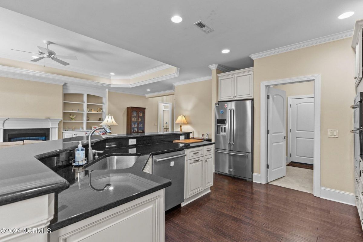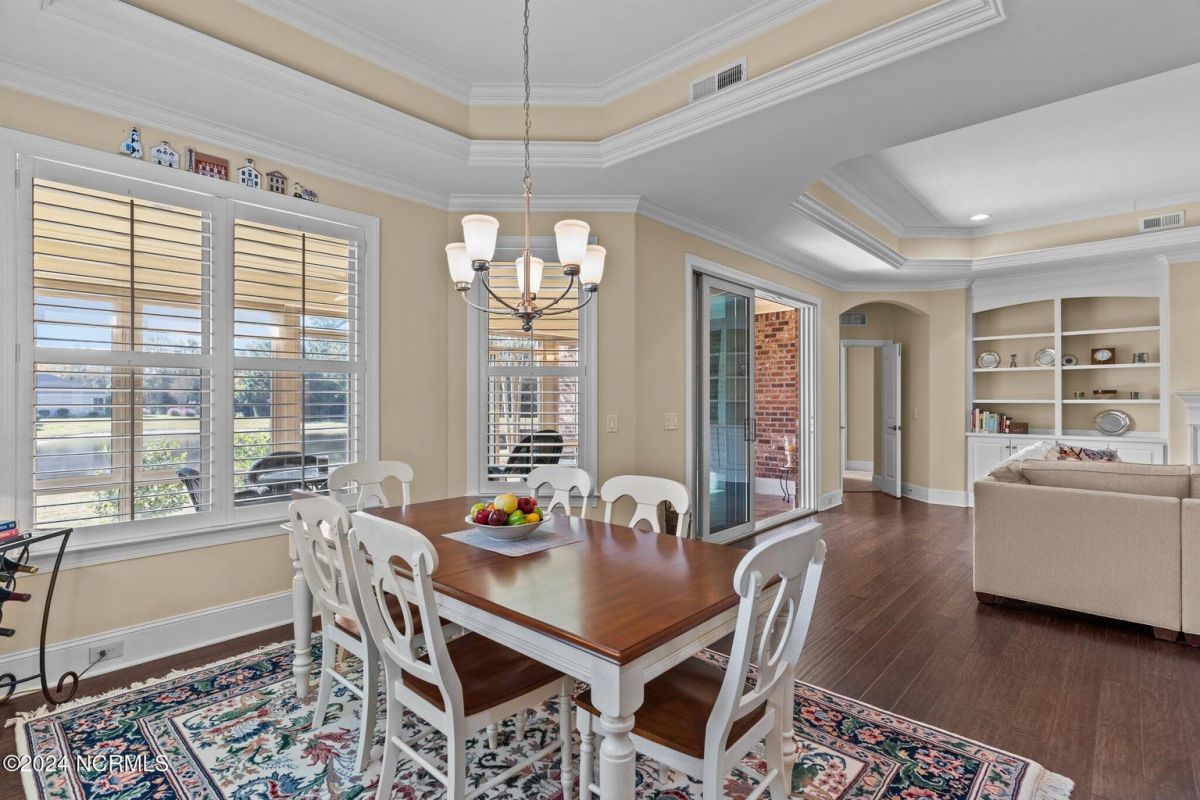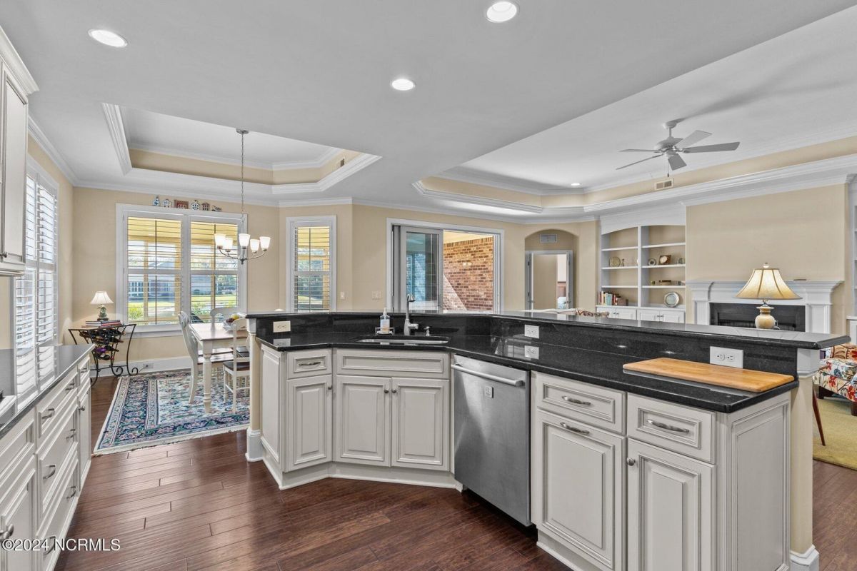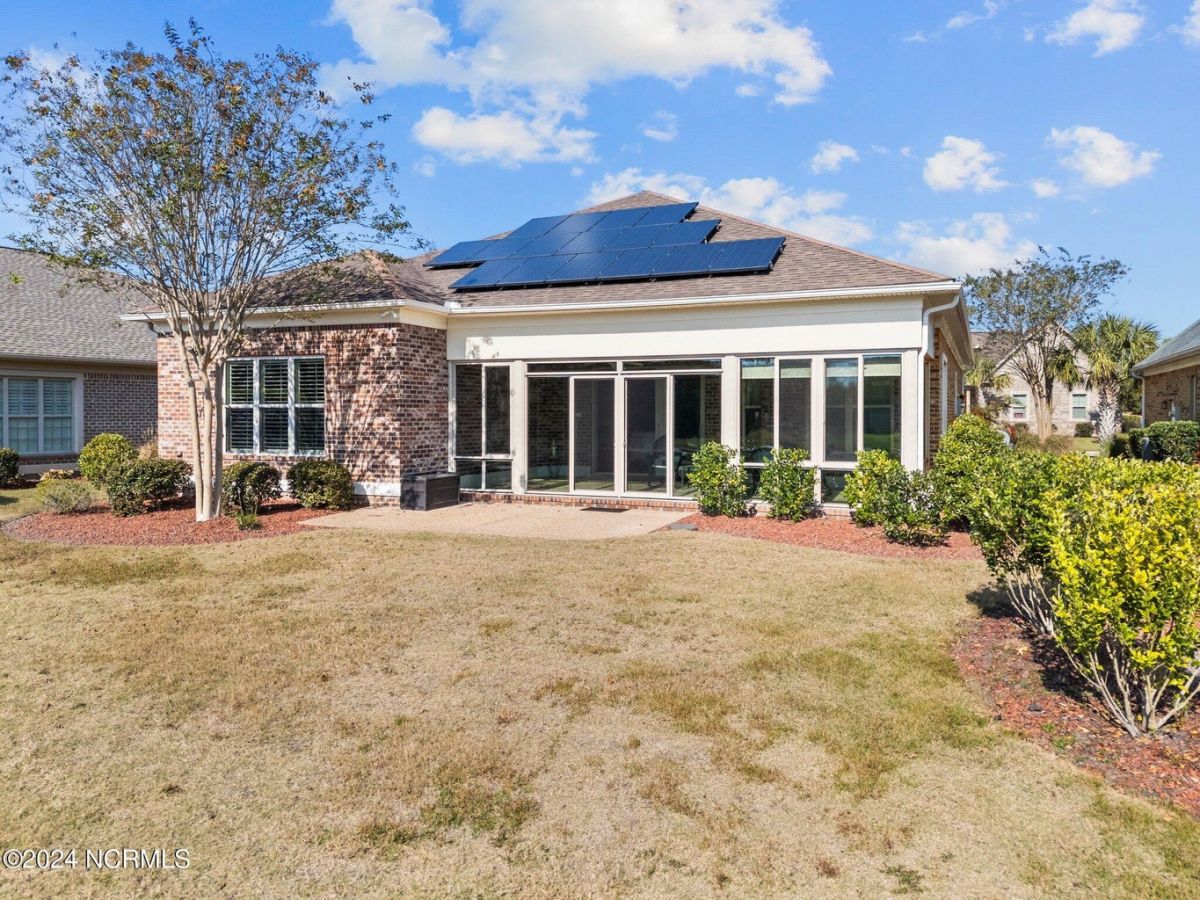 This inviting 3 bed, 2 bath home in the sought-after Compass Pointe community offers a bright, open floor plan that features beautiful bay windows and elegant tray ceilings. This home features a cozy propane fireplace that adds warmth to the living area, as well as a gas stovetop in the kitchen. Rooftop solar panels help reduce electric bills, making the home more energy-efficient. The spacious porch with updated windows overlooks a tranquil backyard pond. With its thoughtful design and serene setting, this home blends comfort, style, and functionality, creating a welcoming retreat for everyday living.