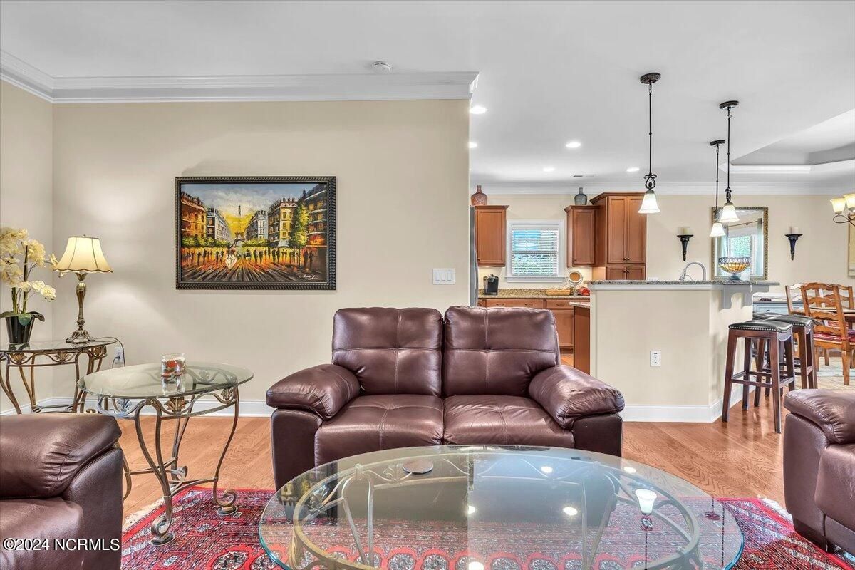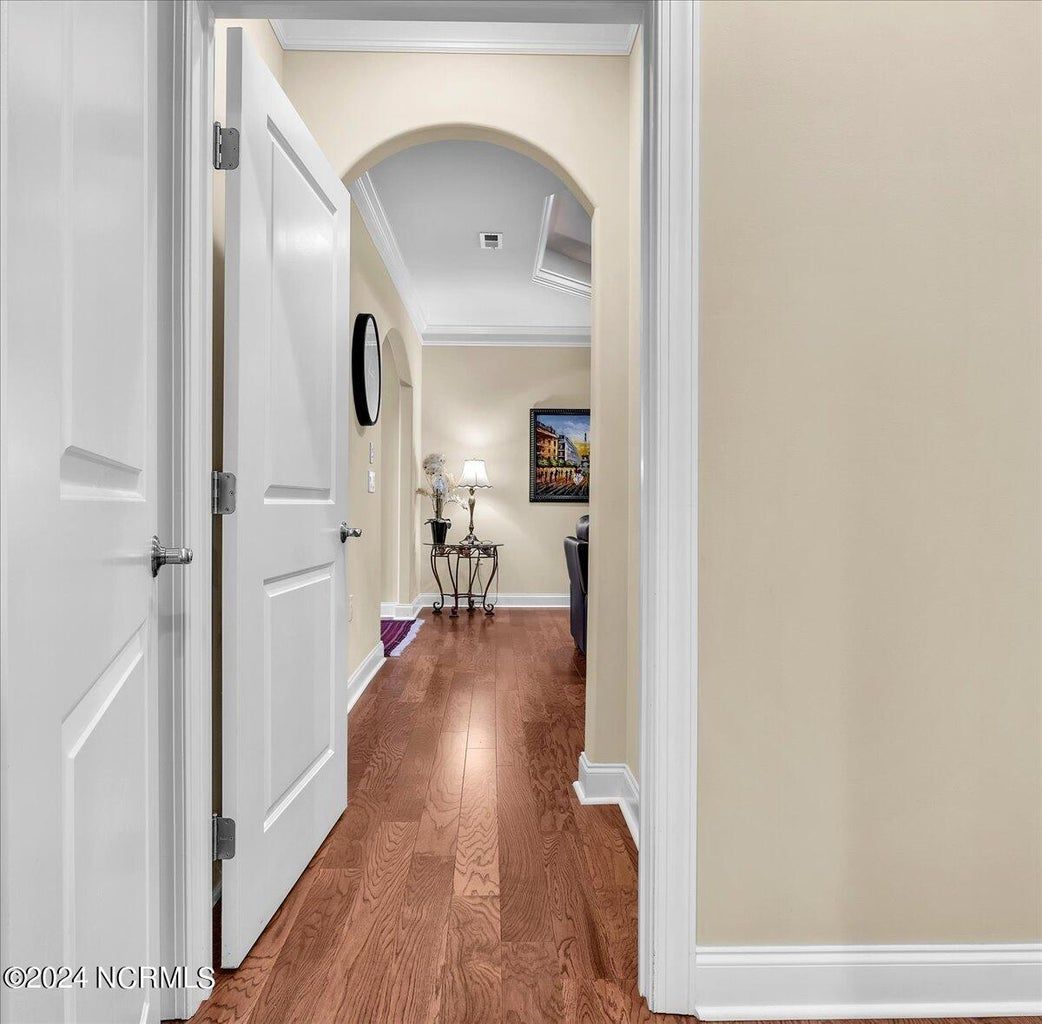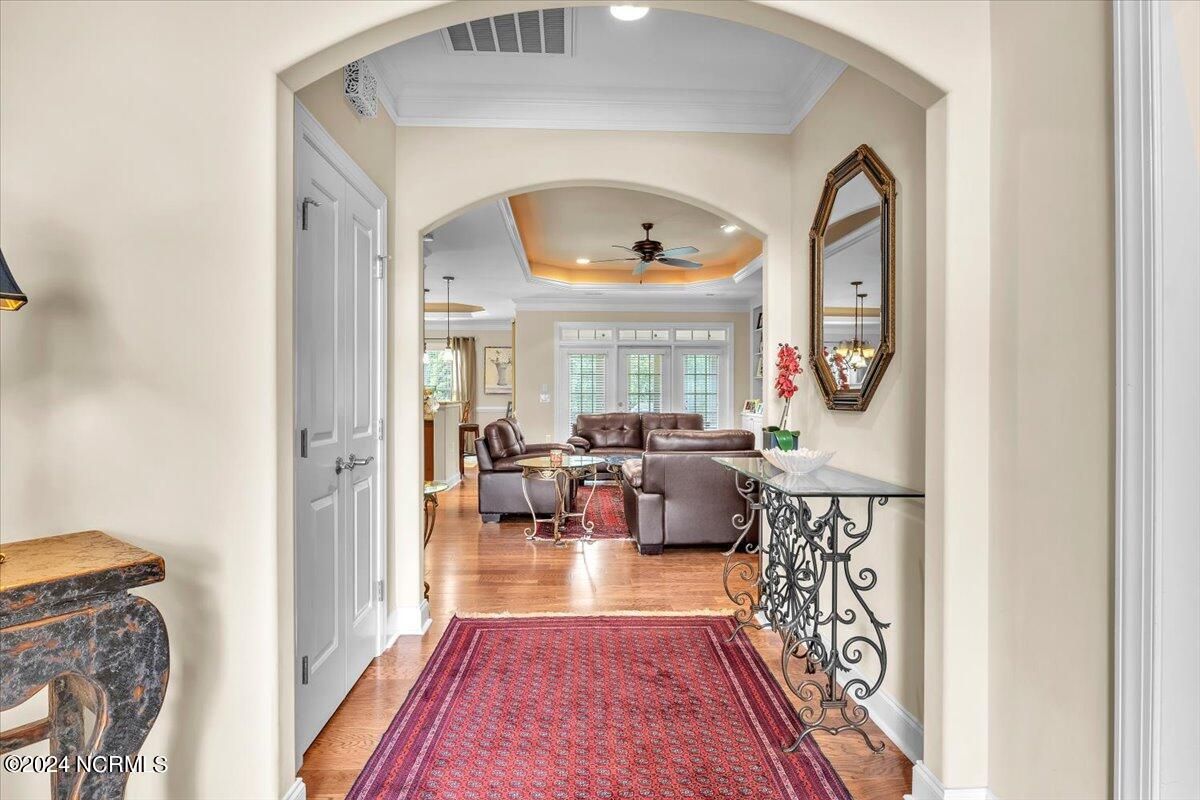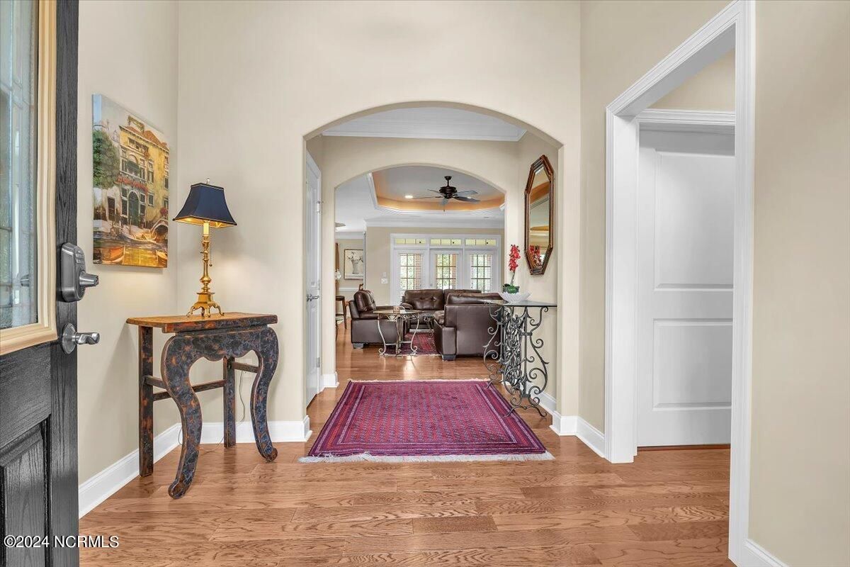 Beautiful townhome now available in The Reserve section. This was once the model home so it has a lot of upgrades over the standard models. Some of the upgrades include Crown moulding throughout except for the baths, Speakers for surround sound in the Living room and Sunroom, Backlighting in the tray ceilings in the Living room, Dining room and Primary bedroom. Zero entry garage recently repainted, with extra storage closet. Wood floors throughout except for the baths and the Bonus room. Lovely architectural features such as arched door frames. The Bonus room has it's own private bath and walk in access to the attic for storage! On the first floor, there is a beautiful office space with a large bay window. Kitchen has a reverse osmosis system under the sink. The Sunroom was closed in with windows and can be used as a three season room. When you enter the Foyer, it feels so large with the 12 foot ceilings. This is an end unit on a corner lot so it feels like you have a lot of privacy. And to top it all off, there is nice aesthetic lighting outside that illuminates at night so perfectly! The amenities in Compass Pointe are incredible with indoor and outdoor pools, Lazy river, The Grande Lanai where you can gather with friends, Tennis and Pickleball courts, a Wellness center, Walking and Biking trails, and even a Dog Park for your favorite furry friends. If you love golf, there's even an 18 hole putting course and driving range that you can join. Compass Pointe is a true sense of community!