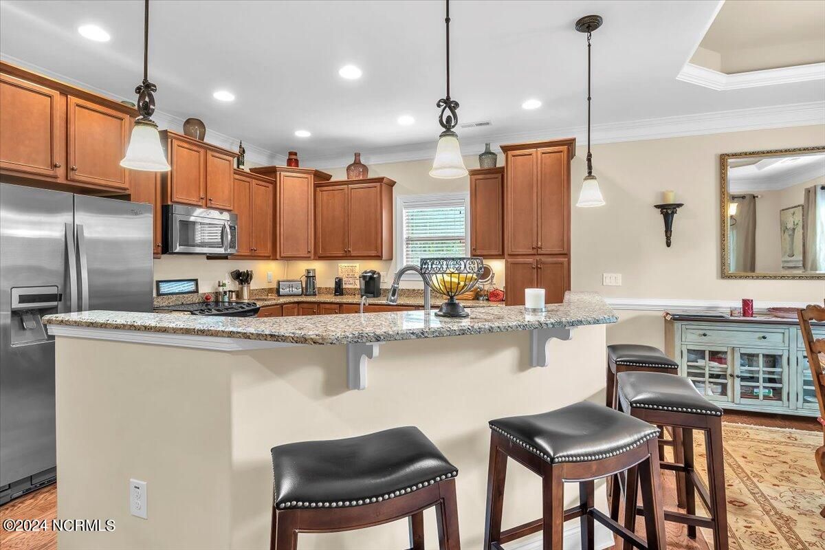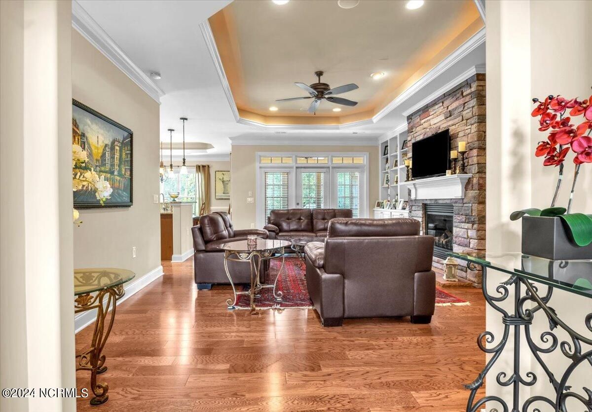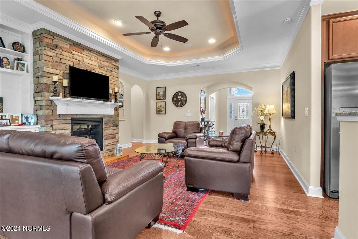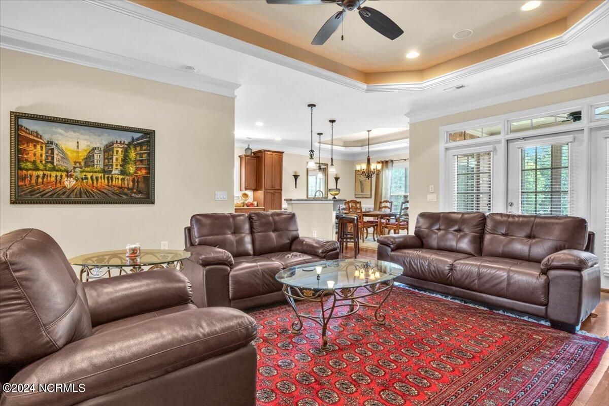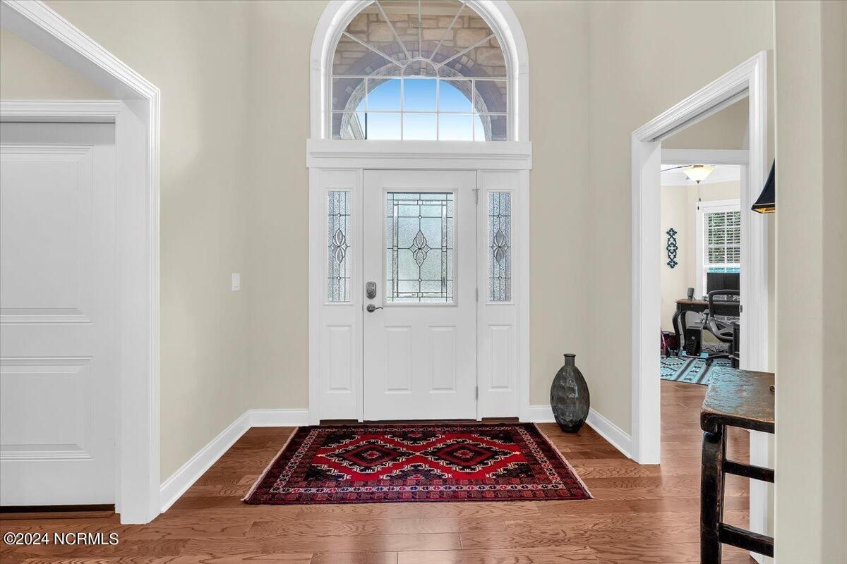 Beautiful townhome now available in The Reserve section. This was once the model home so it has a lot of upgrades over the standard models. Some of the upgrades include Crown moulding throughout except for the baths, Speakers for surround sound in the Living room and Sunroom, Backlighting in the tray ceilings in the Living room, Dining room and Primary bedroom. Zero entry garage recently repainted, with extra storage closet. Wood floors throughout except for the baths and the Bonus room. Lovely architectural features such as arched door frames. The Bonus room has it's own private bath and walk in access to the attic for storage! On the first floor, there is a beautiful office space with a large bay window. Kitchen has a reverse osmosis system under the sink. The Sunroom was closed in with windows and can be used as a three season room. When you enter the Foyer, it feels so large with the 12 foot ceilings. This is an end unit on a corner lot so it feels like you have a lot of privacy. And to top it all off, there is nice aesthetic lighting outside that illuminates at night so perfectly! The amenities in Compass Pointe are incredible with indoor and outdoor pools, Lazy river, The Grande Lanai where you can gather with friends, Tennis and Pickleball courts, a Wellness center, Walking and Biking trails, and even a Dog Park for your favorite furry friends. If you love golf, there's even an 18 hole putting course and driving range that you can join. Compass Pointe is a true sense of community!