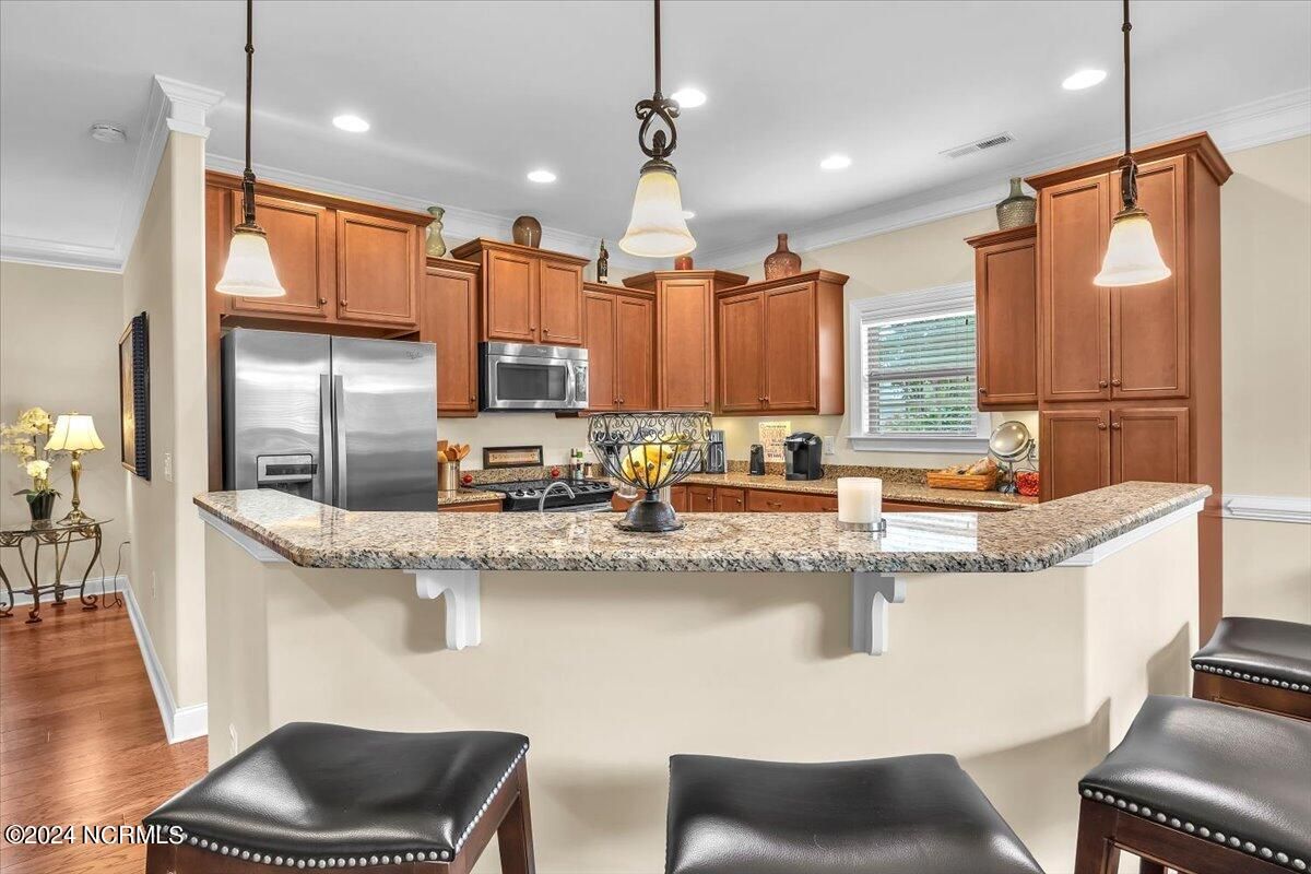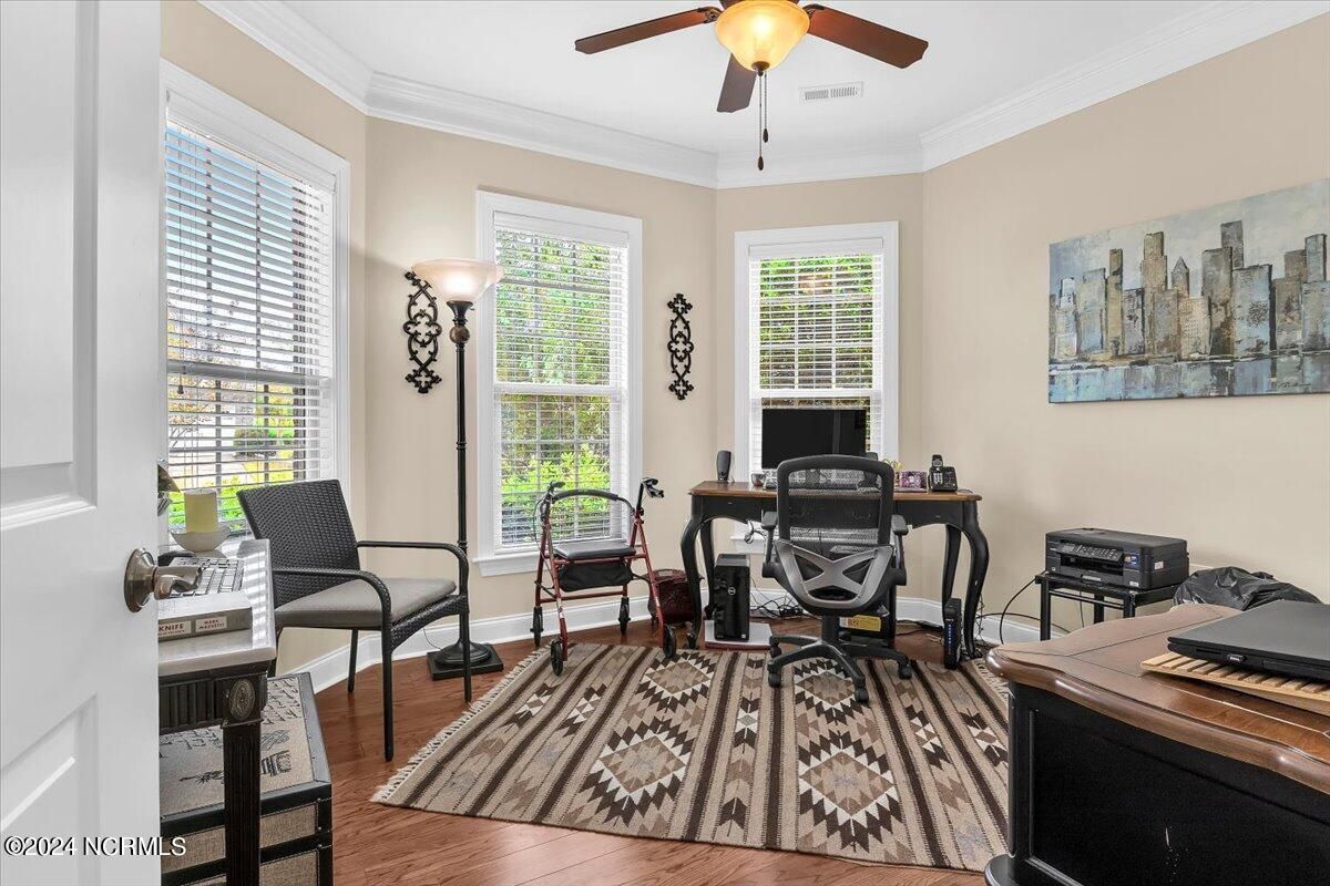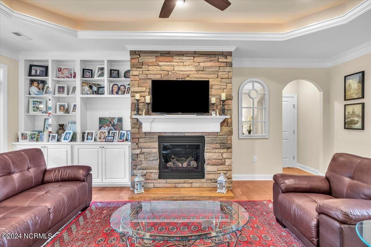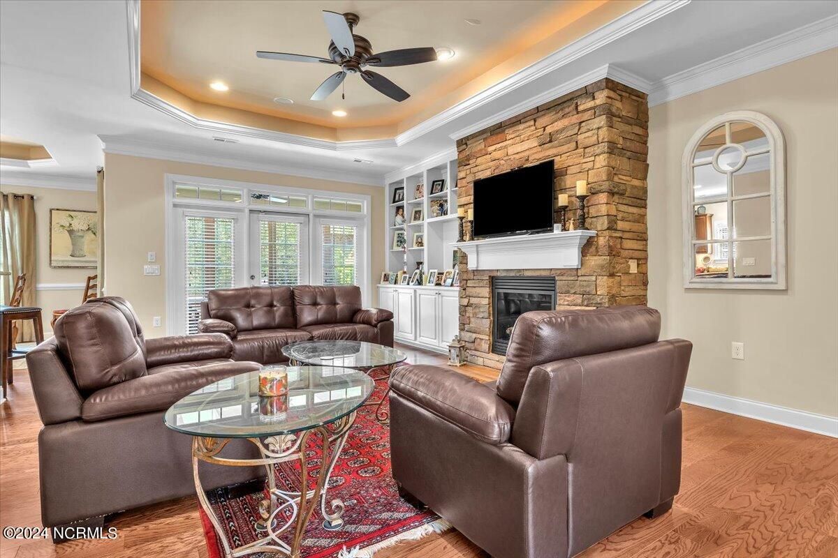 Beautiful townhome now available in The Reserve section. This was once the model home so it has a lot of upgrades over the standard models. Some of the upgrades include Crown moulding throughout except for the baths, Speakers for surround sound in the Living room and Sunroom, Backlighting in the tray ceilings in the Living room, Dining room and Primary bedroom. Zero entry garage recently repainted, with extra storage closet. Wood floors throughout except for the baths and the Bonus room. Lovely architectural features such as arched door frames. The Bonus room has it's own private bath and walk in access to the attic for storage! On the first floor, there is a beautiful office space with a large bay window. Kitchen has a reverse osmosis system under the sink. The Sunroom was closed in with windows and can be used as a three season room. When you enter the Foyer, it feels so large with the 12 foot ceilings. This is an end unit on a corner lot so it feels like you have a lot of privacy. And to top it all off, there is nice aesthetic lighting outside that illuminates at night so perfectly! The amenities in Compass Pointe are incredible with indoor and outdoor pools, Lazy river, The Grande Lanai where you can gather with friends, Tennis and Pickleball courts, a Wellness center, Walking and Biking trails, and even a Dog Park for your favorite furry friends. If you love golf, there's even an 18 hole putting course and driving range that you can join. Compass Pointe is a true sense of community!