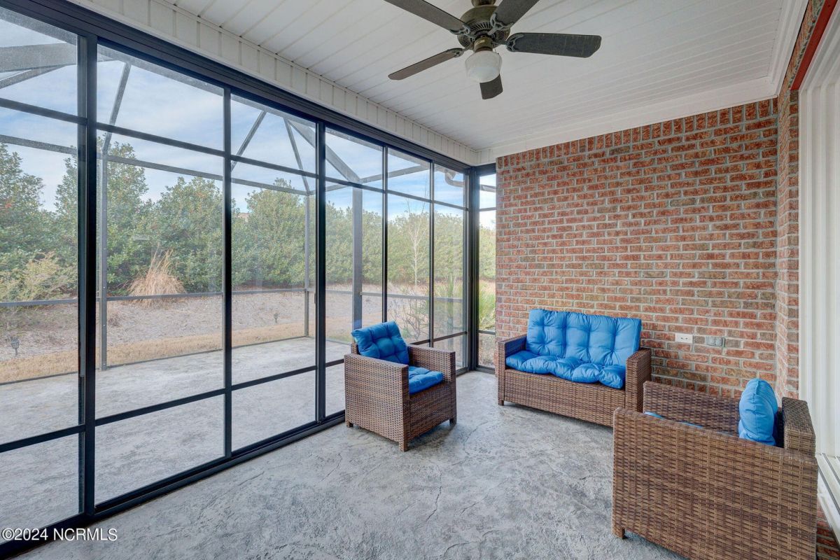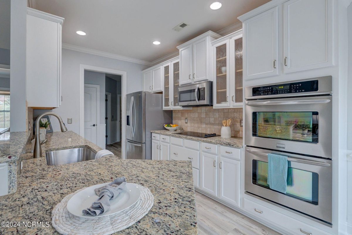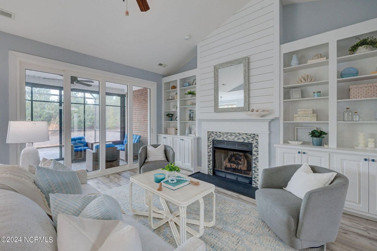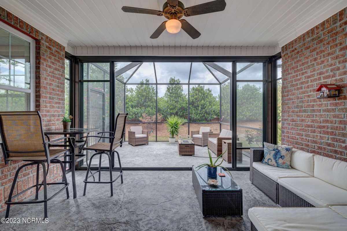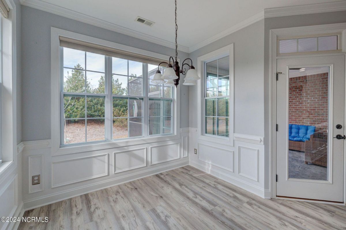This beautiful, better than new brick home in Compass Pointe has 4 spacious bedrooms and 3 full baths. With 2260 heated square feet, features include brand new LVP flooring in all the main living areas, new carpet in bedrooms, newly refinished kitchen cabinetry with tile backsplash, plenty of interior trim and wainscoting and fresh designer color wall paint throughout. The gourmet cooking Kitchen with granite countertops overlooks a spacious Living Room with vaulted ceiling, shiplap accent wall with gas fireplace and custom built-ins bookcases. The Kitchen features upgraded stainless steel appliances, wall oven, cooktop with overhead vent system and built-in microwave...perfect for entertaining! There's also a formal dining and separate breakfast room. Beyond the spacious Living Room is a 4-panel retractable sliding glass door leading out to an All-seasons Sunroom, letting in tons of natural light! There is also an attached Lanai screen porch for added outdoor-living enjoyment! The large Master Bedroom suite is on the first floor in its own separate wing of the Home and features a trayed ceiling and separate his & her closets, tiled shower and a large double sink vanity with granite countertop. There are two more spacious Bedrooms with a Guest Bath on the opposite wing of the first floor. Upstairs is a Bonus Room for a perfect Home Office or 4th Bedroom with its own full bath, overtop of a spacious 2 car garage. The Home is turn-key, move-in ready for a new owners' immediate enjoyment without any work needing to be done! This home is conveniently located to the Compass Pointe Golf and amenities complex & the 24/7 security gated entrance. Come quickly and see this beautiful Home. You won't be disappointed!