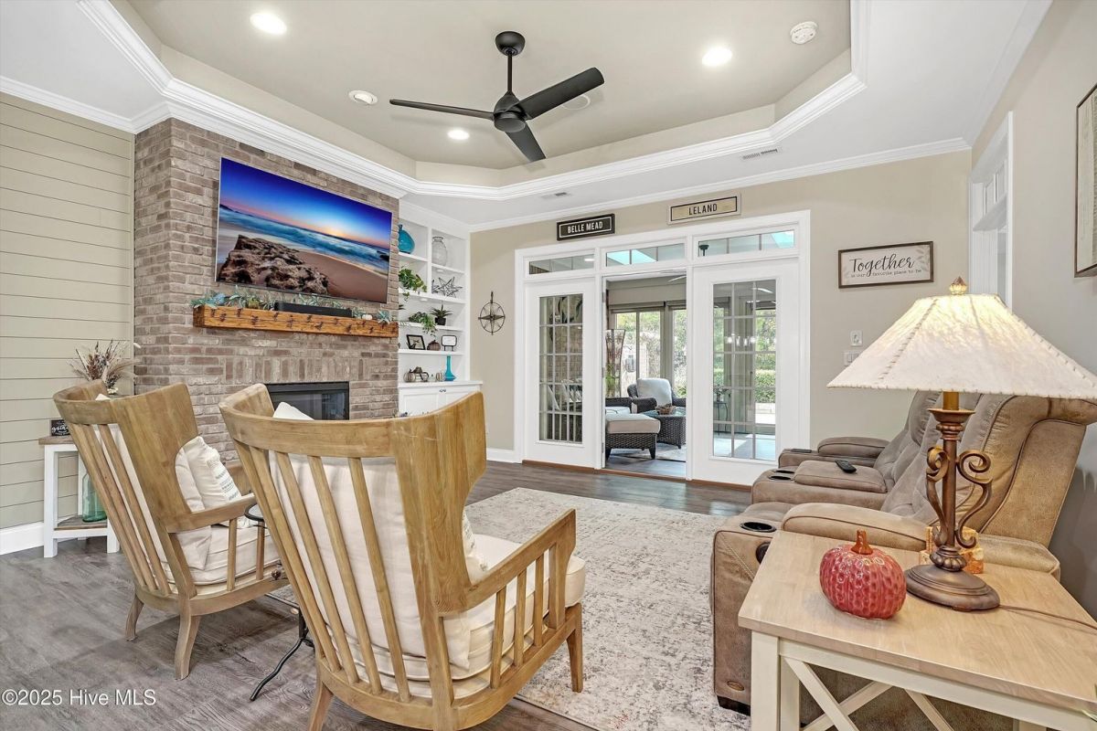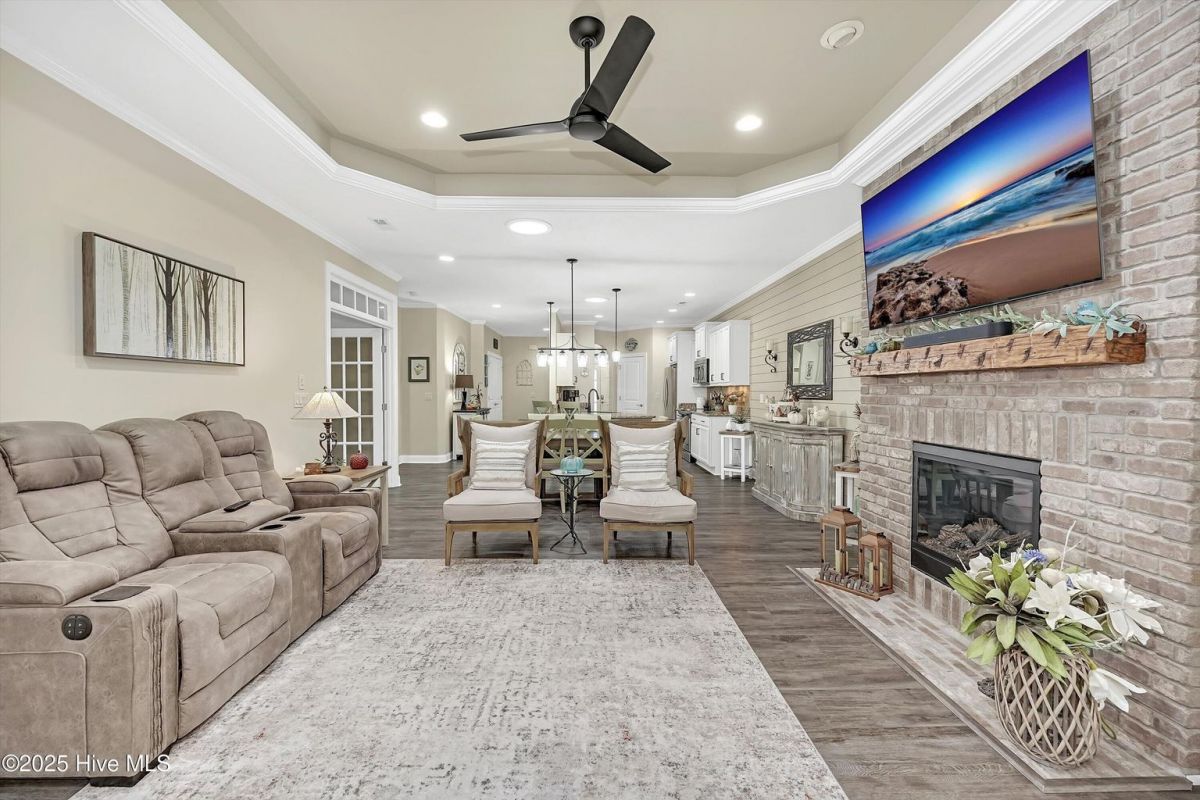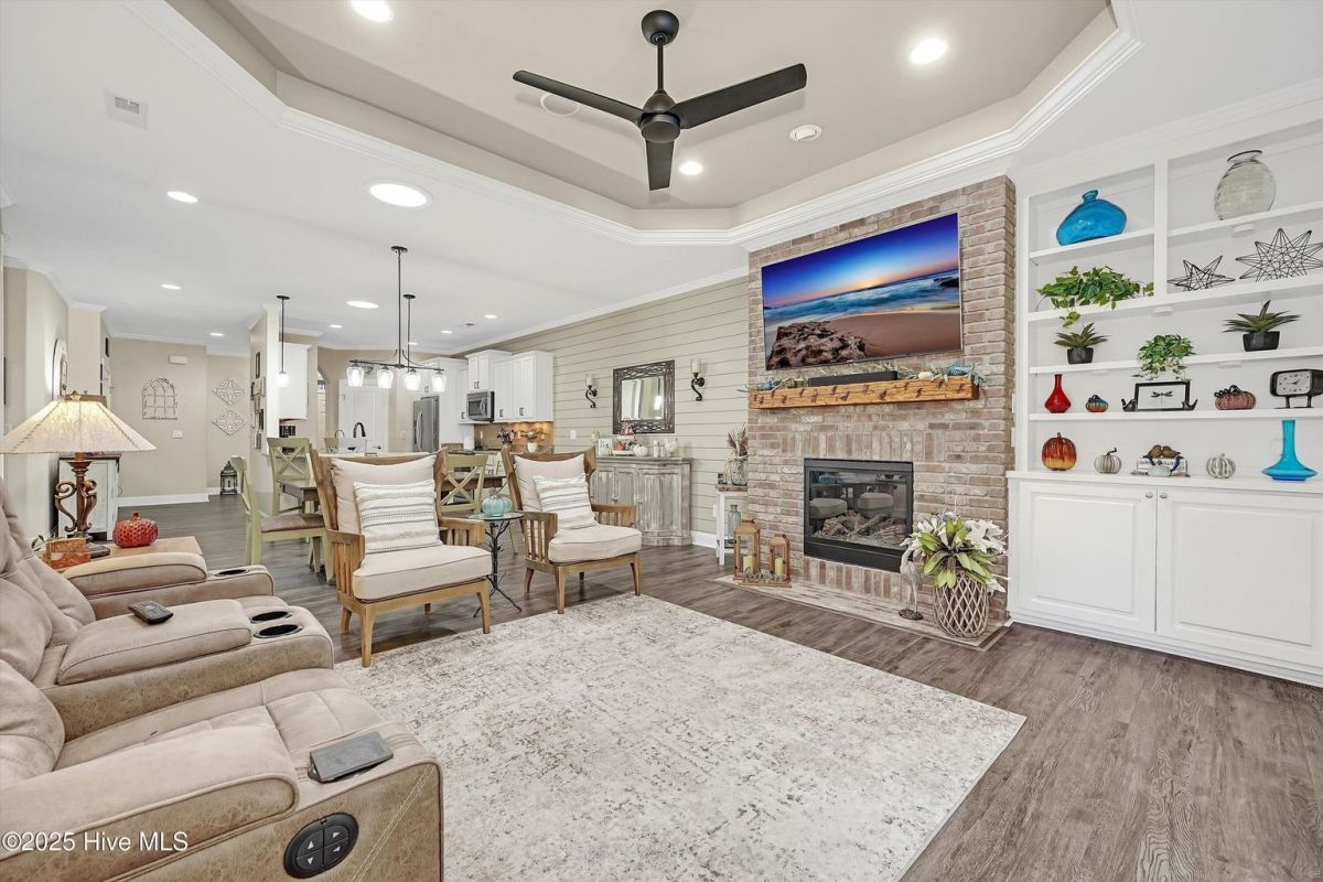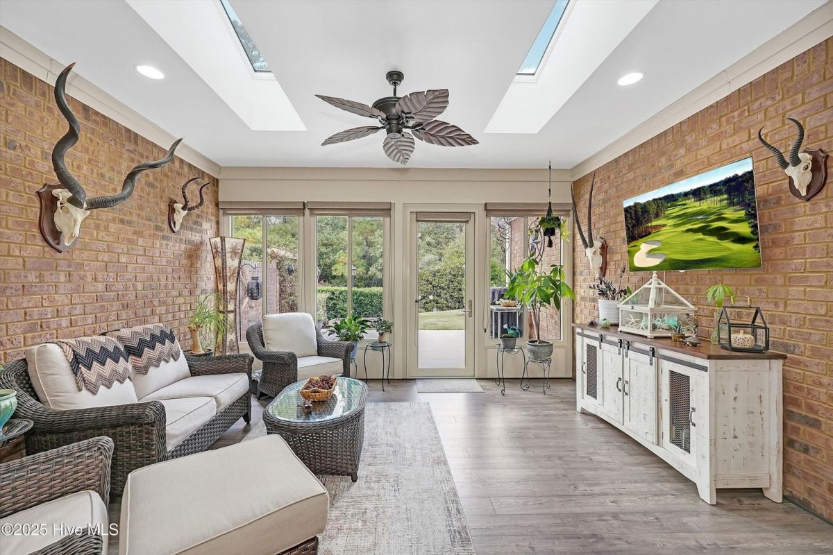 Welcome to Compass Pointe, a gated community rich in amenities and designed for exceptional Resort Style Living! This stunning, move-in-ready townhome has been completely updated with the last two years! With its charming curb appeal and modern upgrades, this home offers both style and comfort. Step inside to discover new LVP flooring and plush carpeting, creating a warm and inviting atmosphere. The sunroom has been enclosed with glass and features new window shades, making it the perfect spot to relax year-round. The remodeled fireplace, complete with a brick surround and custom wood mantle, serves as a stunning focal point in the living area. The kitchen has been tastefully updated with professionally painted cabinets and includes a reverse osmosis system under the sink for pure, clean water. The entire home has been freshly painted, featuring a stylish accent shiplap wall in the Dining area, complete with all new ceiling fans, all new lighting fixtures as well as new smart thermostats and more. Every detail of this home has been thoughtfully designed for both aesthetics and functionality. The exterior of this townhome is beautifully enhanced with new landscape lighting and a stone-accented front yard, adding to its charming curb appeal. In the back, the expanded patio features a stylish porcelain tile overlay, offering a perfect space to relax while enjoying the private and serene views. This townhome is also Located in walking distance to all the amenities, including indoor/outdoor pools, lazy river, tennis/Pickleball courts fitness centers and more, this townhome is a must-see. Don't miss your opportunity to enjoy luxury living in Compass Pointe!