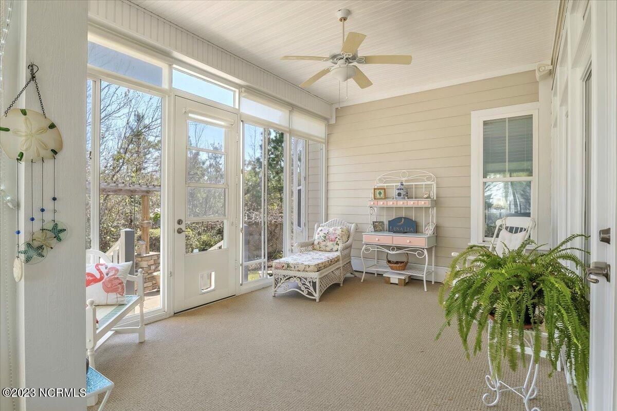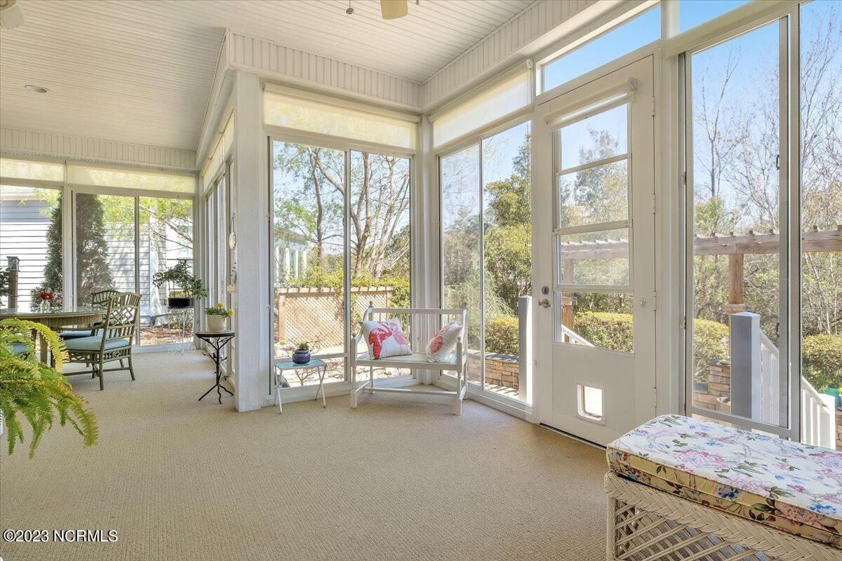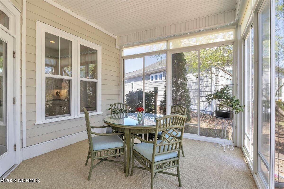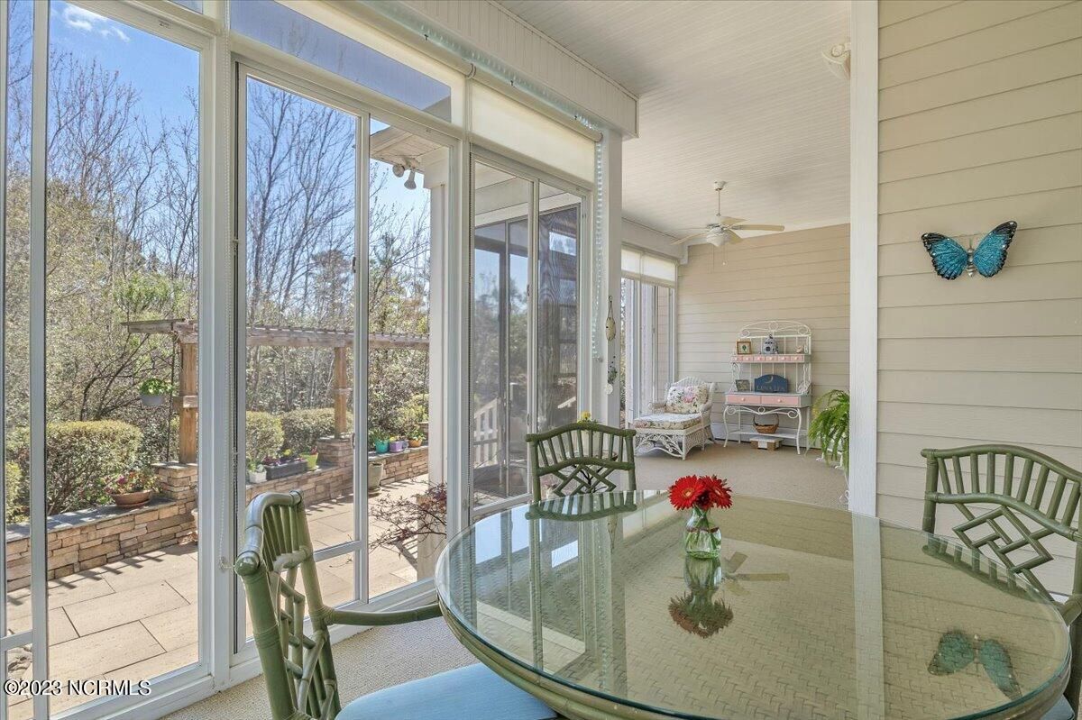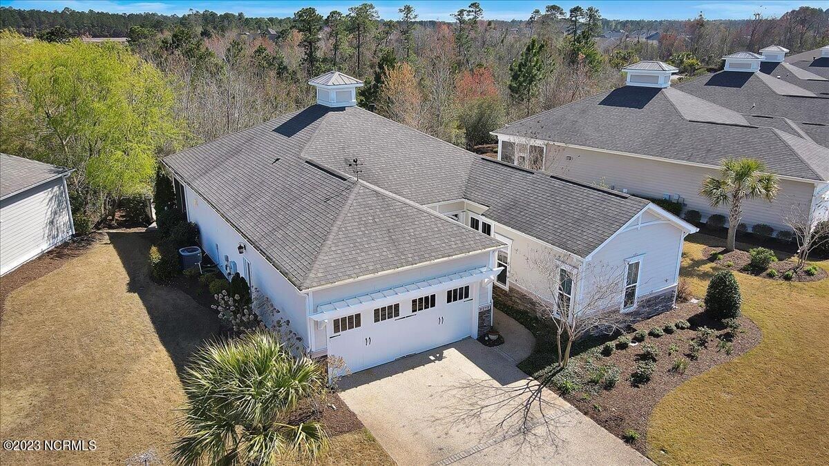 Timing is everything and if the time is right for you, this Grand Bahama floor plan, built by highly regarded Hagood Homes of Wilmington, is likely a really good fit. You'll be delighted to learn about the activities and recreational facilities here at Compass Pointe as well. Not to mention, you would have a 2-minute walk to one of the most amenity rich centers in the area. Before we go there, let's visit 8278 Cabana Ct. You'll love the curb appeal of this one-level home, offering adequate parking off of a cul-de-sac road along with a tranquil, private wooded lot. The entry-way was designed so well that it gives a feeling of warmth and is so incredibly welcoming! You'll love the open concept of the dining room, great room and kitchen as well as the separation between the main bedroom and the guest bedrooms. The main living areas have beautiful hardwood floor coverings with features/upgrades throughout to include built-in's, vaulted ceilings, fireplace, crown moldings, custom cabinets, slow close drawers, transoms, wired for sound, wainscoting, granite counters, stainless appliances, huge master bedroom and closet, ZERO entry master shower, tile floor coverings....it's a long list. The interior offers a full laundry room, two additional guest bedrooms and a ''flex room'' that could be used for anything you like! If it's outdoor space that you like or, ''half-in, half-out'' space, the 330 sq/ft sunroom will delight and keep you occupied with gardening or just relaxing on those lazy Carolina days. The private outdoor space should not be overlooked, offering a tranquil pond, multiple trellis's, slate/stacked boarder wall and a generously sized solid surface patio area. Stay occupied with amenities that include a fitness center, clubhouse, lanai, pools, lazy river, golf club, tennis/pickleball, basketball, walking trails, dog park and daily/weekly group activities. If you are seeking a lot of value, here's your wake-up call.