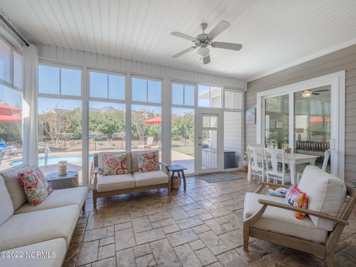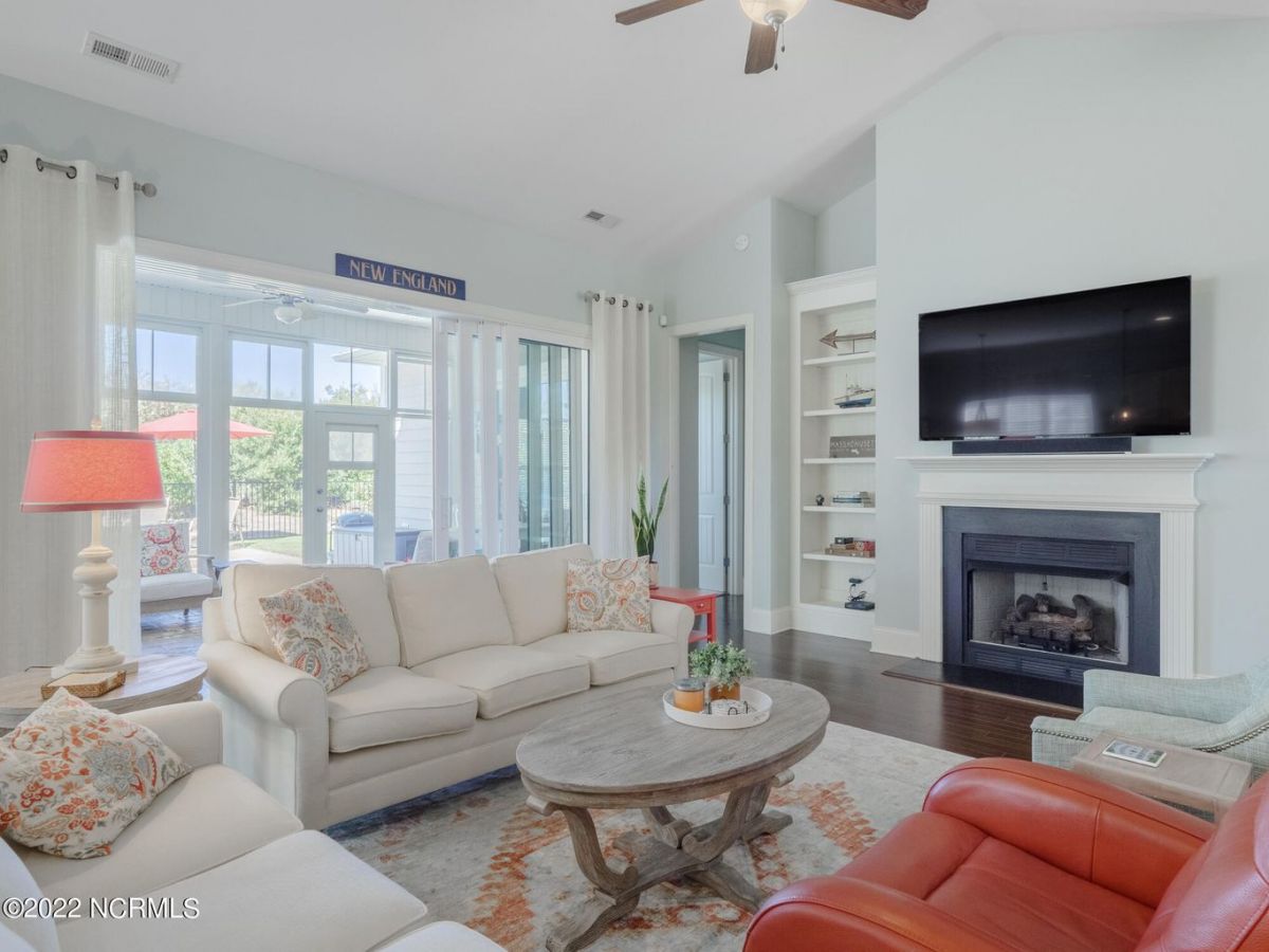 This Ruby II model built by Logan Homes has three bedrooms and 2 full baths downstairs and a large bonus room with a full bath upstairs. Through the sliders in the living area you walk into a private oasis with large EZ Breeze porch that leads to the back yard with your own saltwater pool. The area is fenced in and maturely landscaped making it the perfect place to entertain, relax, read a book or just watch the sunset . No need to build, this home is in perfect condition and has all of the finishing touches and upgrades such as built-ins, gas log fireplace, island with breakfast bar, large breakfast nook, beverage cooler, beautiful tile backsplash, large walk-in closet, tiled shower, and hardwood floors. Come see this bright, happy home today and all the resort style amenities that Compass Pointe is known for!
