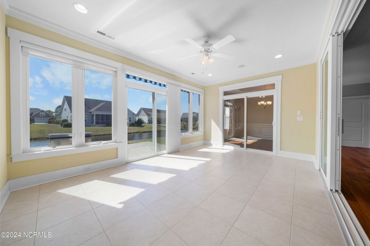 Introducing a stunning custom-built home in the gated and golf cart friendly community of Compass Pointe. This home greets you with a large, stamped concrete front porch and offers 3 bedrooms, a bonus room upstairs, 3 full bathrooms, and a true sunroom. The light and bright, spacious kitchen boasts pull-out drawers, under cabinet lighting, a gas cooktop and a large walk-in pantry. Enjoy the comfort of a true heated and cooled sunroom, while the office or bedroom up front provides versatility with hardwood floors and glass French doors. Other notable features include a whole house generator with transfer switch, whole house air purification system, and surround sound audio. Retreat to the master suite featuring a custom-tiled shower and separate walk-in closets with pocket doors. Upstairs, a large bonus room with a full bathroom awaits, alongside ample walk-in attic storage. Additional highlights include a tankless hot water heater, a large epoxied garage with an additional garage door on the side for a golf cart, and 50-year architectural shingles. Compass Pointe is a fully gated community with fabolous amenities scuh as their grand lanai, outdoor pool, lazy river, indoor pool and modern fitness center. Schedule your private showing today to see this special home!