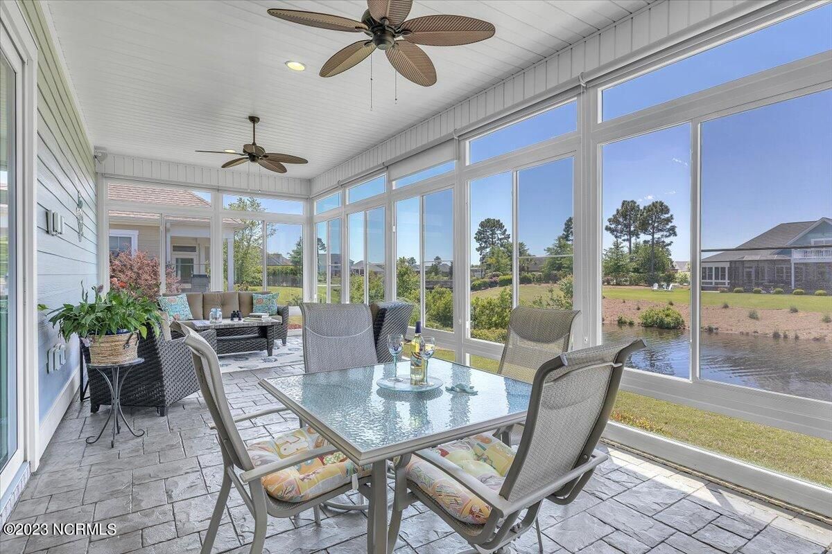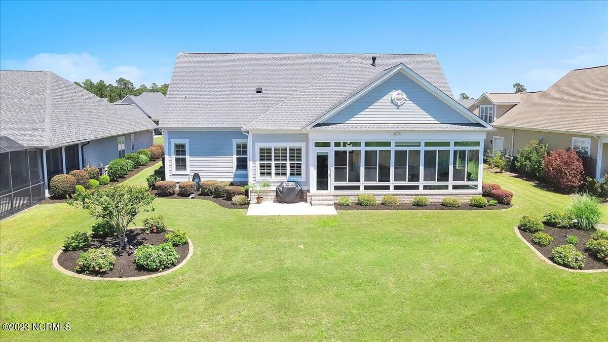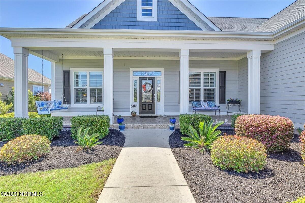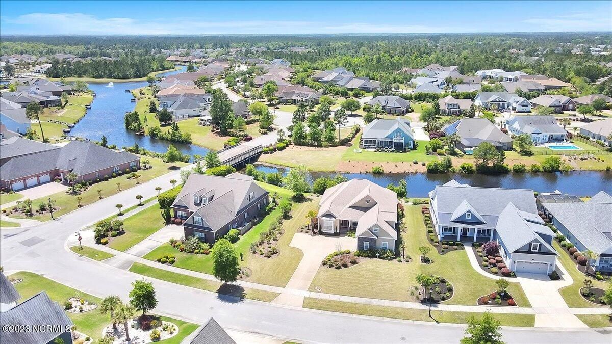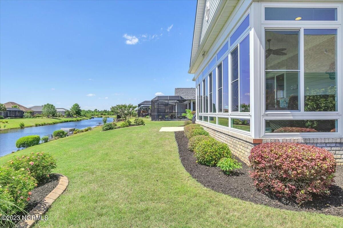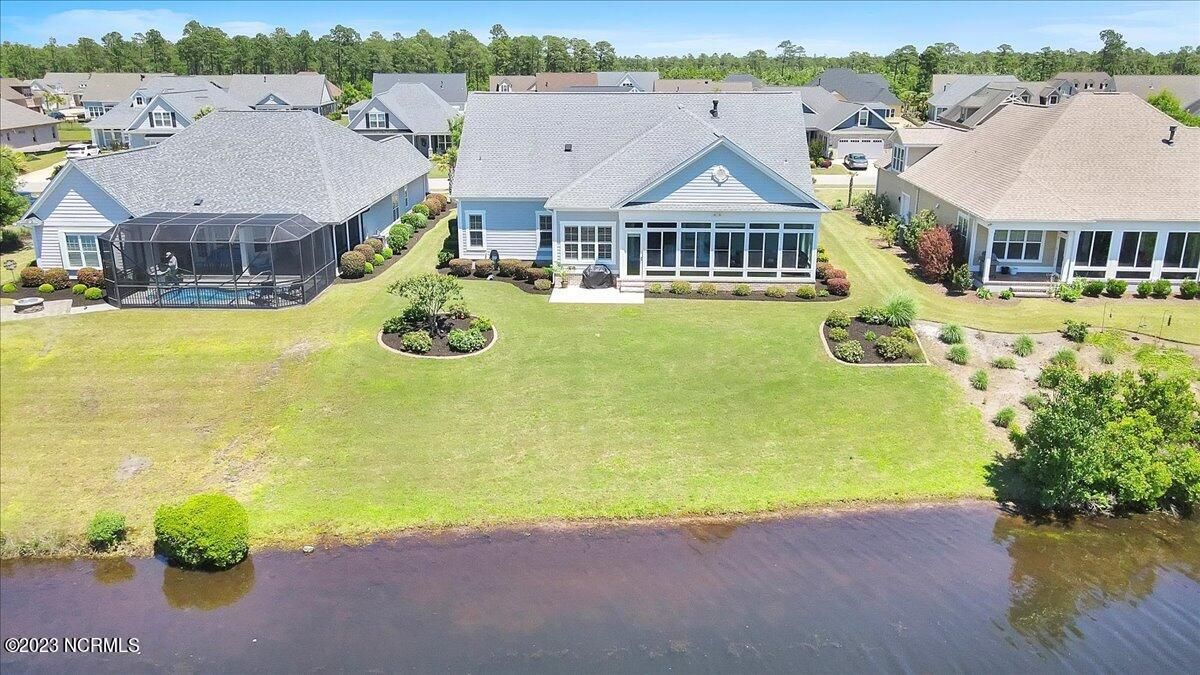 8435 N Shoreside Way, located in the beautiful Compass Pointe community of Leland, NC, is an exceptional property that exudes style, comfort, and luxury. This magnificent Liberty Built residence is a 3-bedroom, 3-bathroom home features an open floor plan that seamlessly connects the living, dining, and kitchen areas, creating a spacious and inviting living space. Not to mention an additional Bonus room with full Bath located upstairs. As you step inside, you'll be greeted by the stunning great room with its soaring ceilings, elegant fireplace, and large windows that flood the space with natural light. The gourmet kitchen is a chef's dream, boasting top-of-the-line appliances, granite countertops, custom cabinets, and a spacious island with bar seating. The adjacent open dining area is perfect for entertaining, with plenty of space for a large table The primary suite is a true oasis, featuring a spacious bedroom with tray ceiling, a luxurious spa-like bathroom with dual vanities, a soaking tub, and a separate shower, and a huge walk-in closet with custom shelving. The two additional bedrooms are generously sized and offer plenty of closet space. The home also features a home office, perfect for those who work from home or need a quiet space to study. The outdoor living area is just as impressive, featuring a glassed in porch with ceiling fans, a beautifully landscaped backyard overlooking a waterfront canal. Additional features of this home include a 2-car garage, laundry room, and ample storage space throughout. Located in the highly sought-after Compass Pointe , this home offers residents access to a range of world-class amenities, including a fitness center, indoor and outdoor pools, tennis and pickleball courts, Lazy River, and a golf course. With its impeccable design, high-end finishes, and unbeatable location, 8435 N Shoreside Way is the perfect place to call home.