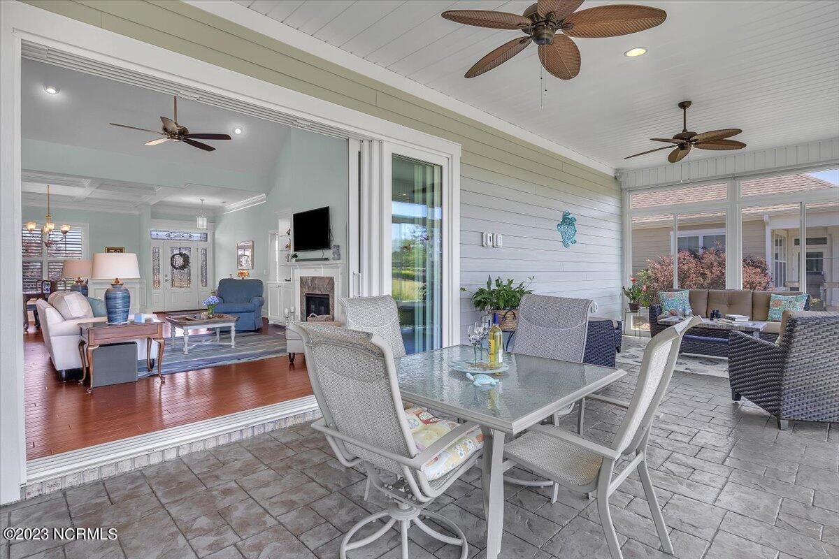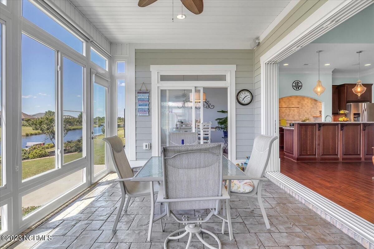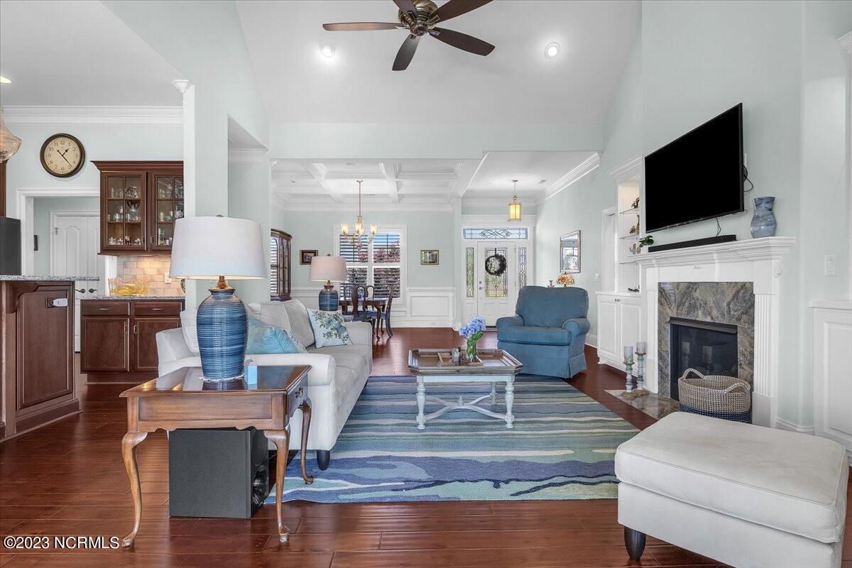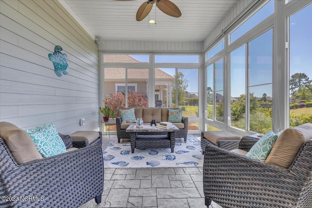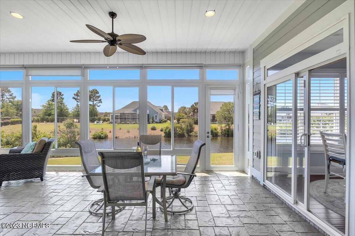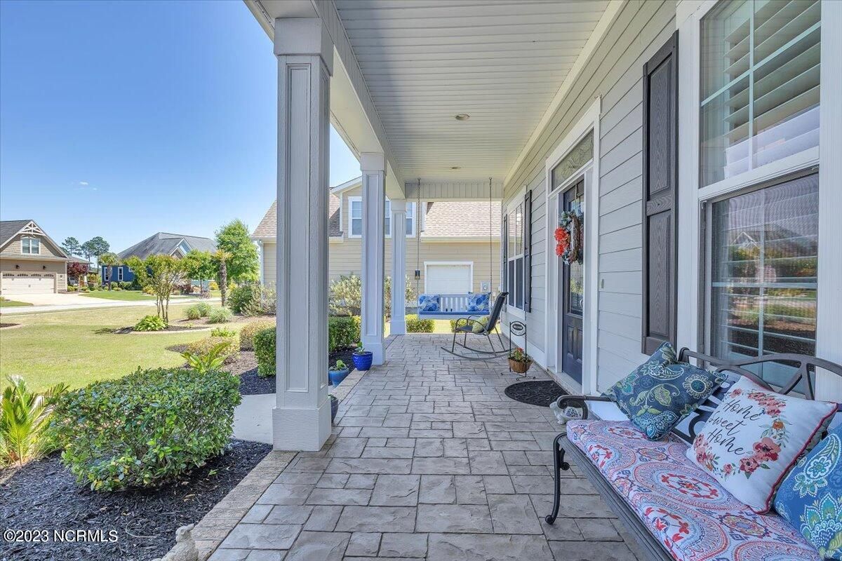 8435 N Shoreside Way, located in the beautiful Compass Pointe community of Leland, NC, is an exceptional property that exudes style, comfort, and luxury. This magnificent Liberty Built residence is a 3-bedroom, 3-bathroom home features an open floor plan that seamlessly connects the living, dining, and kitchen areas, creating a spacious and inviting living space. Not to mention an additional Bonus room with full Bath located upstairs. As you step inside, you'll be greeted by the stunning great room with its soaring ceilings, elegant fireplace, and large windows that flood the space with natural light. The gourmet kitchen is a chef's dream, boasting top-of-the-line appliances, granite countertops, custom cabinets, and a spacious island with bar seating. The adjacent open dining area is perfect for entertaining, with plenty of space for a large table The primary suite is a true oasis, featuring a spacious bedroom with tray ceiling, a luxurious spa-like bathroom with dual vanities, a soaking tub, and a separate shower, and a huge walk-in closet with custom shelving. The two additional bedrooms are generously sized and offer plenty of closet space. The home also features a home office, perfect for those who work from home or need a quiet space to study. The outdoor living area is just as impressive, featuring a glassed in porch with ceiling fans, a beautifully landscaped backyard overlooking a waterfront canal. Additional features of this home include a 2-car garage, laundry room, and ample storage space throughout. Located in the highly sought-after Compass Pointe , this home offers residents access to a range of world-class amenities, including a fitness center, indoor and outdoor pools, tennis and pickleball courts, Lazy River, and a golf course. With its impeccable design, high-end finishes, and unbeatable location, 8435 N Shoreside Way is the perfect place to call home.