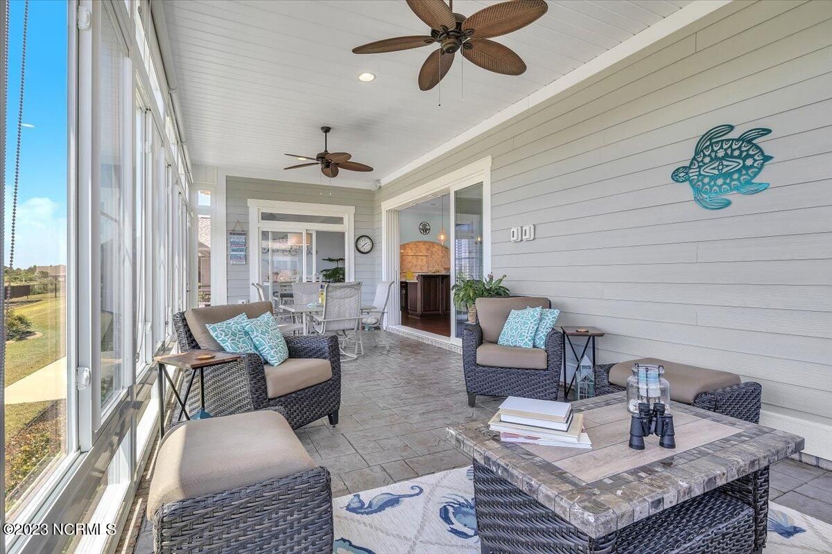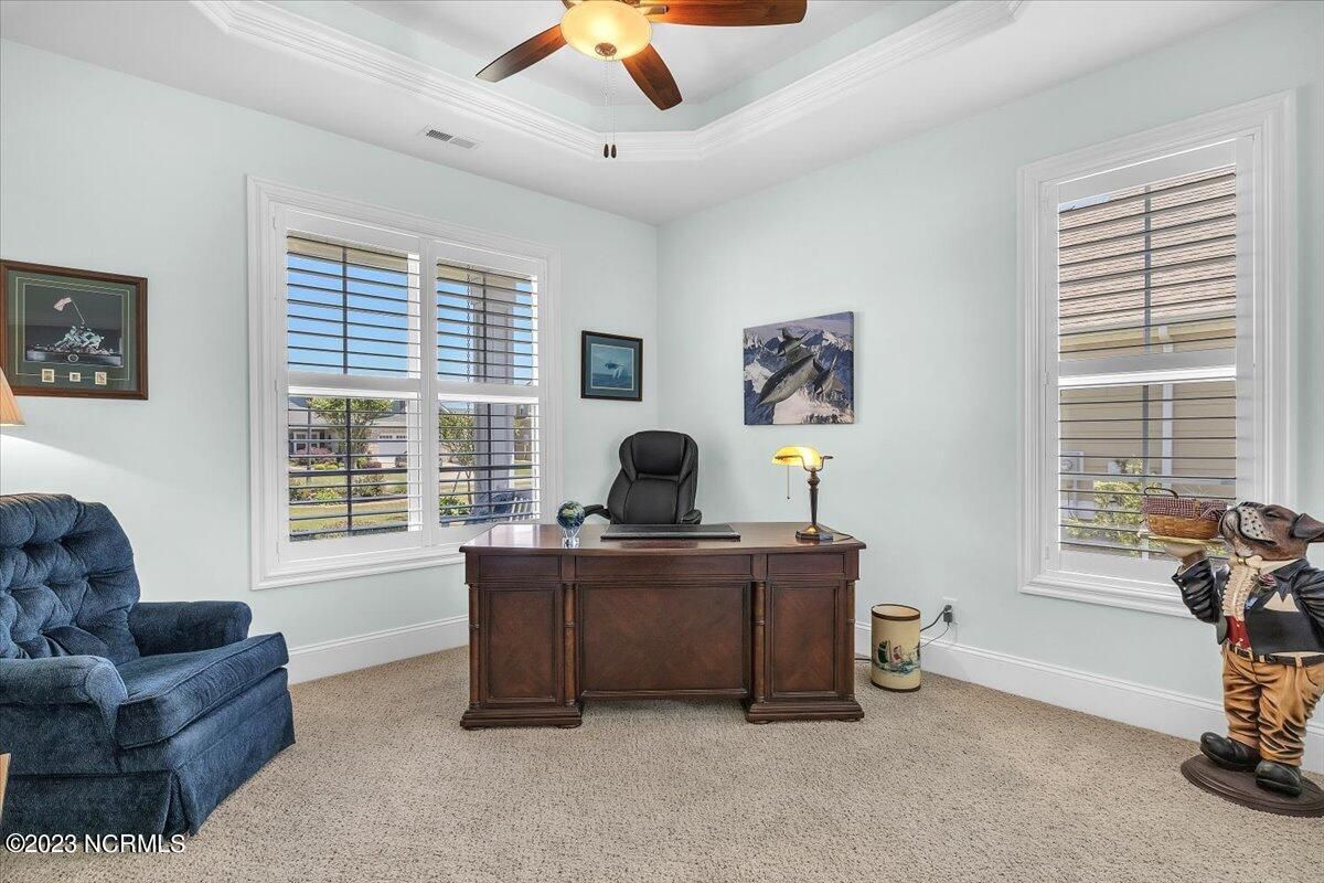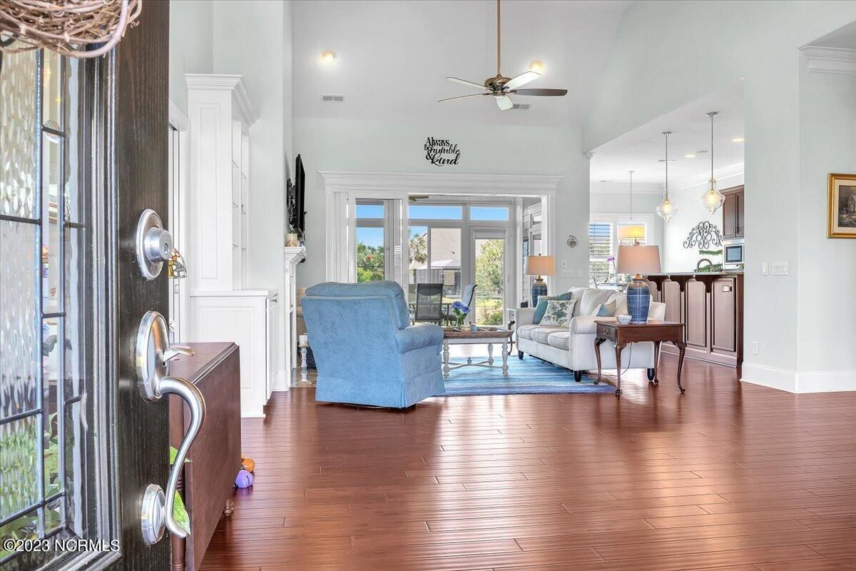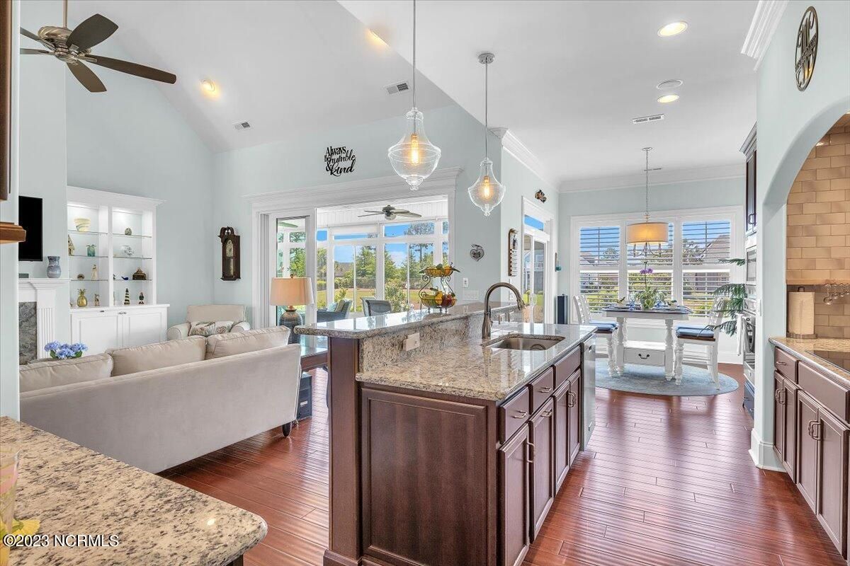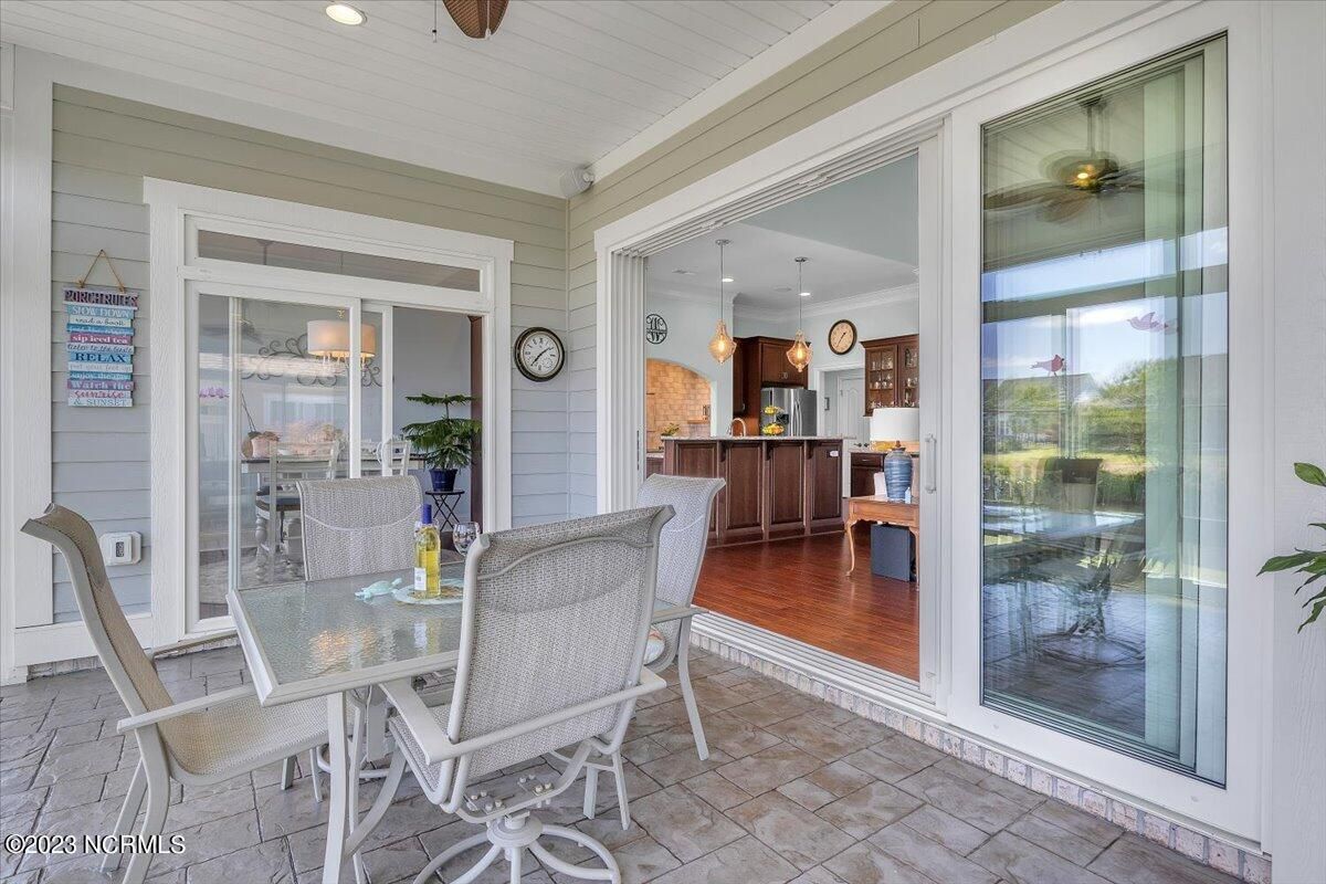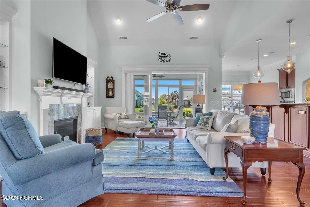 8435 N Shoreside Way, located in the beautiful Compass Pointe community of Leland, NC, is an exceptional property that exudes style, comfort, and luxury. This magnificent Liberty Built residence is a 3-bedroom, 3-bathroom home features an open floor plan that seamlessly connects the living, dining, and kitchen areas, creating a spacious and inviting living space. Not to mention an additional Bonus room with full Bath located upstairs. As you step inside, you'll be greeted by the stunning great room with its soaring ceilings, elegant fireplace, and large windows that flood the space with natural light. The gourmet kitchen is a chef's dream, boasting top-of-the-line appliances, granite countertops, custom cabinets, and a spacious island with bar seating. The adjacent open dining area is perfect for entertaining, with plenty of space for a large table The primary suite is a true oasis, featuring a spacious bedroom with tray ceiling, a luxurious spa-like bathroom with dual vanities, a soaking tub, and a separate shower, and a huge walk-in closet with custom shelving. The two additional bedrooms are generously sized and offer plenty of closet space. The home also features a home office, perfect for those who work from home or need a quiet space to study. The outdoor living area is just as impressive, featuring a glassed in porch with ceiling fans, a beautifully landscaped backyard overlooking a waterfront canal. Additional features of this home include a 2-car garage, laundry room, and ample storage space throughout. Located in the highly sought-after Compass Pointe , this home offers residents access to a range of world-class amenities, including a fitness center, indoor and outdoor pools, tennis and pickleball courts, Lazy River, and a golf course. With its impeccable design, high-end finishes, and unbeatable location, 8435 N Shoreside Way is the perfect place to call home.