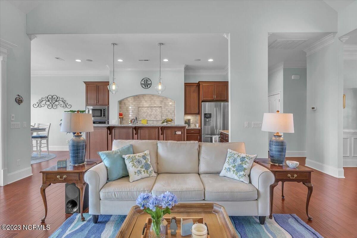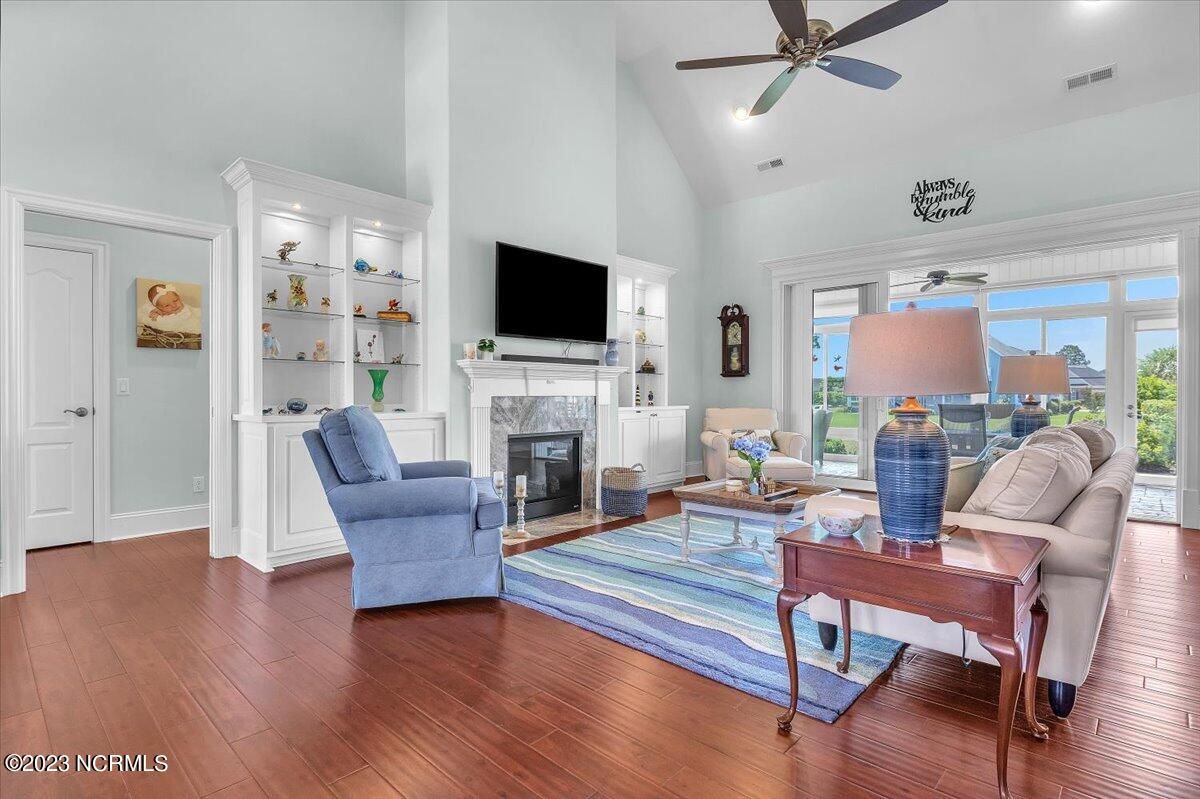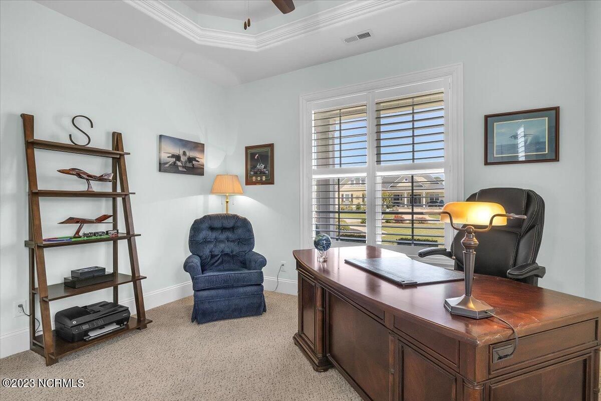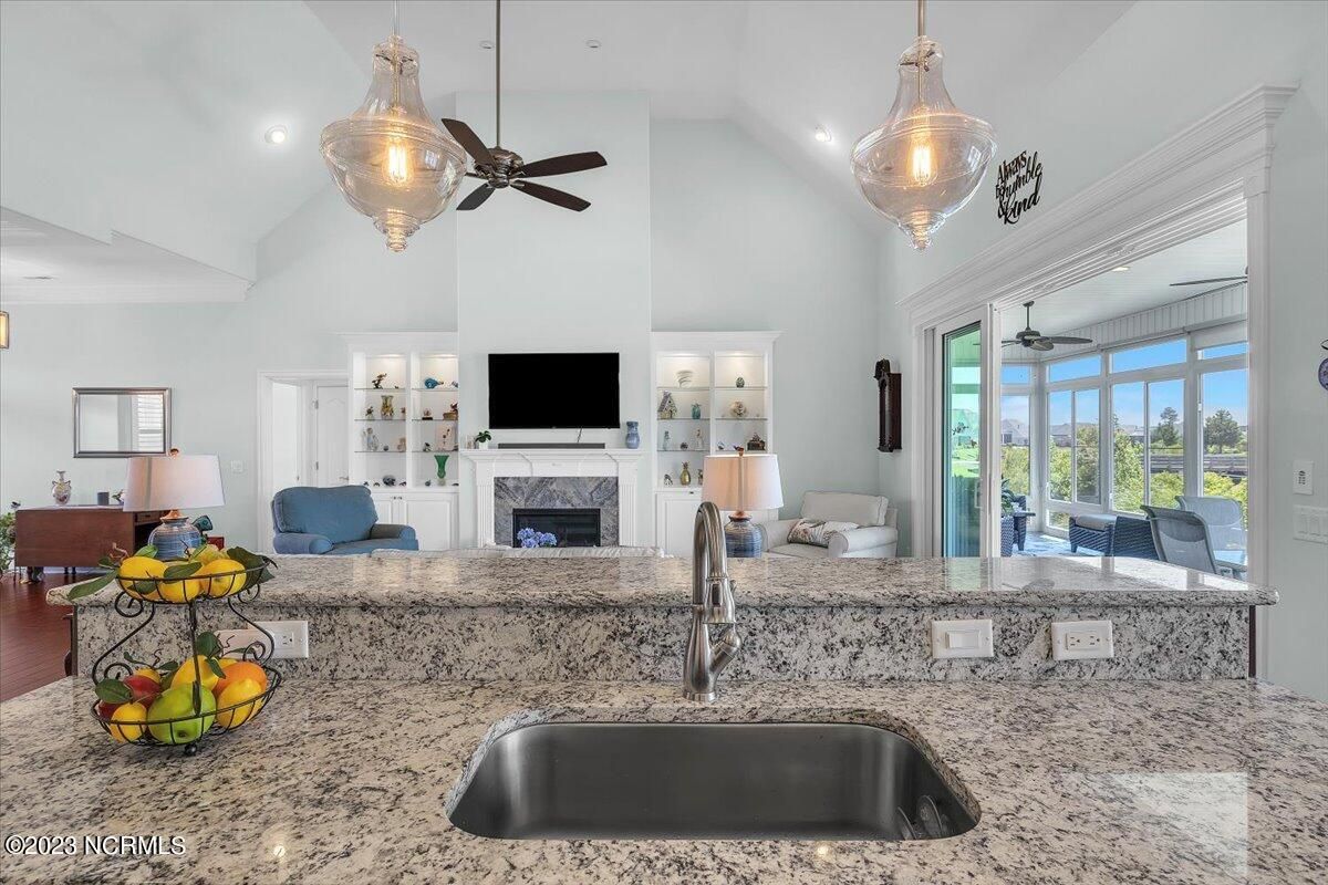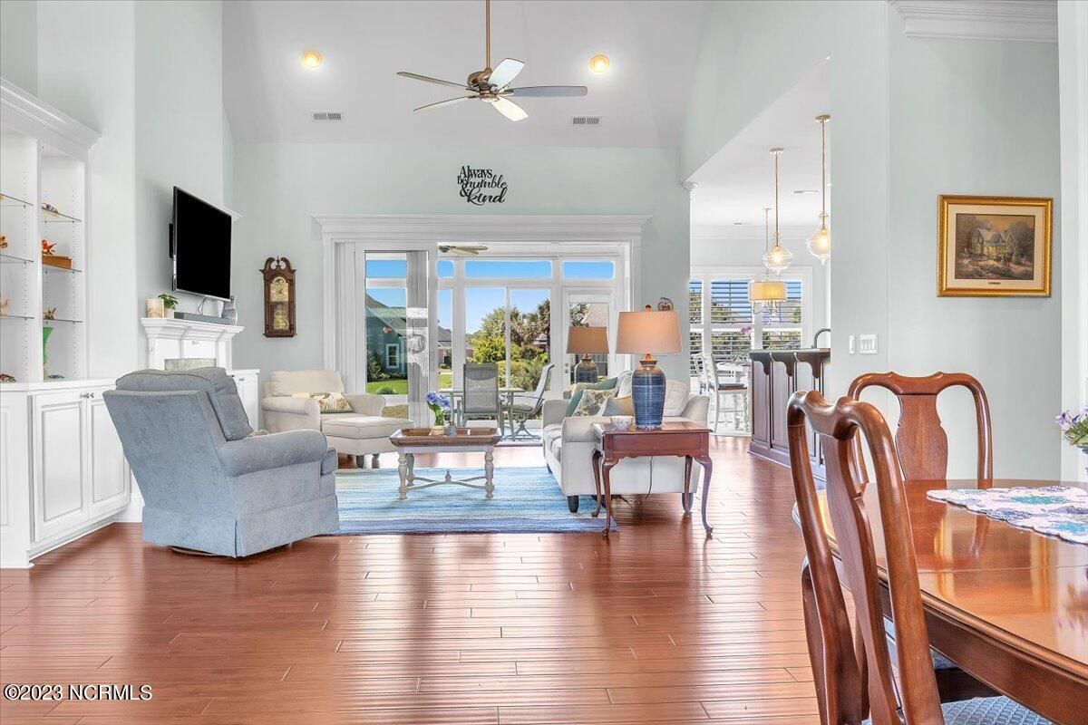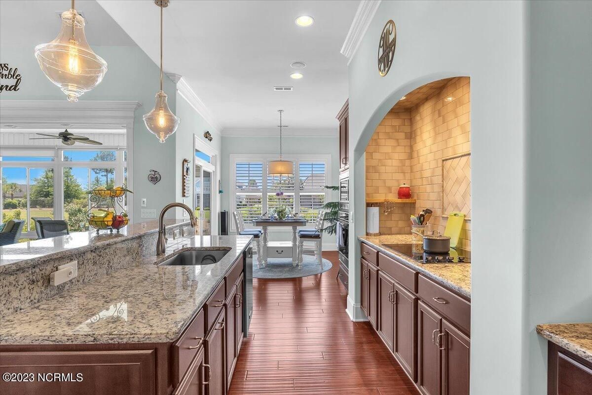 8435 N Shoreside Way, located in the beautiful Compass Pointe community of Leland, NC, is an exceptional property that exudes style, comfort, and luxury. This magnificent Liberty Built residence is a 3-bedroom, 3-bathroom home features an open floor plan that seamlessly connects the living, dining, and kitchen areas, creating a spacious and inviting living space. Not to mention an additional Bonus room with full Bath located upstairs. As you step inside, you'll be greeted by the stunning great room with its soaring ceilings, elegant fireplace, and large windows that flood the space with natural light. The gourmet kitchen is a chef's dream, boasting top-of-the-line appliances, granite countertops, custom cabinets, and a spacious island with bar seating. The adjacent open dining area is perfect for entertaining, with plenty of space for a large table The primary suite is a true oasis, featuring a spacious bedroom with tray ceiling, a luxurious spa-like bathroom with dual vanities, a soaking tub, and a separate shower, and a huge walk-in closet with custom shelving. The two additional bedrooms are generously sized and offer plenty of closet space. The home also features a home office, perfect for those who work from home or need a quiet space to study. The outdoor living area is just as impressive, featuring a glassed in porch with ceiling fans, a beautifully landscaped backyard overlooking a waterfront canal. Additional features of this home include a 2-car garage, laundry room, and ample storage space throughout. Located in the highly sought-after Compass Pointe , this home offers residents access to a range of world-class amenities, including a fitness center, indoor and outdoor pools, tennis and pickleball courts, Lazy River, and a golf course. With its impeccable design, high-end finishes, and unbeatable location, 8435 N Shoreside Way is the perfect place to call home.