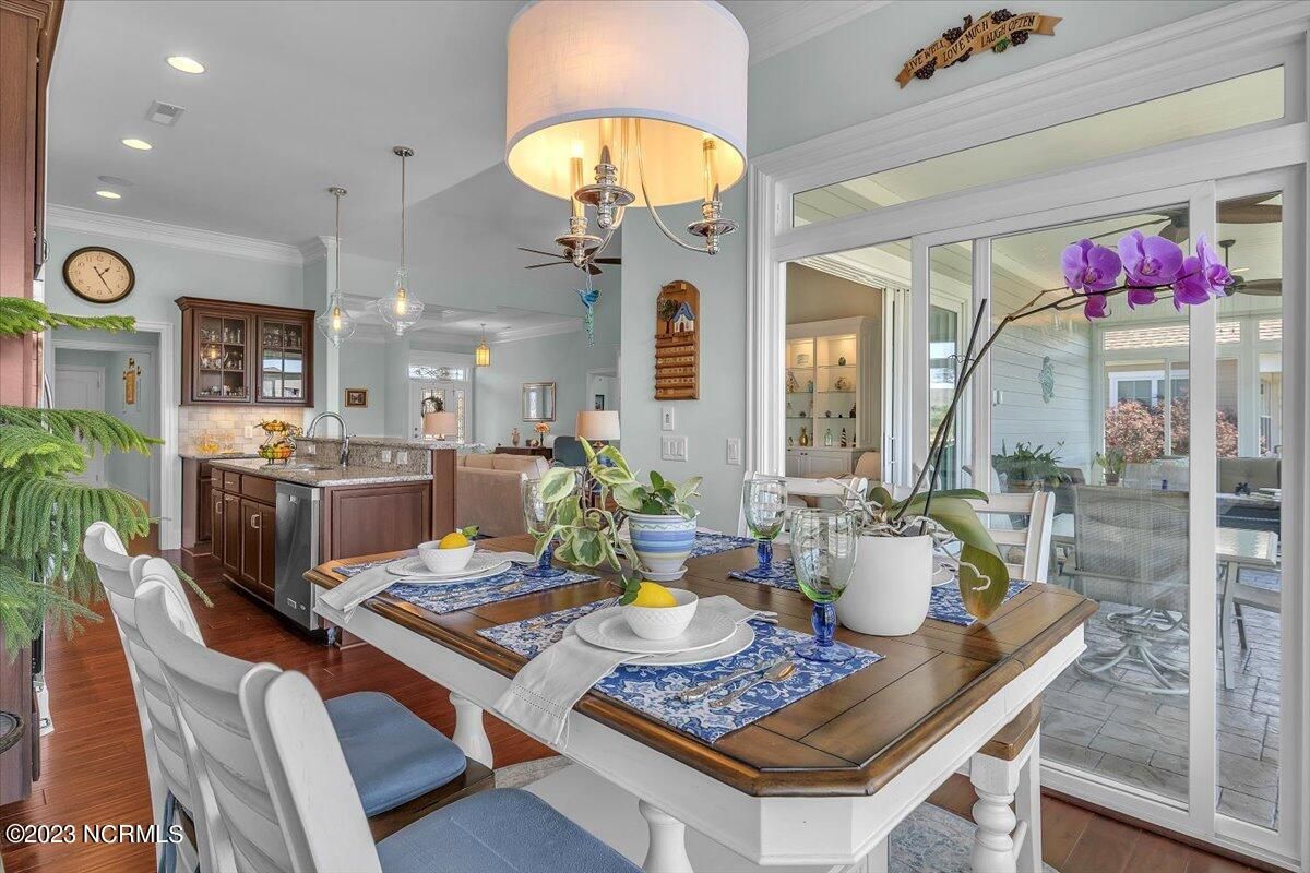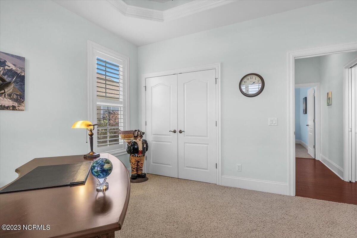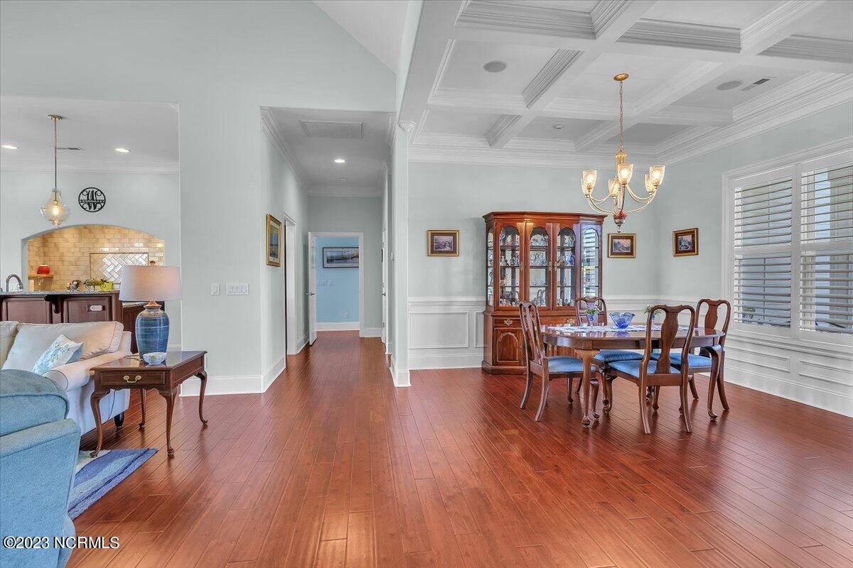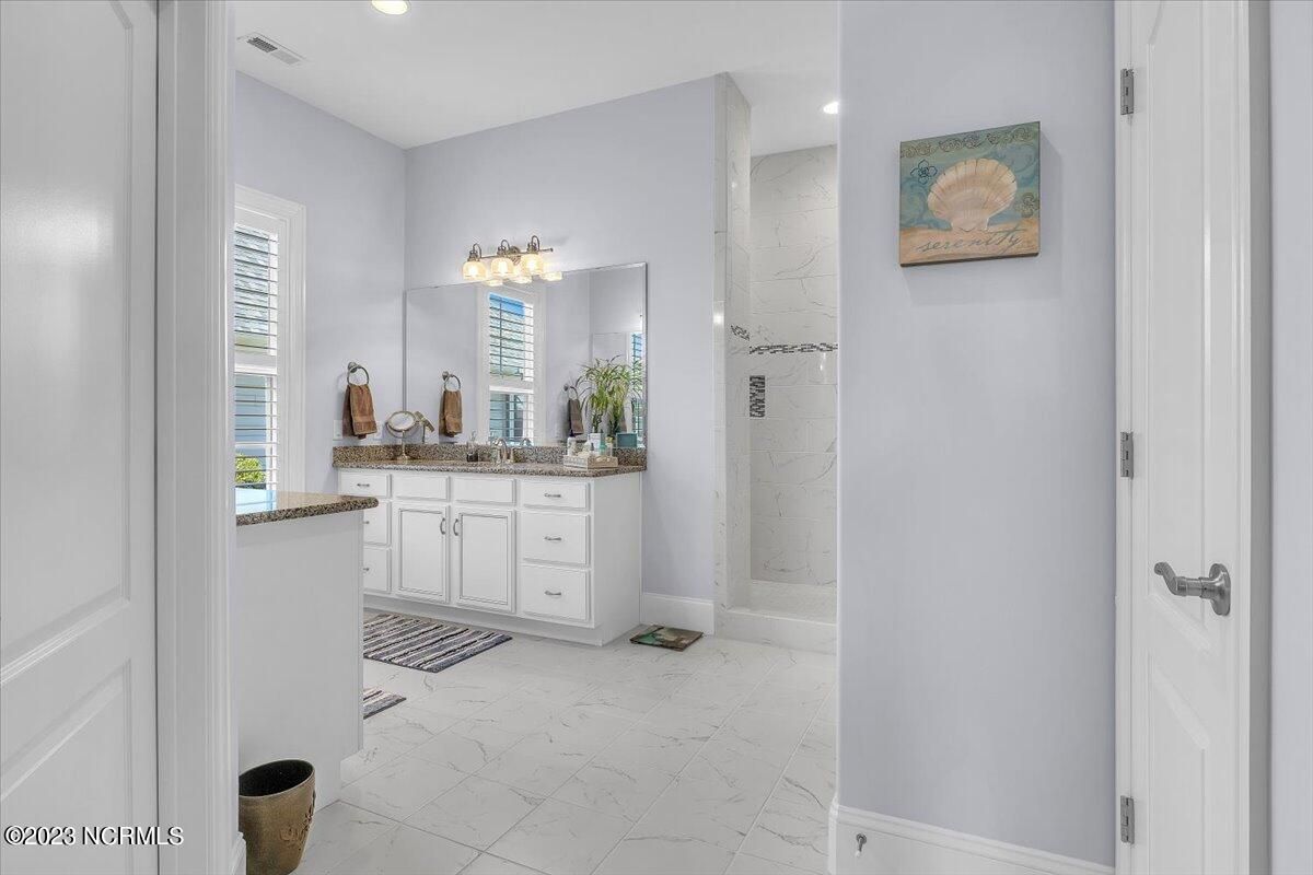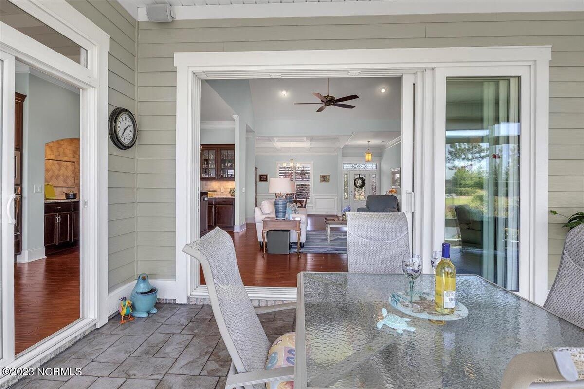 8435 N Shoreside Way, located in the beautiful Compass Pointe community of Leland, NC, is an exceptional property that exudes style, comfort, and luxury. This magnificent Liberty Built residence is a 3-bedroom, 3-bathroom home features an open floor plan that seamlessly connects the living, dining, and kitchen areas, creating a spacious and inviting living space. Not to mention an additional Bonus room with full Bath located upstairs. As you step inside, you'll be greeted by the stunning great room with its soaring ceilings, elegant fireplace, and large windows that flood the space with natural light. The gourmet kitchen is a chef's dream, boasting top-of-the-line appliances, granite countertops, custom cabinets, and a spacious island with bar seating. The adjacent open dining area is perfect for entertaining, with plenty of space for a large table The primary suite is a true oasis, featuring a spacious bedroom with tray ceiling, a luxurious spa-like bathroom with dual vanities, a soaking tub, and a separate shower, and a huge walk-in closet with custom shelving. The two additional bedrooms are generously sized and offer plenty of closet space. The home also features a home office, perfect for those who work from home or need a quiet space to study. The outdoor living area is just as impressive, featuring a glassed in porch with ceiling fans, a beautifully landscaped backyard overlooking a waterfront canal. Additional features of this home include a 2-car garage, laundry room, and ample storage space throughout. Located in the highly sought-after Compass Pointe , this home offers residents access to a range of world-class amenities, including a fitness center, indoor and outdoor pools, tennis and pickleball courts, Lazy River, and a golf course. With its impeccable design, high-end finishes, and unbeatable location, 8435 N Shoreside Way is the perfect place to call home.