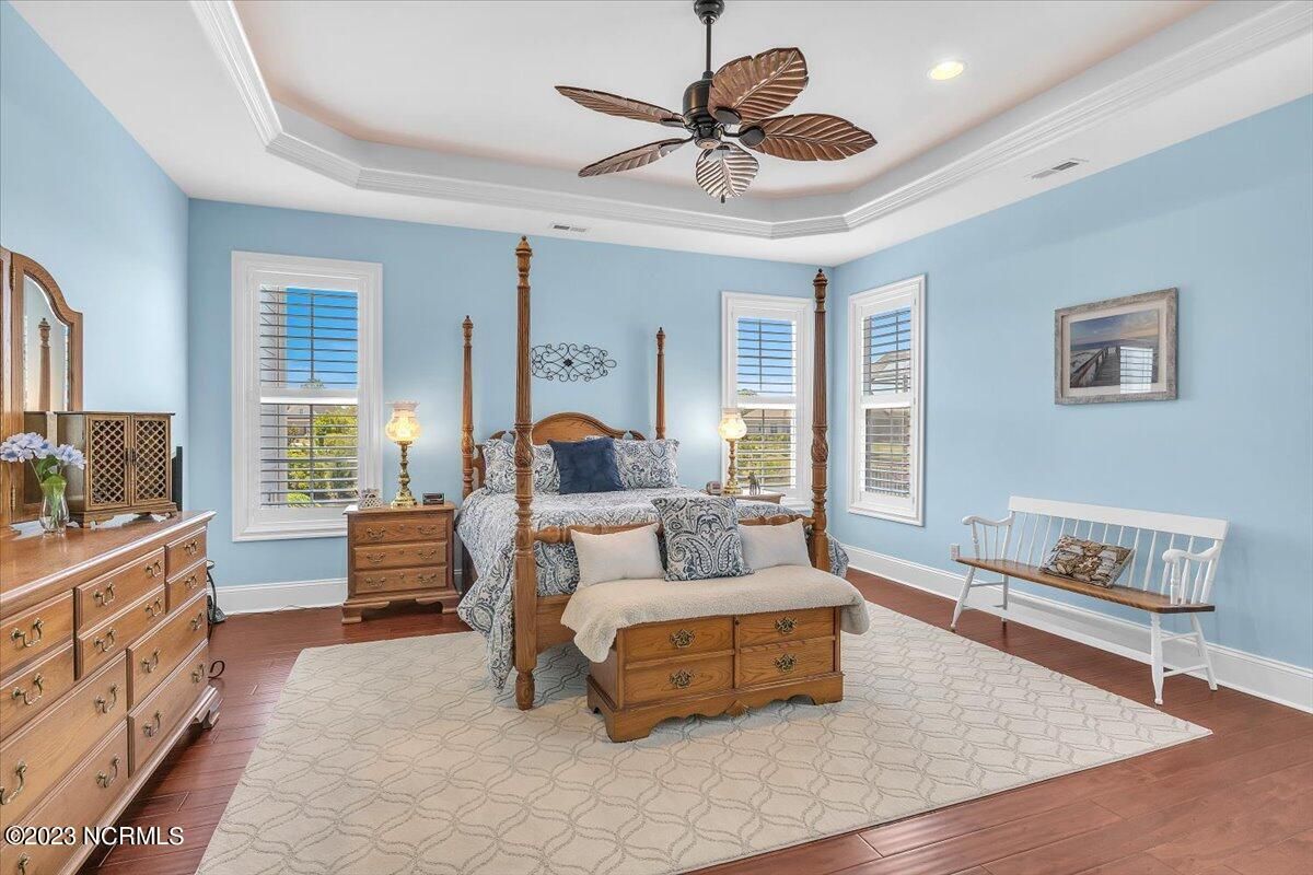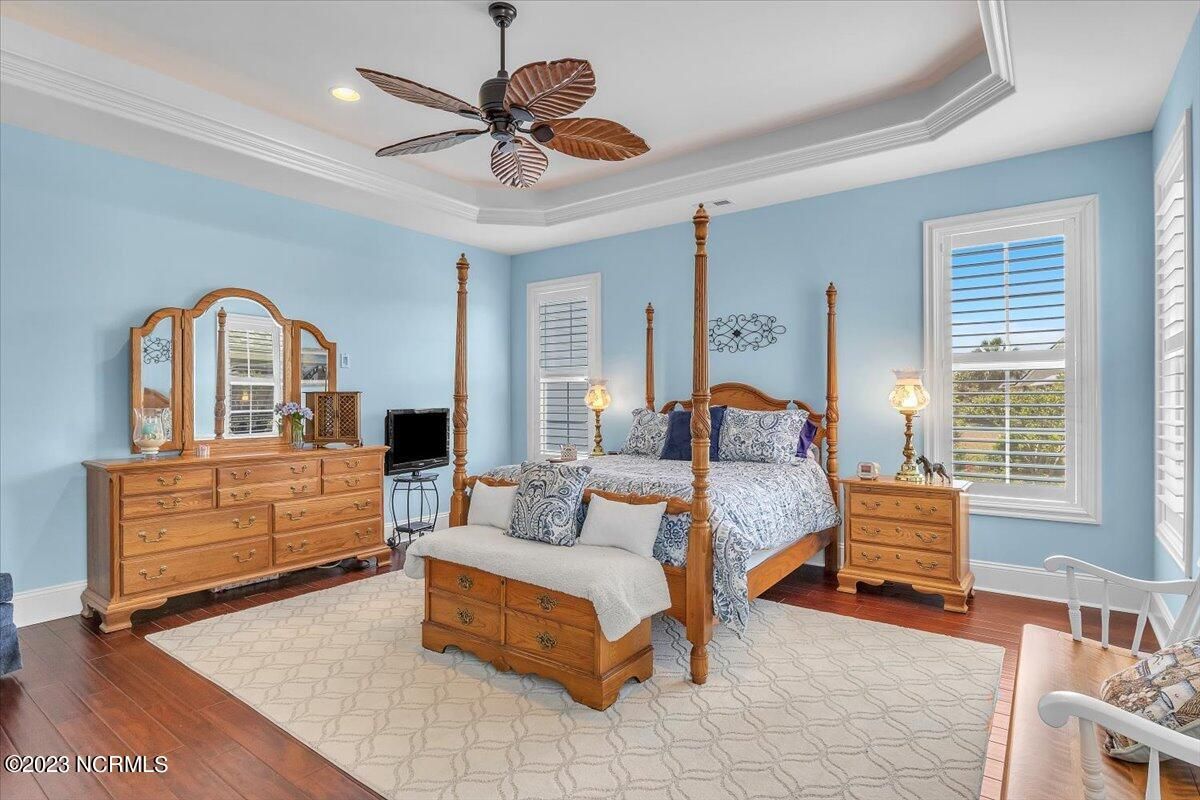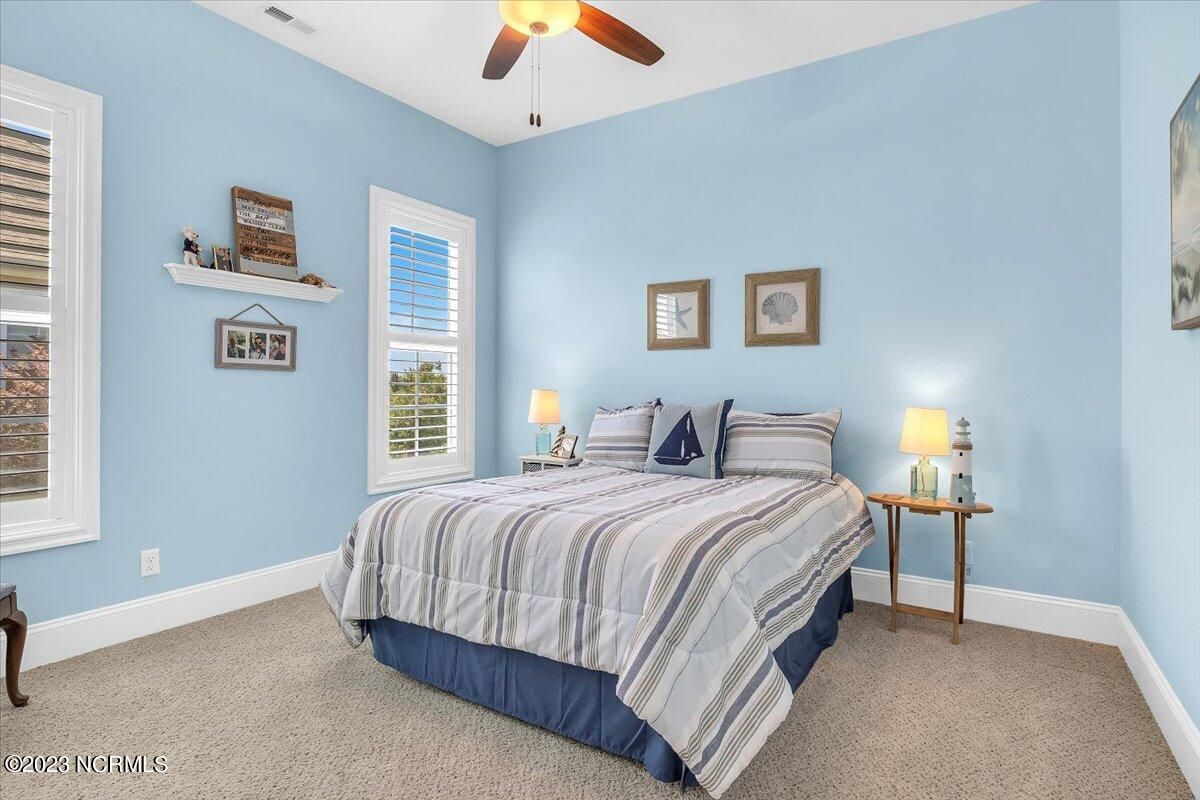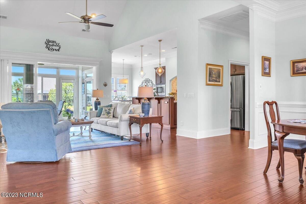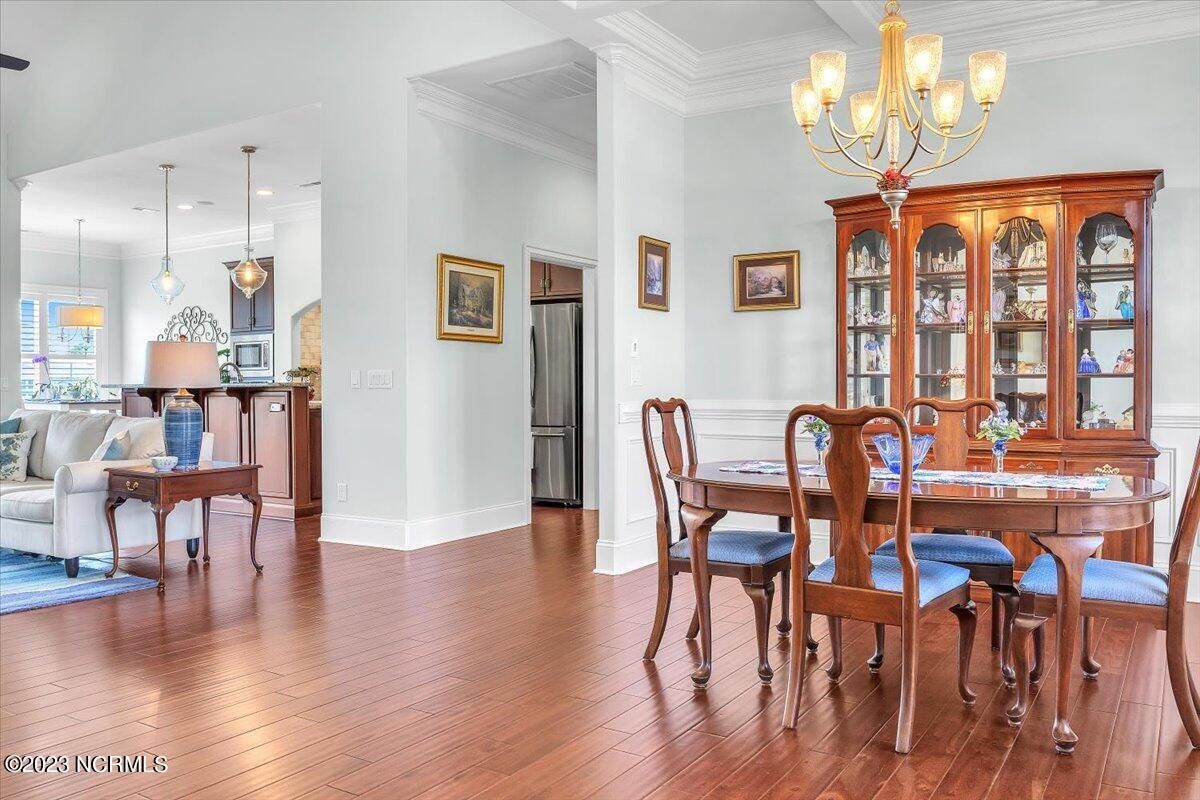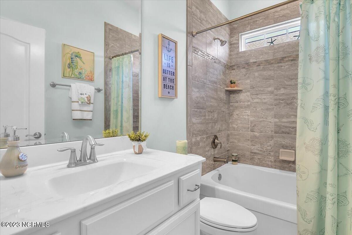8435 N Shoreside Way, located in the beautiful Compass Pointe community of Leland, NC, is an exceptional property that exudes style, comfort, and luxury. This magnificent Liberty Built residence is a 3-bedroom, 3-bathroom home features an open floor plan that seamlessly connects the living, dining, and kitchen areas, creating a spacious and inviting living space. Not to mention an additional Bonus room with full Bath located upstairs. As you step inside, you'll be greeted by the stunning great room with its soaring ceilings, elegant fireplace, and large windows that flood the space with natural light. The gourmet kitchen is a chef's dream, boasting top-of-the-line appliances, granite countertops, custom cabinets, and a spacious island with bar seating. The adjacent open dining area is perfect for entertaining, with plenty of space for a large table The primary suite is a true oasis, featuring a spacious bedroom with tray ceiling, a luxurious spa-like bathroom with dual vanities, a soaking tub, and a separate shower, and a huge walk-in closet with custom shelving. The two additional bedrooms are generously sized and offer plenty of closet space. The home also features a home office, perfect for those who work from home or need a quiet space to study. The outdoor living area is just as impressive, featuring a glassed in porch with ceiling fans, a beautifully landscaped backyard overlooking a waterfront canal. Additional features of this home include a 2-car garage, laundry room, and ample storage space throughout. Located in the highly sought-after Compass Pointe , this home offers residents access to a range of world-class amenities, including a fitness center, indoor and outdoor pools, tennis and pickleball courts, Lazy River, and a golf course. With its impeccable design, high-end finishes, and unbeatable location, 8435 N Shoreside Way is the perfect place to call home.
