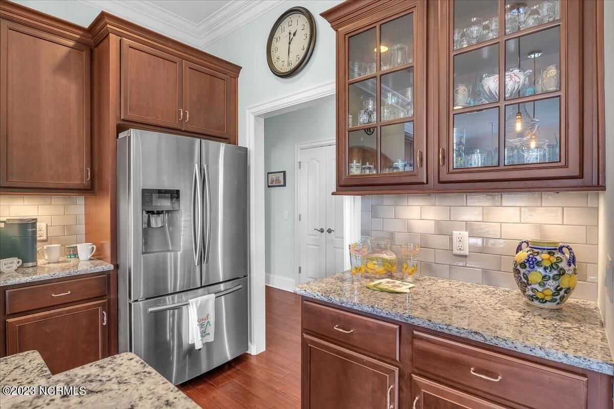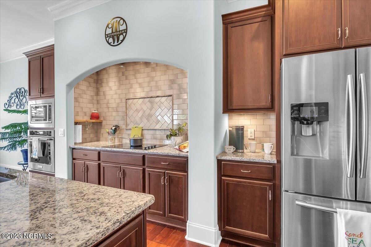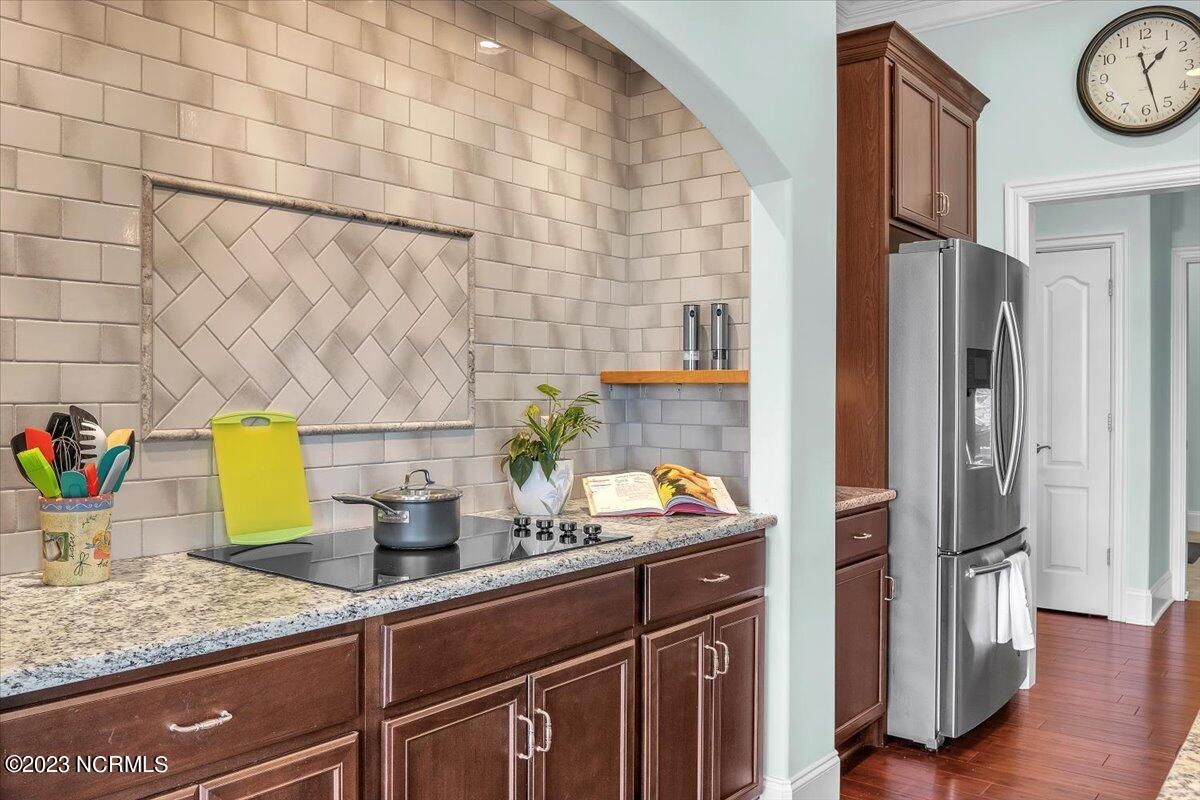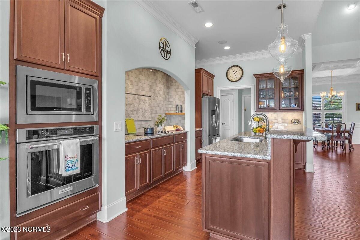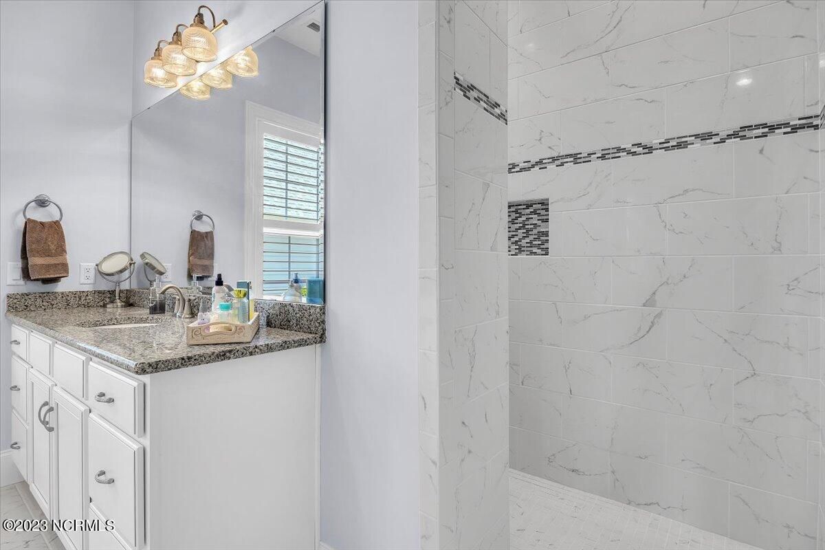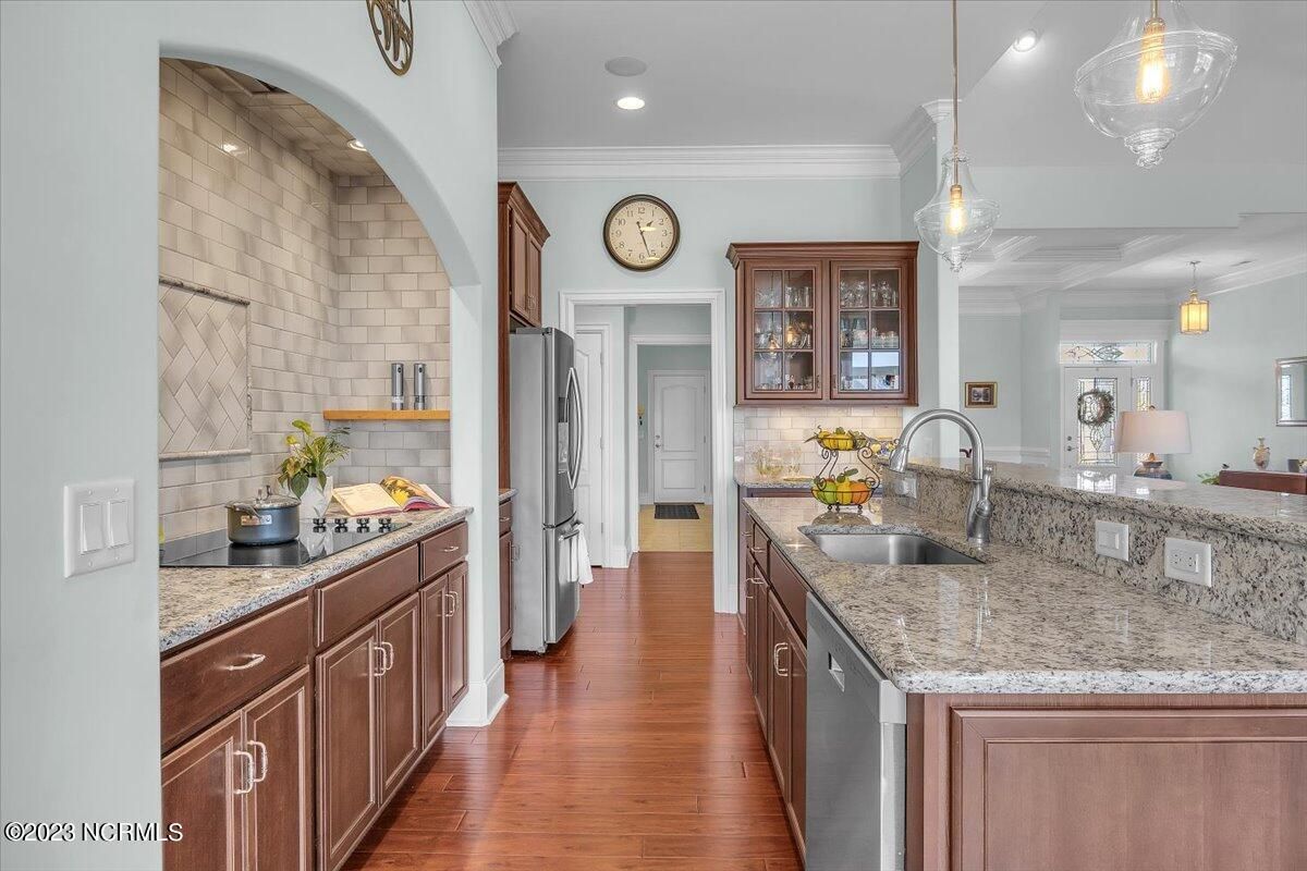 8435 N Shoreside Way, located in the beautiful Compass Pointe community of Leland, NC, is an exceptional property that exudes style, comfort, and luxury. This magnificent Liberty Built residence is a 3-bedroom, 3-bathroom home features an open floor plan that seamlessly connects the living, dining, and kitchen areas, creating a spacious and inviting living space. Not to mention an additional Bonus room with full Bath located upstairs. As you step inside, you'll be greeted by the stunning great room with its soaring ceilings, elegant fireplace, and large windows that flood the space with natural light. The gourmet kitchen is a chef's dream, boasting top-of-the-line appliances, granite countertops, custom cabinets, and a spacious island with bar seating. The adjacent open dining area is perfect for entertaining, with plenty of space for a large table The primary suite is a true oasis, featuring a spacious bedroom with tray ceiling, a luxurious spa-like bathroom with dual vanities, a soaking tub, and a separate shower, and a huge walk-in closet with custom shelving. The two additional bedrooms are generously sized and offer plenty of closet space. The home also features a home office, perfect for those who work from home or need a quiet space to study. The outdoor living area is just as impressive, featuring a glassed in porch with ceiling fans, a beautifully landscaped backyard overlooking a waterfront canal. Additional features of this home include a 2-car garage, laundry room, and ample storage space throughout. Located in the highly sought-after Compass Pointe , this home offers residents access to a range of world-class amenities, including a fitness center, indoor and outdoor pools, tennis and pickleball courts, Lazy River, and a golf course. With its impeccable design, high-end finishes, and unbeatable location, 8435 N Shoreside Way is the perfect place to call home.