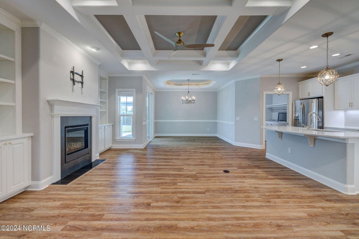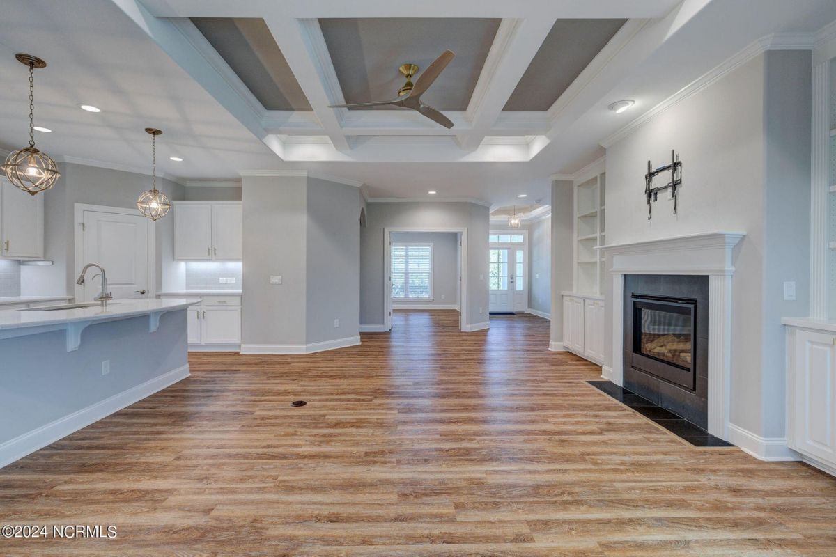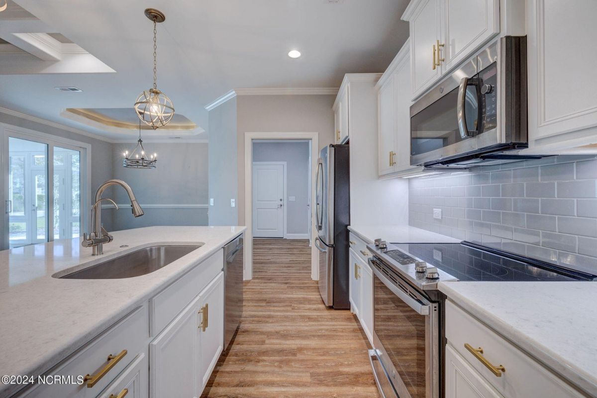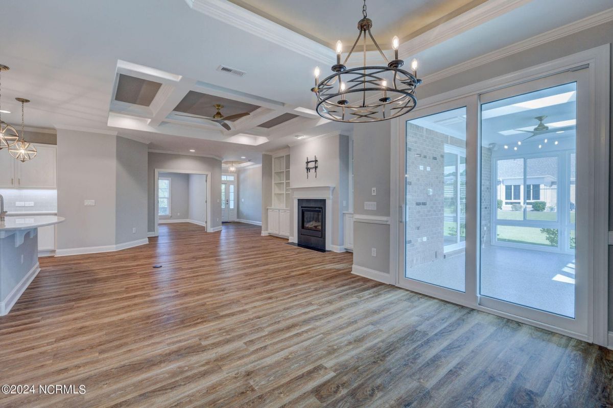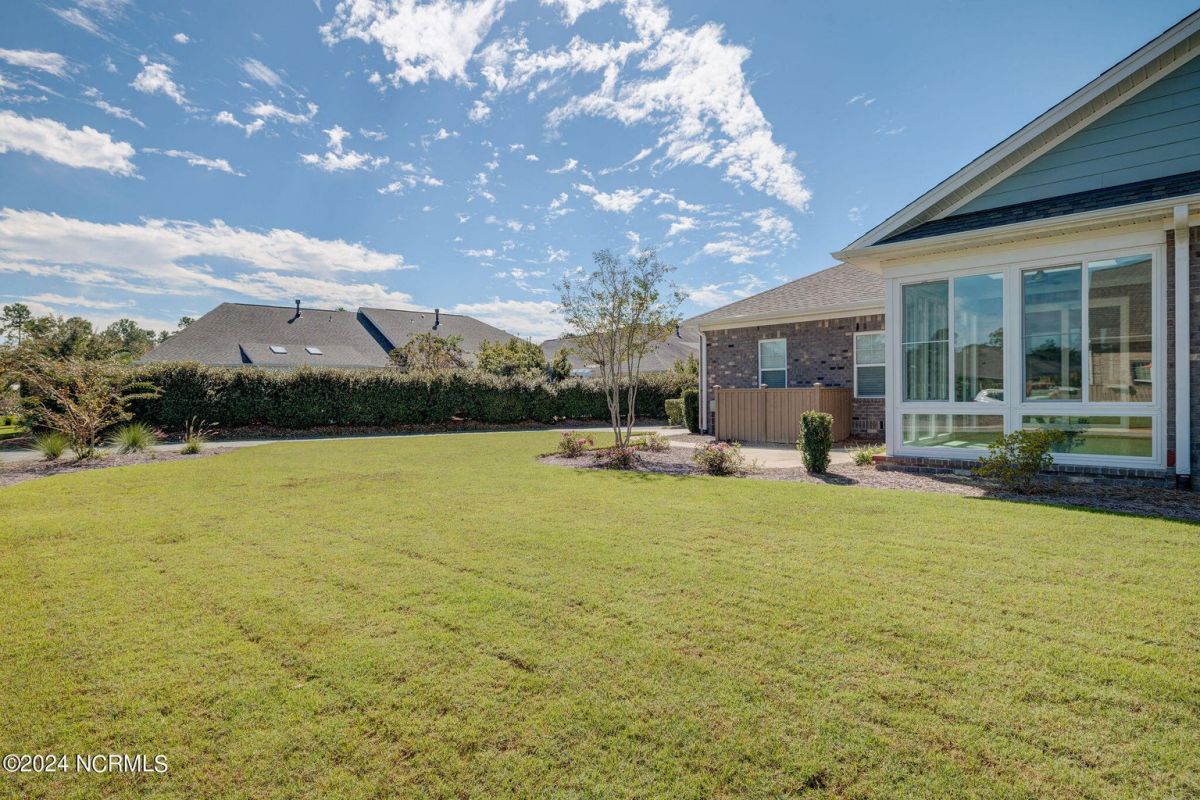 Welcome to your dream home in wonderful, gated Compass Pointe community! This pristine 3-bedroom, 2-bath townhome sits on an oversized corner lot and offers the perfect blend of comfort, convenience, and low-maintenance living such as HOA maintained lawn and shrubs, water irrigation, roof, exterior of home, termite bond, and building insurance. This homes special features are the 9-foot coffered ceilings, tile floors, and luxury vinyl throughout. The bright kitchen boasts Stainless steel appliances, upgraded quartz countertops, under cabinet lighting, large walk-in pantry & Kinetico water filtration. Sunroom Retreat: Fully insulated and cooled four-season sunroom, accessible from the primary bedroom, dining room, or connected outside concrete patio. The Spacious Primary Suite has Lighted tray ceilings, large walk-in closet with pull-down stairs for extra attic storage, and ensuite bath with zero-entry curbless shower. The Second Guest Bedroom Includes a high-quality California Closets Murphy bed, making it perfect for an office or guest room. A Private Guest Wing offers a Second full bath with tile floor and bath surround, plus a hidden pocket door to create a private guest wing with bedroom 3. The Great Room has Built-ins surrounding the fireplace and premium window treatments that are included. A functional Mudroom/Laundry room with washer and dryer leads to an oversized two-car rear-loading garage with epoxy floor. Smart Home includes: Wi-Fi thermostat, Wi-Fi garage door opener and ceiling audio speaker system. Come visit us to experience what the resort-style amenities and coastal lifestyle have to offer.