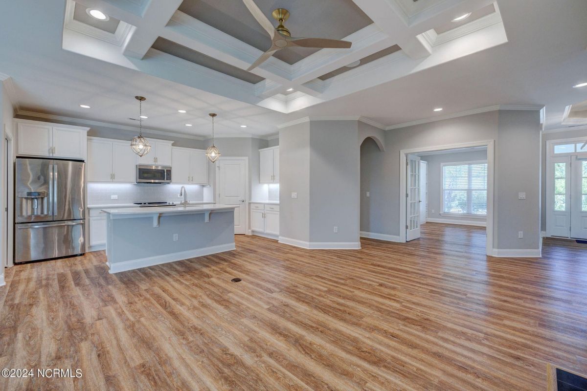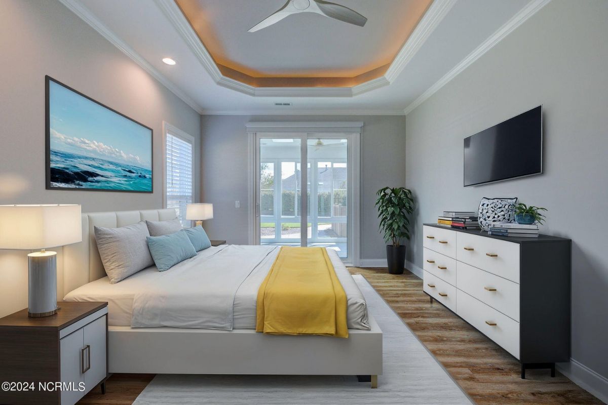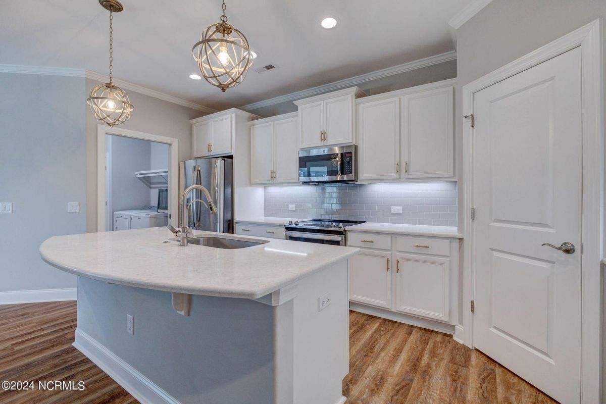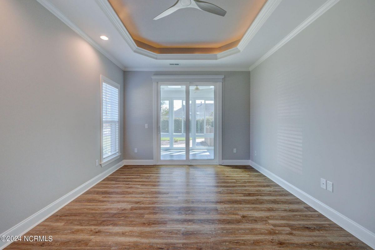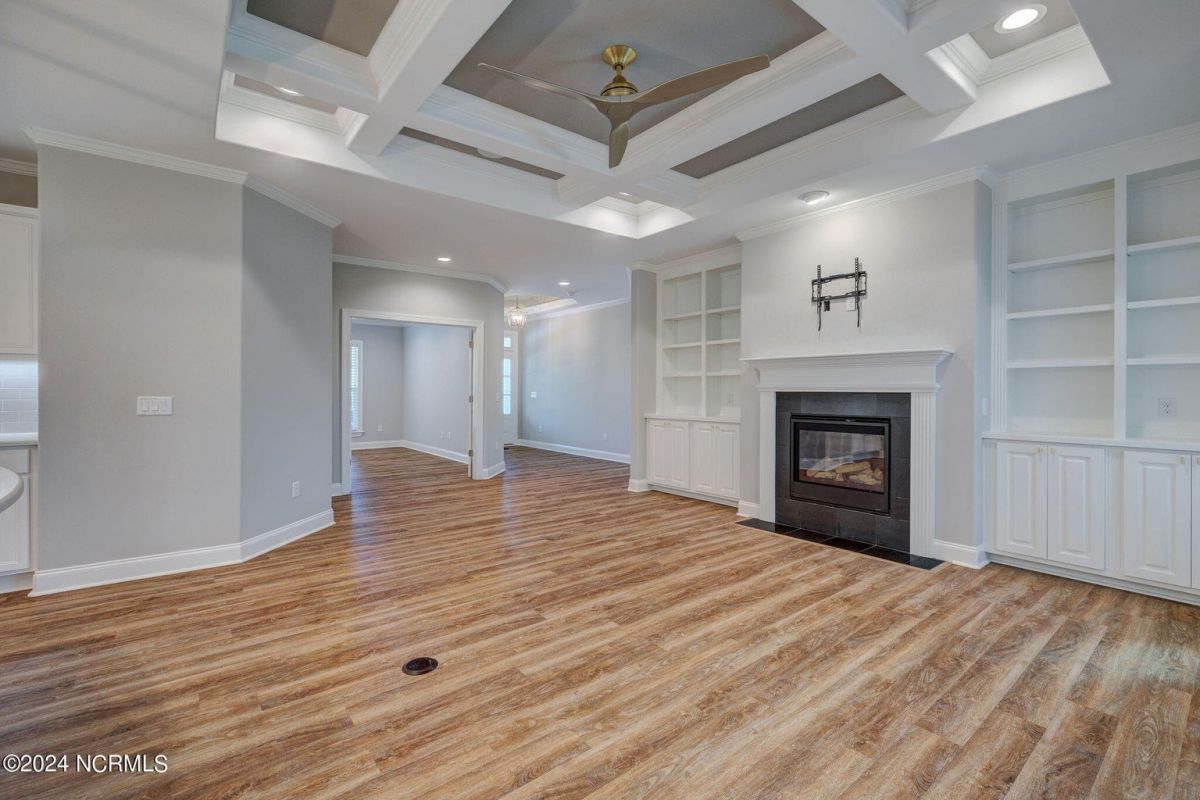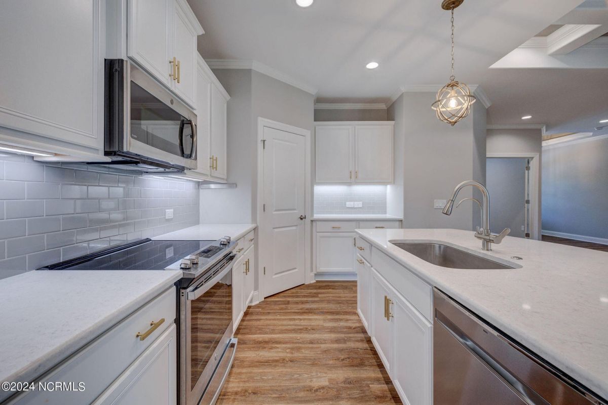 Welcome to your dream home in wonderful, gated Compass Pointe community! This pristine 3-bedroom, 2-bath townhome sits on an oversized corner lot and offers the perfect blend of comfort, convenience, and low-maintenance living such as HOA maintained lawn and shrubs, water irrigation, roof, exterior of home, termite bond, and building insurance. This homes special features are the 9-foot coffered ceilings, tile floors, and luxury vinyl throughout. The bright kitchen boasts Stainless steel appliances, upgraded quartz countertops, under cabinet lighting, large walk-in pantry & Kinetico water filtration. Sunroom Retreat: Fully insulated and cooled four-season sunroom, accessible from the primary bedroom, dining room, or connected outside concrete patio. The Spacious Primary Suite has Lighted tray ceilings, large walk-in closet with pull-down stairs for extra attic storage, and ensuite bath with zero-entry curbless shower. The Second Guest Bedroom Includes a high-quality California Closets Murphy bed, making it perfect for an office or guest room. A Private Guest Wing offers a Second full bath with tile floor and bath surround, plus a hidden pocket door to create a private guest wing with bedroom 3. The Great Room has Built-ins surrounding the fireplace and premium window treatments that are included. A functional Mudroom/Laundry room with washer and dryer leads to an oversized two-car rear-loading garage with epoxy floor. Smart Home includes: Wi-Fi thermostat, Wi-Fi garage door opener and ceiling audio speaker system. Come visit us to experience what the resort-style amenities and coastal lifestyle have to offer.