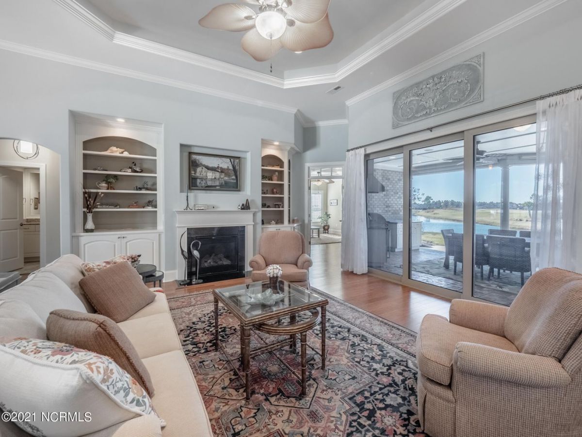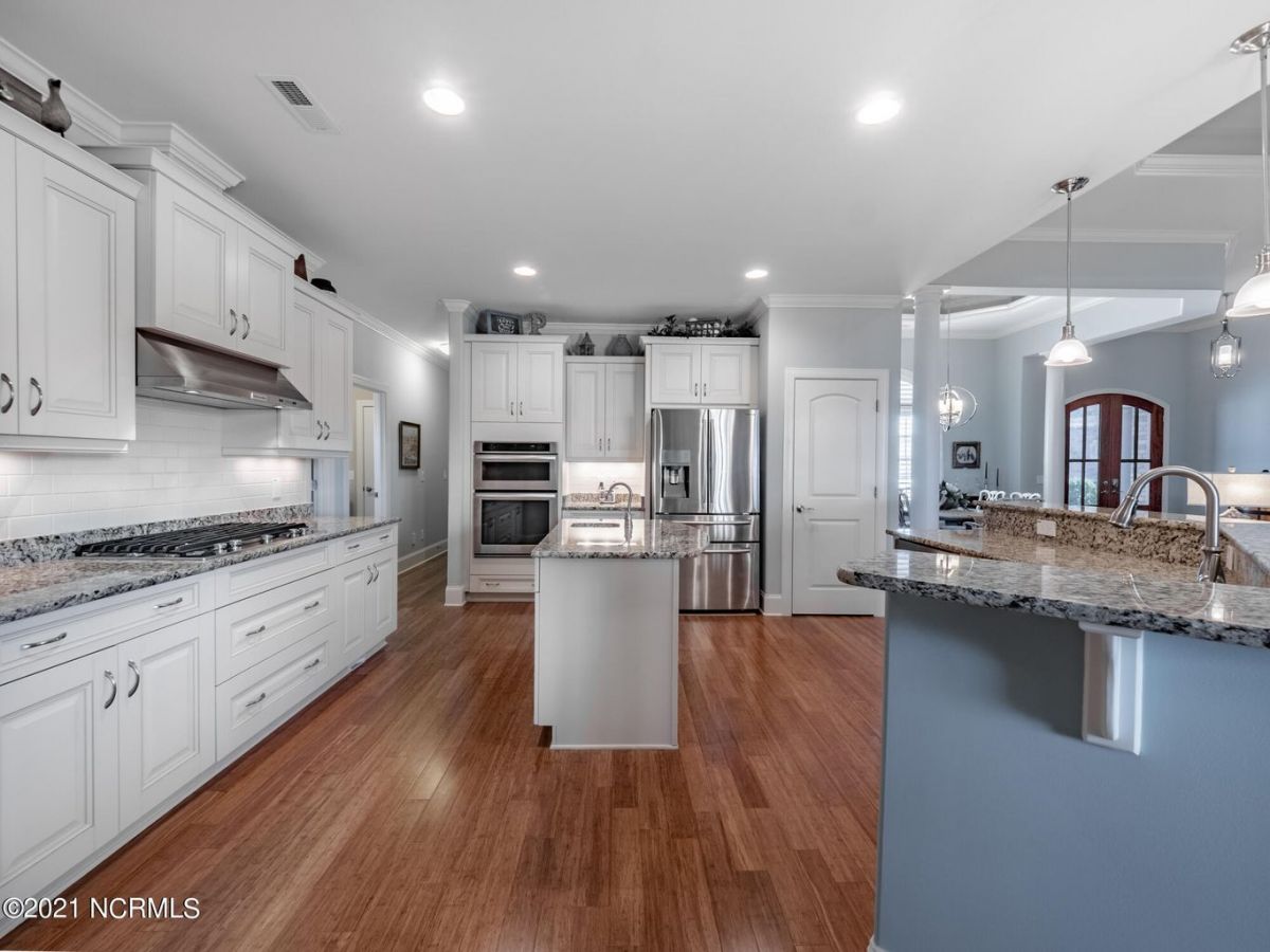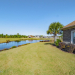 This Logan Homes Valencia II is sitting on one of the most beautiful lots in the Waters North neighborhood in Compass Pointe. The golf and pond front setting is perfect for entertaining on the huge back patio with a complete outdoor kitchen. It has 4 bedrooms, a media room/den, 4 full baths, kitchen with 2 islands and a breakfast nook as well as a formal dining room (with custom painted ceiling mural). The extras in this home were certainly not overlooked from the no entry tiled showers with transom windows to the solar cells to keep the electric bills low. Other extras include: additional linen closets, pantry with wood shelves, 3 feet added to media room with French doors and transom, beautiful columns and stamped concrete on the patio, sun resistant film on sliders in living area, resilient bamboo flooring, upgraded carpet in bedrooms, lots of extra windows with Plantation shutters, laundry with cabinets, sink and another pantry, two car garage with oversized golf cart door, whole house generator hook up, a separate storage room in garage, central vac system, large den/office or 4th bedroom with full bath and massive amounts of floored attic space. Come see all the extras inside this home as well as the spectacular landscaping and view this lot provides before it is gone.