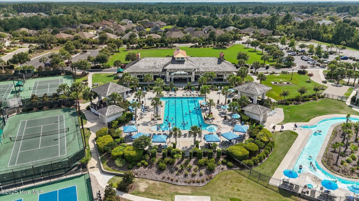 Resort living on one easy level in the desirable Highland Forest West section of Compass Pointe. Nestled on a quiet homesite in the gated, resort-style community of Compass Pointe, this all-brick beauty built in 2020 delivers 2,400 sq ft of thoughtfully designed space with 3 bedrooms and 2.5 baths. The Lanai offers an additional 392 S/F of screened-in living space - ideal for breezy coastal entertaining. An inviting foyer opens to a great-room anchored by a gas-log fireplace and stunning luxury vinyl flooring that flows through the primary living areas. A chef-friendly kitchen with eat at Island & beautiful granite counters connects seamlessly to the dining area and a large The split floor plan gives the primary suite wonderful privacy; you'll appreciate its generous walk-in closet and spa-style bath with tiled shower and dual vanities. Two guest bedrooms share a full bath, while a separate powder room serves day-to-day visitors. Additional highlights include a dedicated home office/flex room, laundry, and an extended driveway leading to an extra-deep garage—perfect for golf-cart parking or hobby space. The yard is private and fenced and creates the perfect spot for outdoor entertaining. You'll love Compass Pointes amenities including the Grand Lanai with resort pool, 410-ft lazy river, indoor pool & 7,000 sq ft fitness center. Tennis, pickleball, & basketball courts, miles of walking/biking trails, dog park, kayak launch and more. This home is in impeccable condition and will make the perfect forever or vacation home.